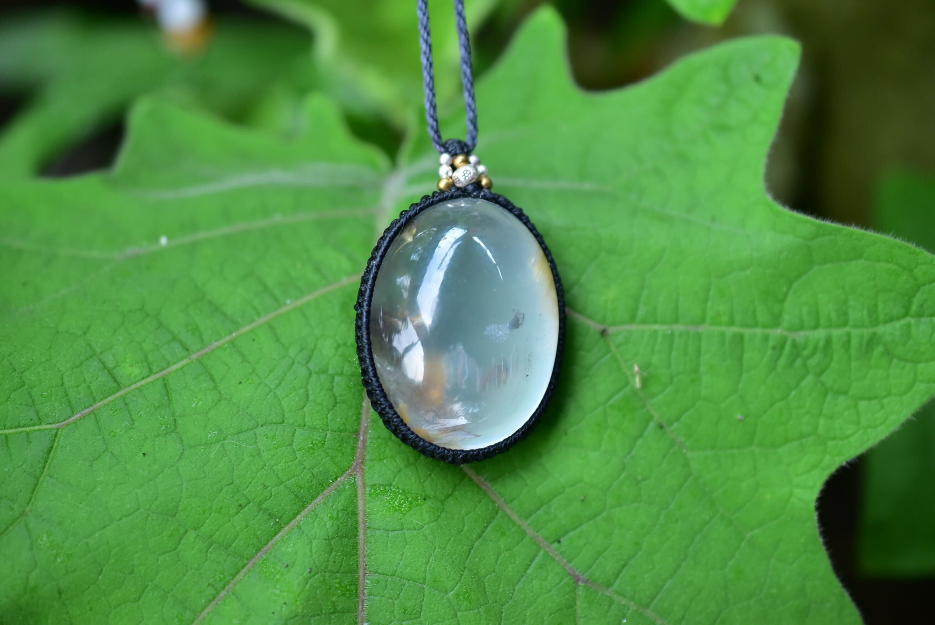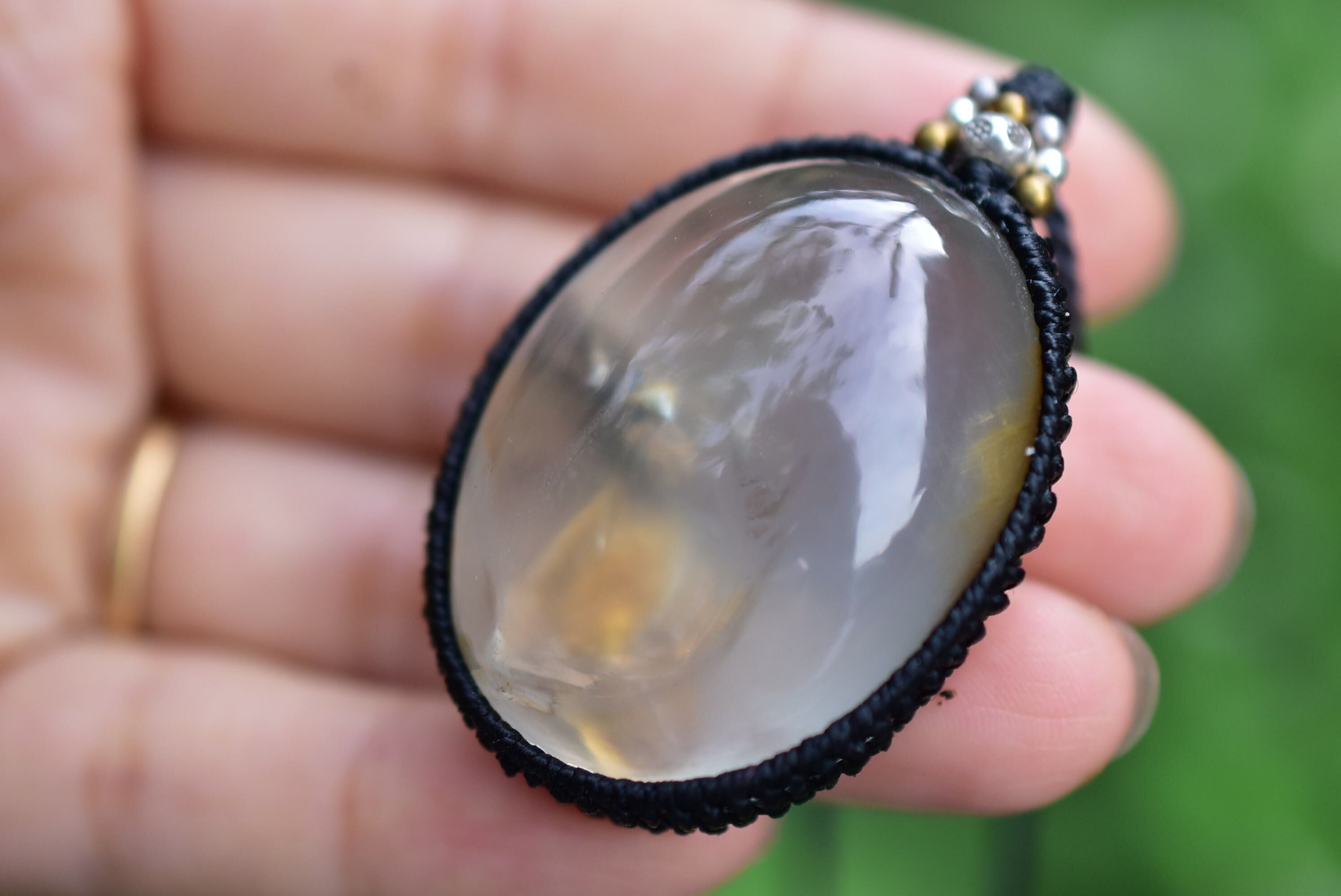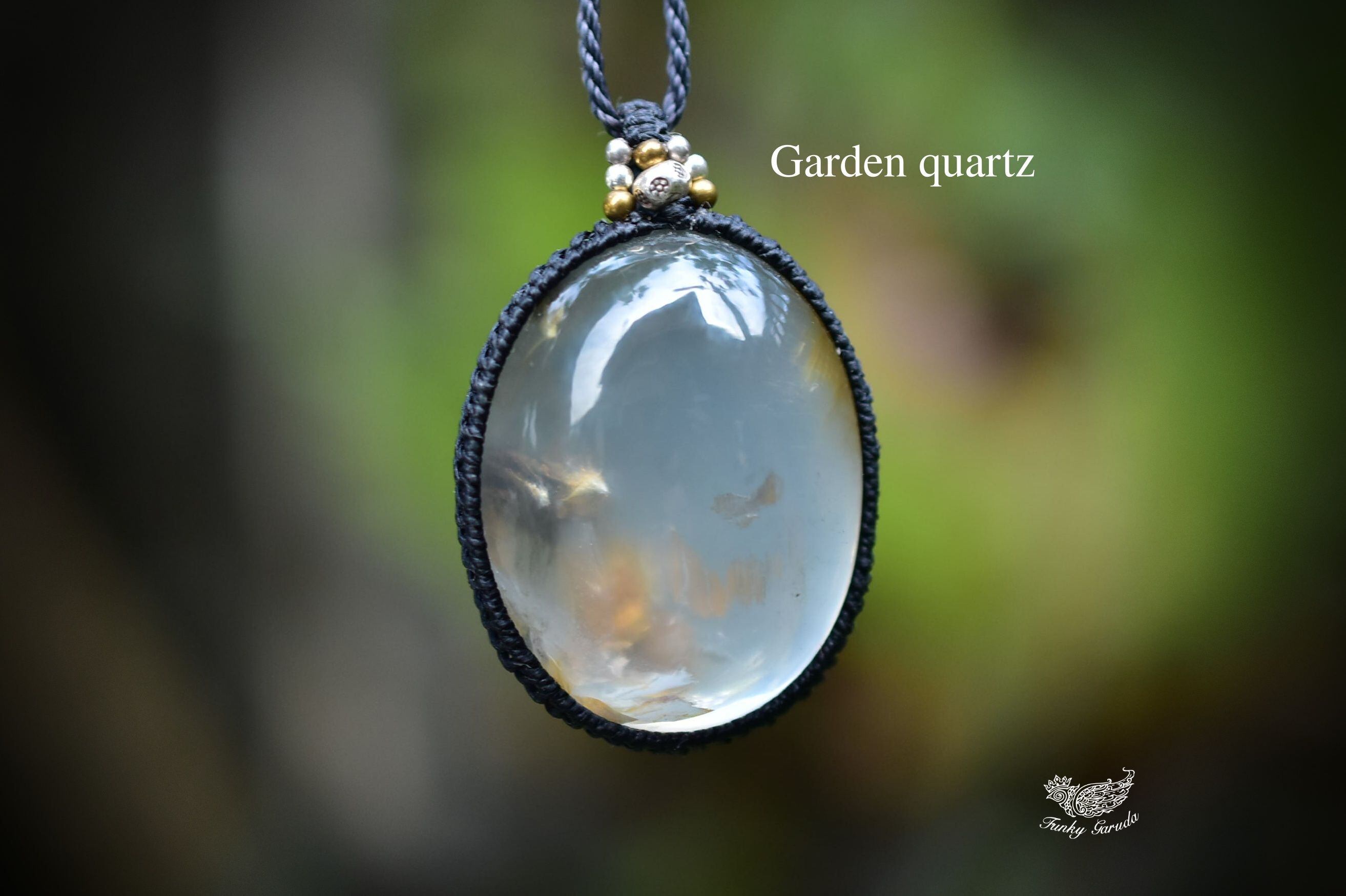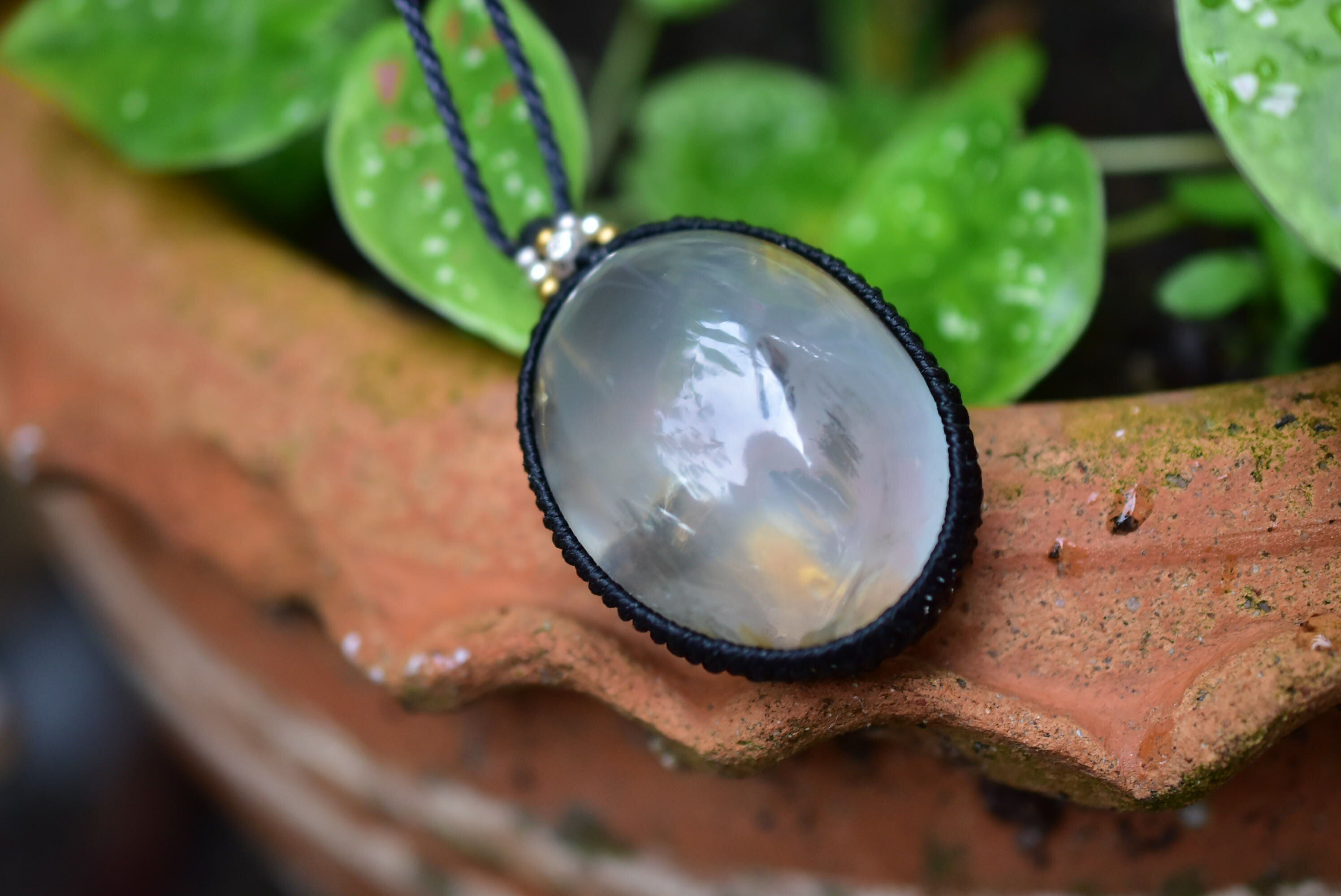 柔らかな景色★中粒★ホワイトスモーキー★ガーデンクォーツマクラメペンダント gy072