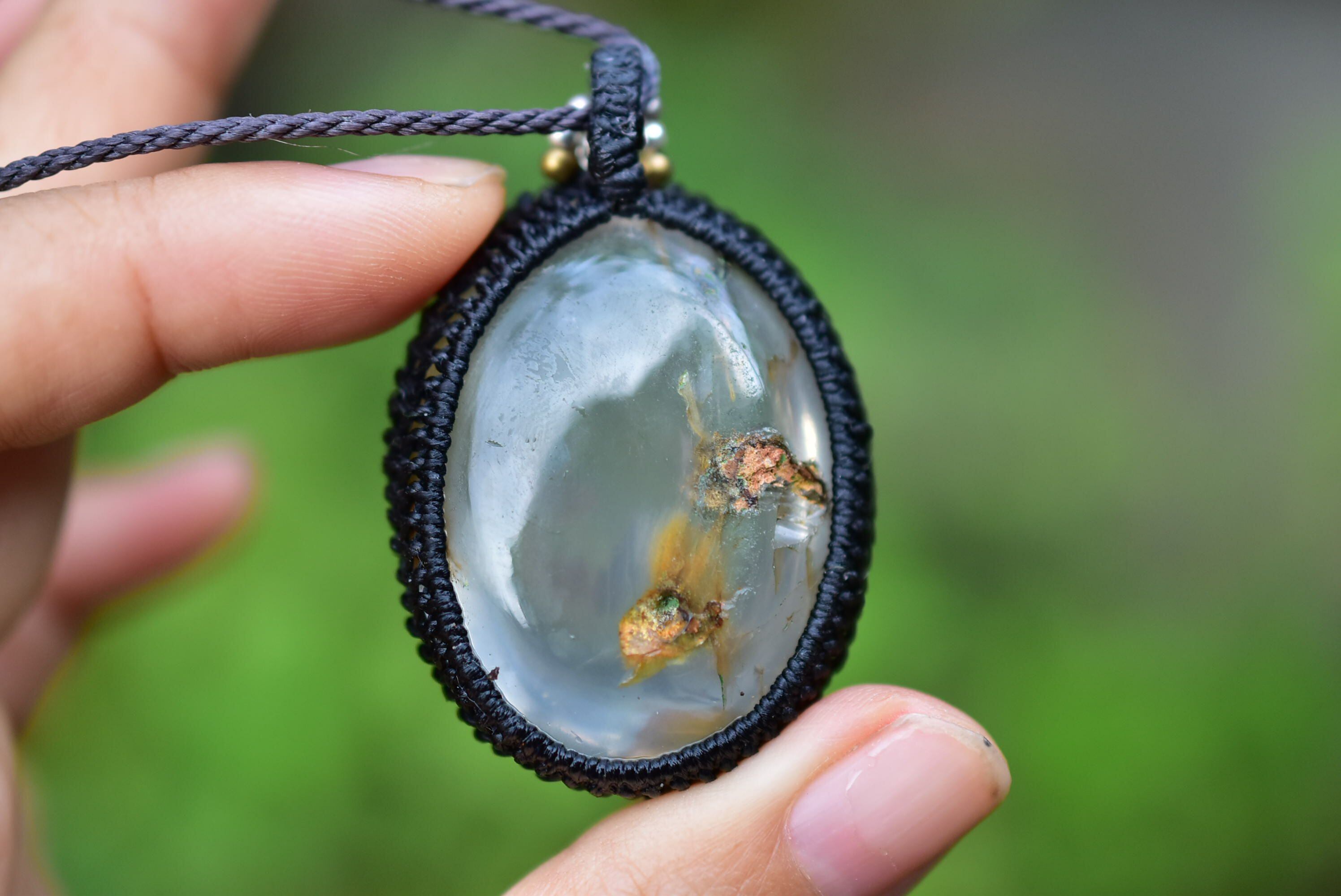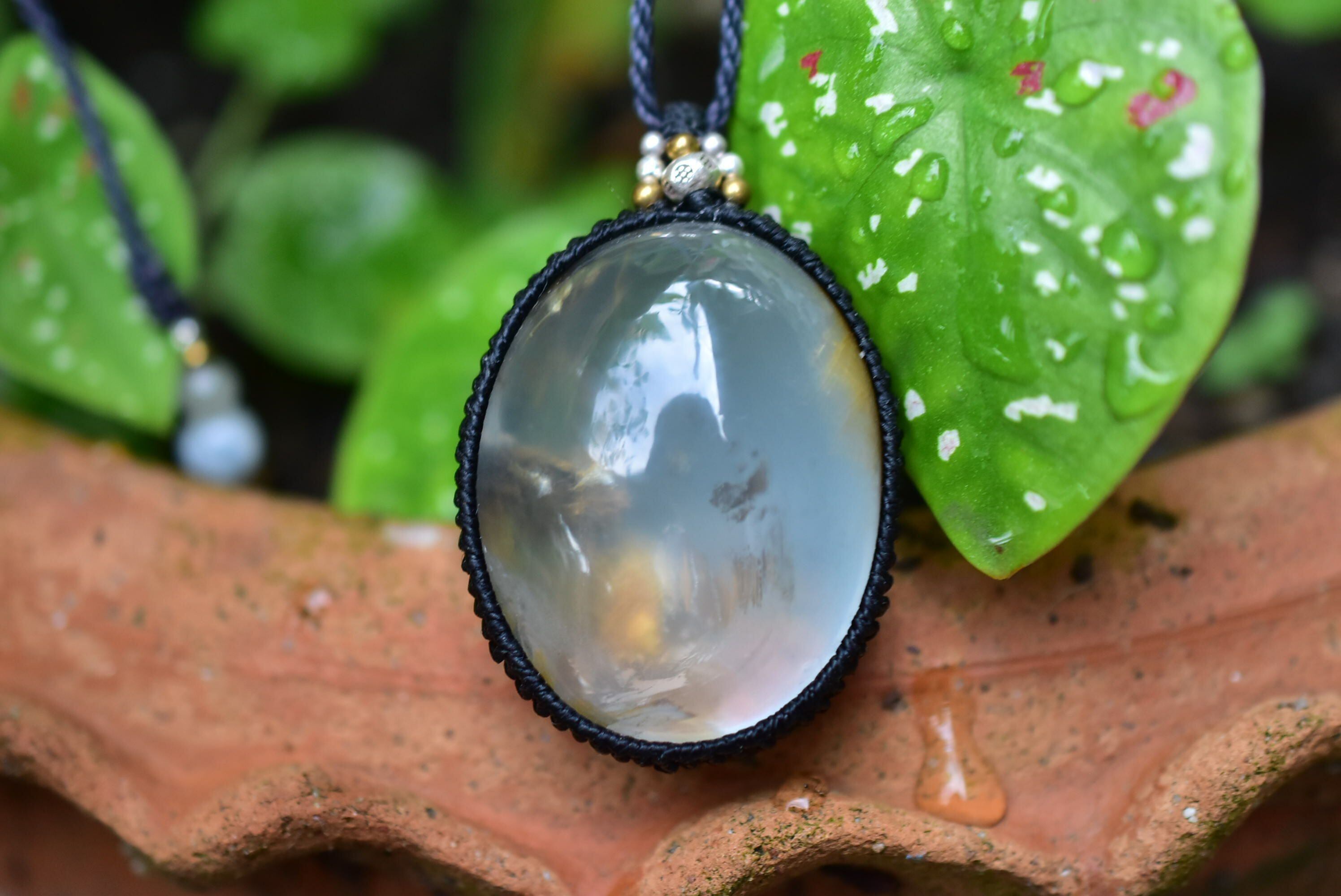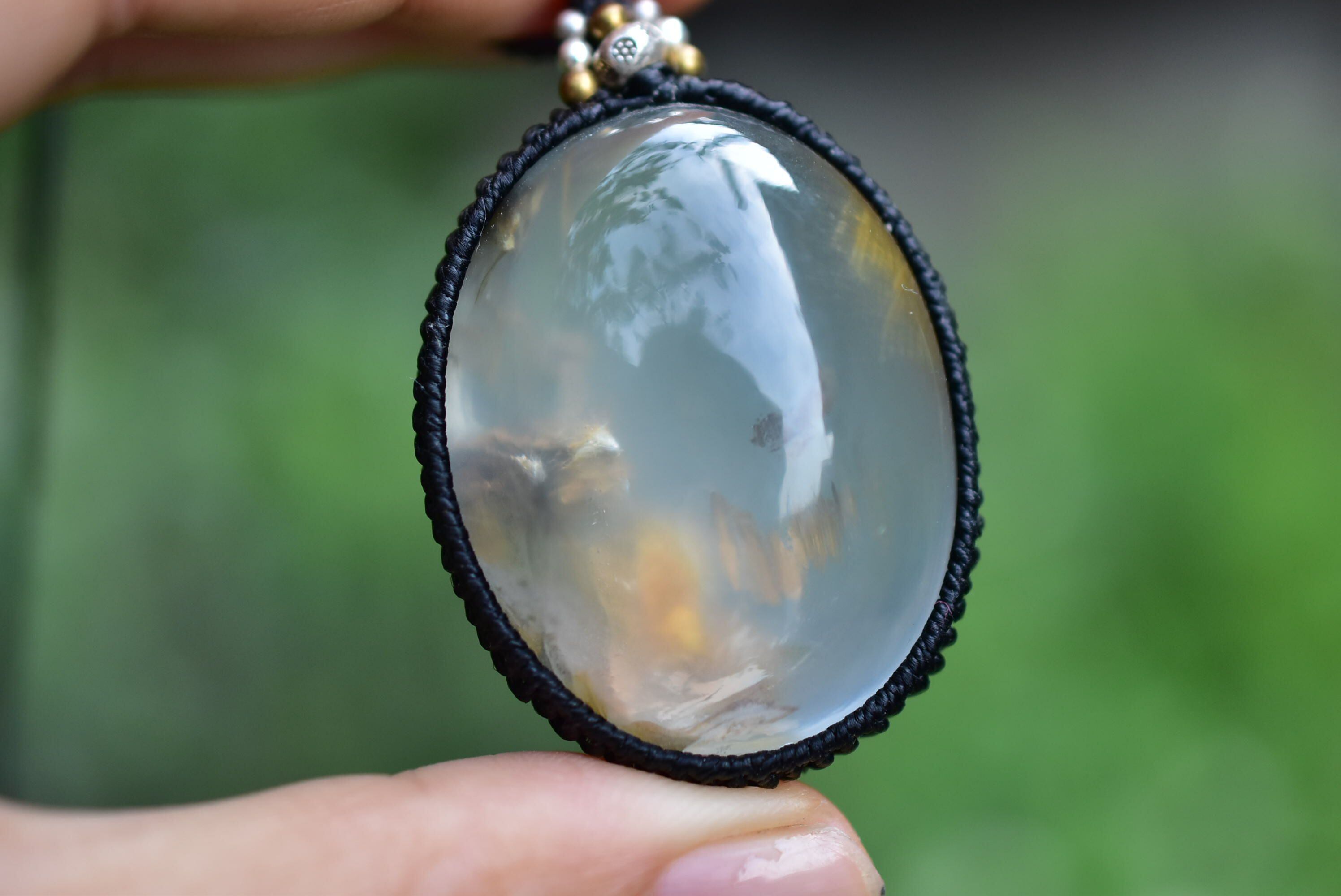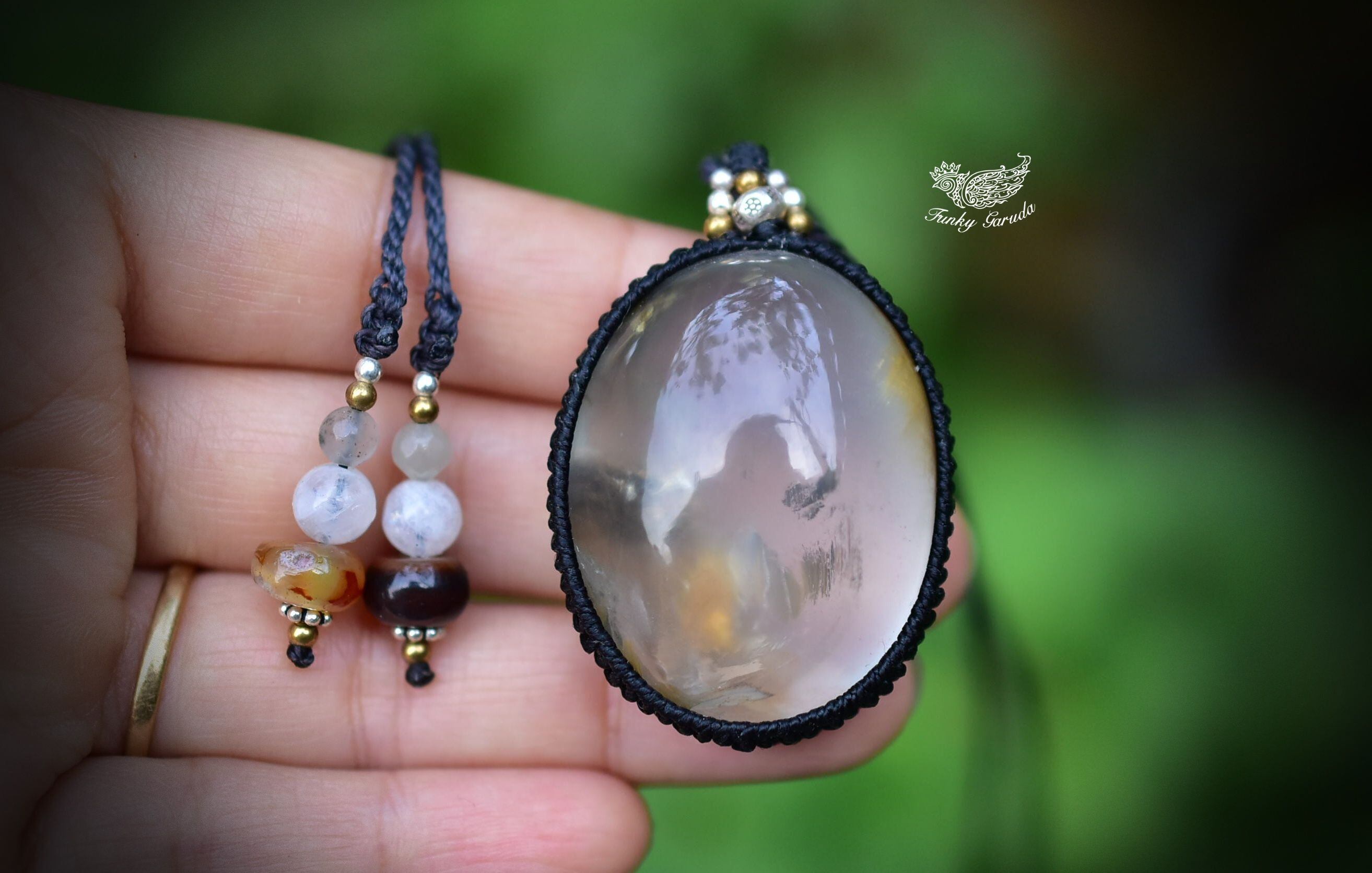 柔らかな景色★中粒★ホワイトスモーキー★ガーデンクォーツマクラメペンダント gy072