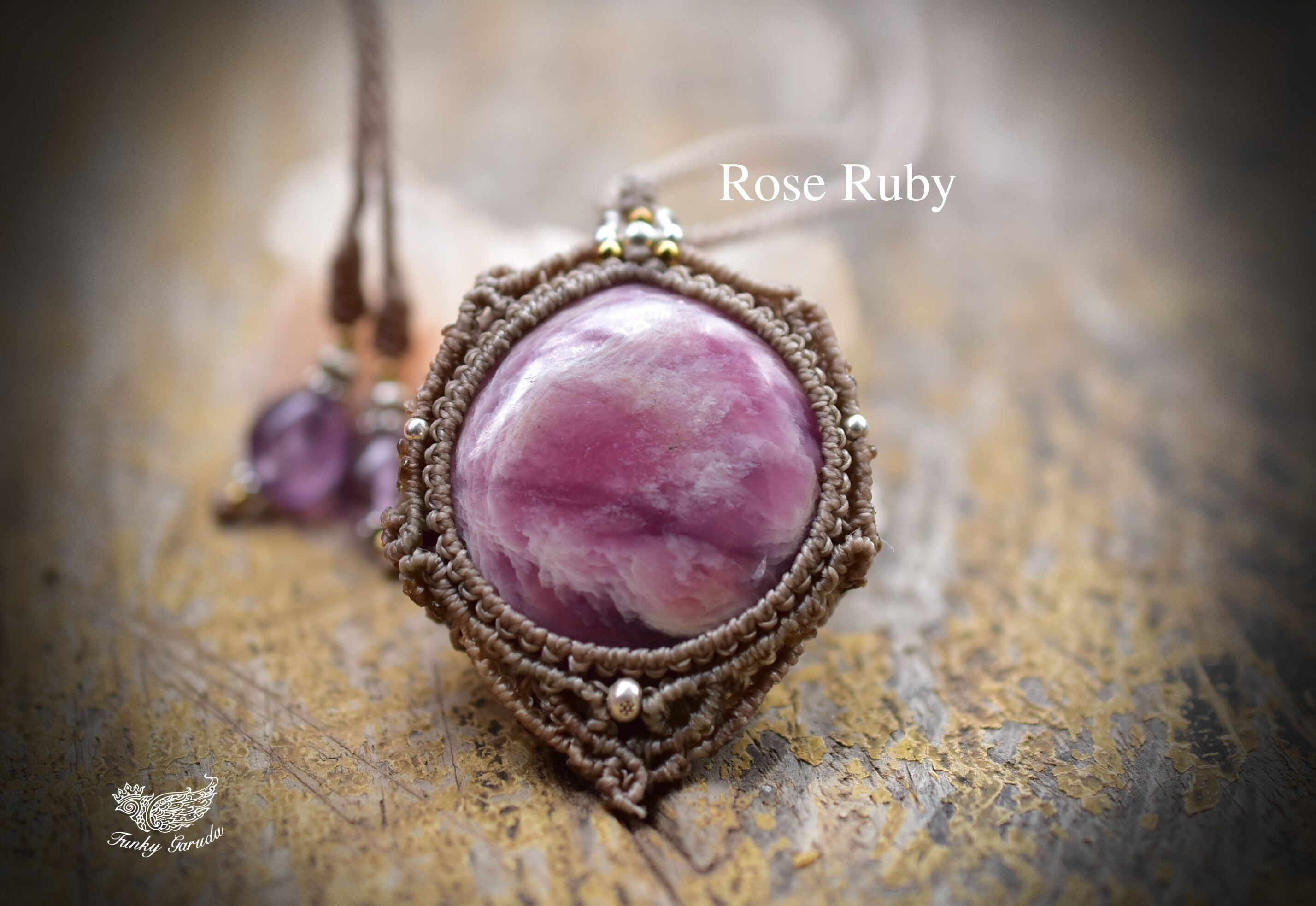 幻想の世界★大粒★ローズルビー マクラメペンダント ruby049