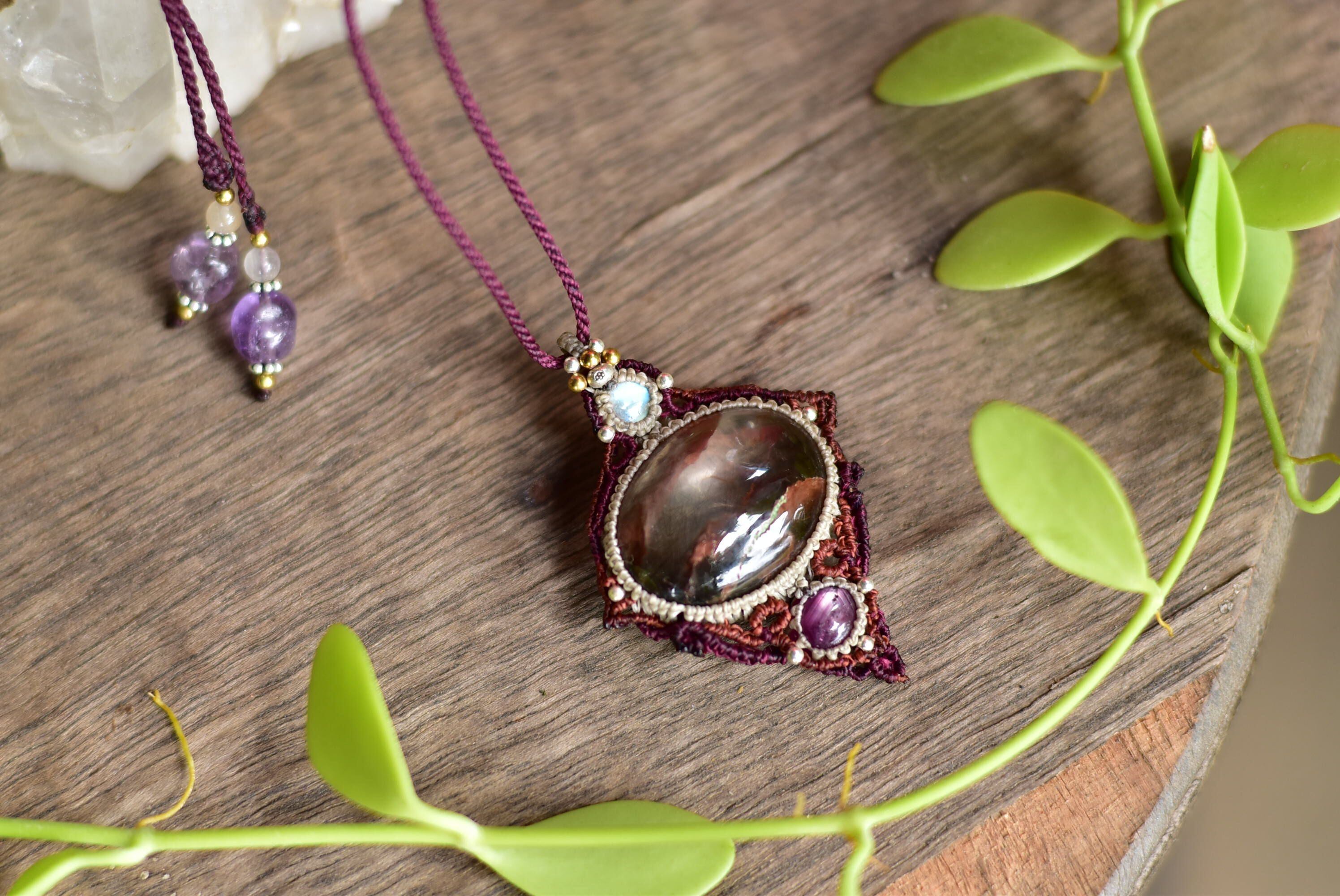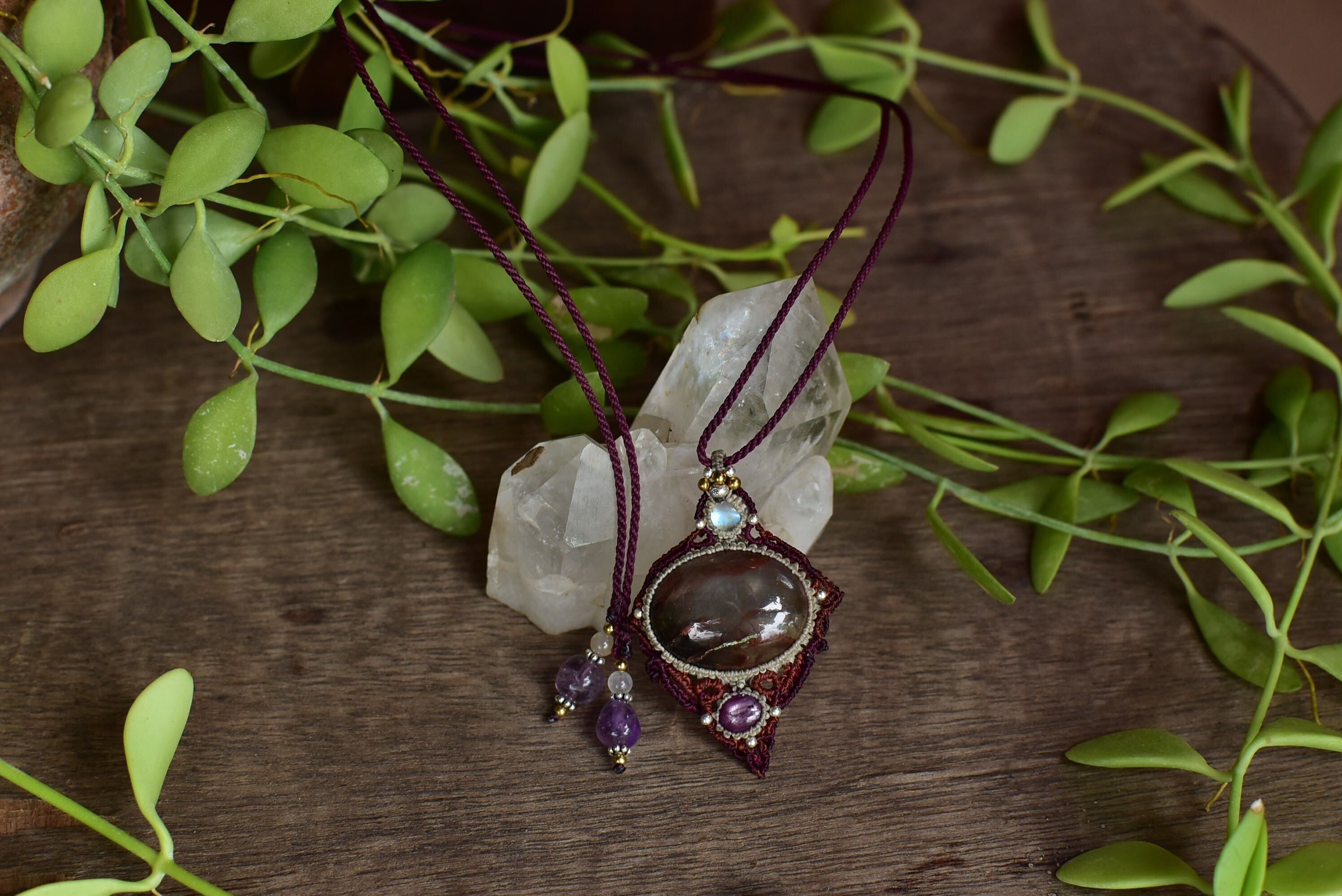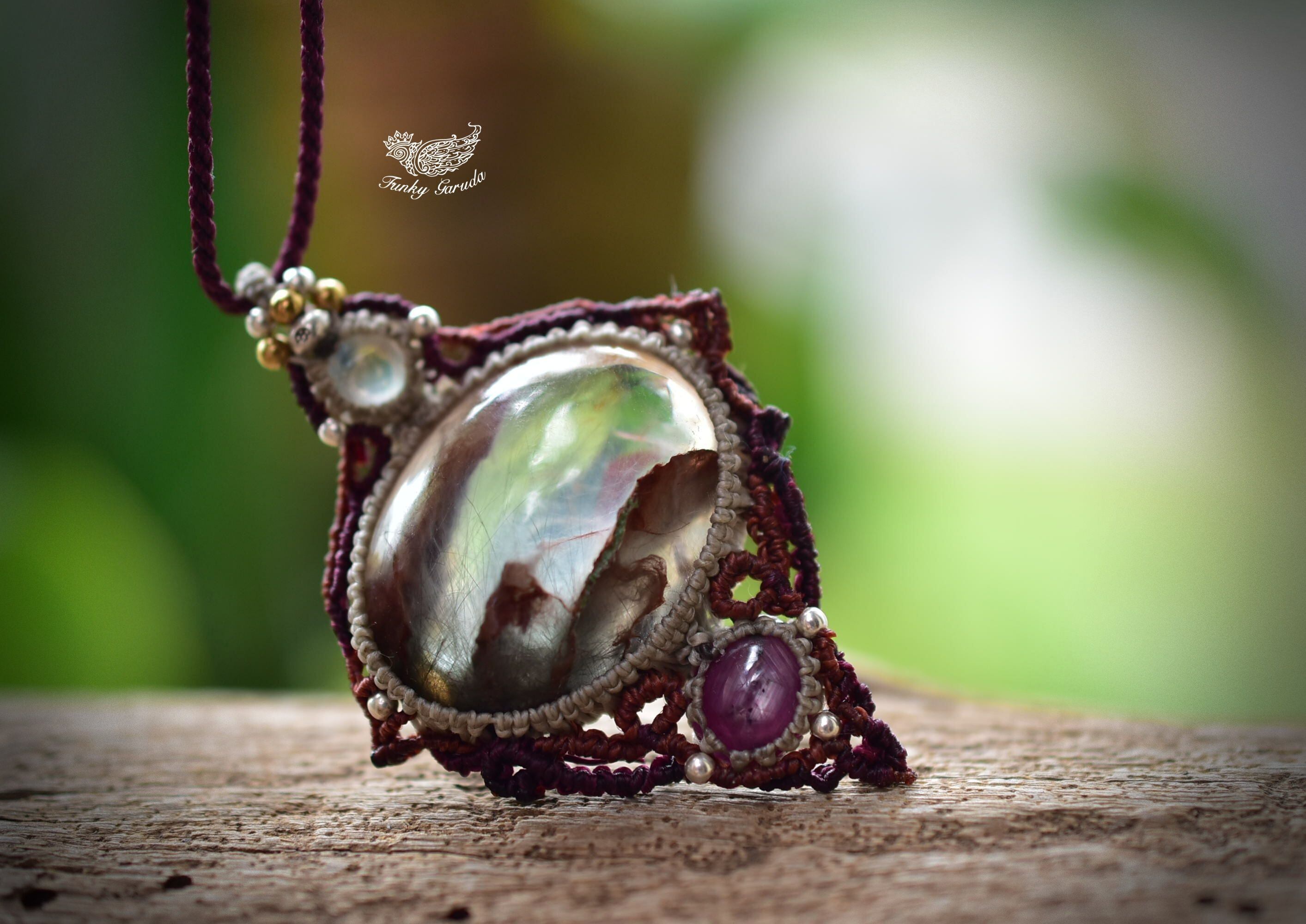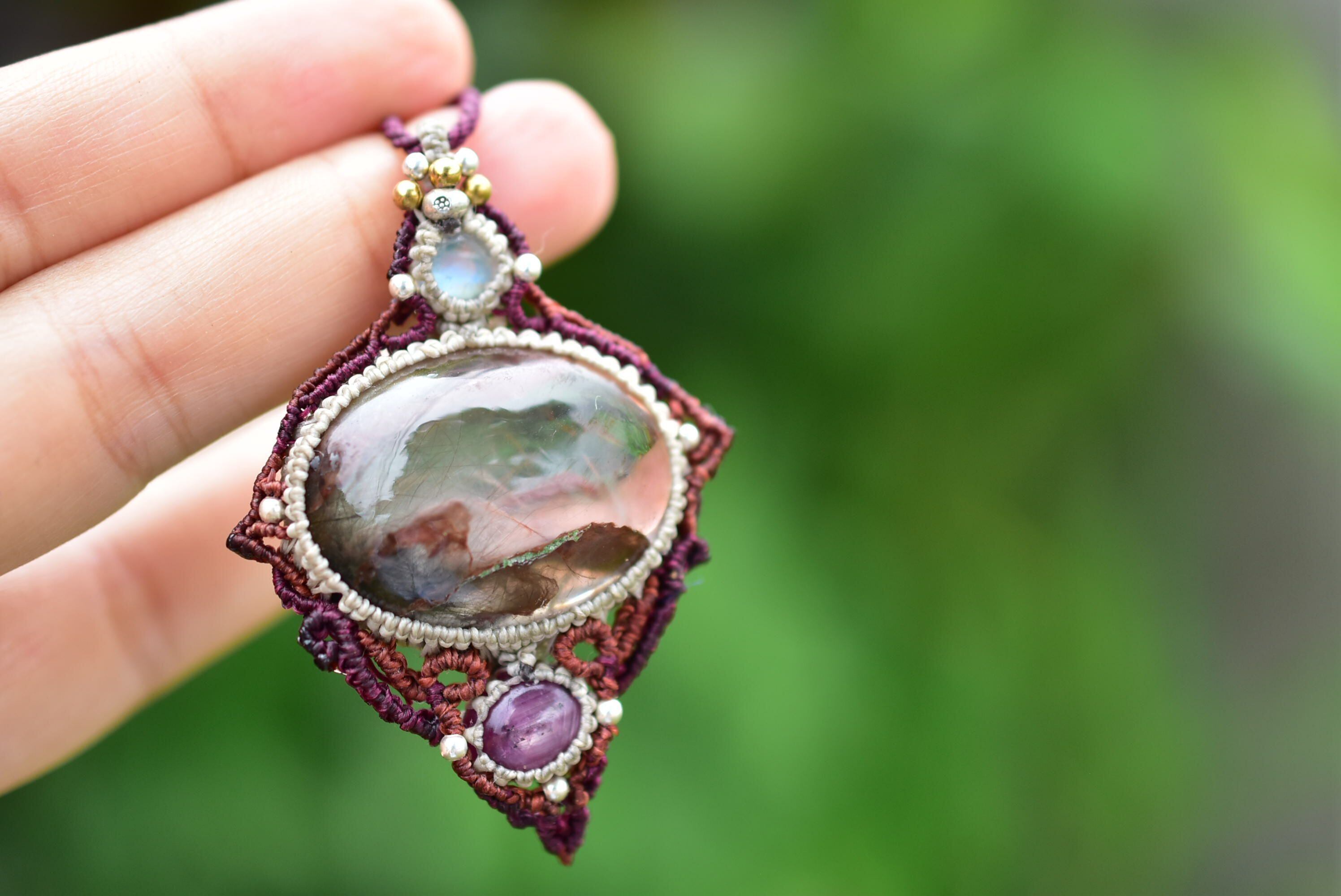 3石を大切にマクラメ編み装飾を施し、魔法が使えるかのような