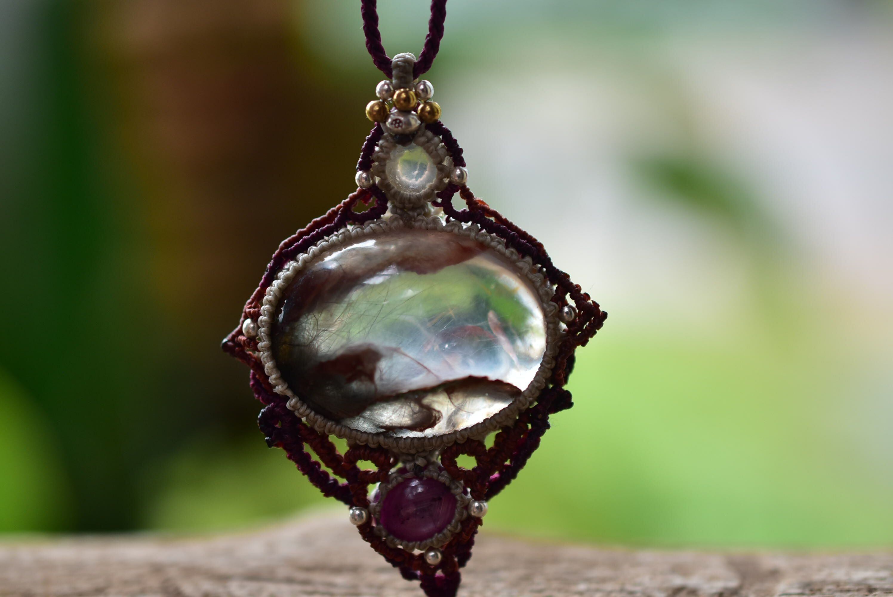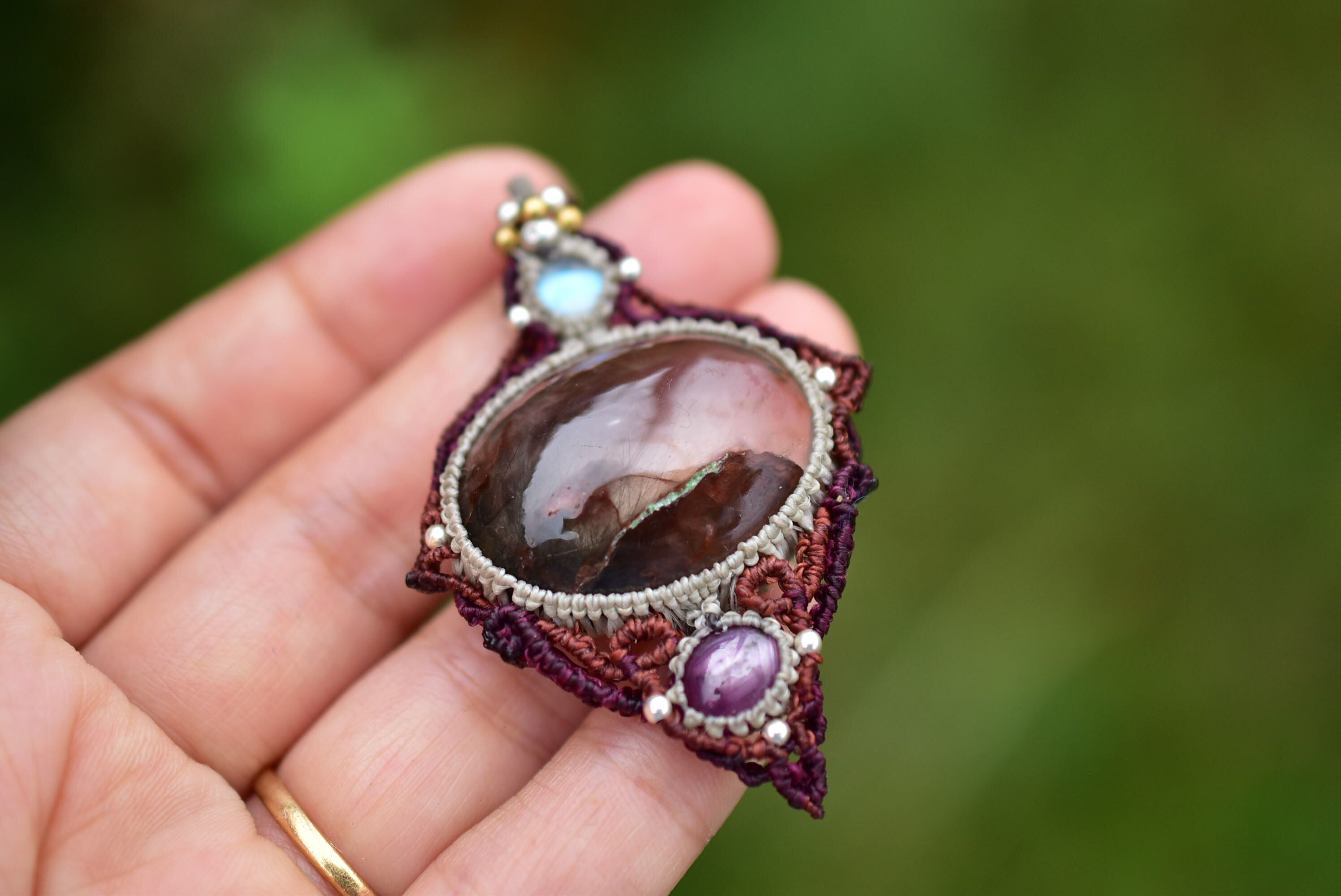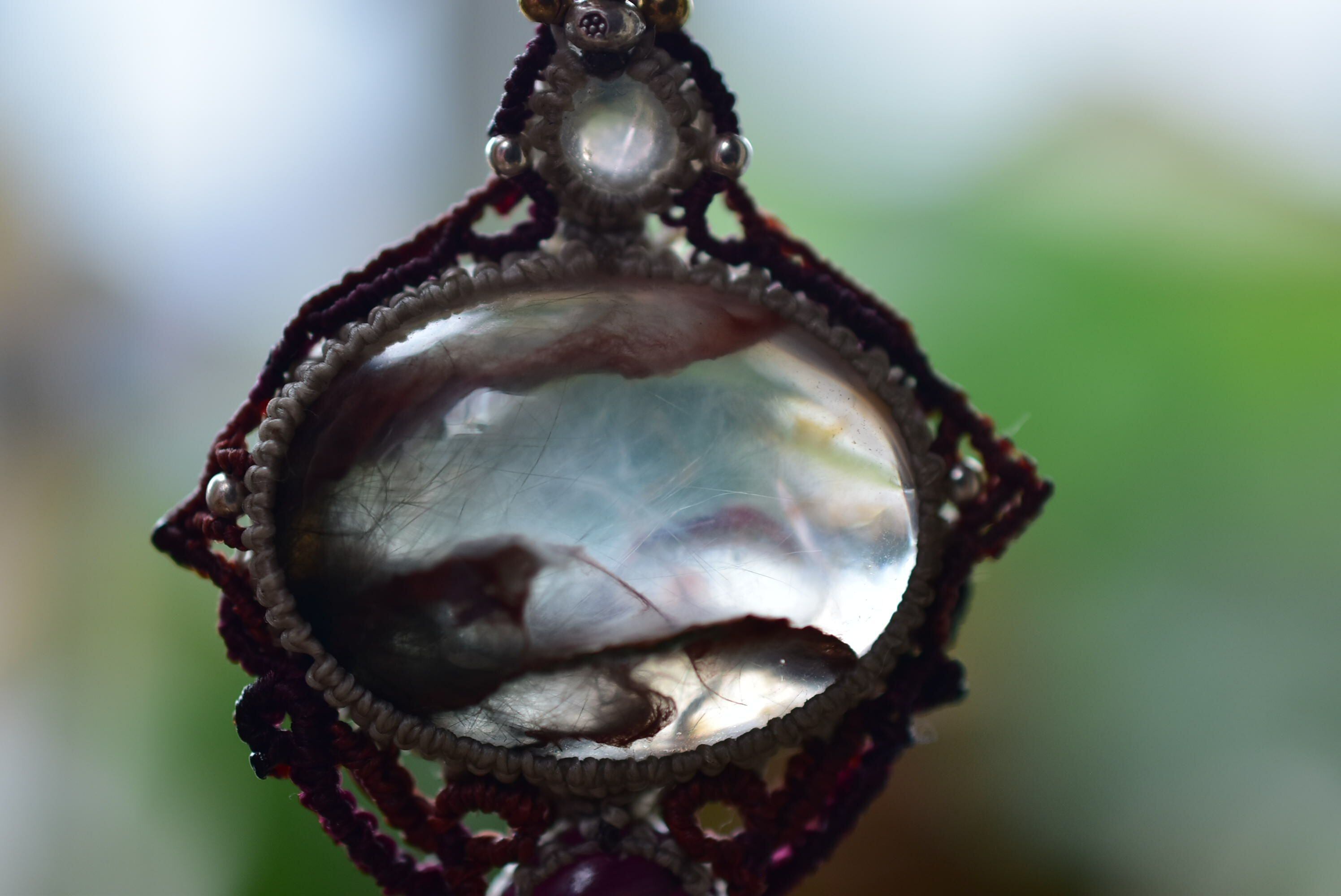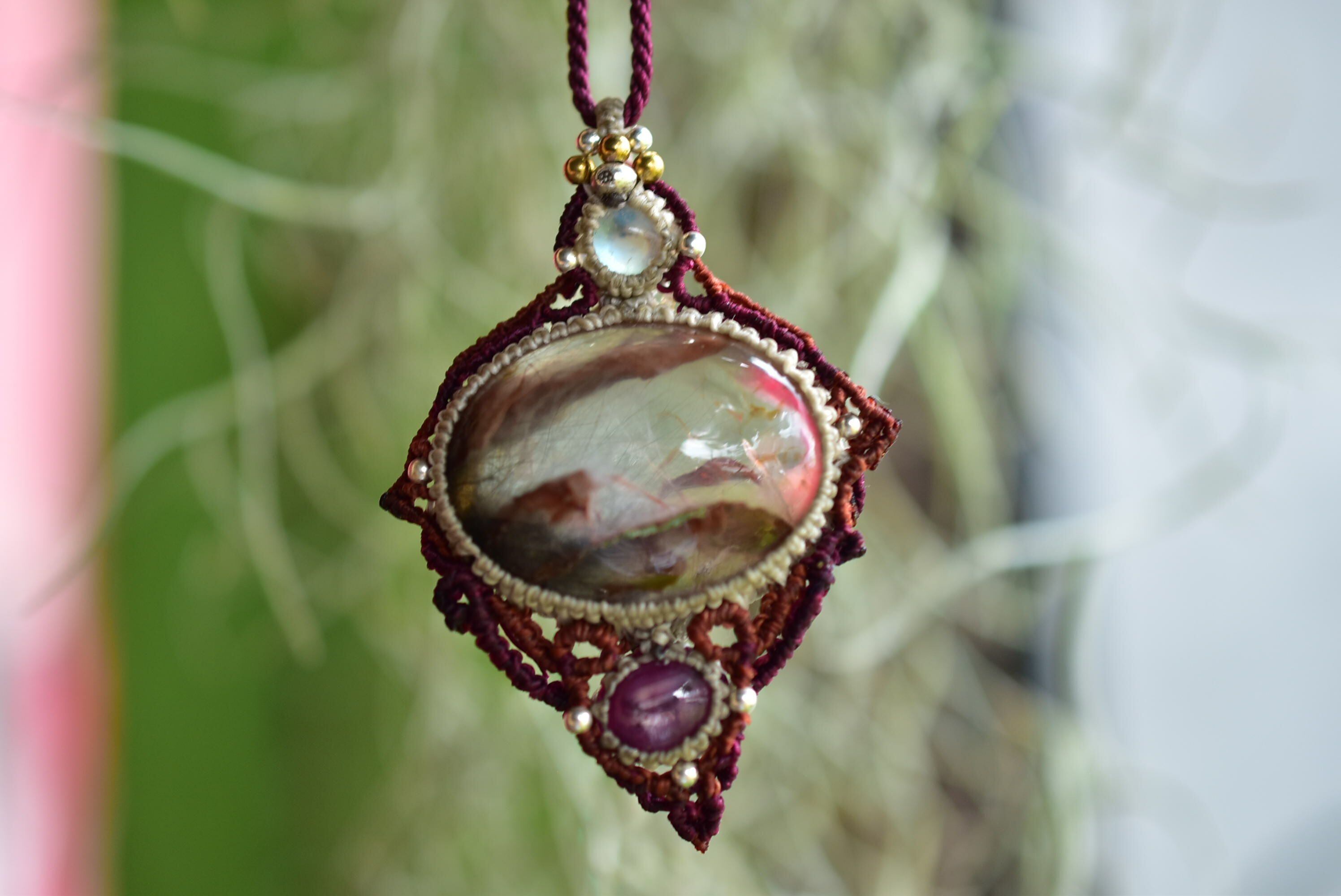 赤い世界★レア★レッドガーデンクォーツ ムーンストーン スタールビーマクラメペンダント garm136