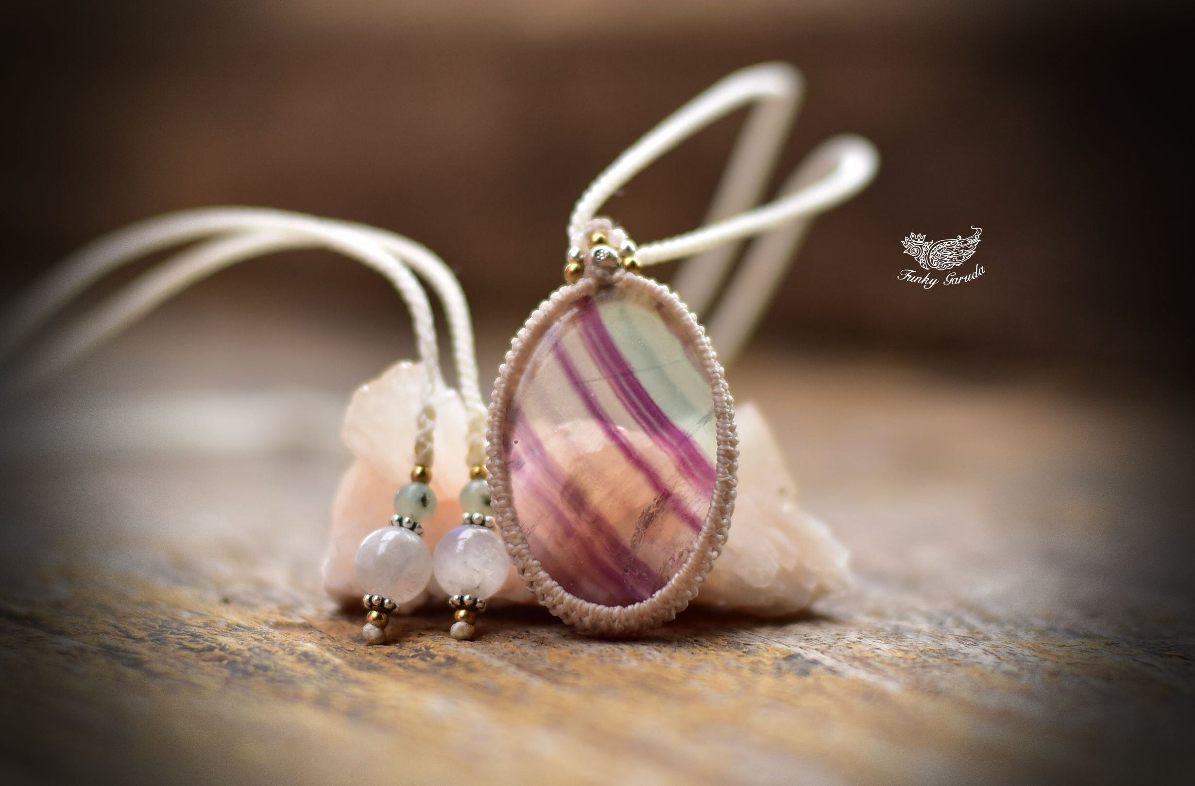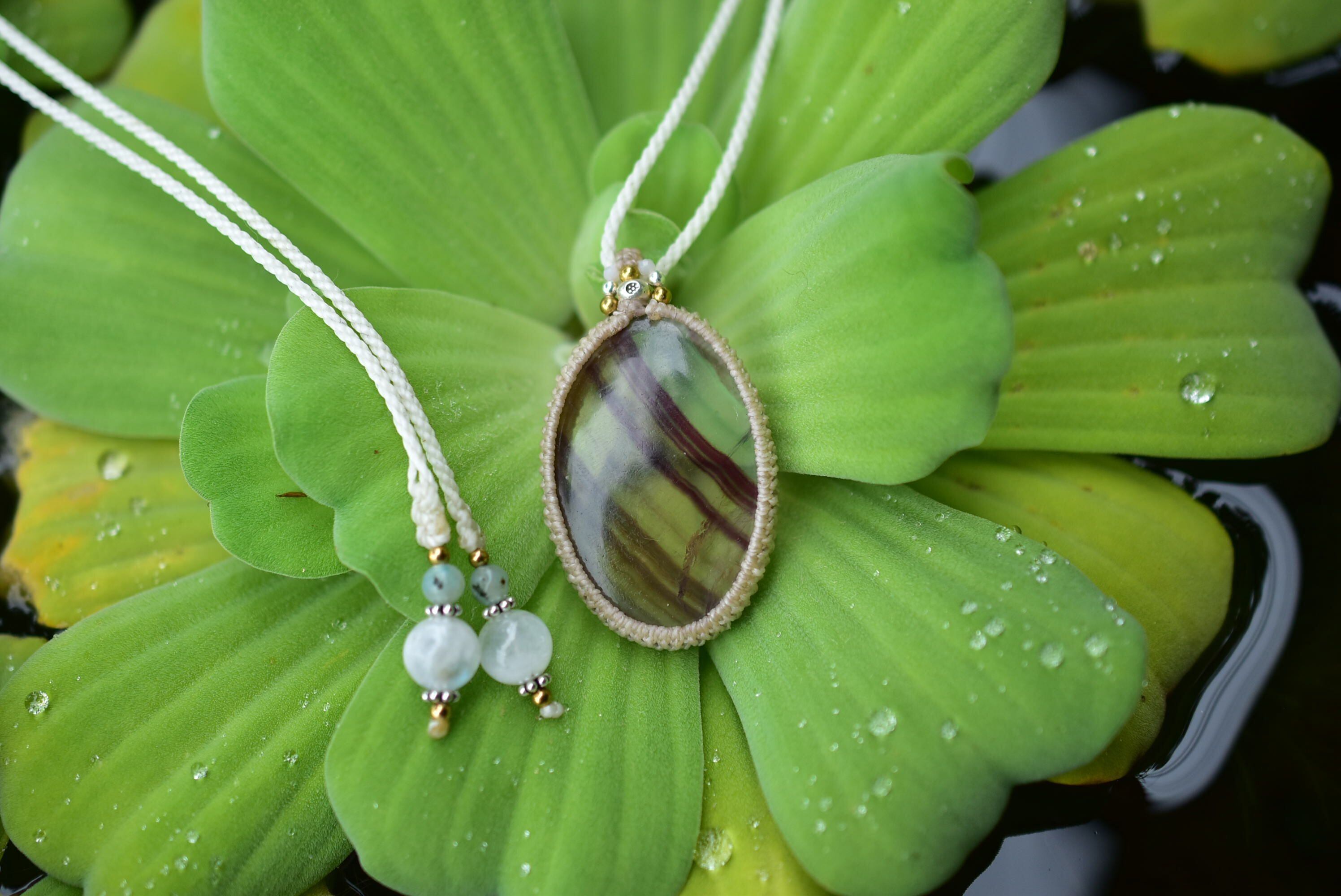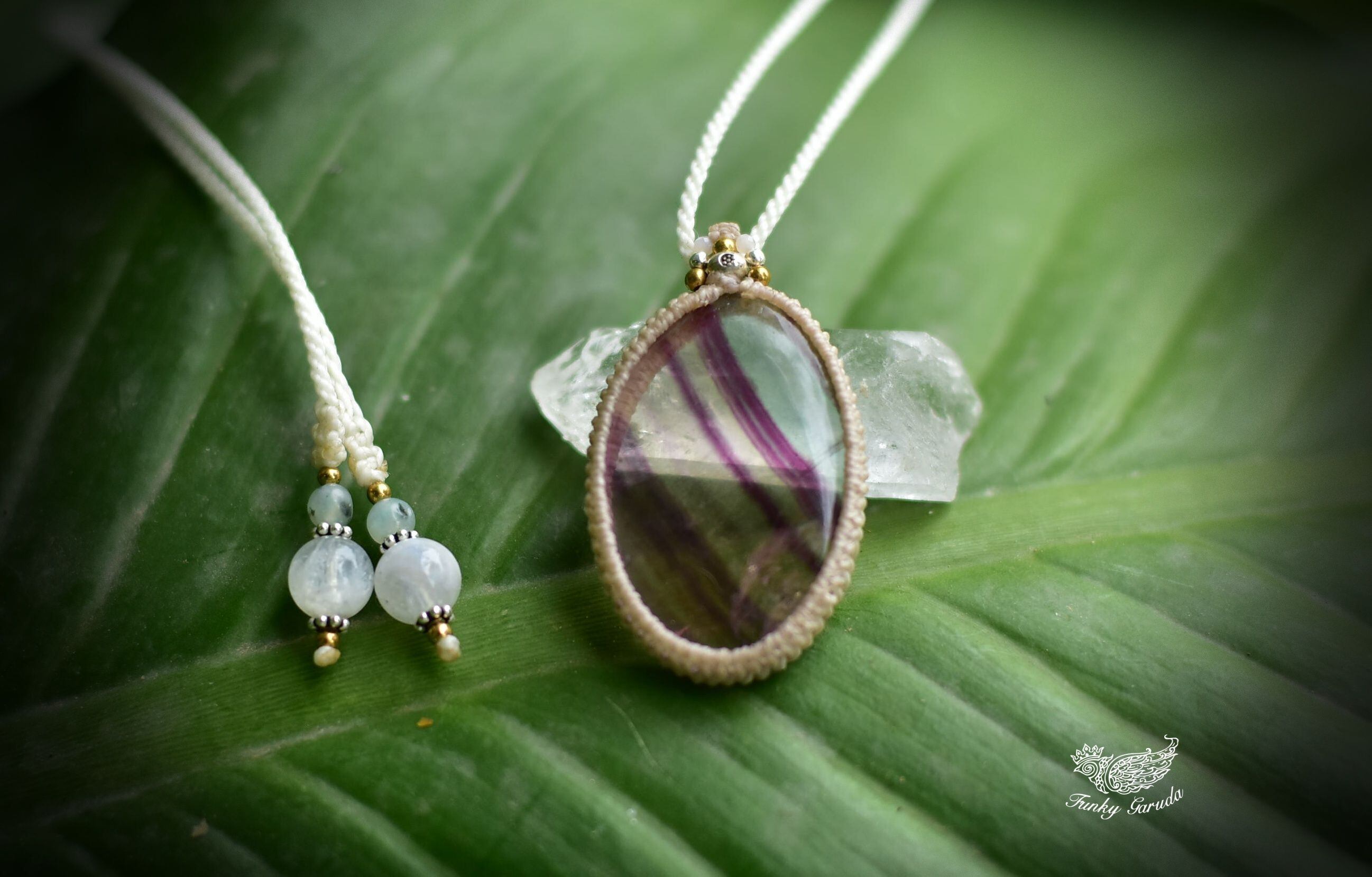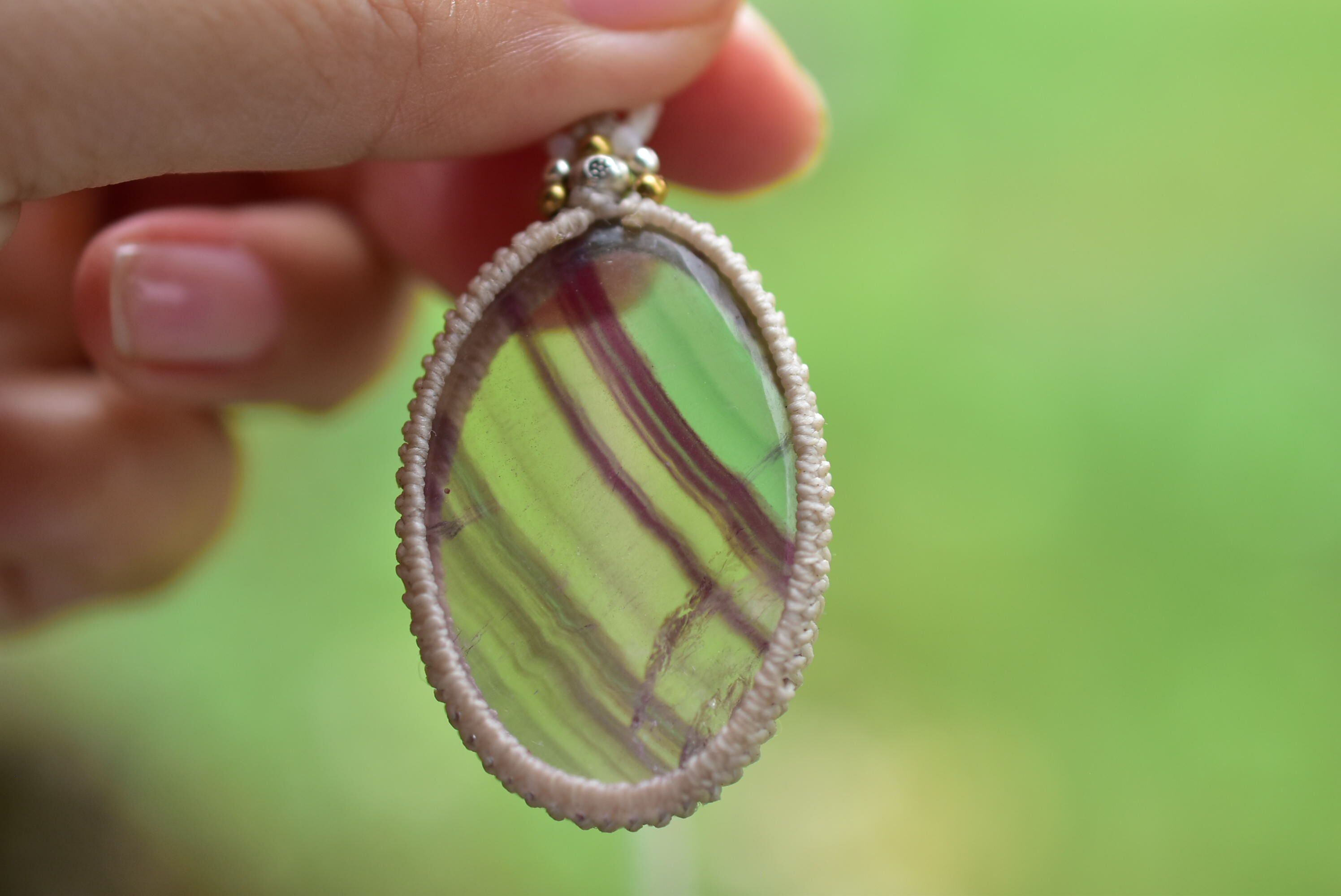虹入り★パープルライン★フローライト マクラメペンダント flo001