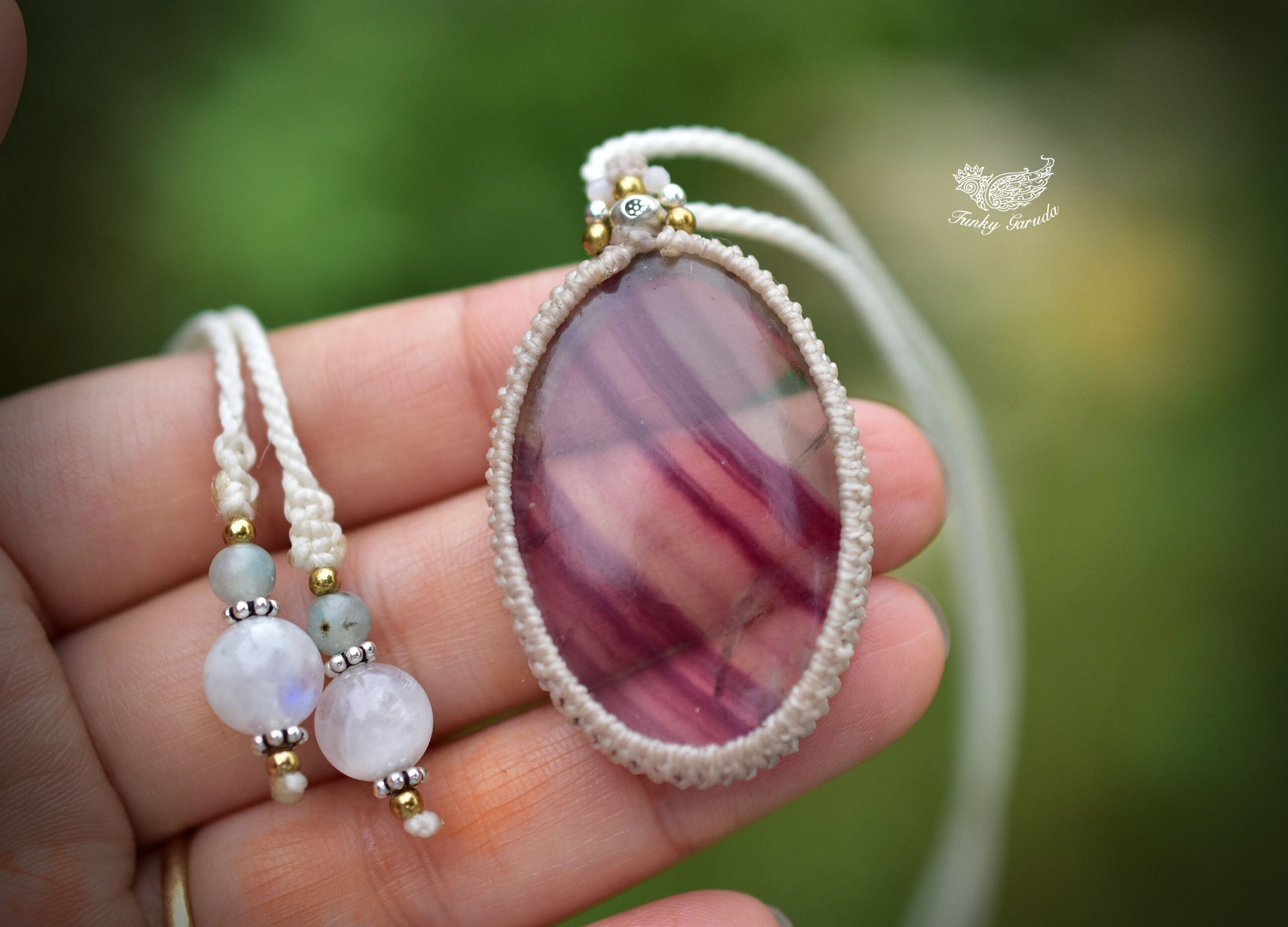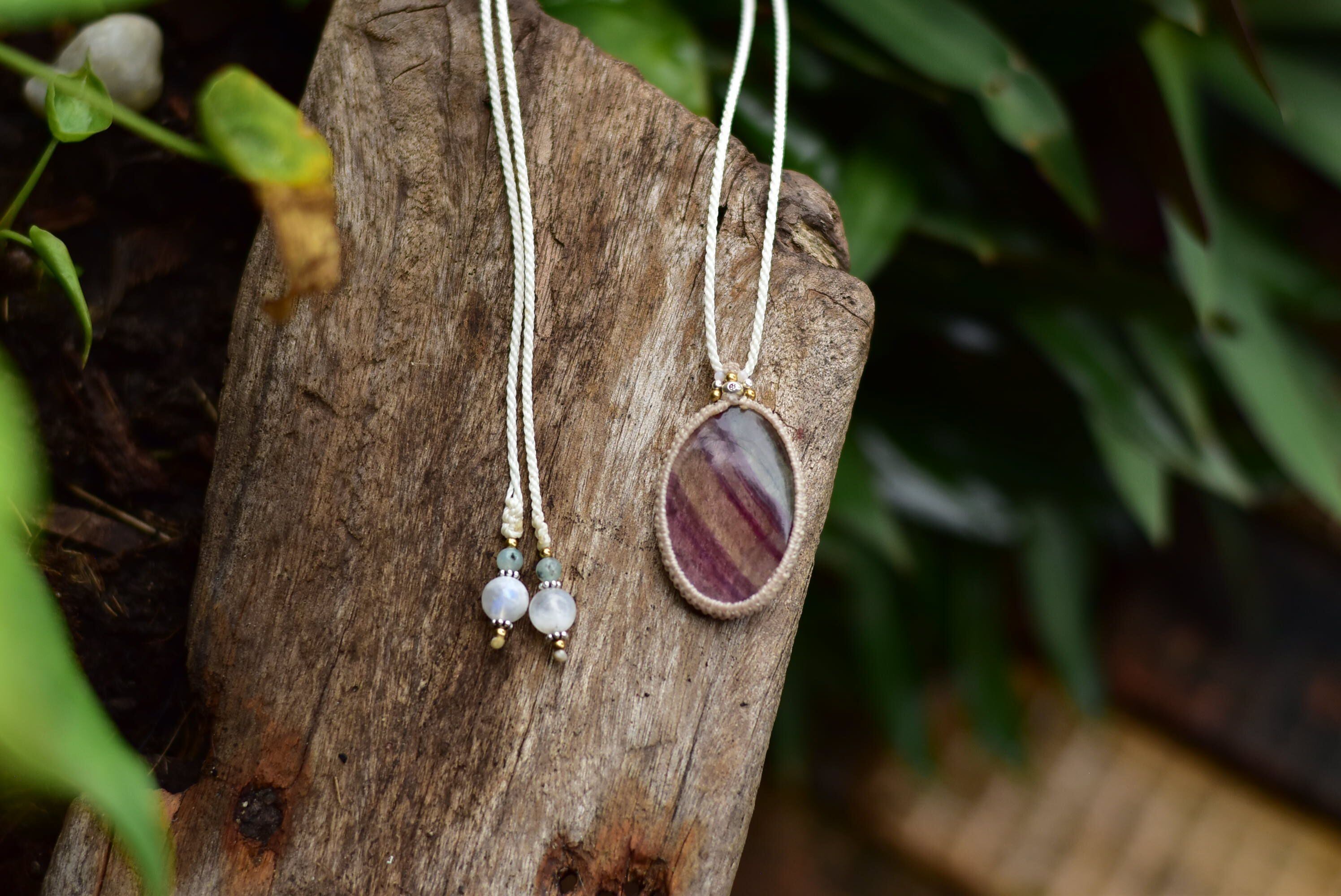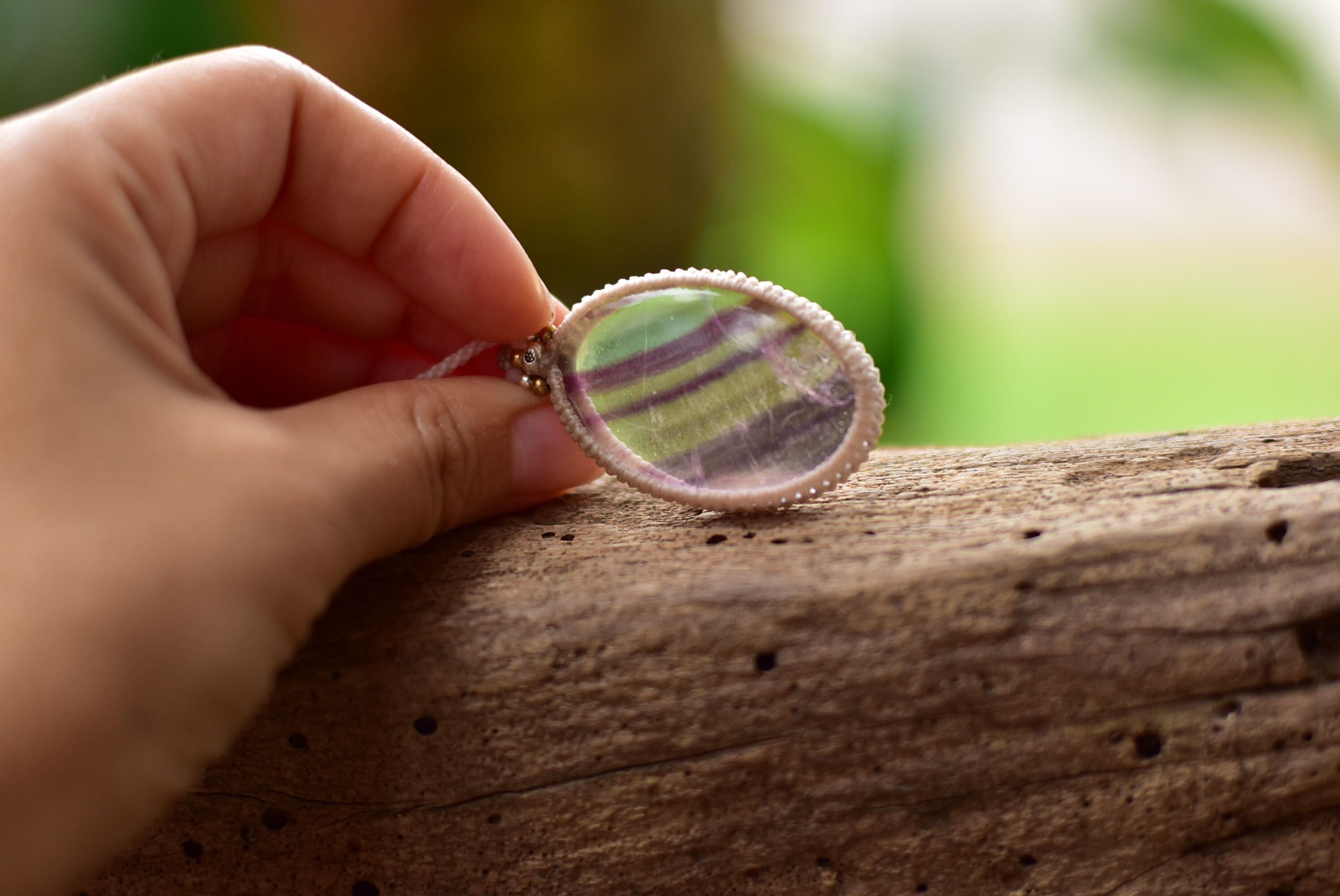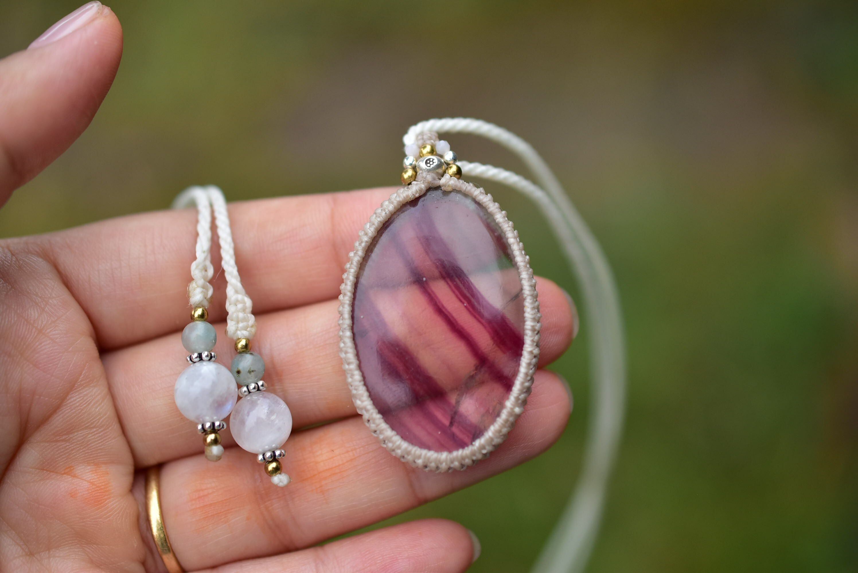 虹入り★パープルライン★フローライト マクラメペンダント flo001