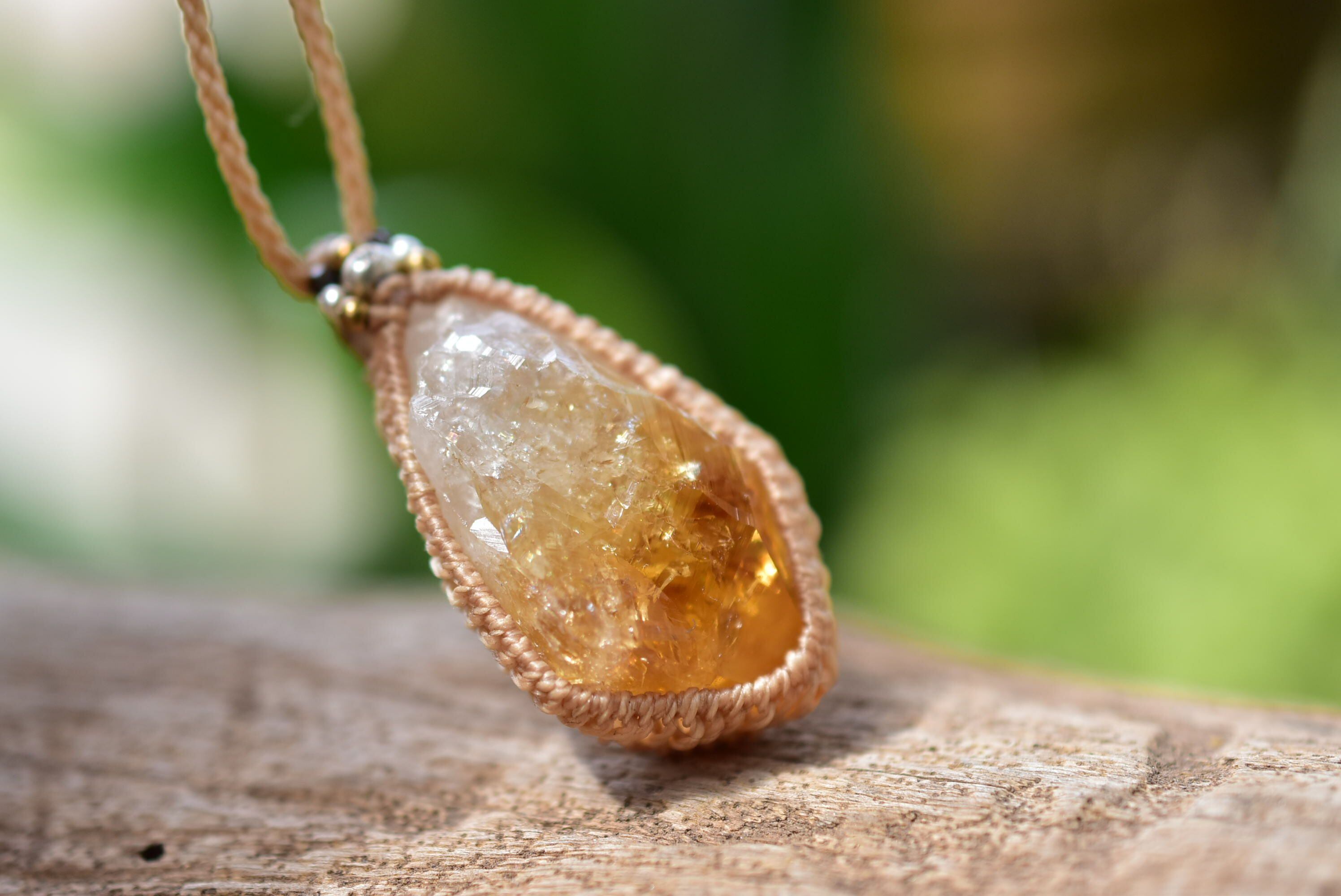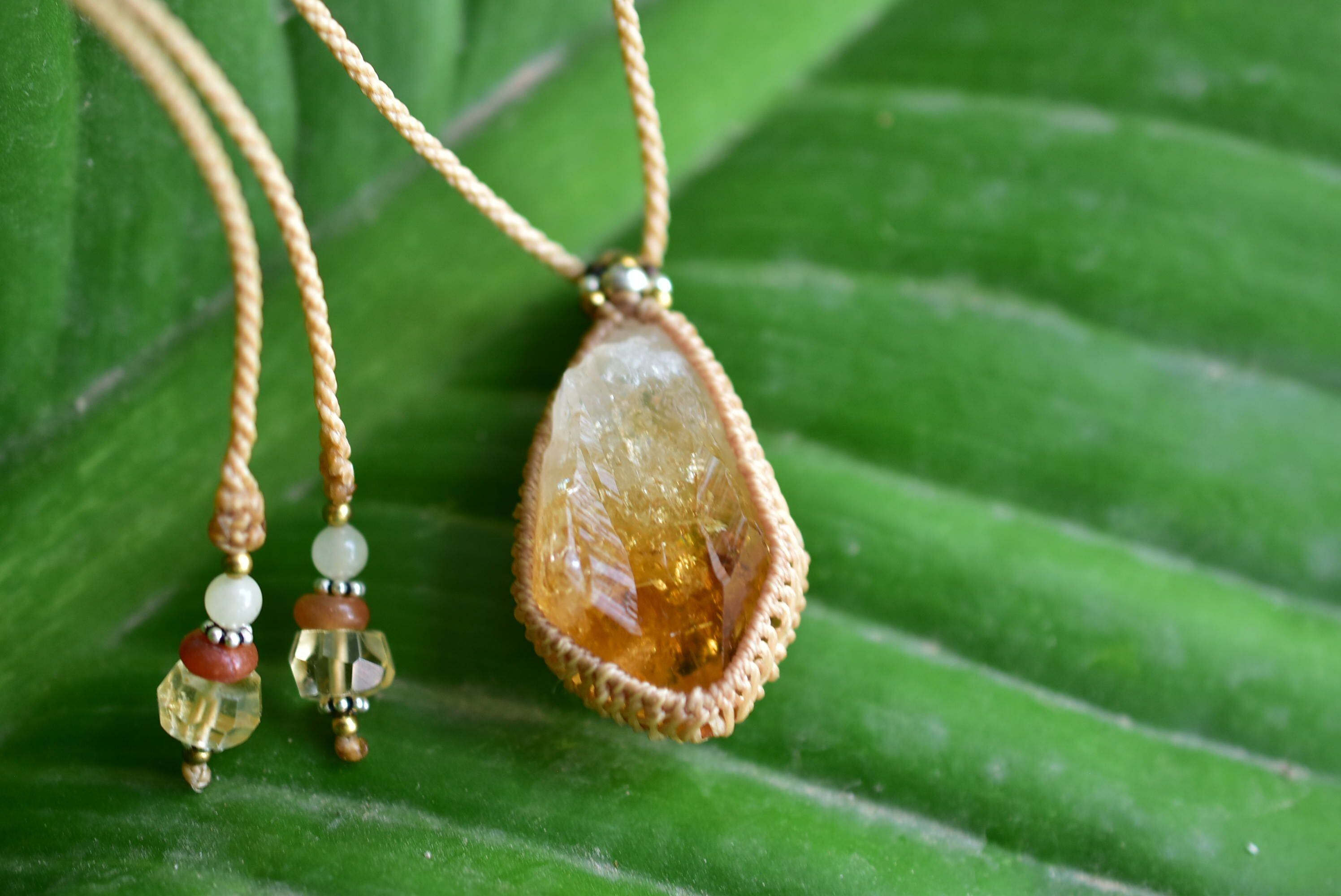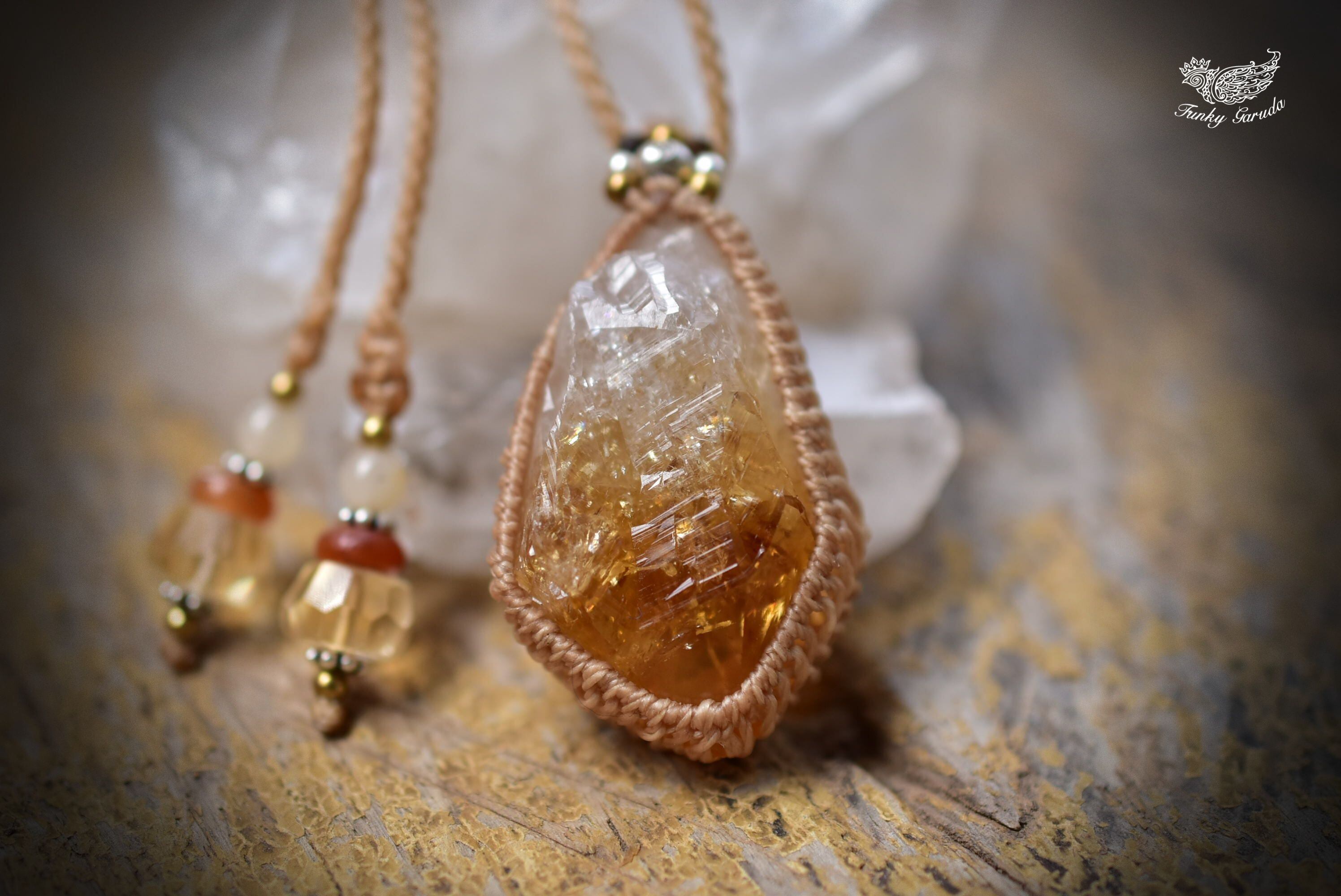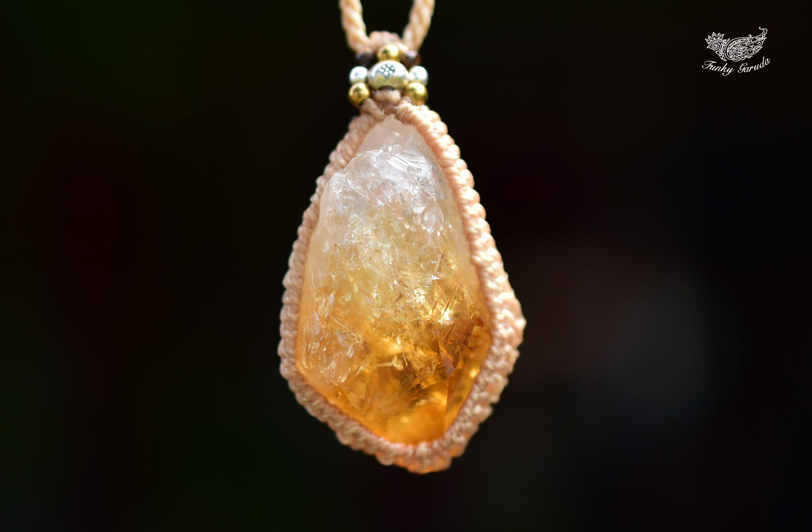 黄金グラデーション★シトリン原石 マクラメペンダント city005