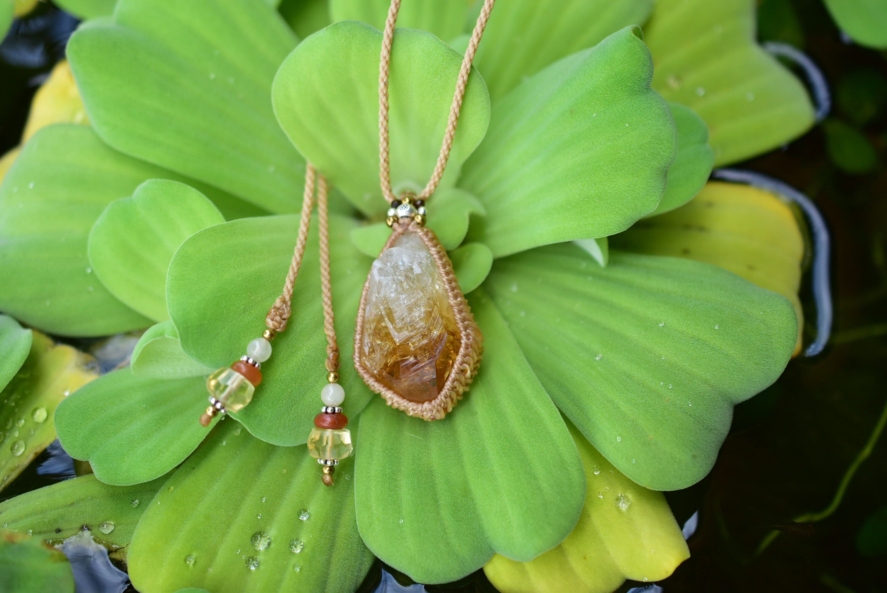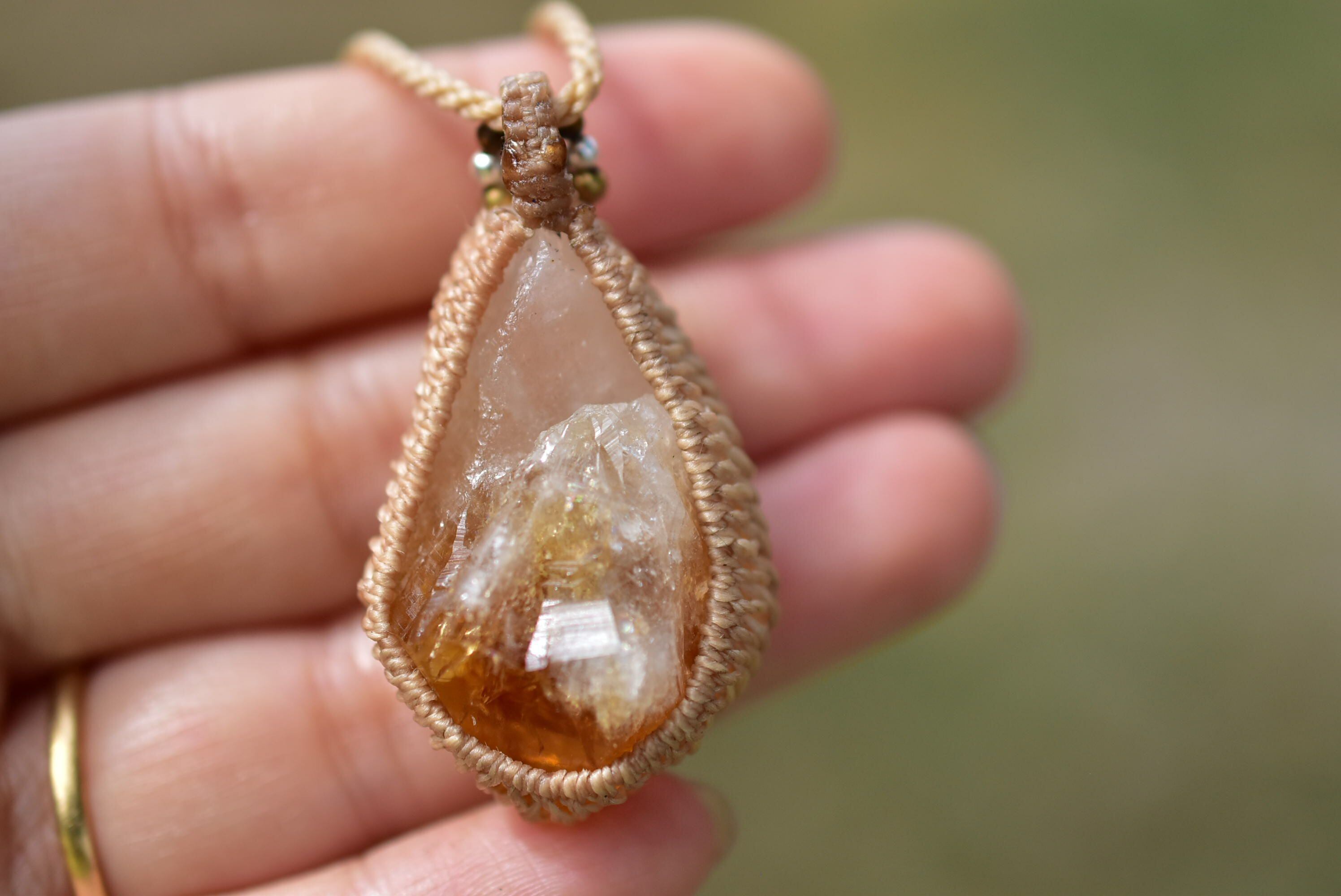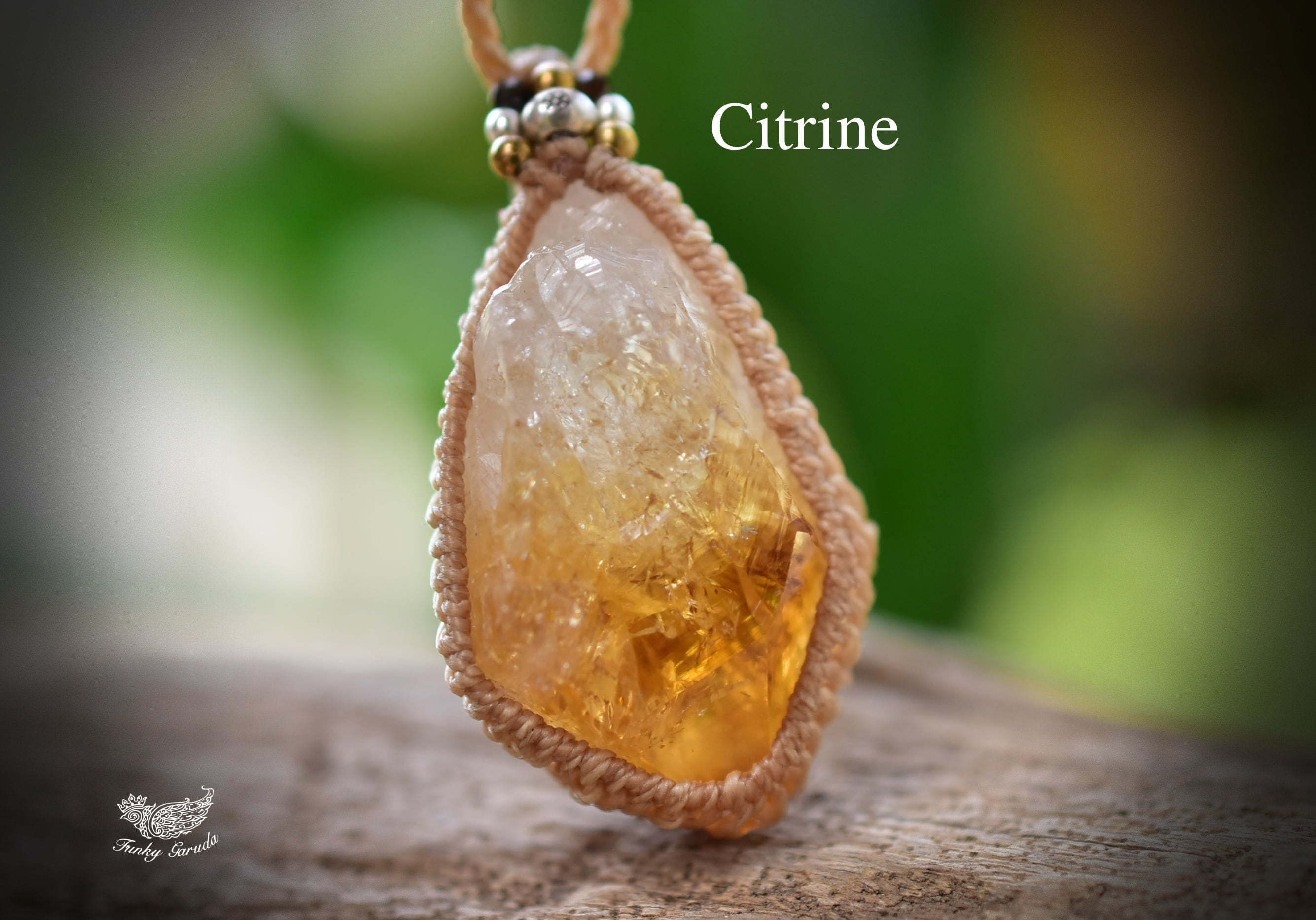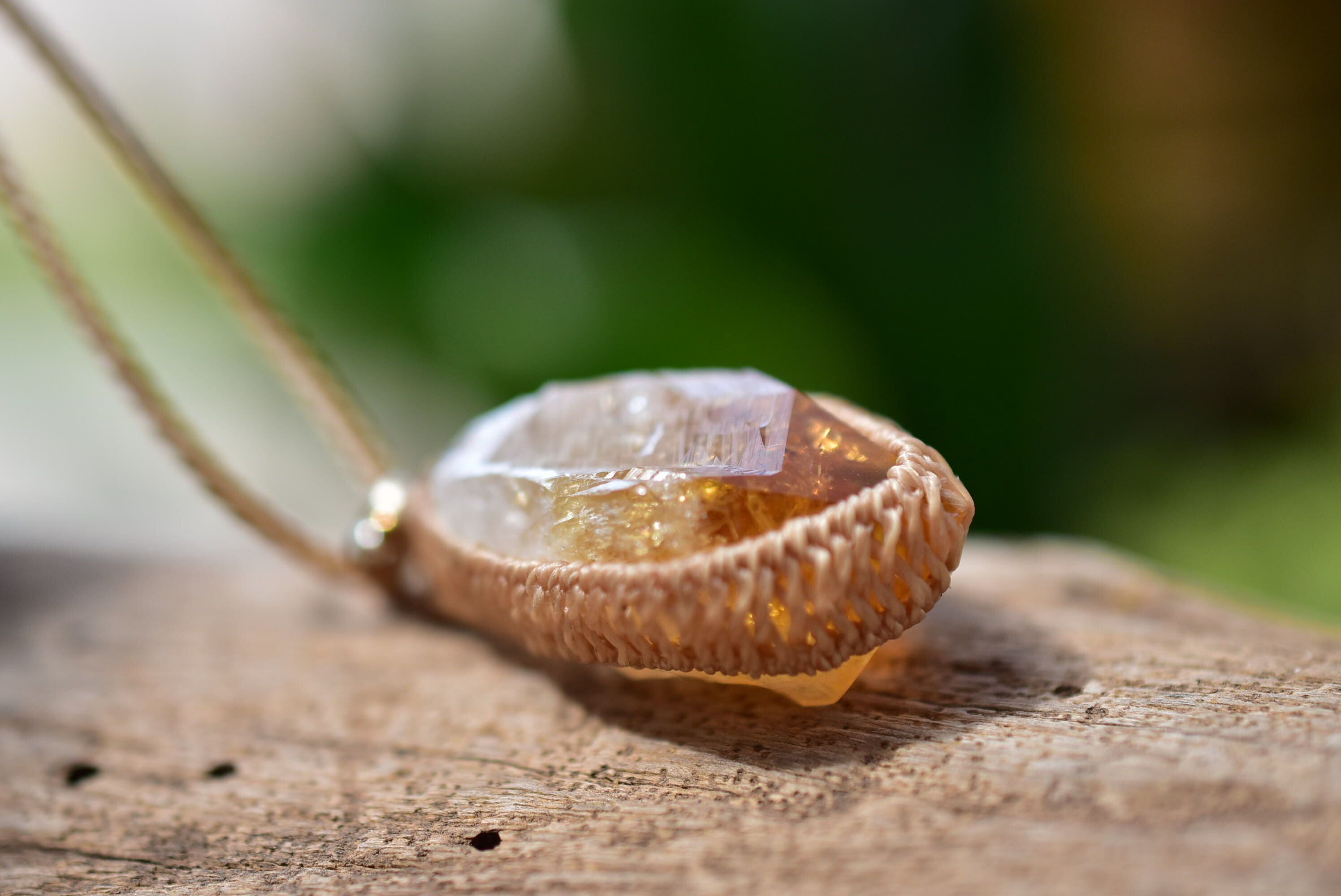黄金グラデーション★シトリン原石 マクラメペンダント city005