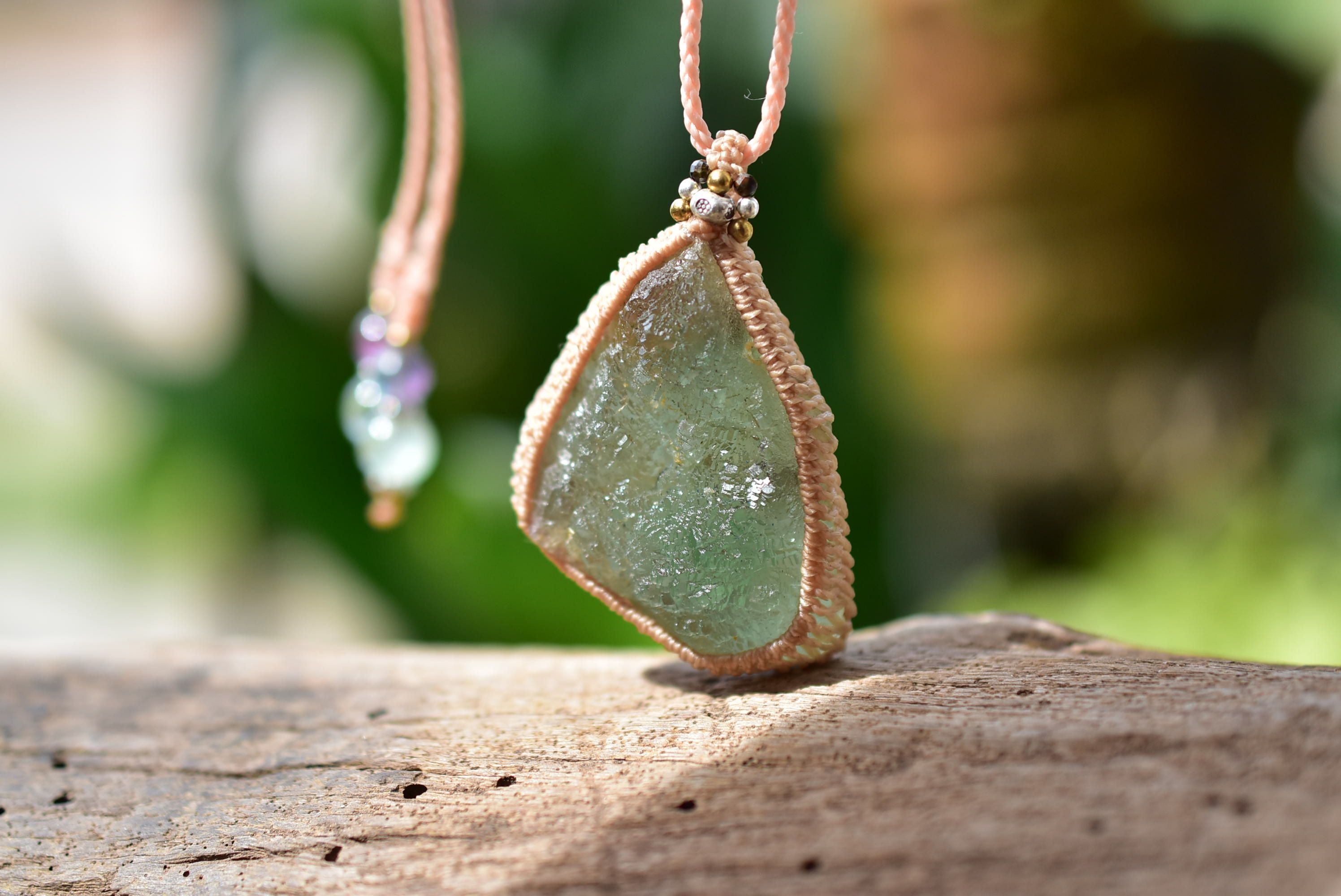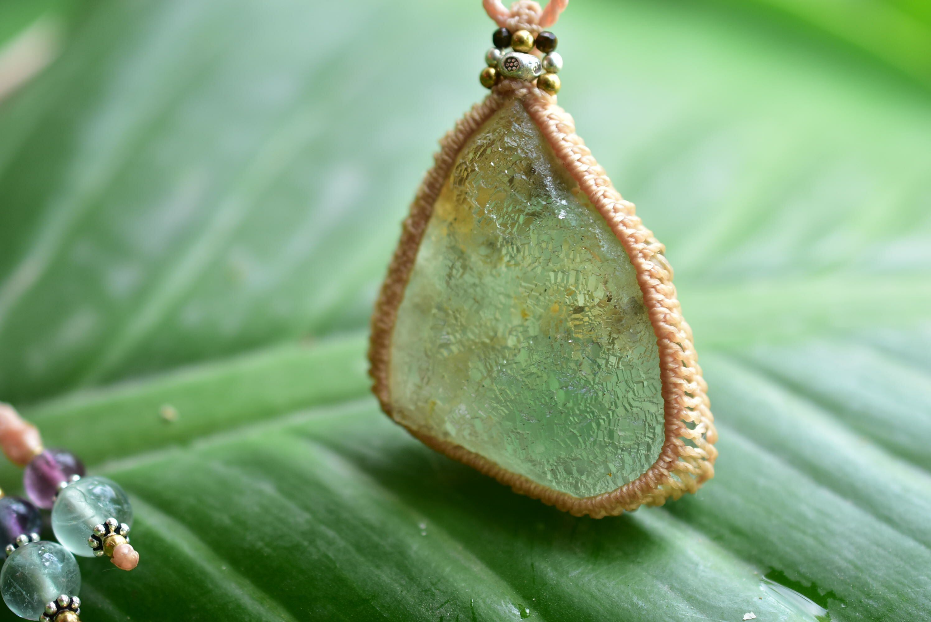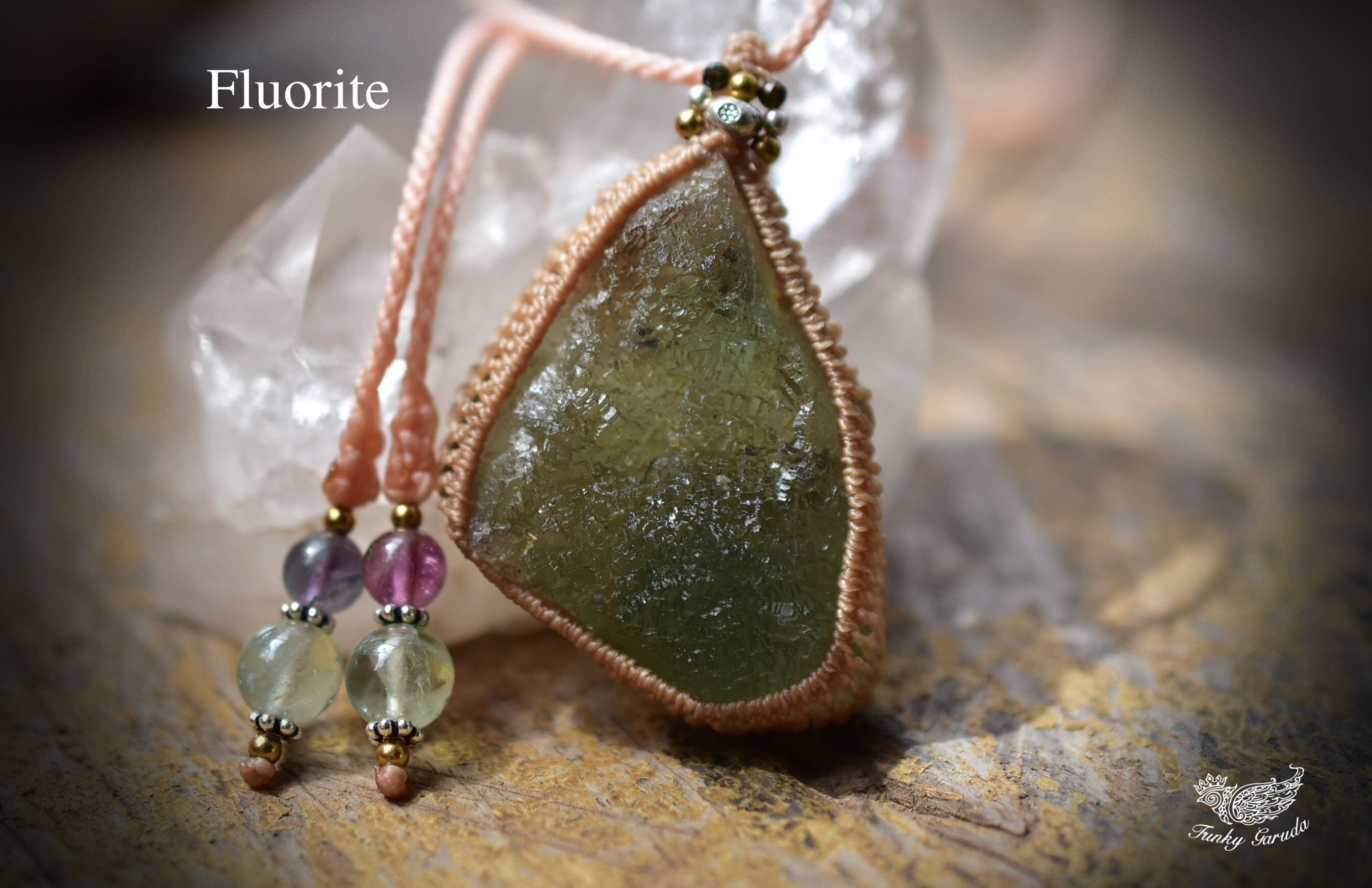 柔らかな空気★フローライト原石 マクラメペンダント floy001