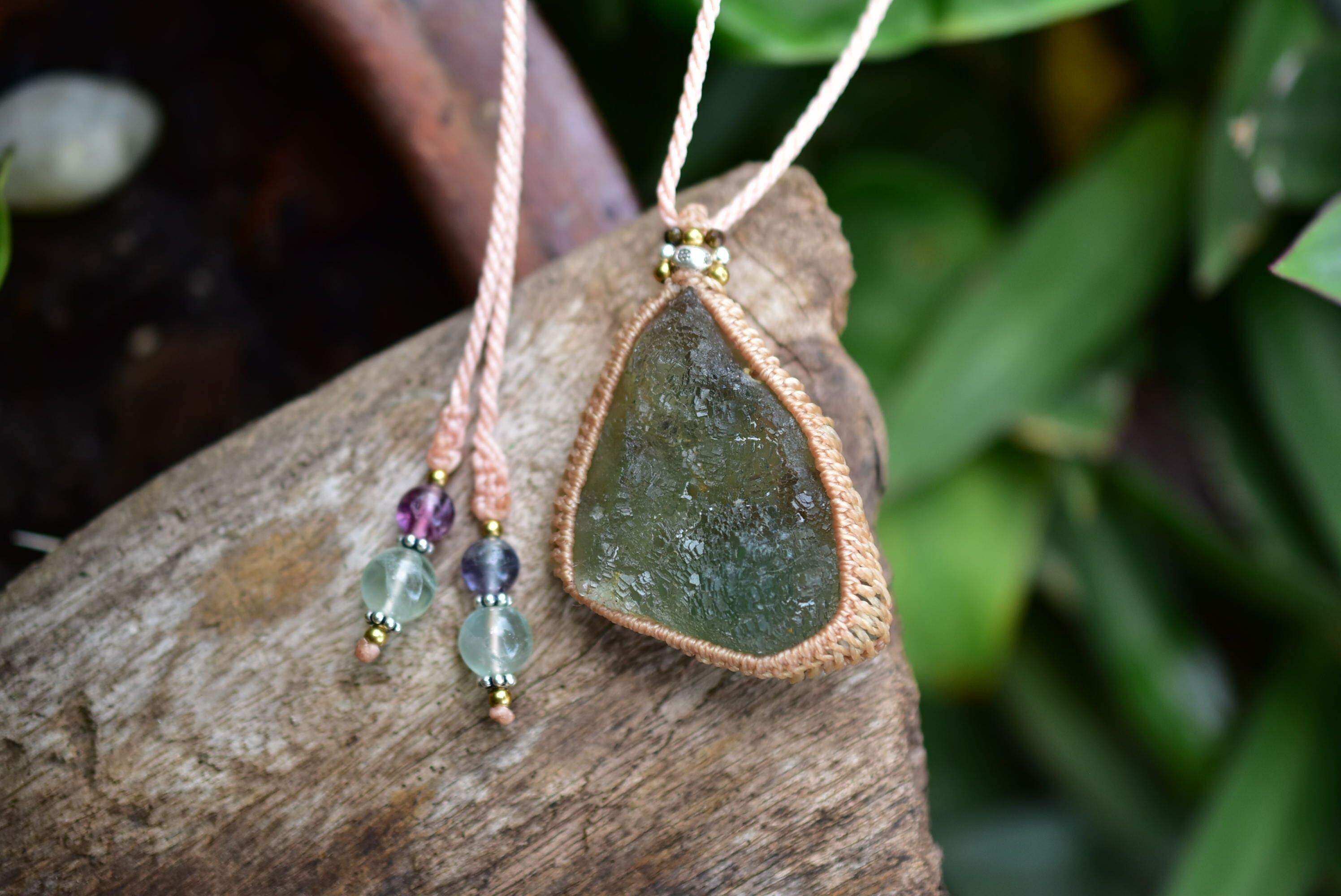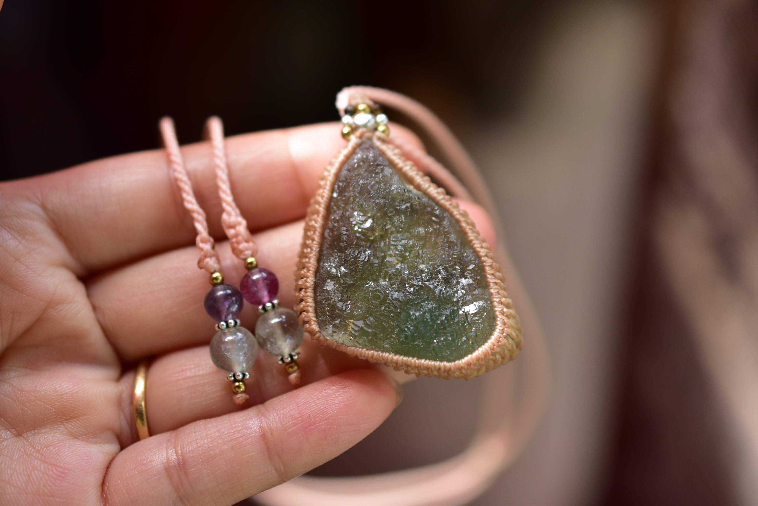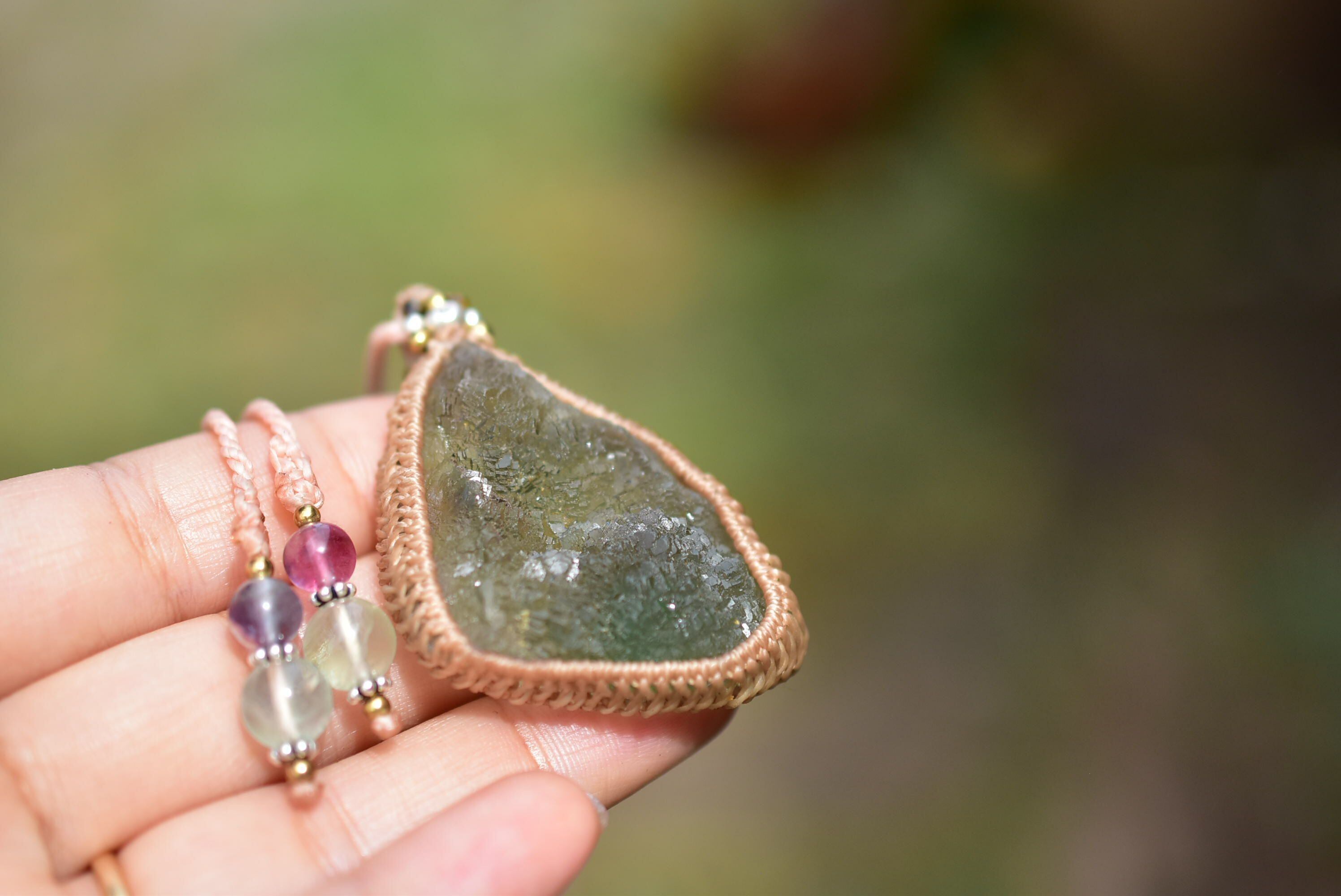 柔らかな空気★フローライト原石 マクラメペンダント floy001