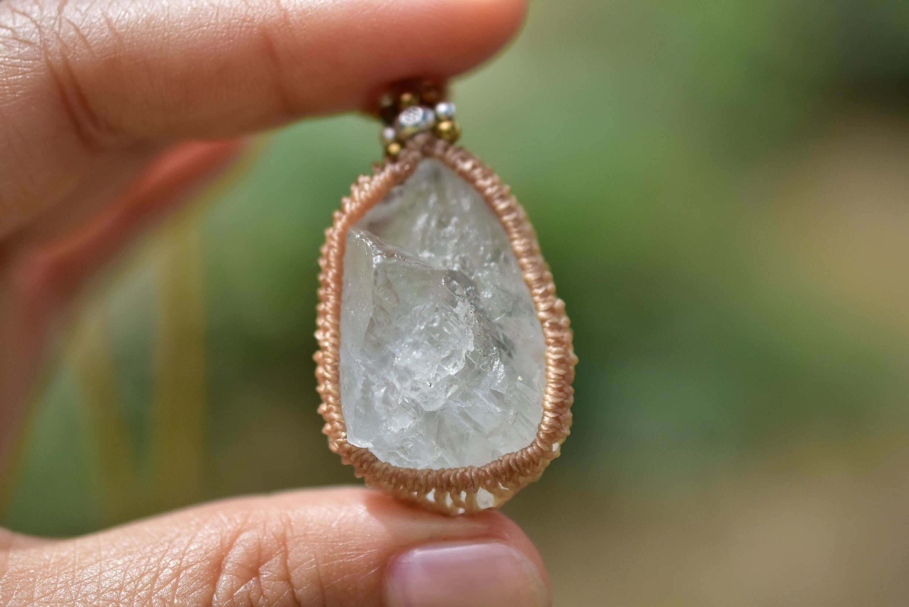 水滴の輝き★アクアマリン原石 マクラメペンダント aquy004