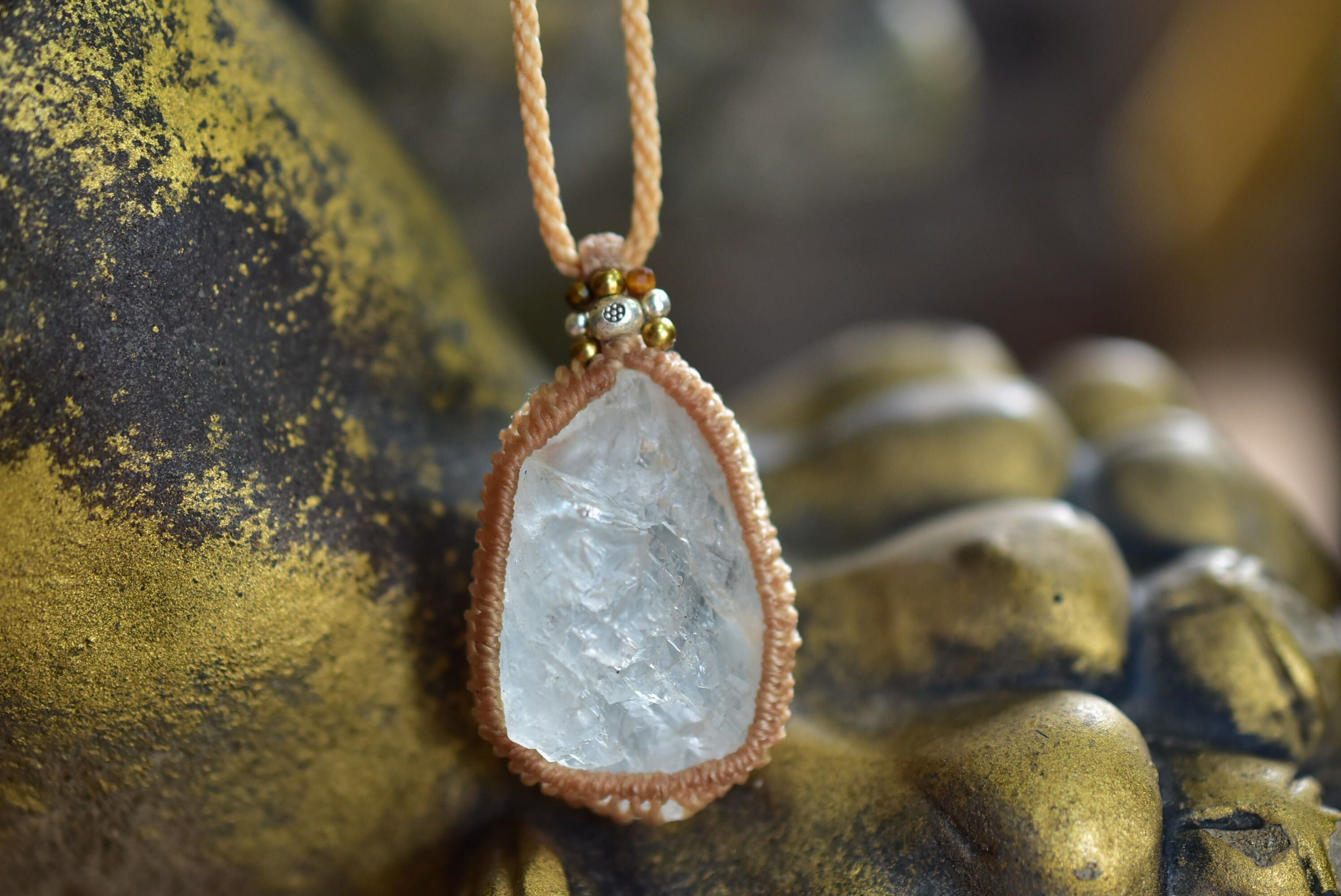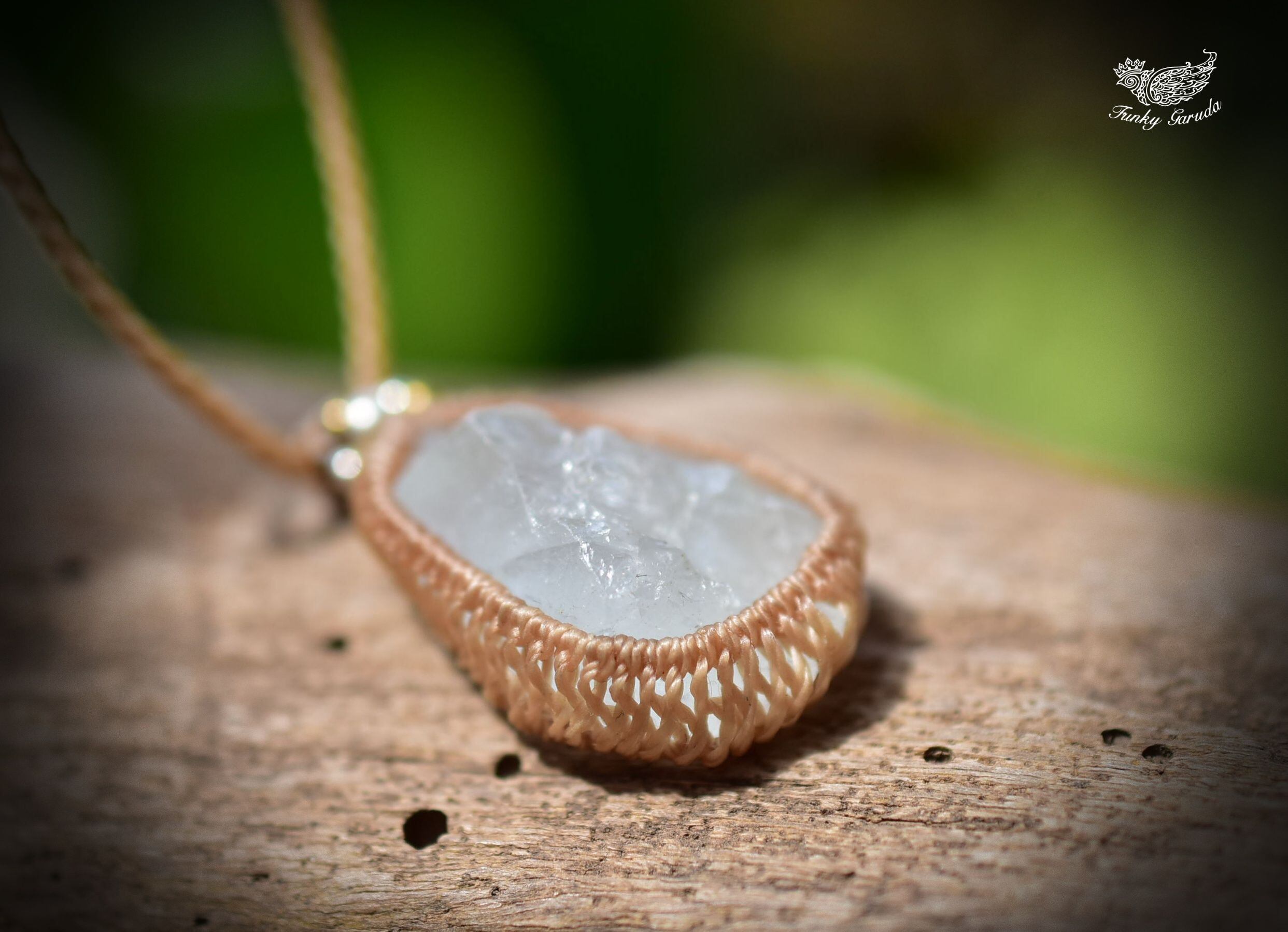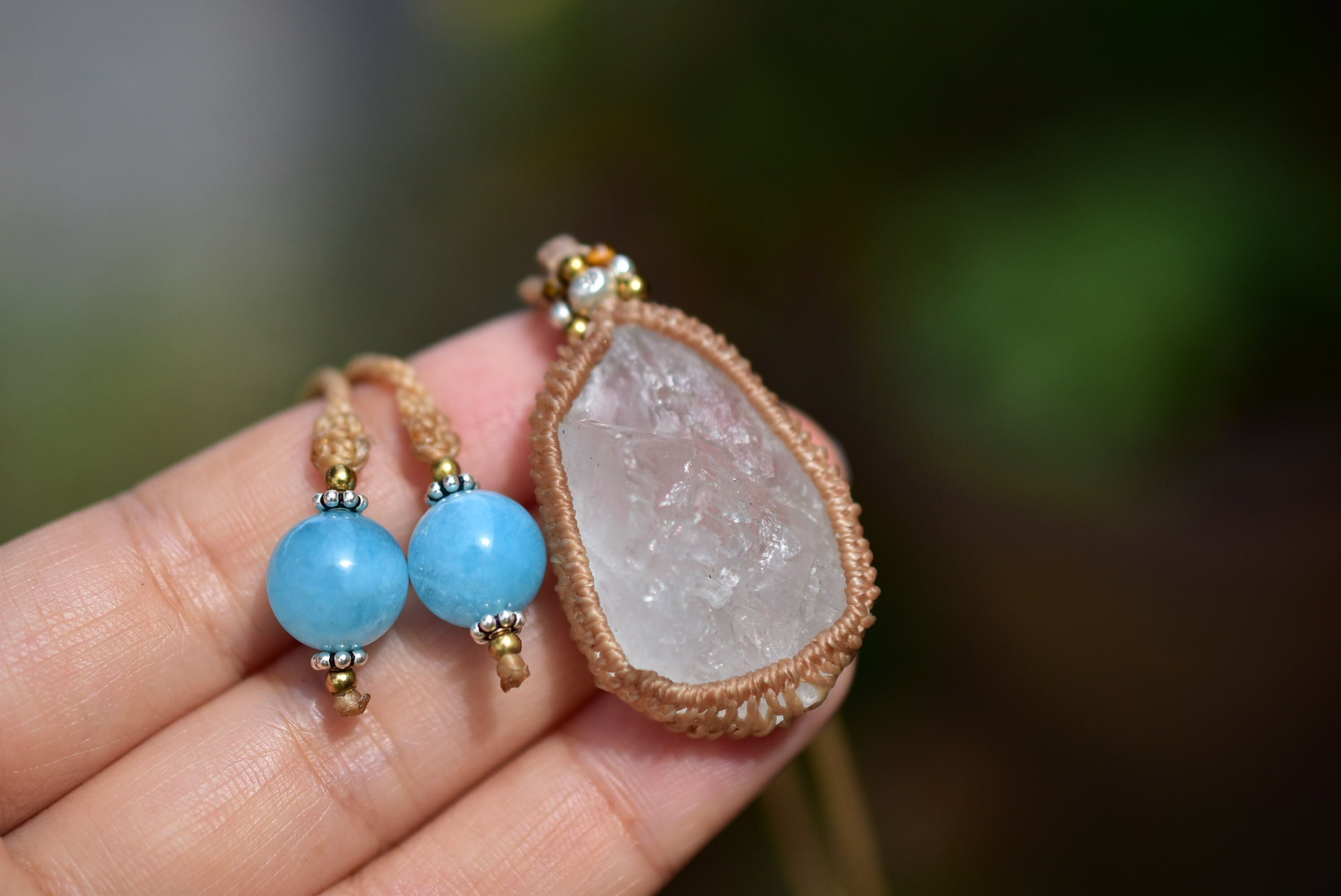 ナチュラルな魅力溢れるアクアマリン原石を、シンプルなマクラメ編みにて仕上げました。