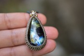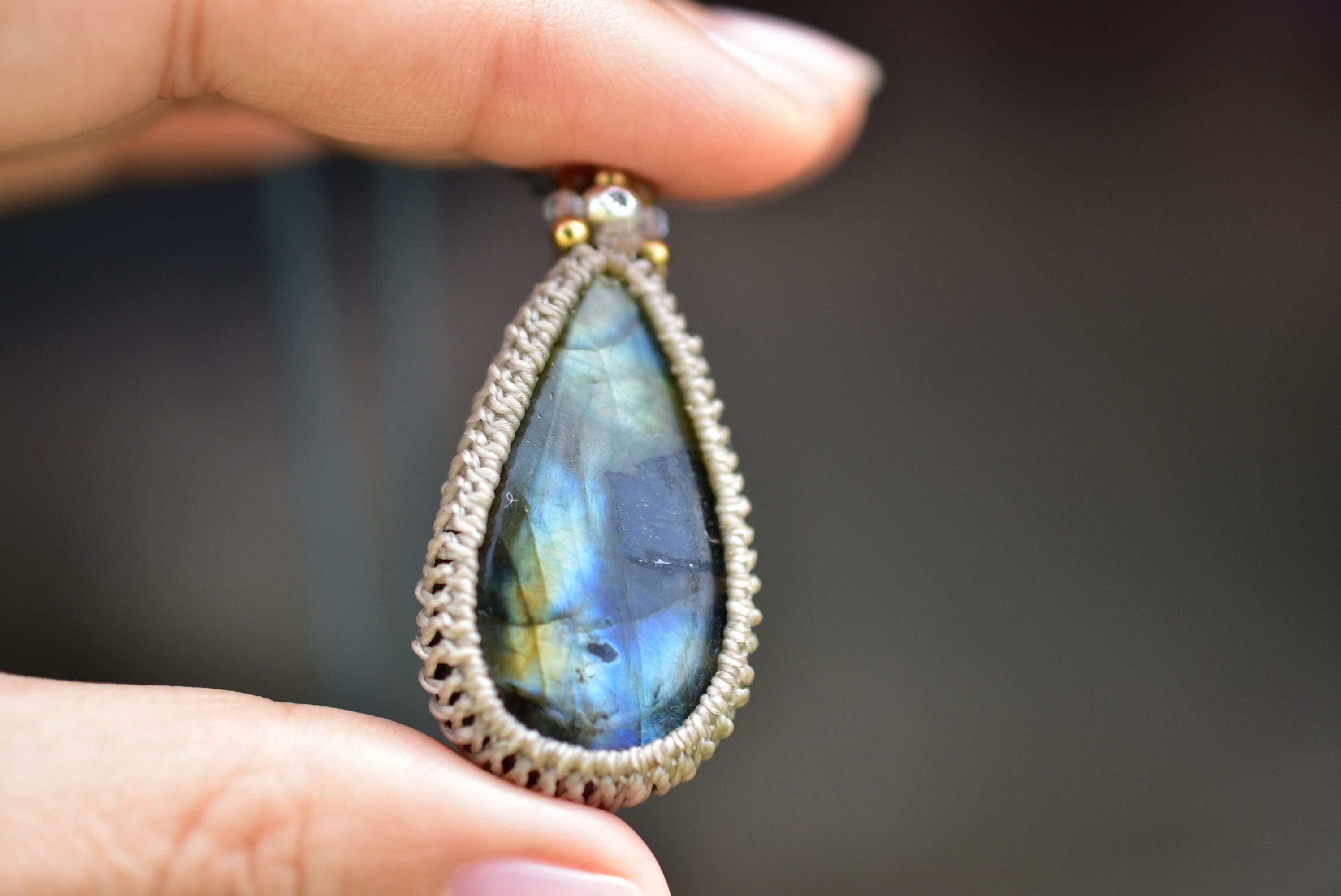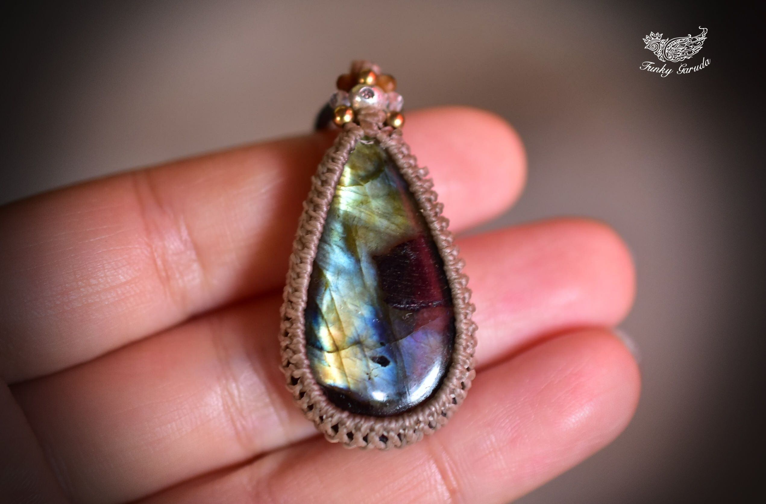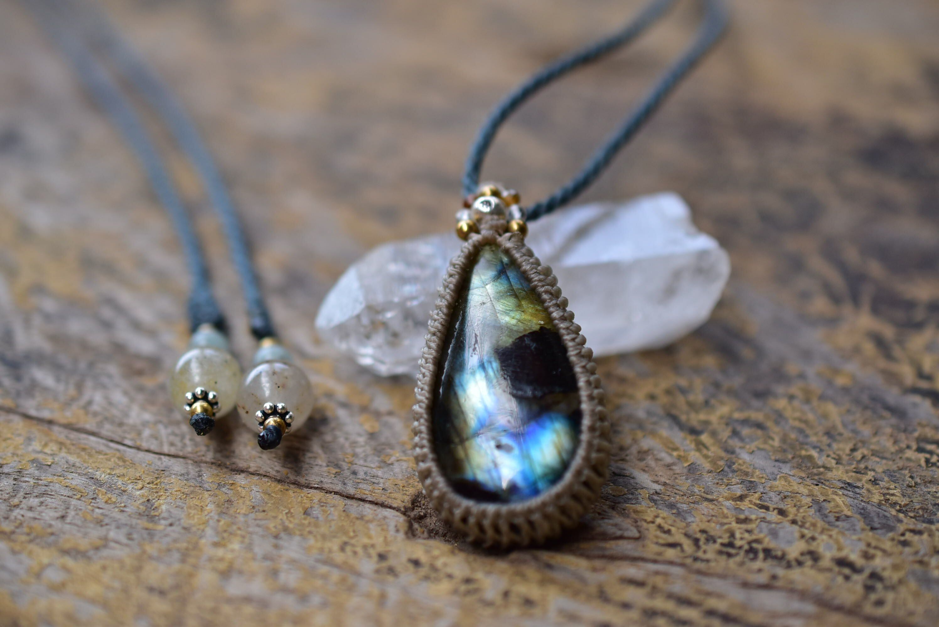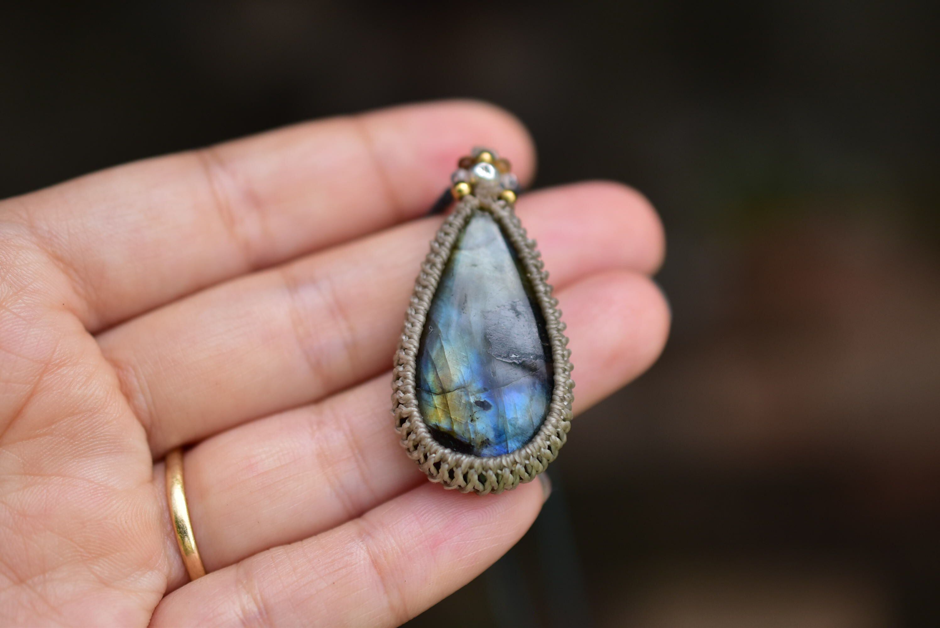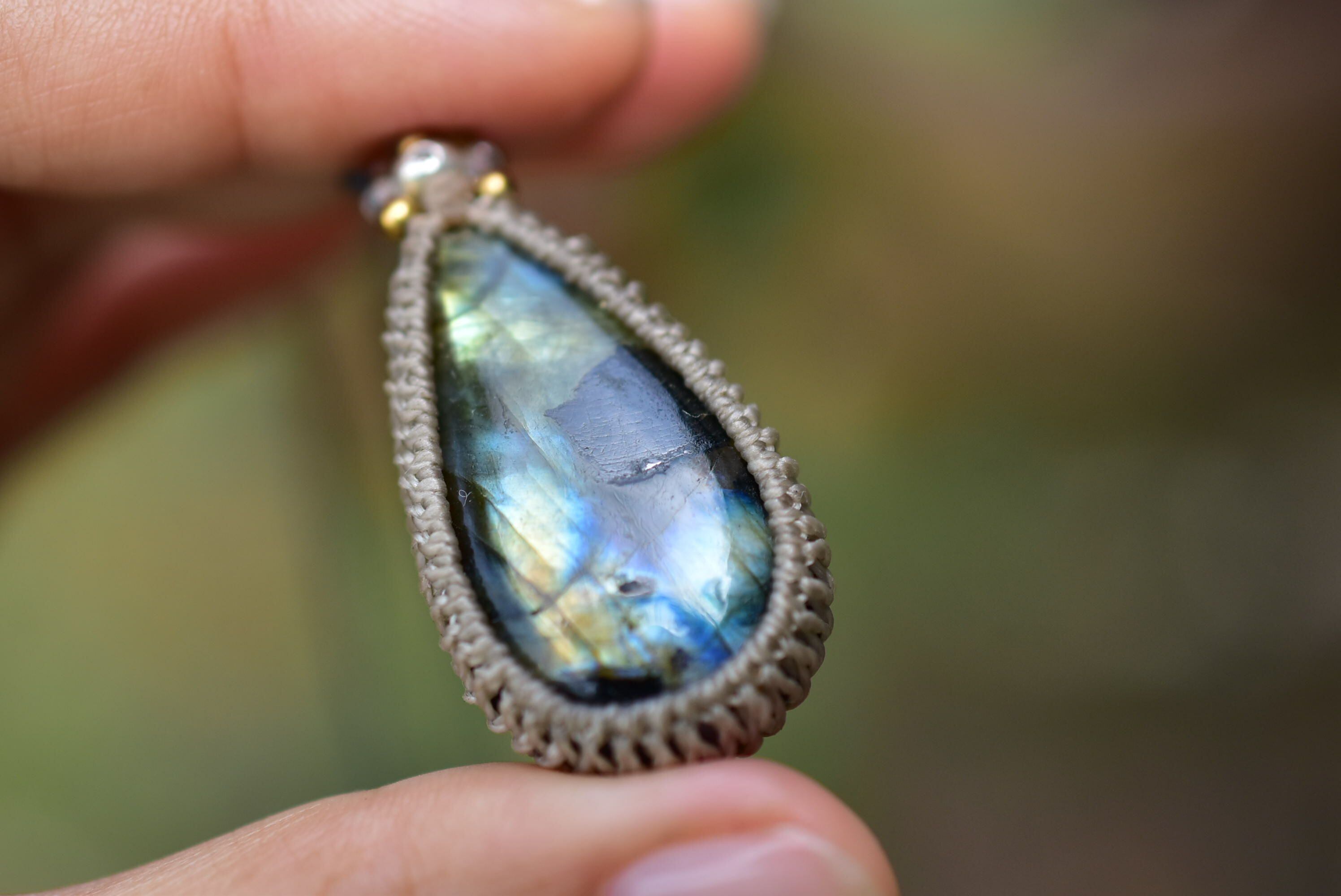 夜空のファンタジー★ラブラドライトマクラメペンダント lay022