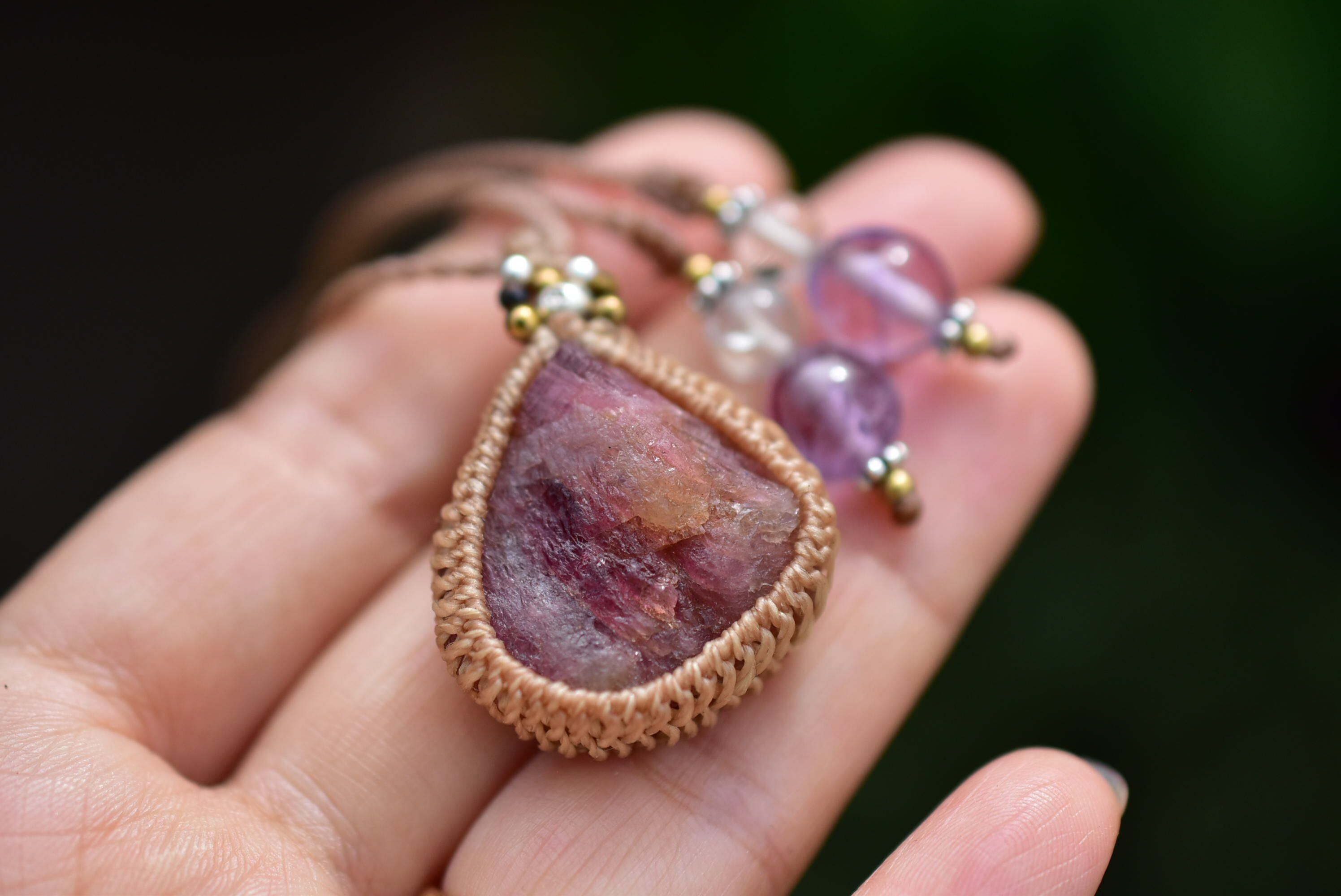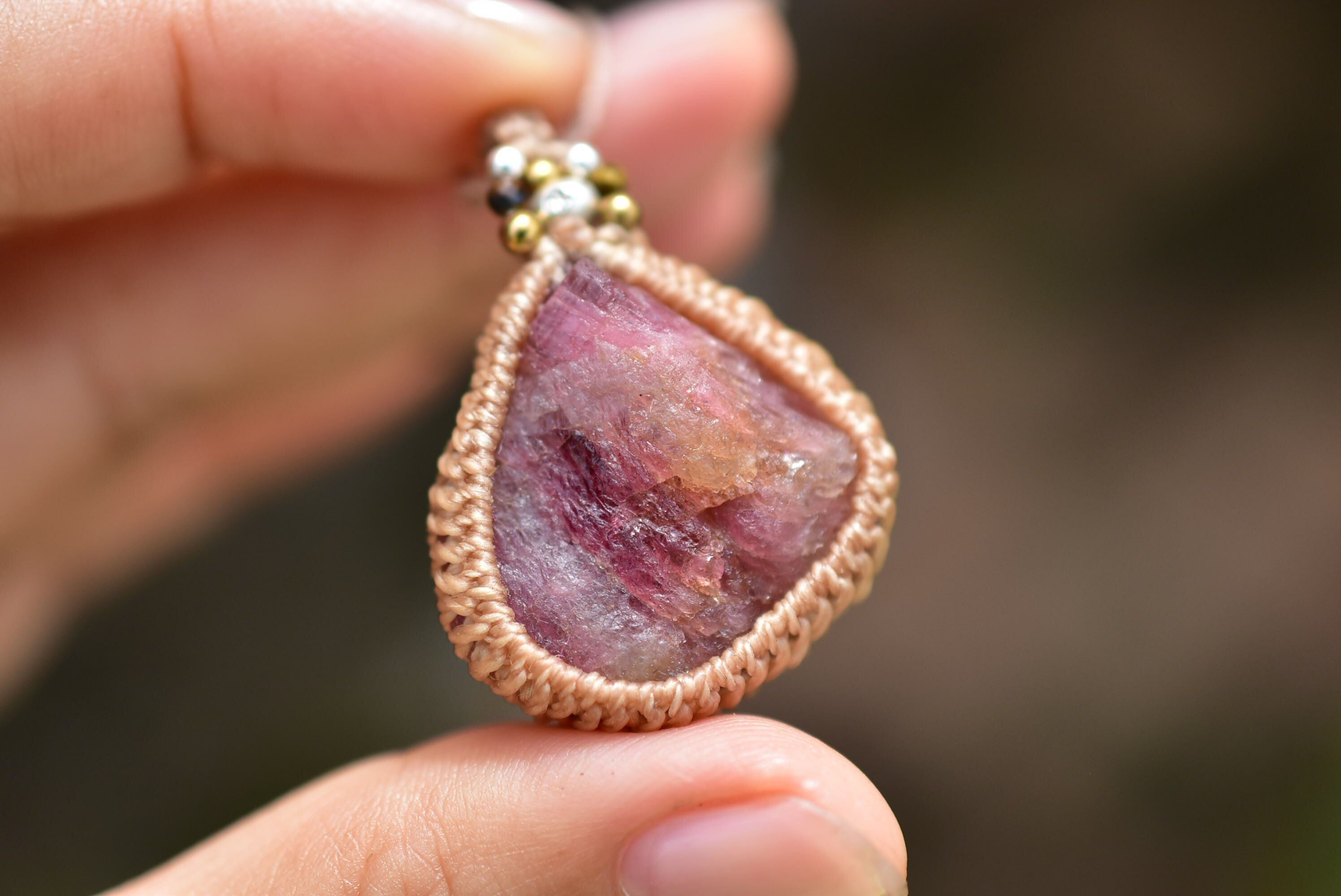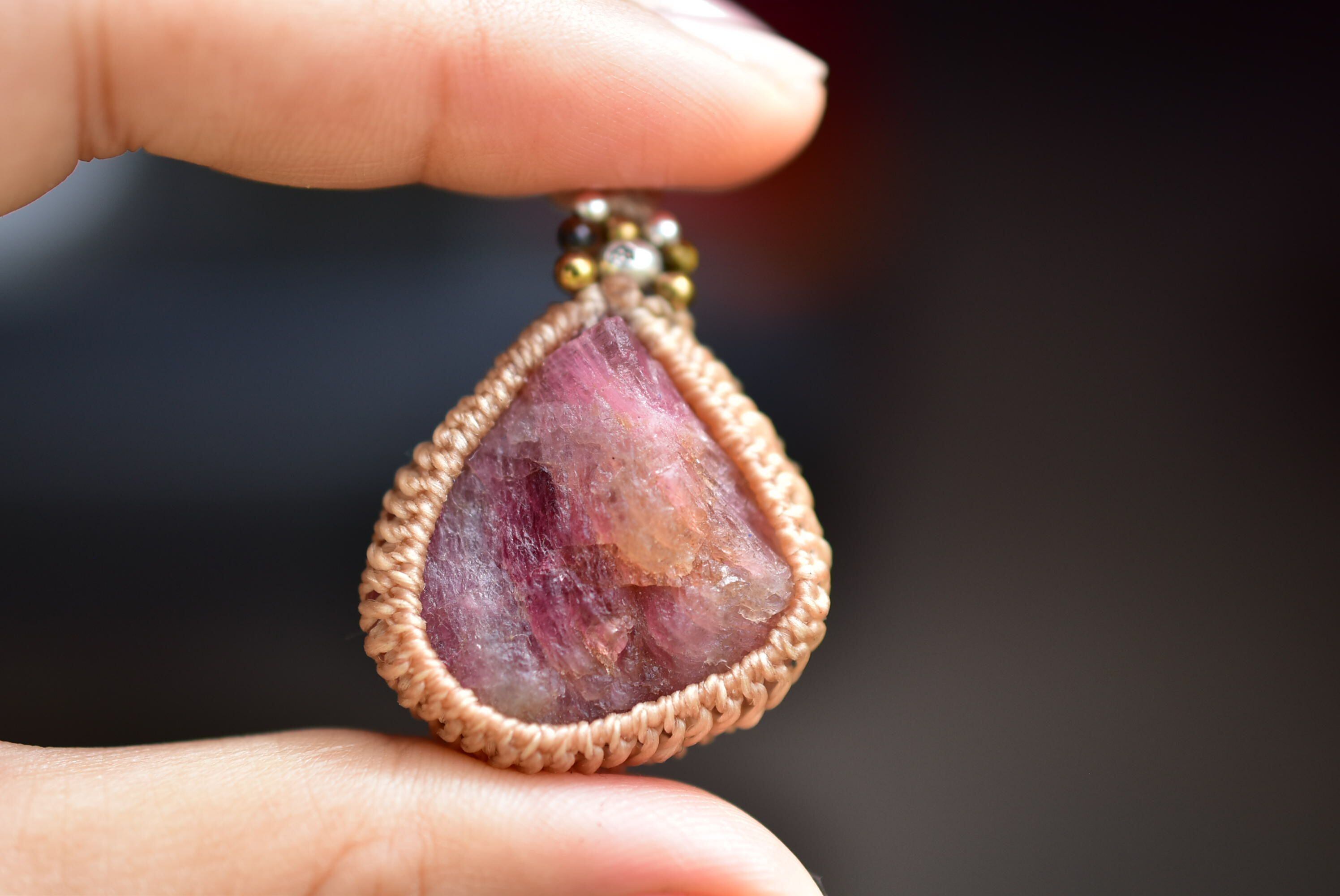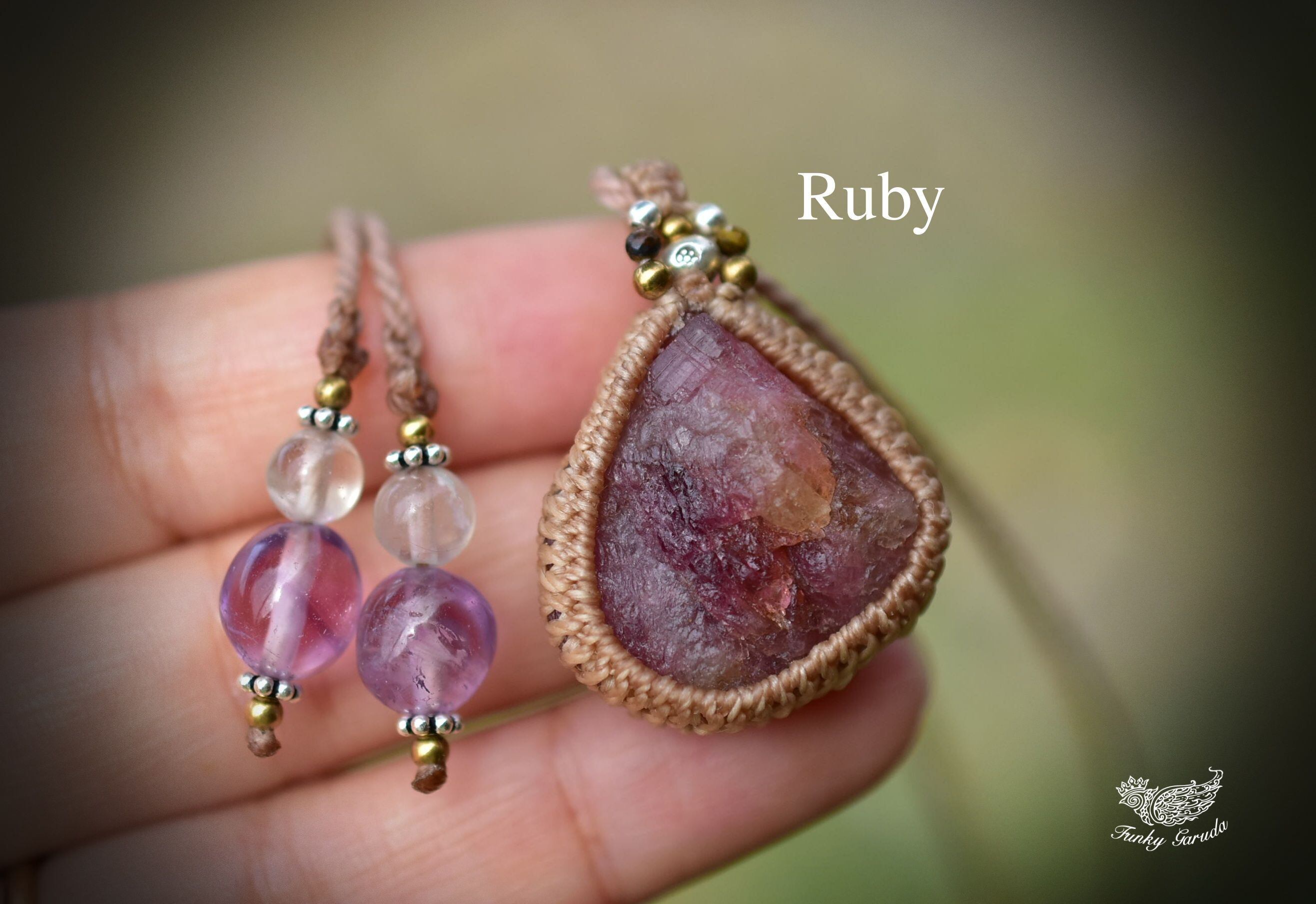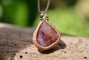 ナチュラル★ルビー原石 マクラメペンダント rubyy021