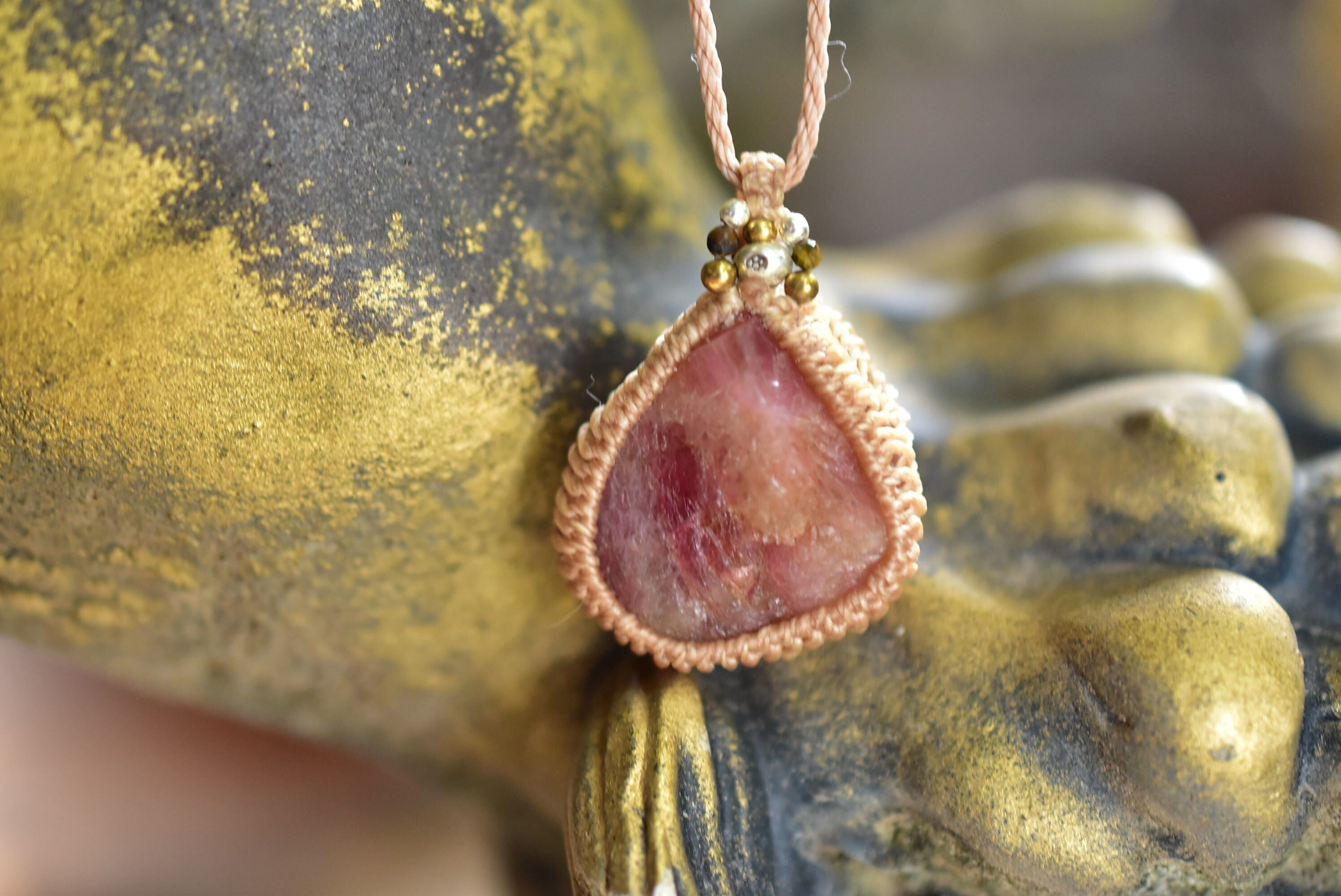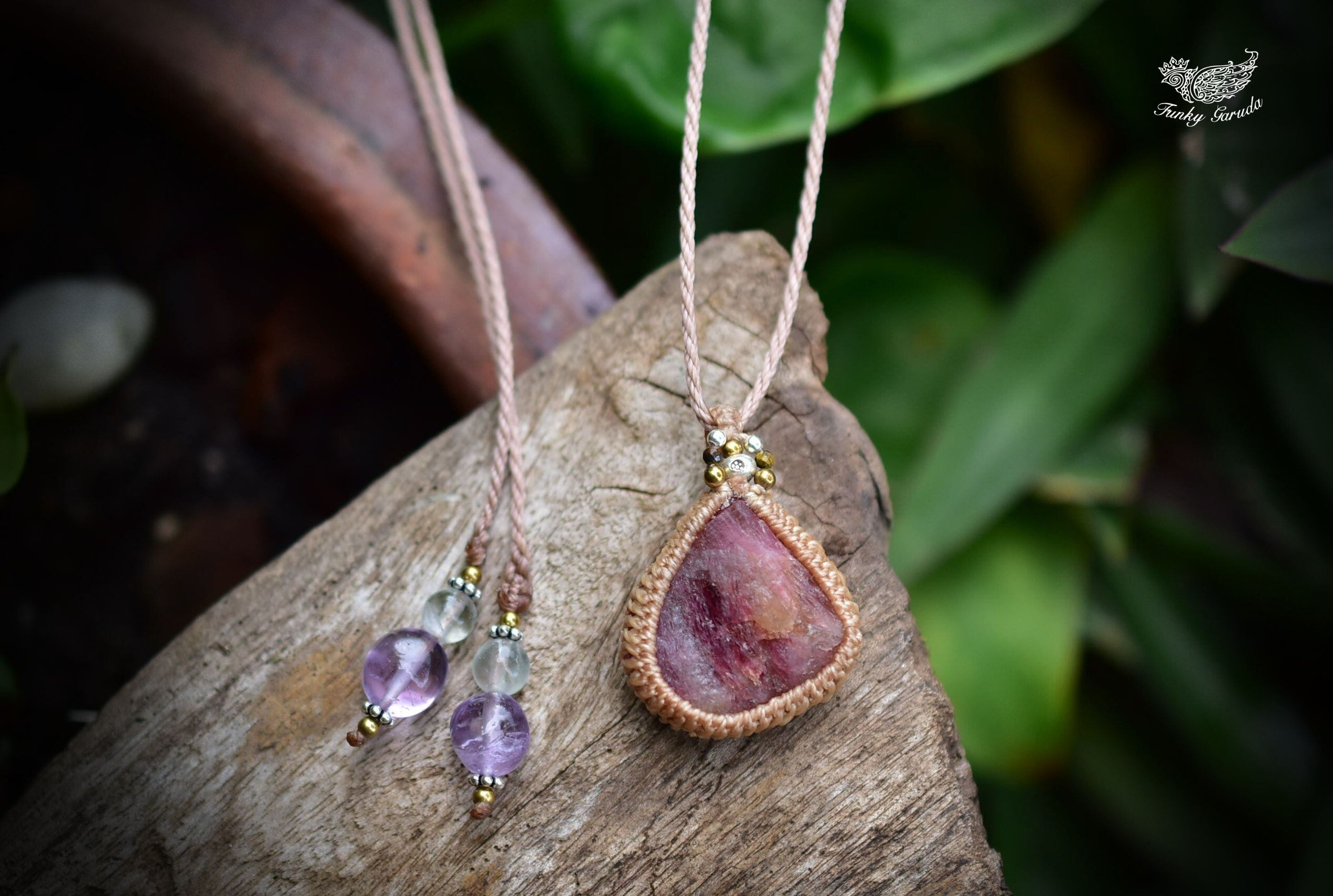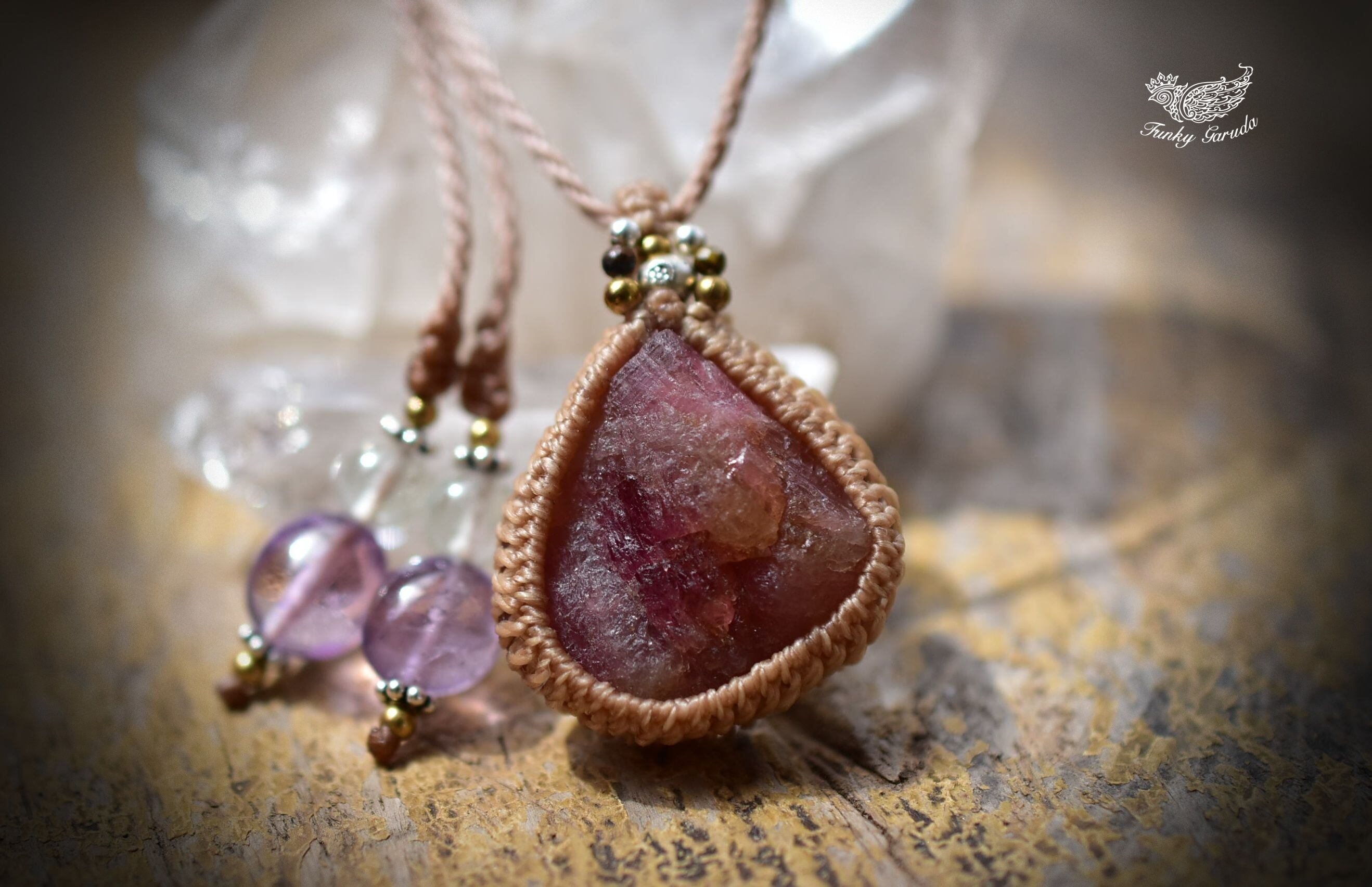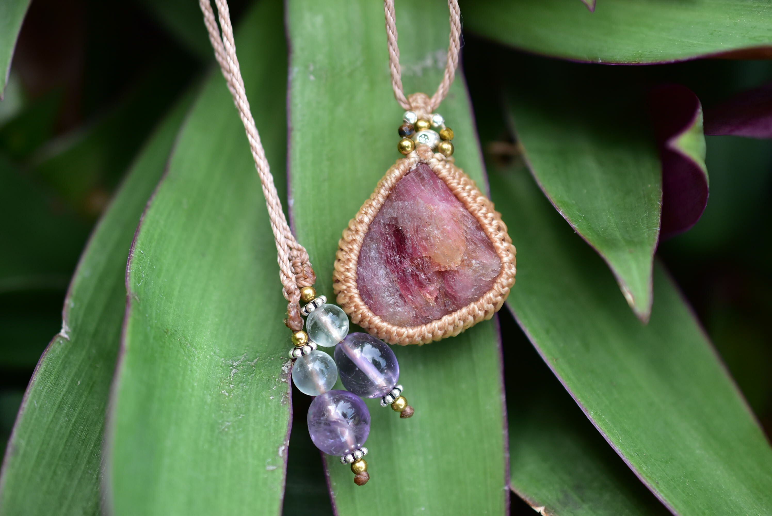 ナチュラル★ルビー原石 マクラメペンダント rubyy021