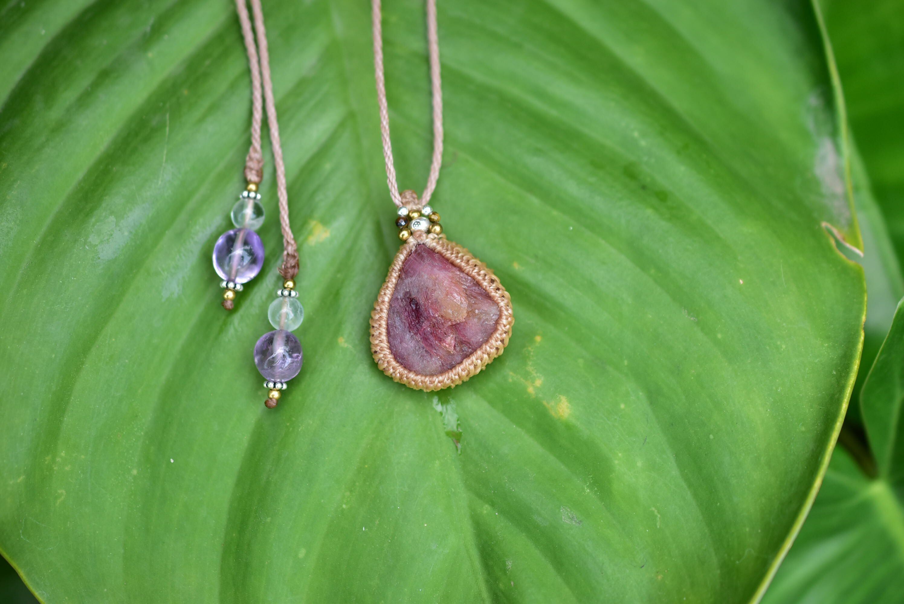 白っぽいシラーも味わい深いルビーを、シンプルなマクラメペンダントに仕上げました。