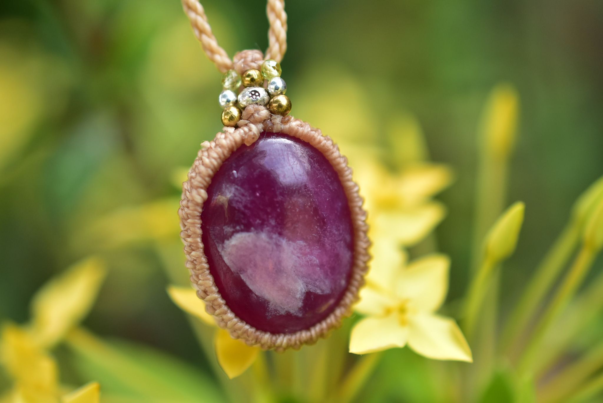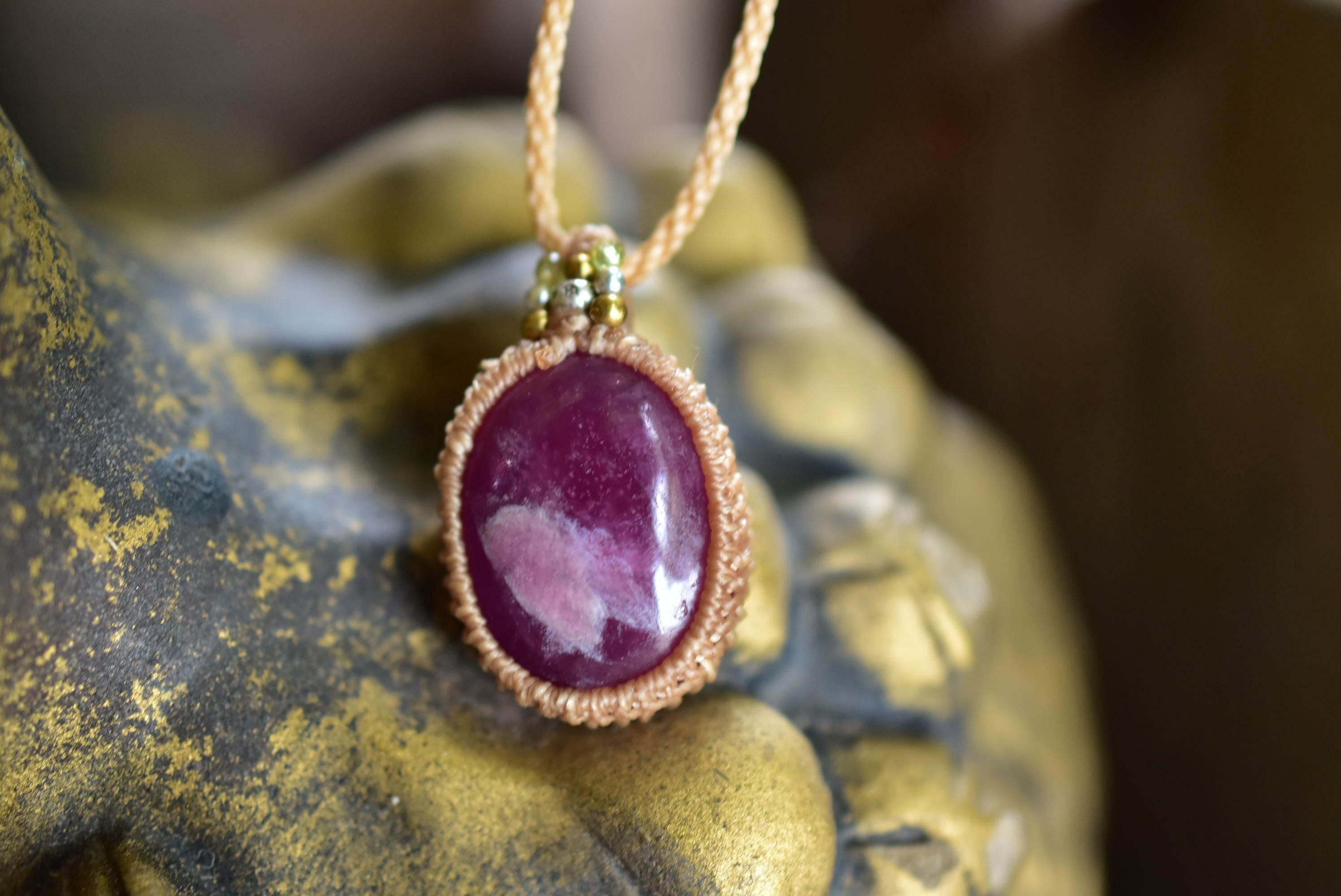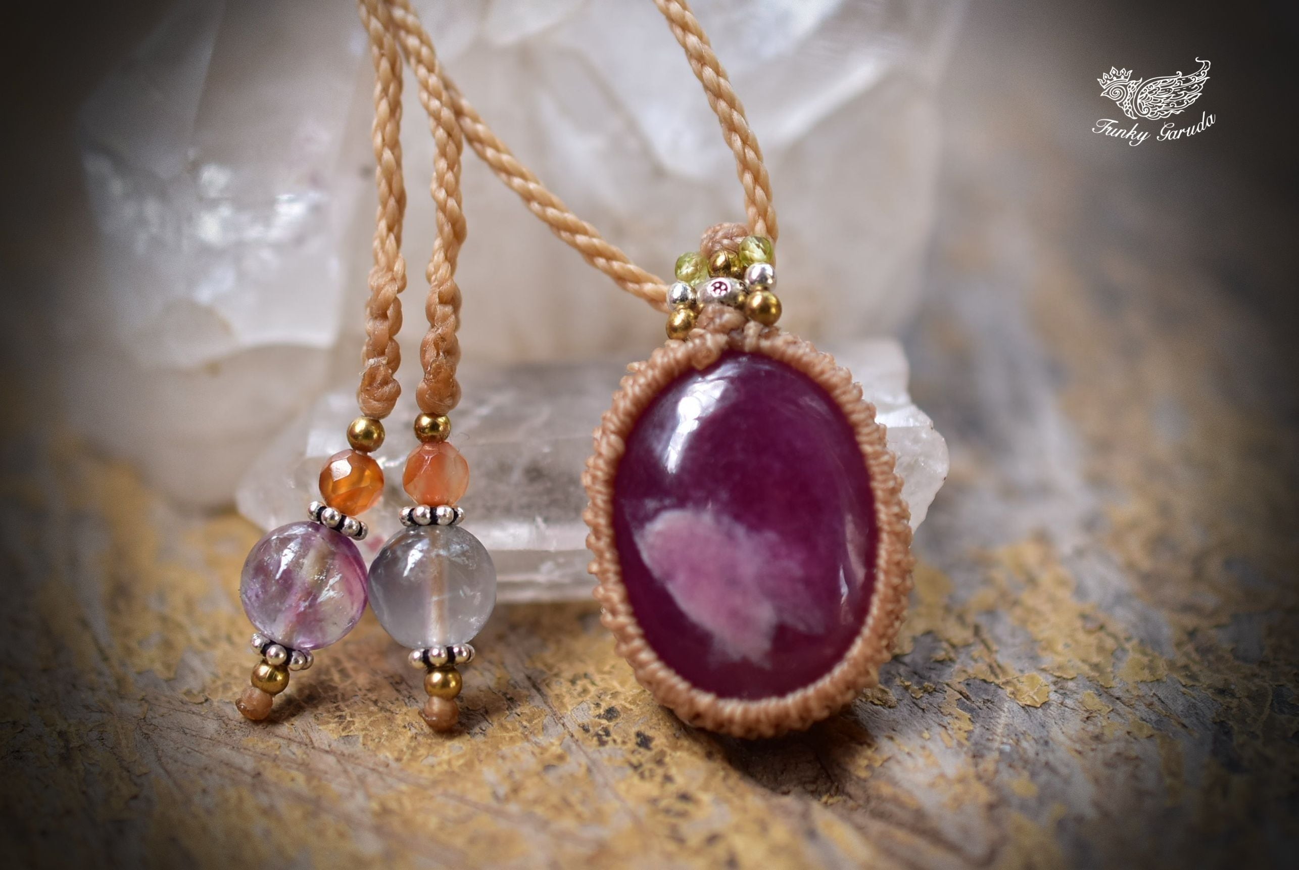 味わい感じるルビーを、シンプルにマクラメ編みにて仕上げました