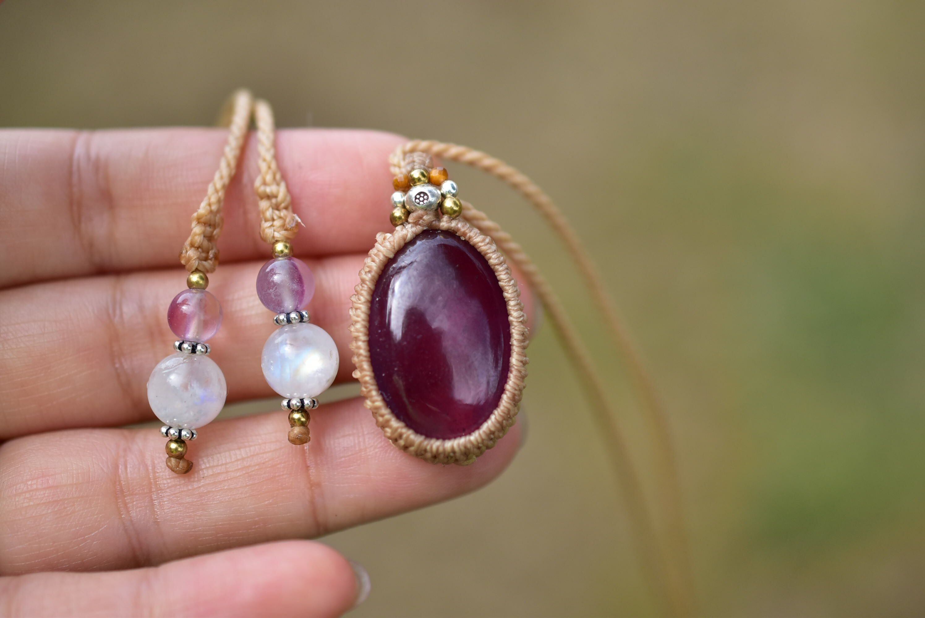 そんな異なる印象を楽しめる良質なルビーを、シンプルにマクラメ編みにて仕上げました