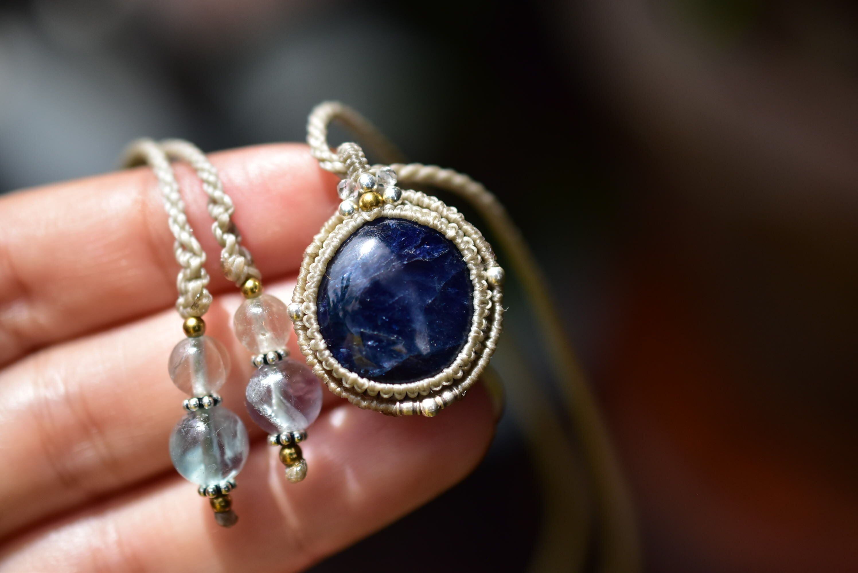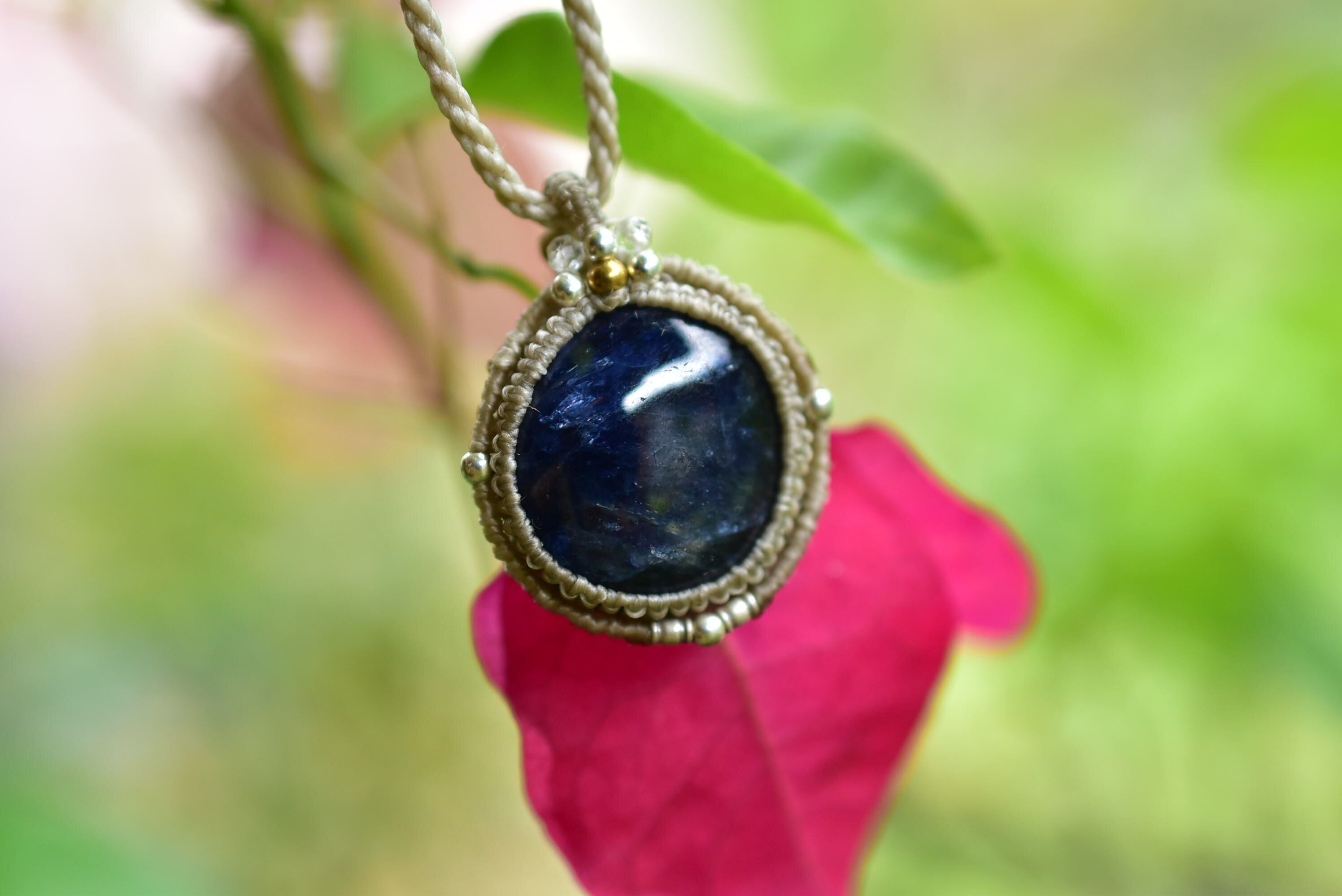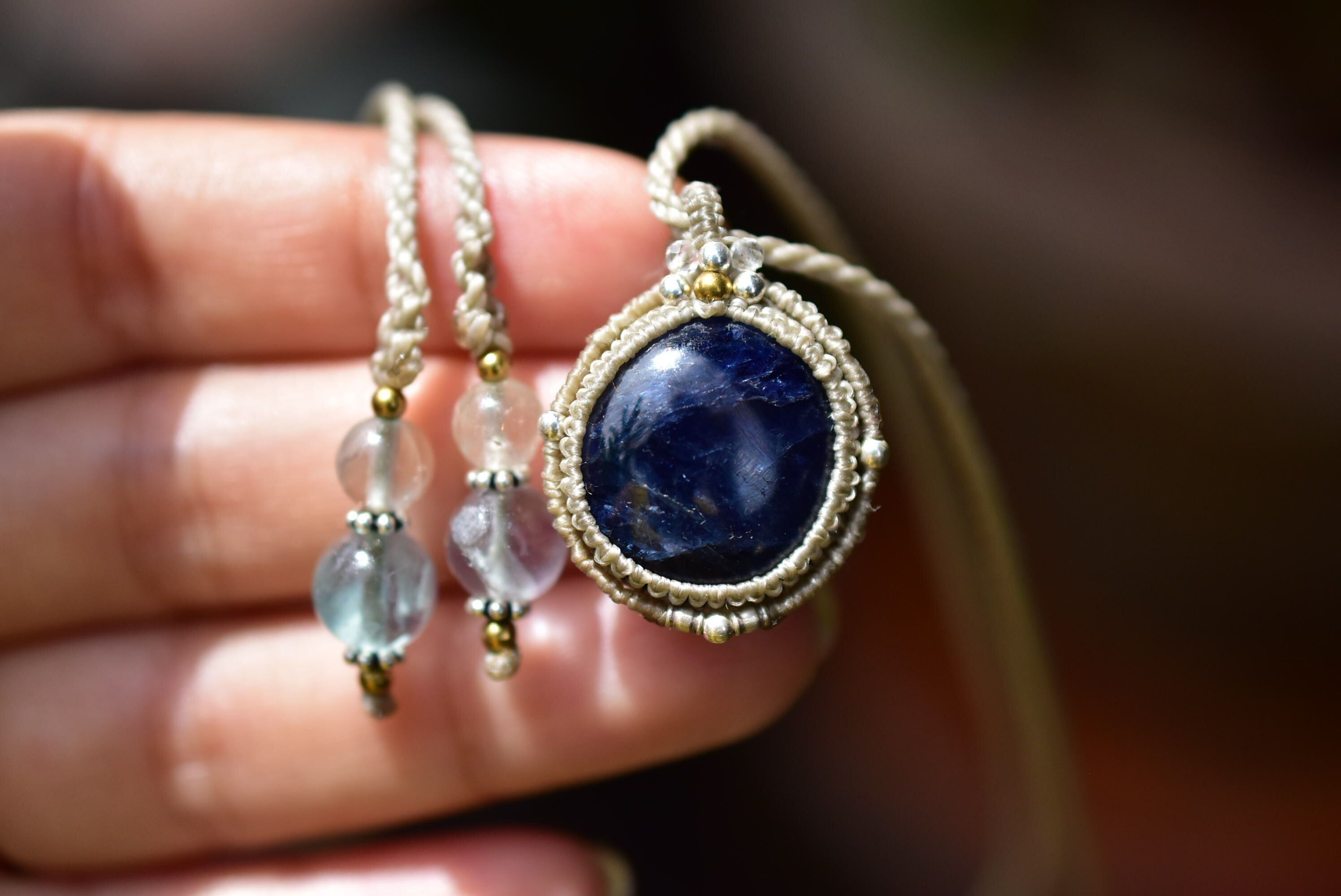 43ct★蒼く輝くシラー★ブルーサファイア マクラメペンダントsafa014