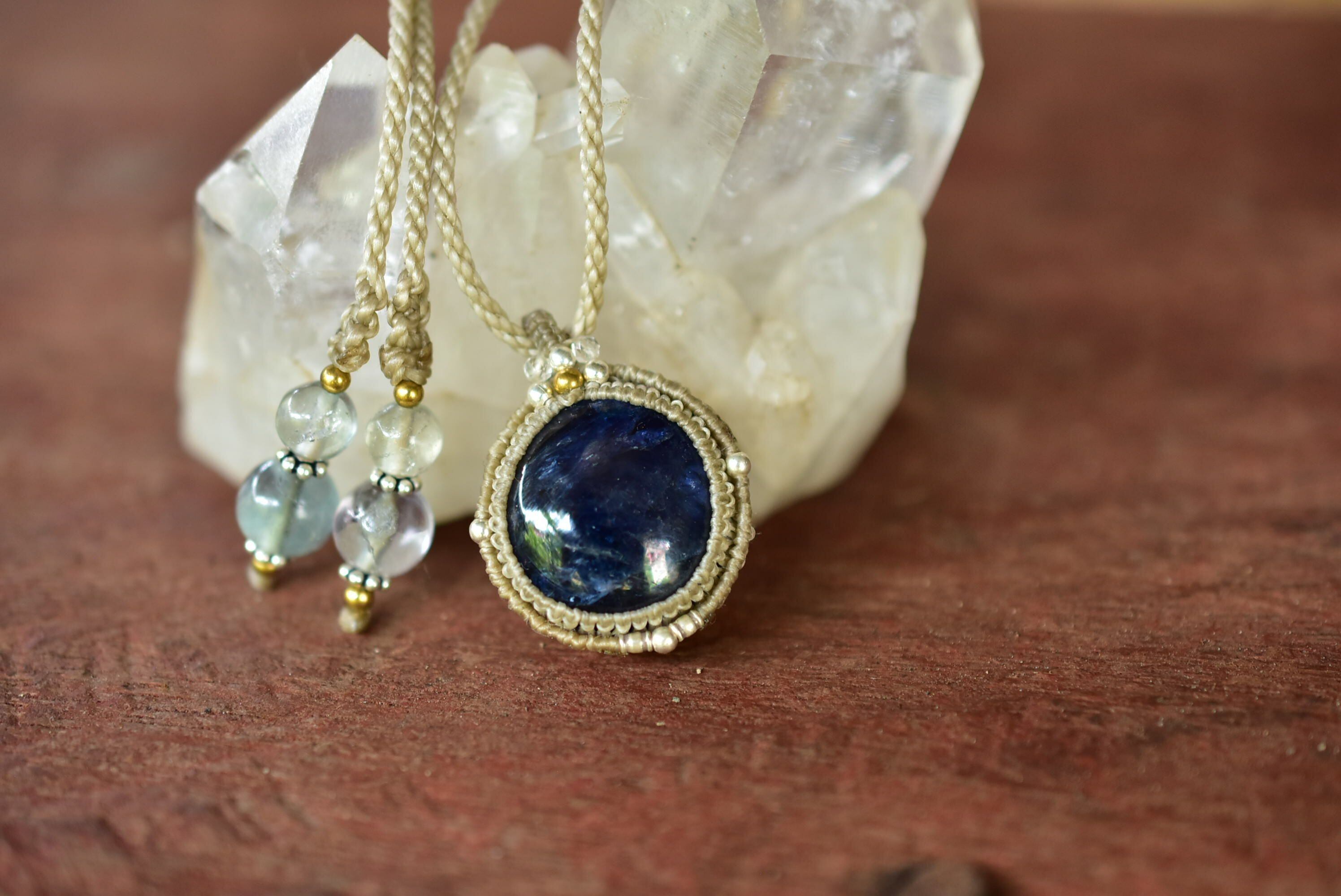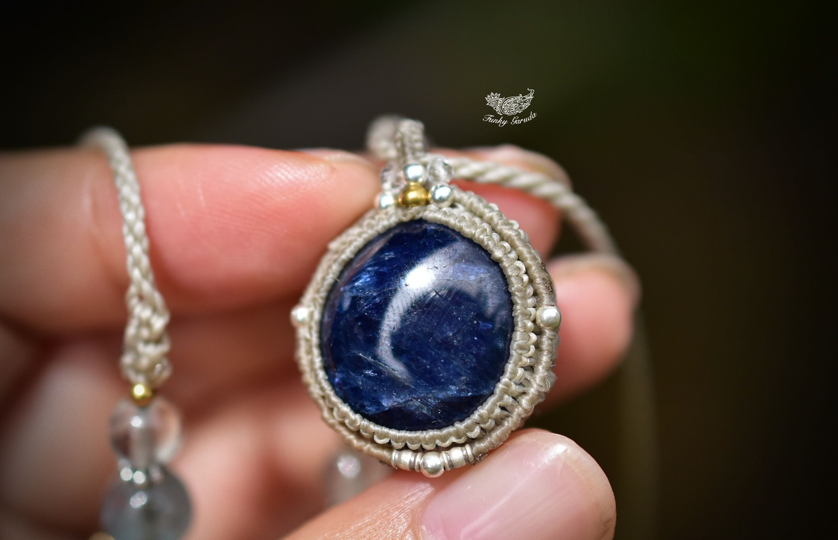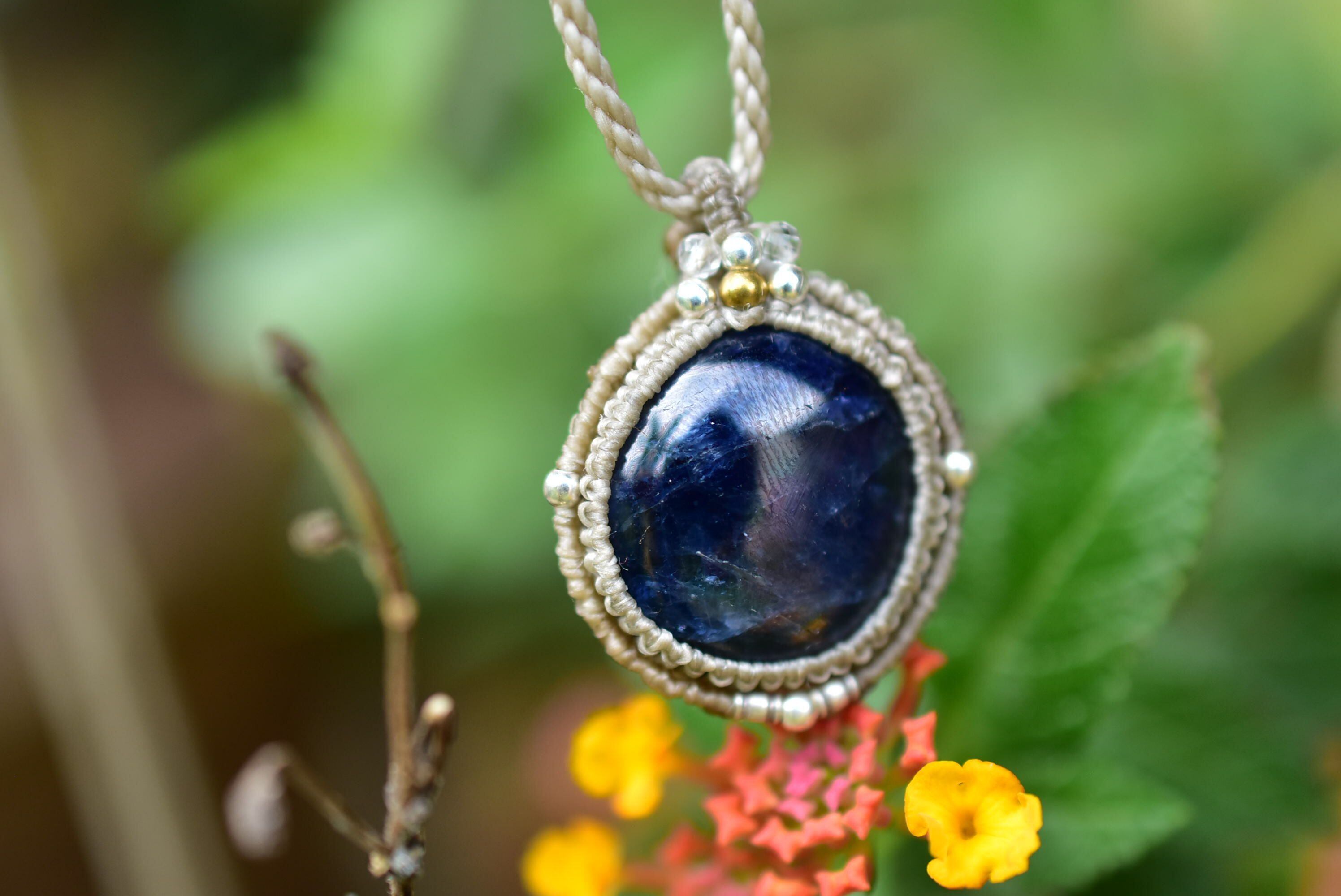 43ct★蒼く輝くシラー★ブルーサファイア マクラメペンダントsafa014