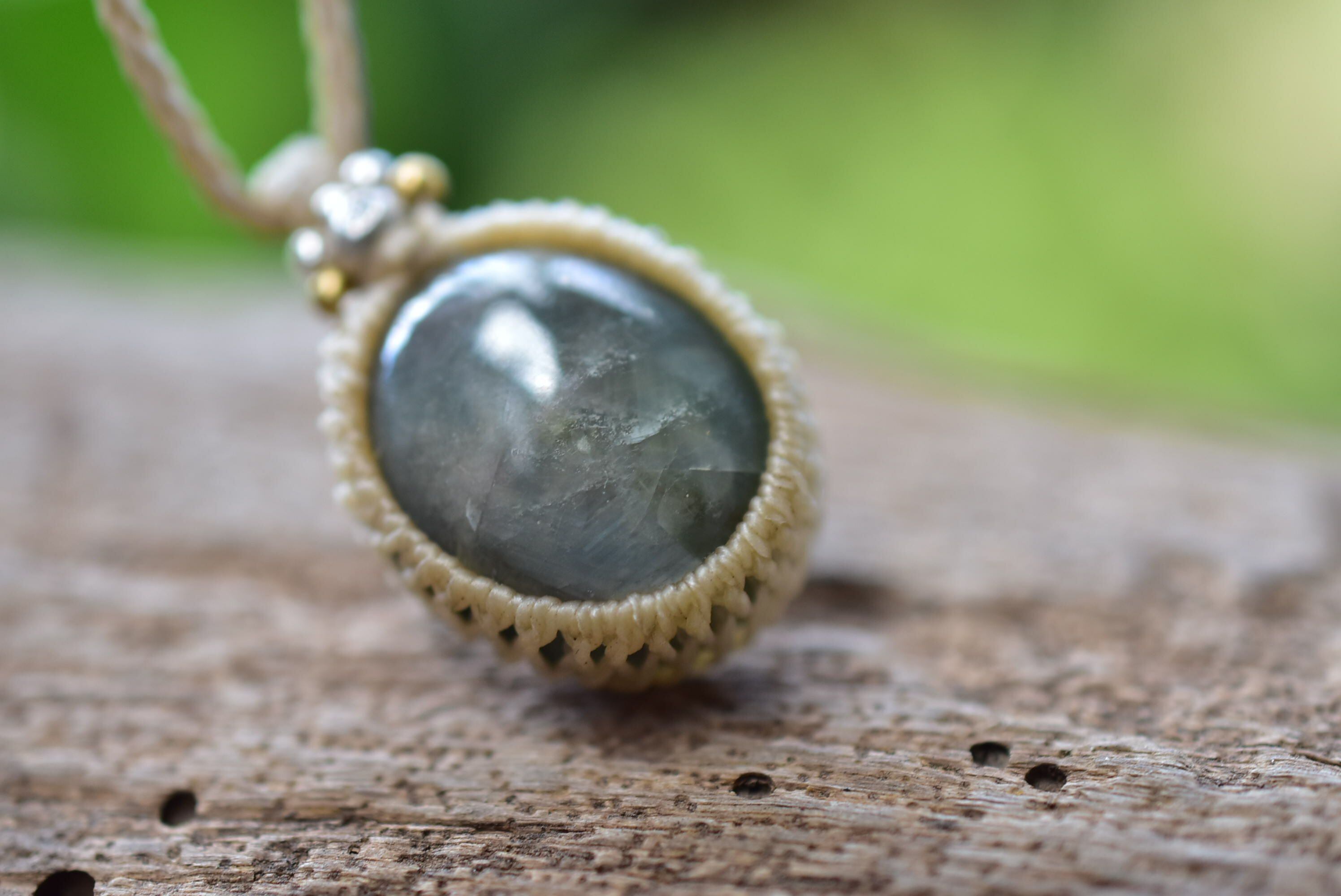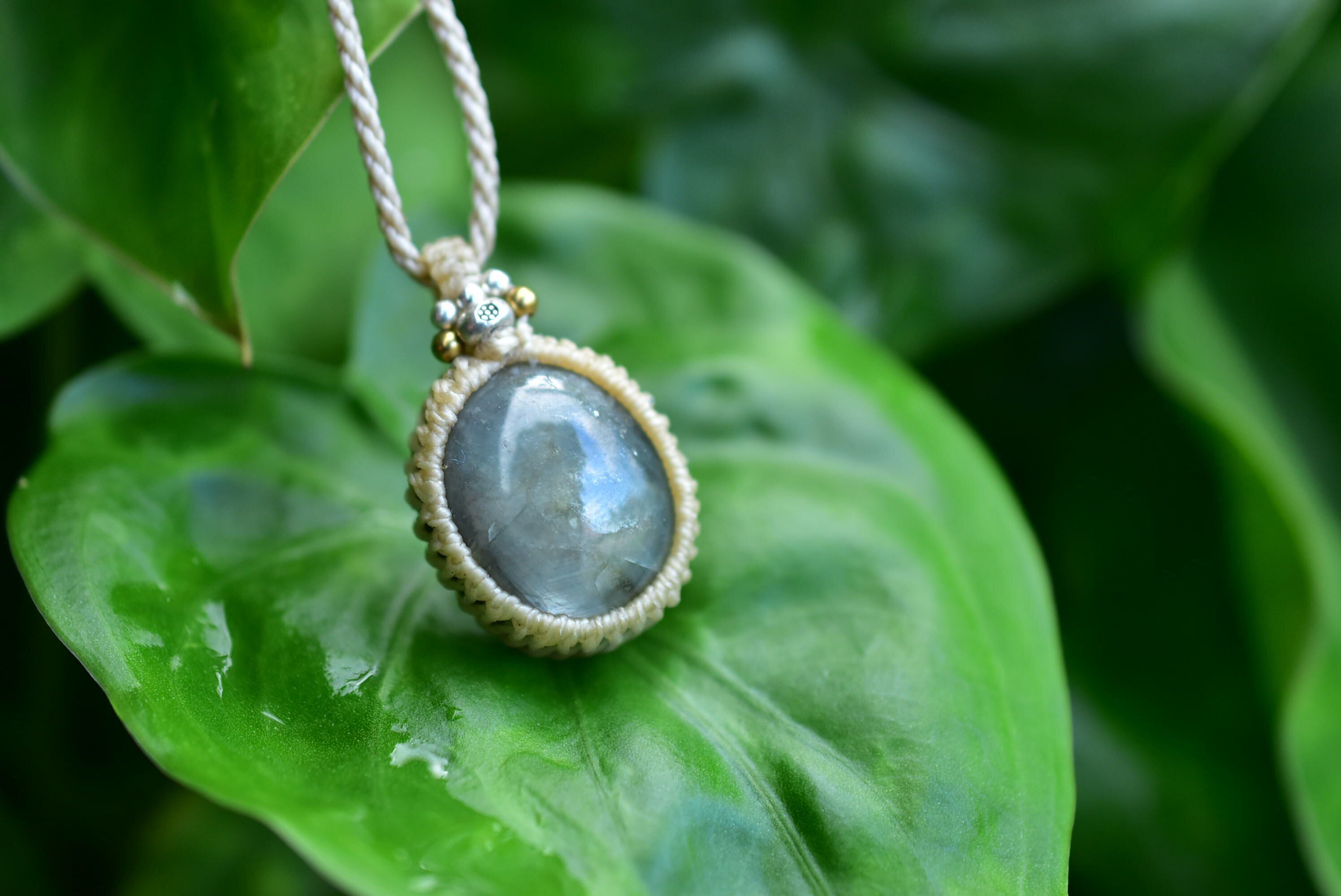 柔らかな木漏れ日★サファイア マクラメペンダント sapy012