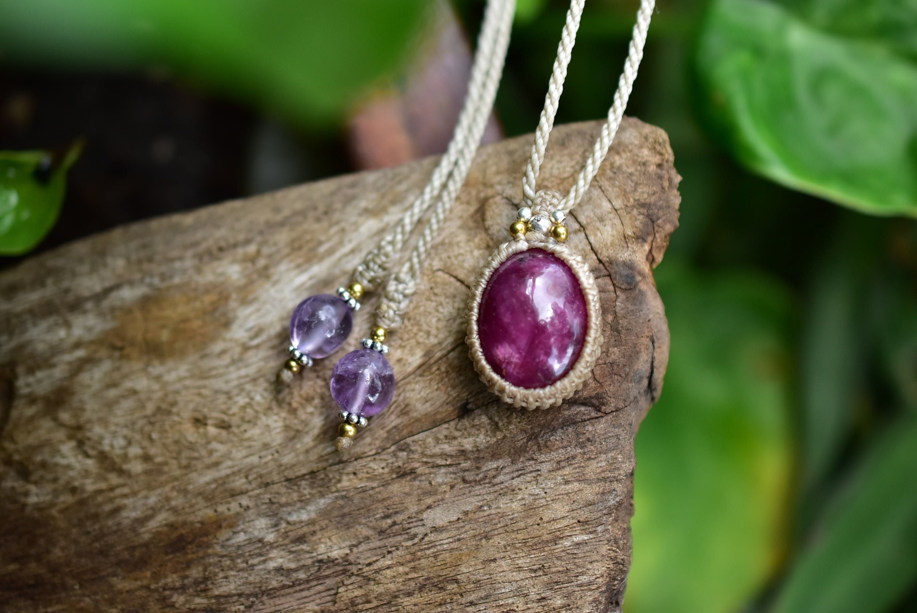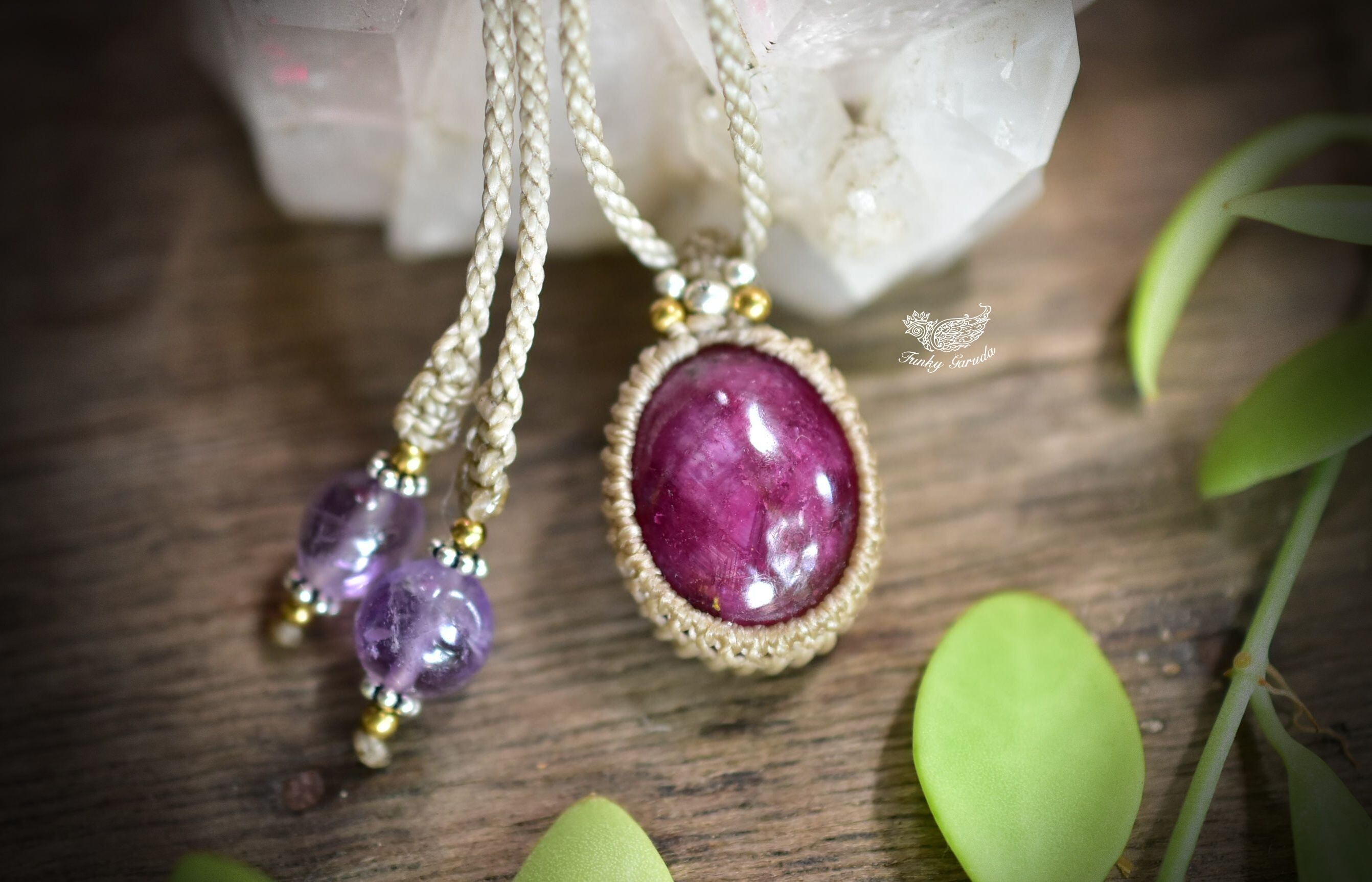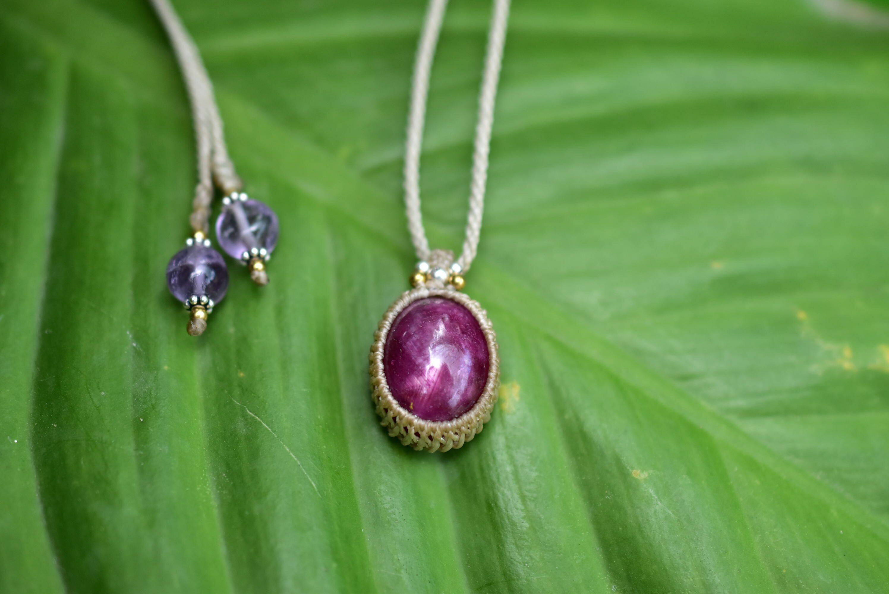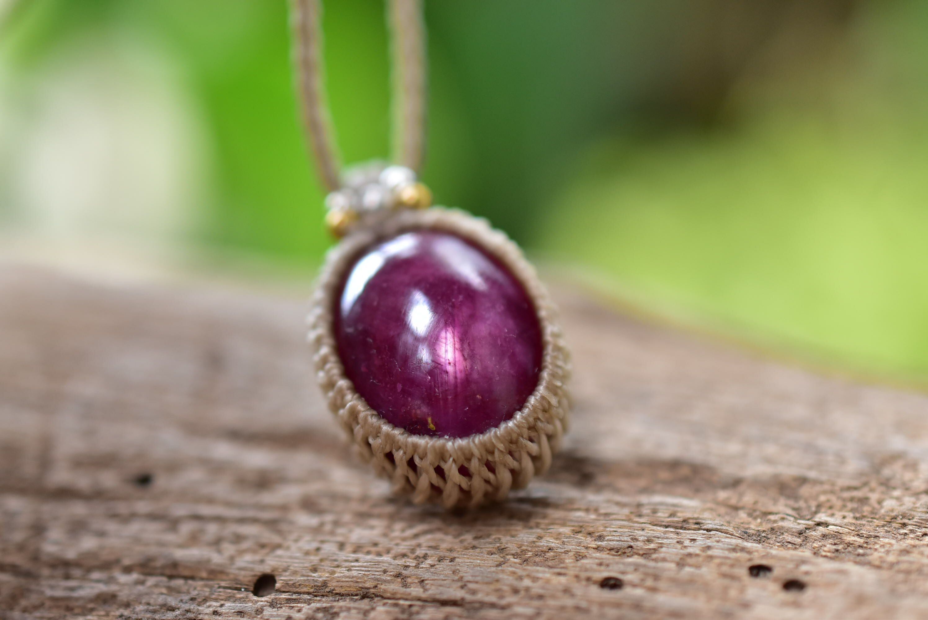 繊細な煌めき★40ctスタールビー マクラメペンダント rubyy025