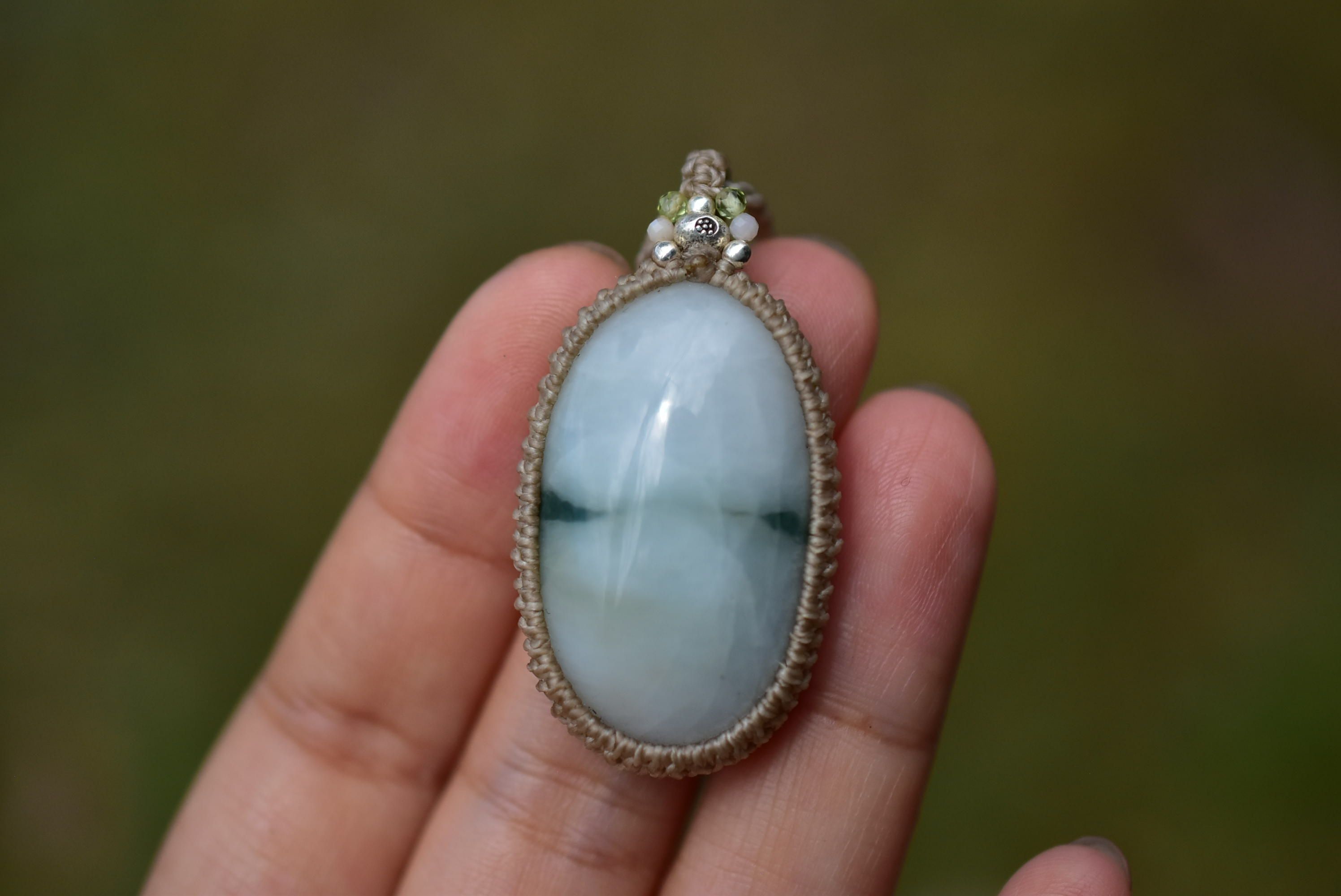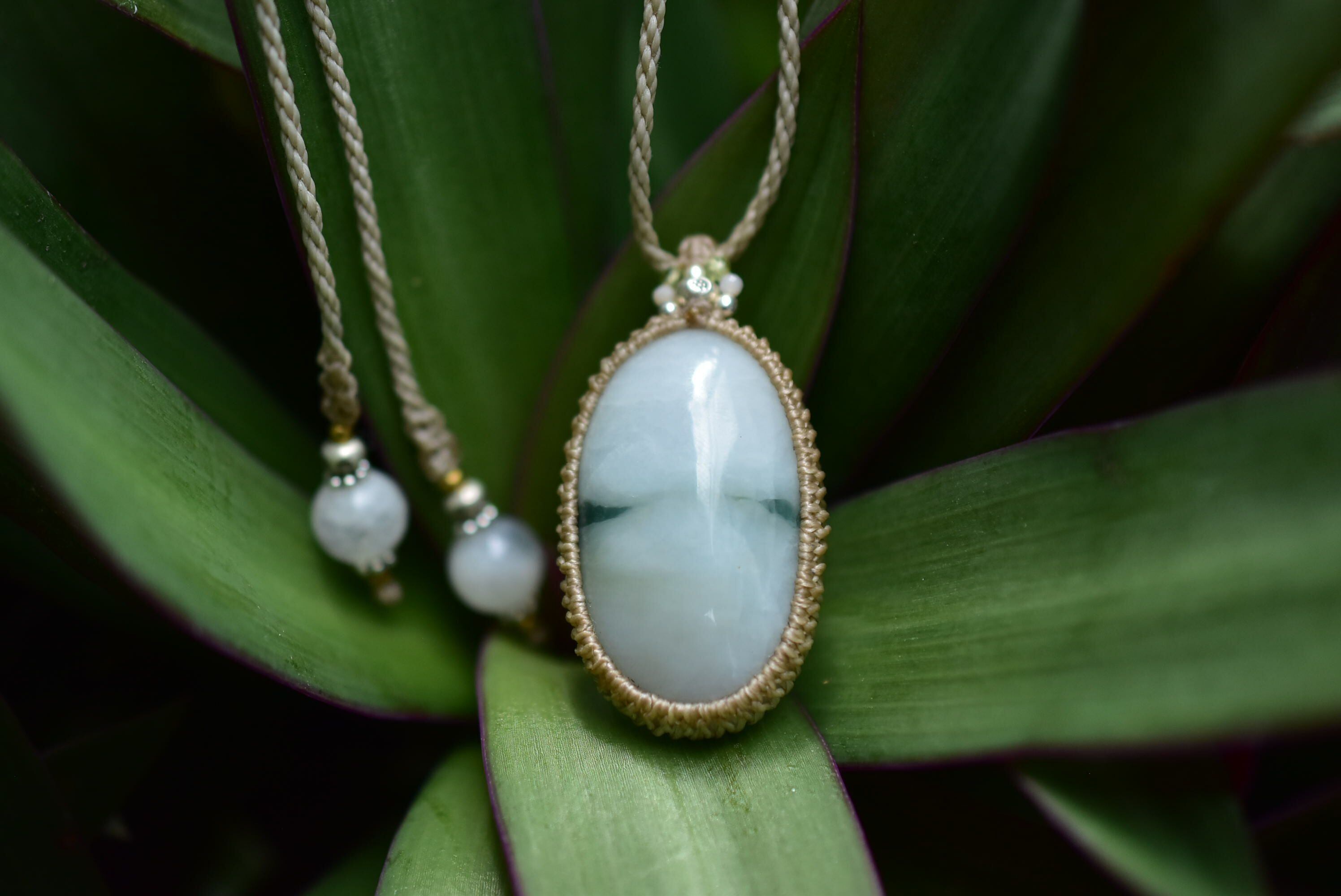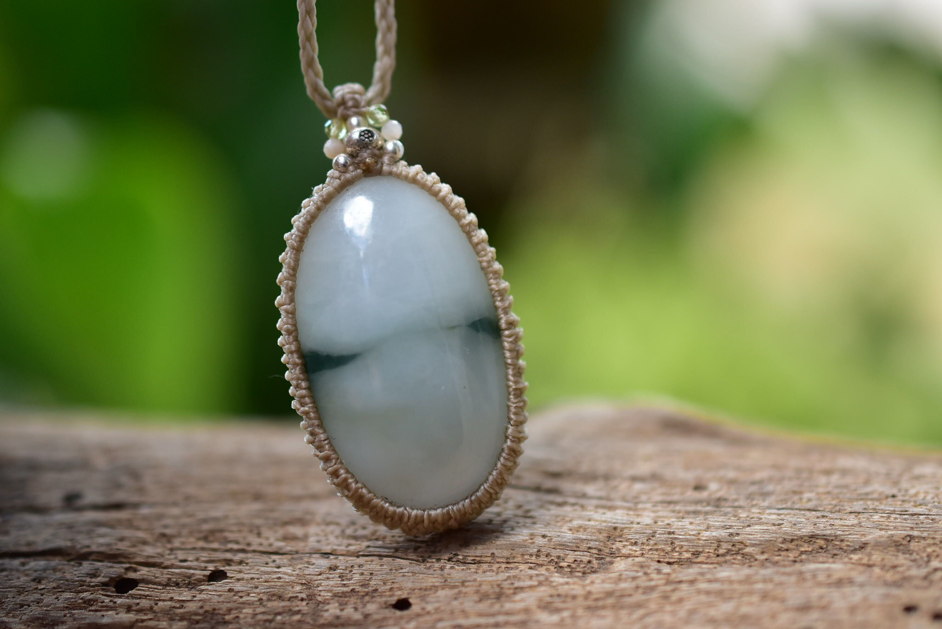 ミャンマー産★翡翠 ホワイトジェイド マクラメペンダントjedy002