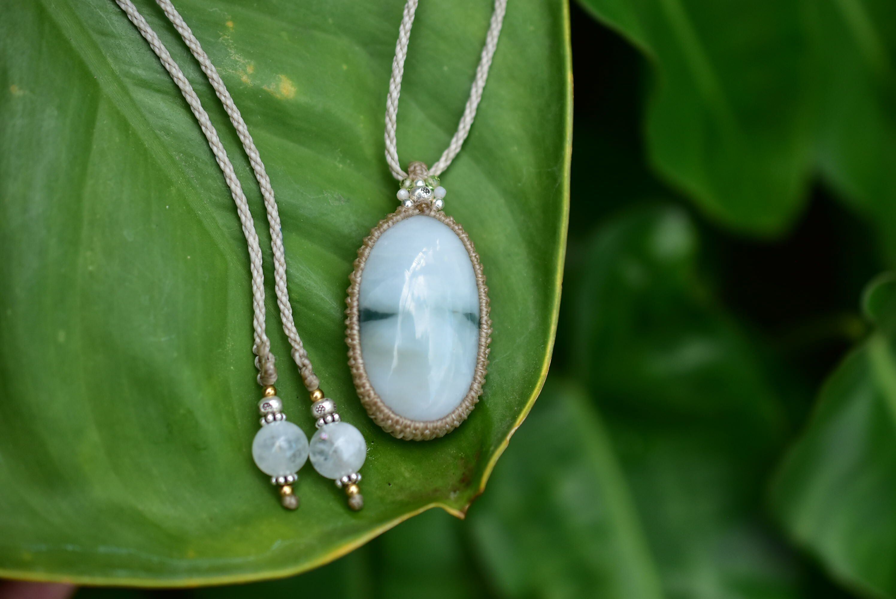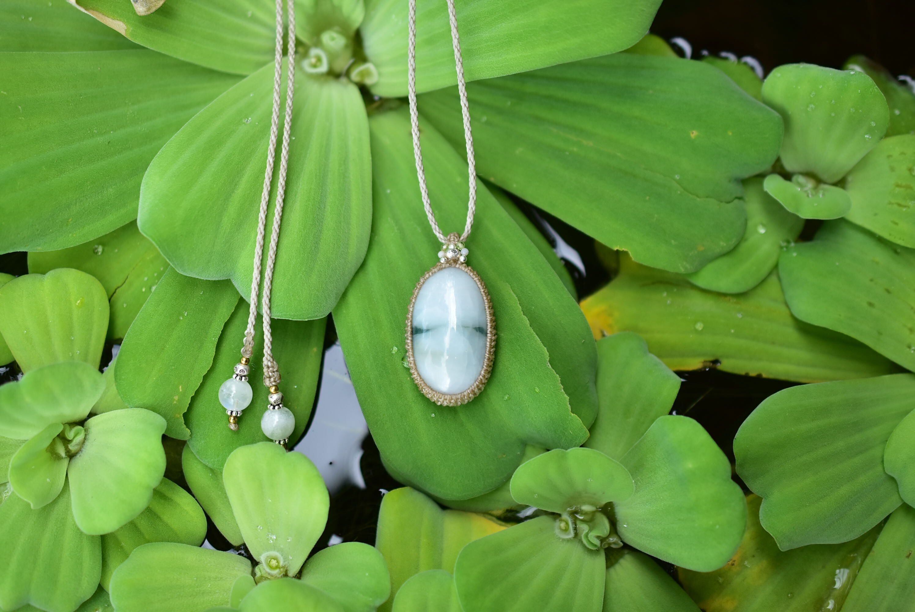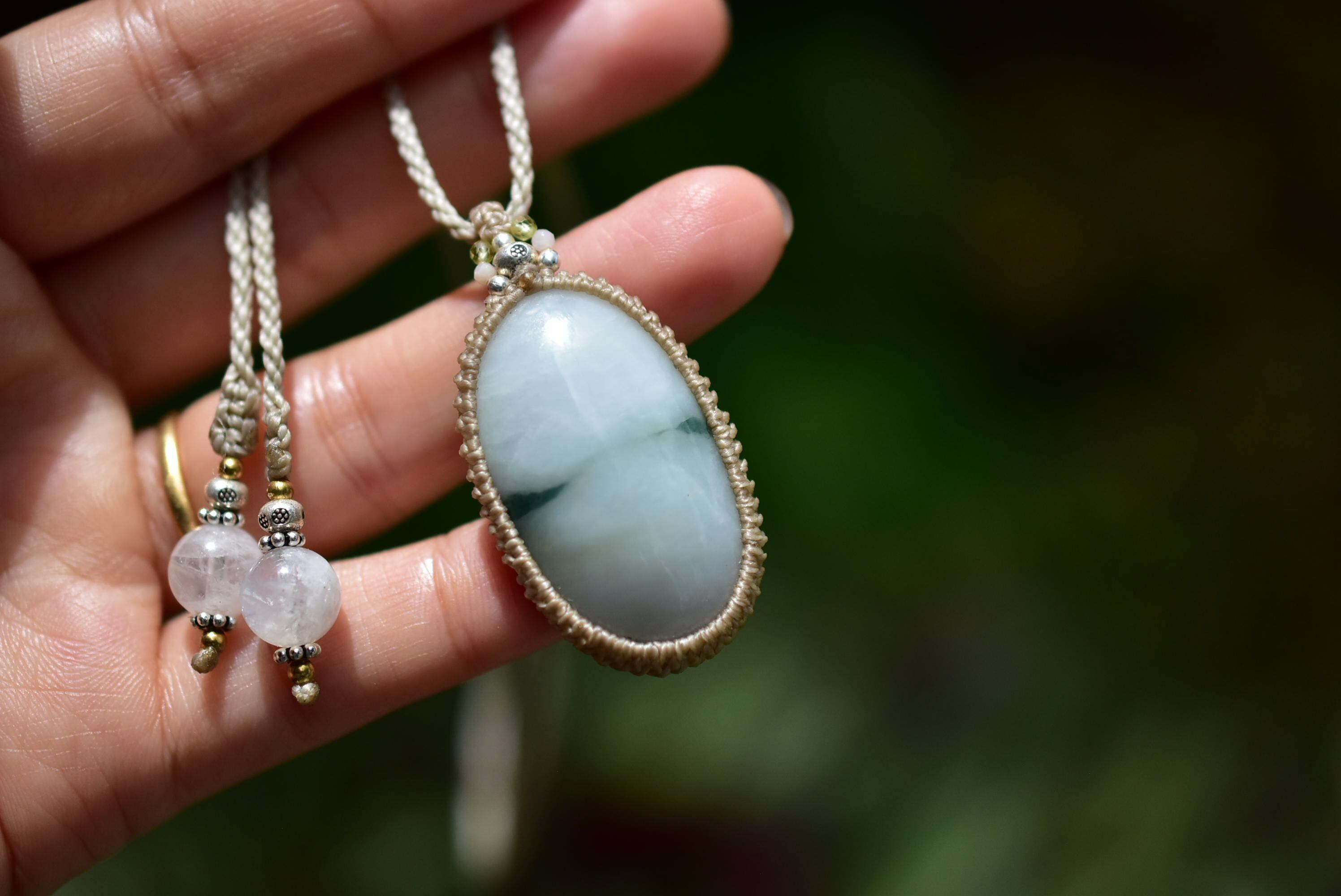 ミャンマー産★翡翠 ホワイトジェイド マクラメペンダントjedy002
