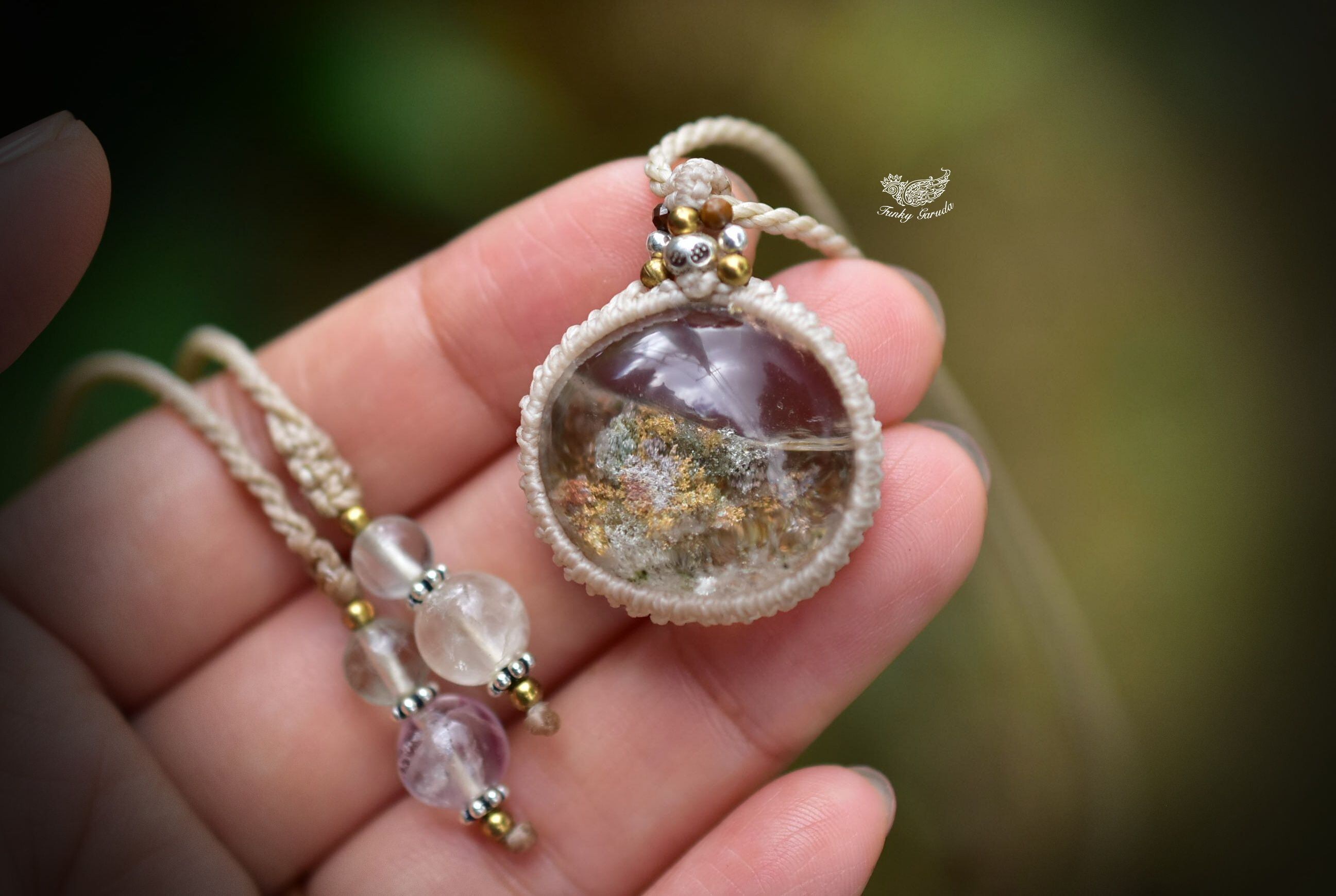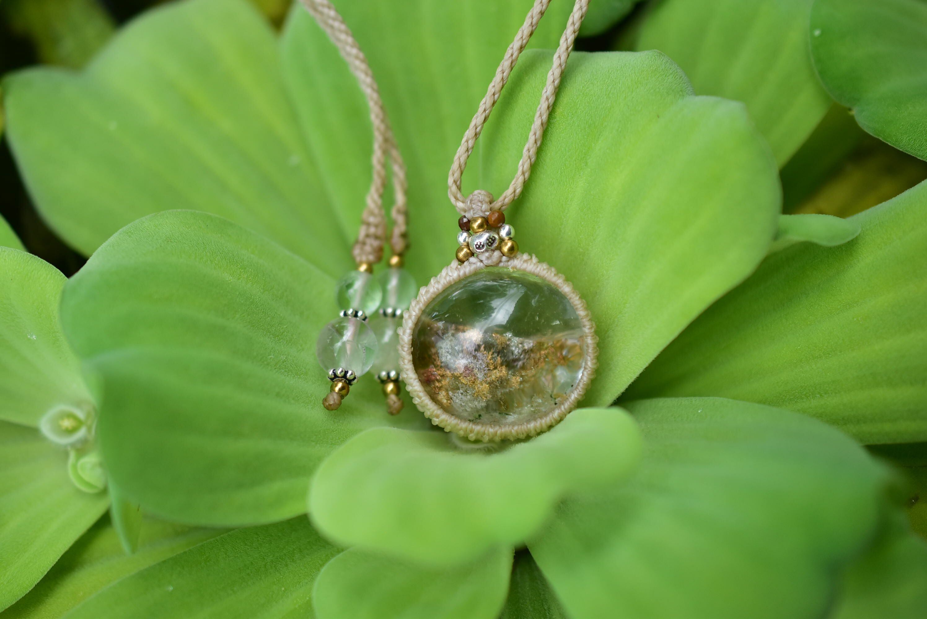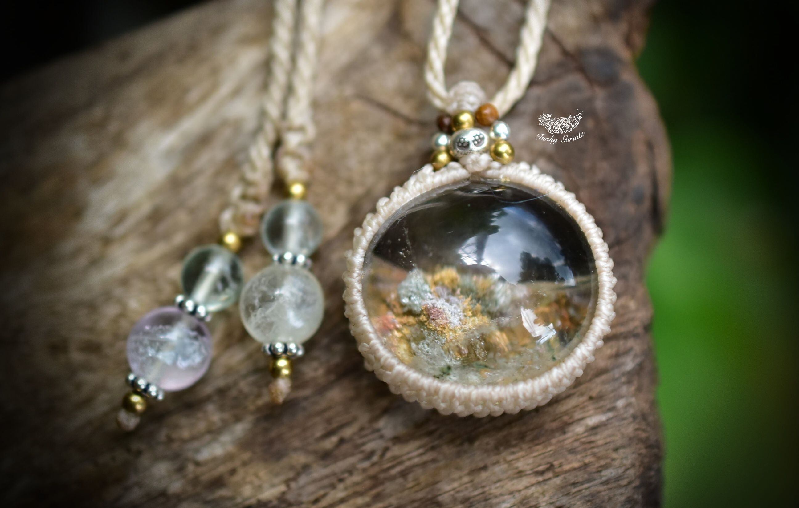 丸く小さな庭園★ガーデンクォーツ マクラメペンダント gy074