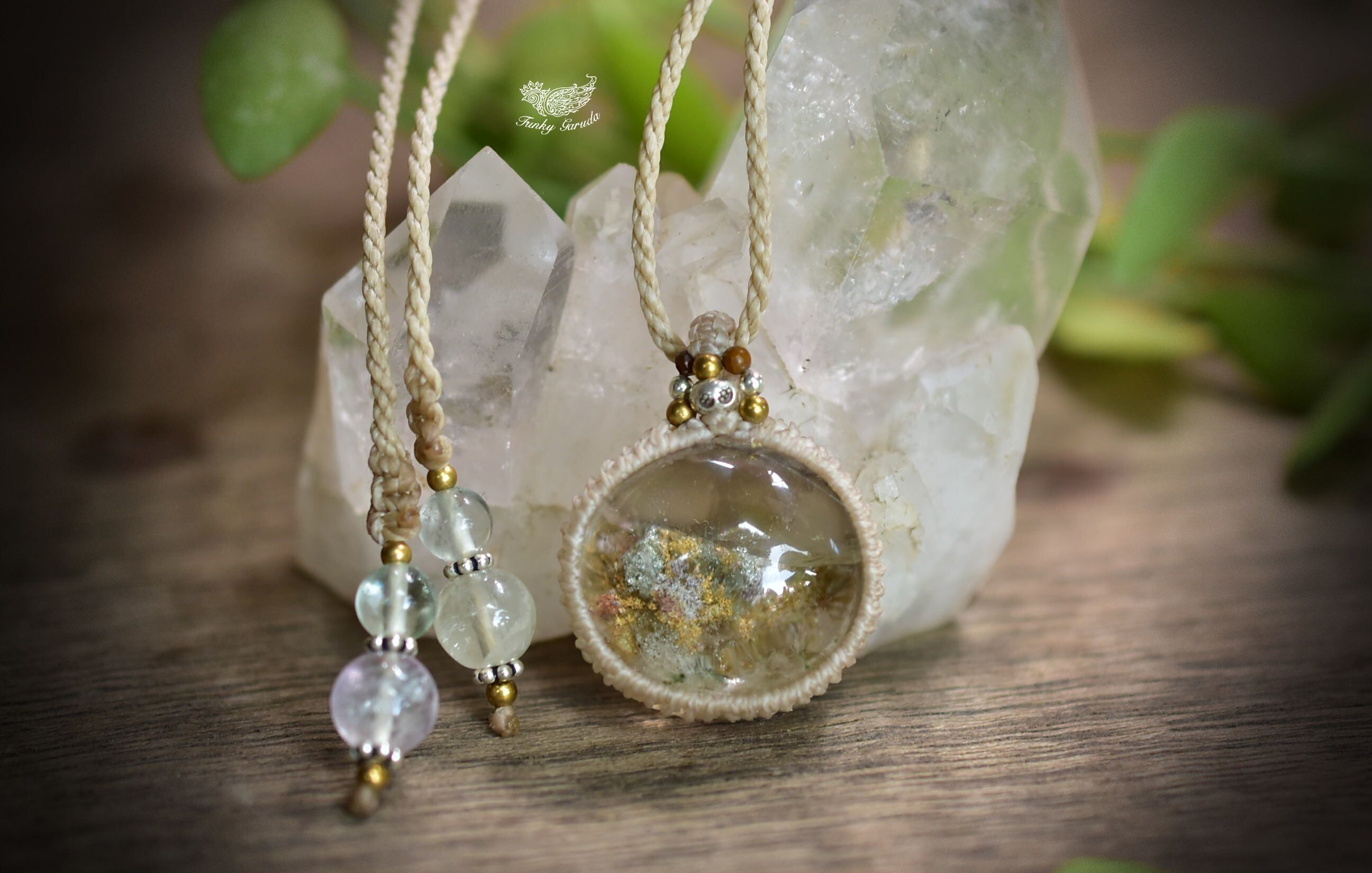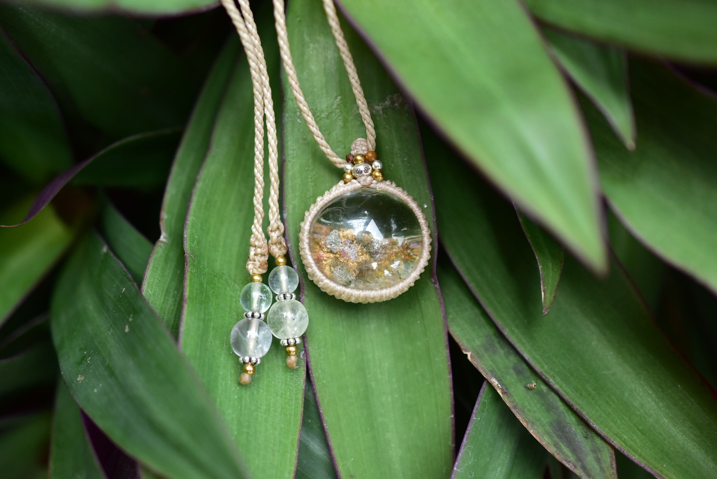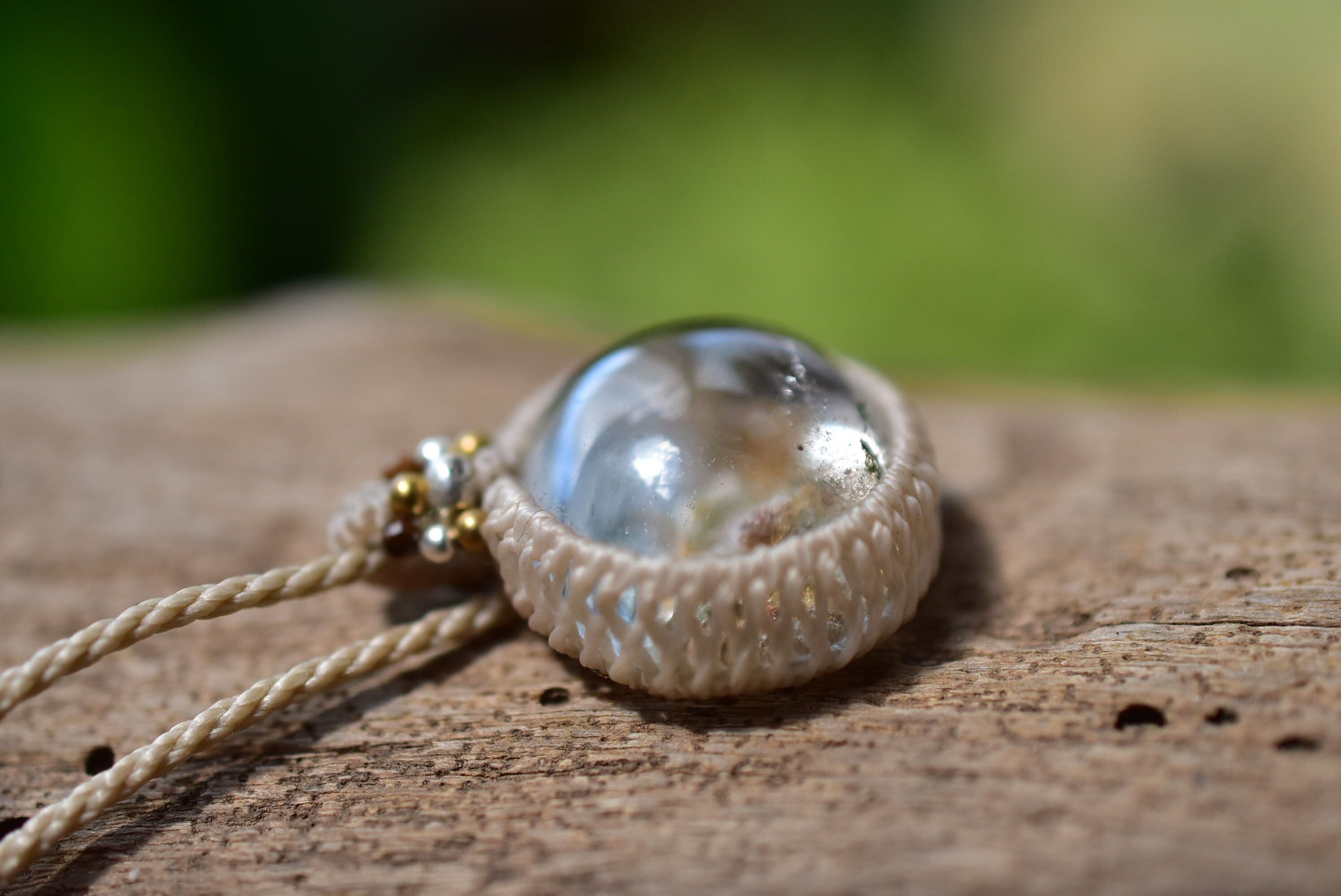 丸く小さな庭園★ガーデンクォーツ マクラメペンダント gy074