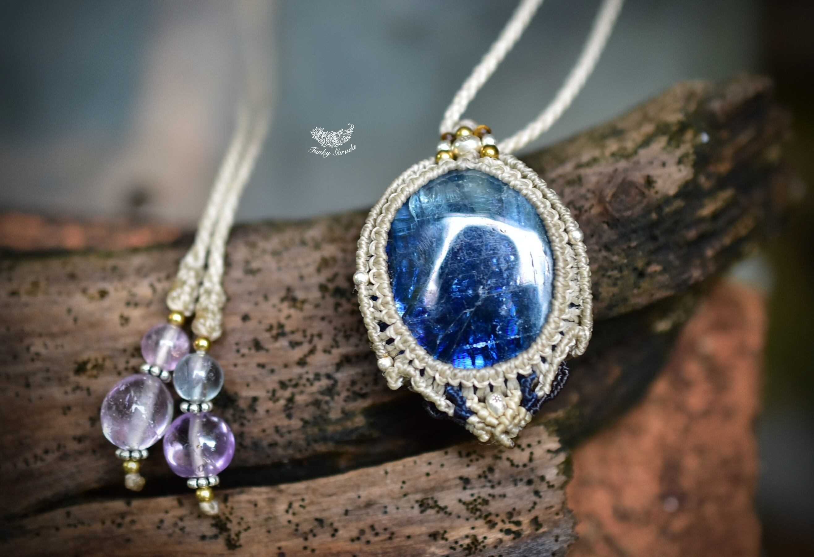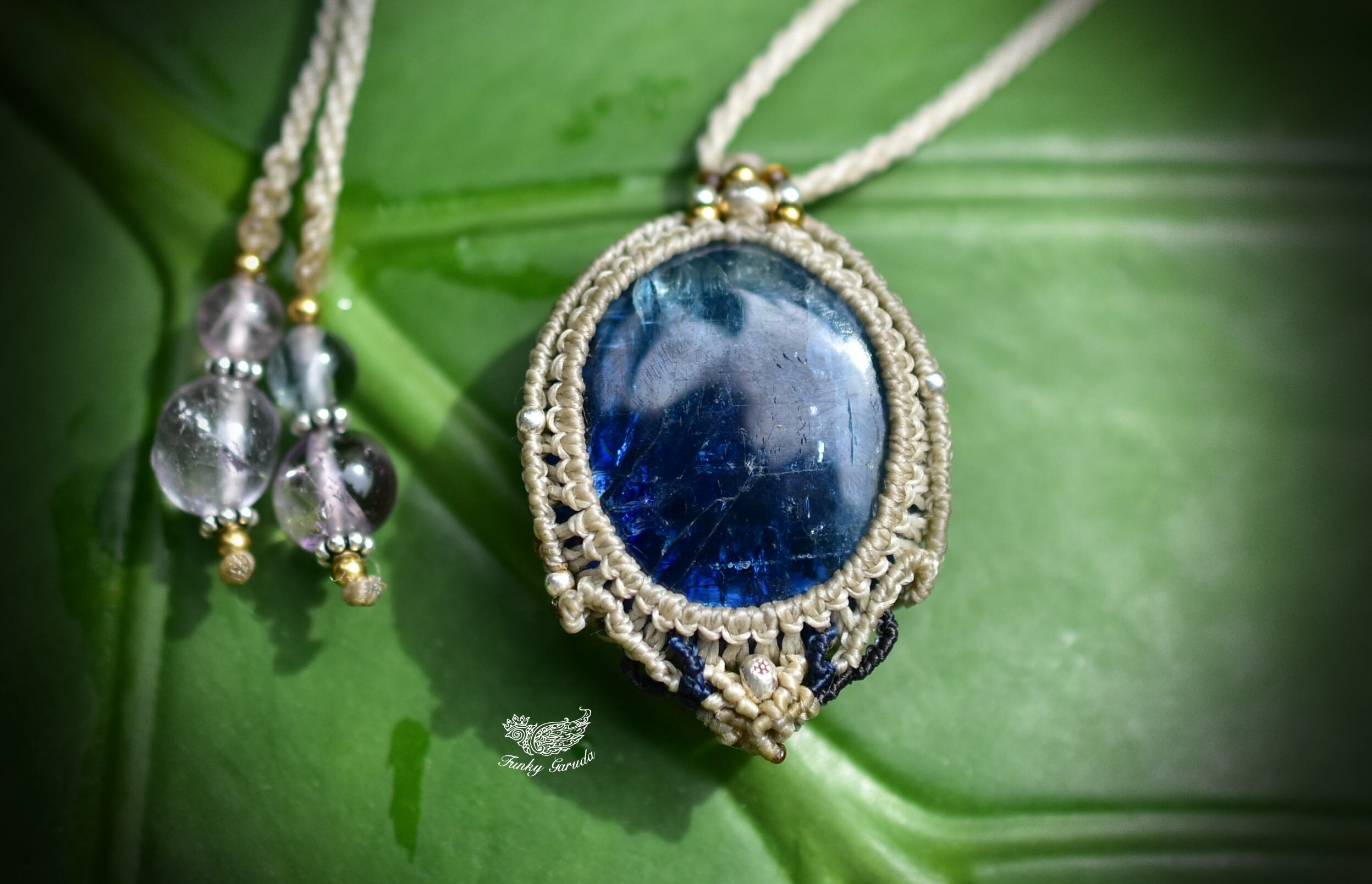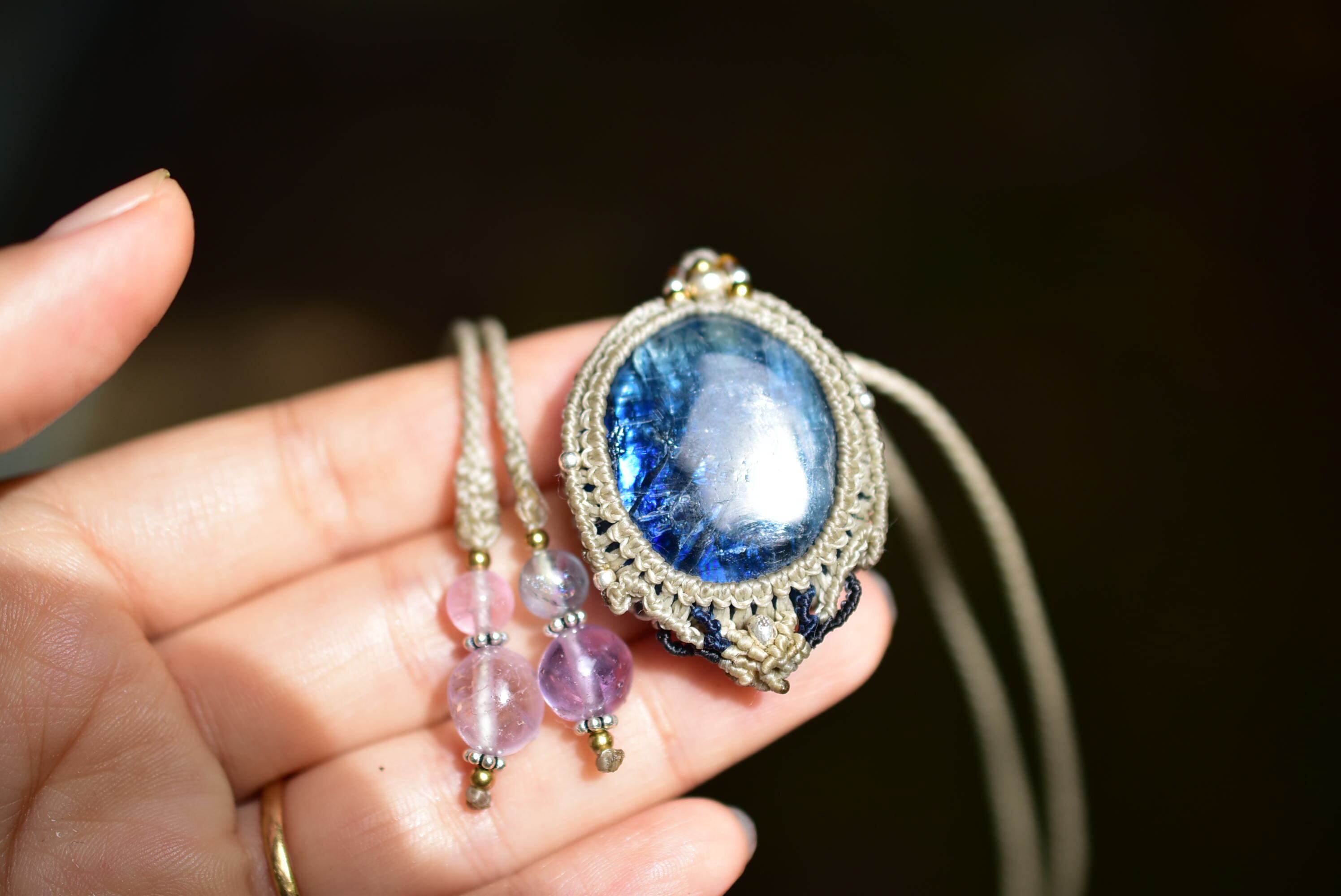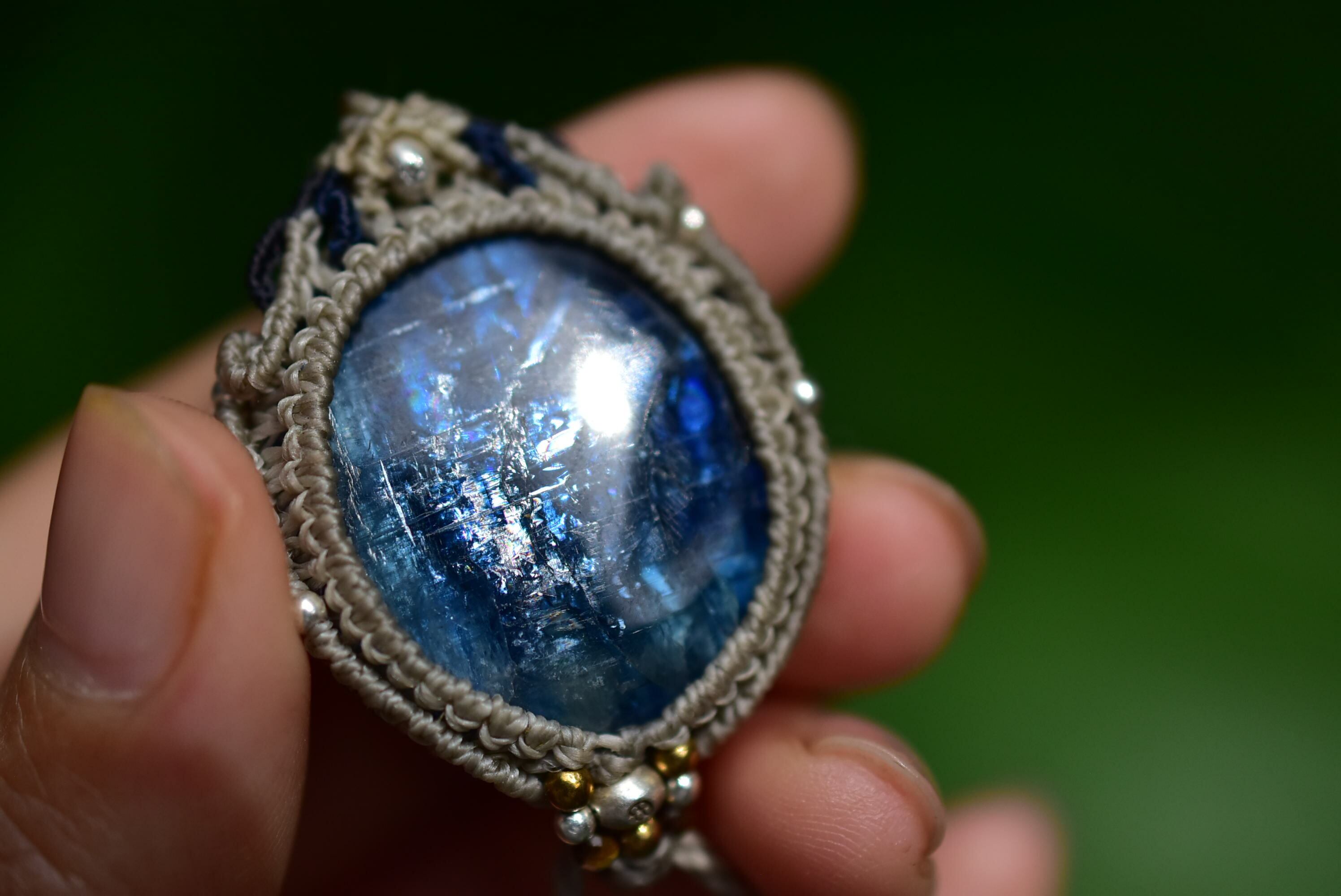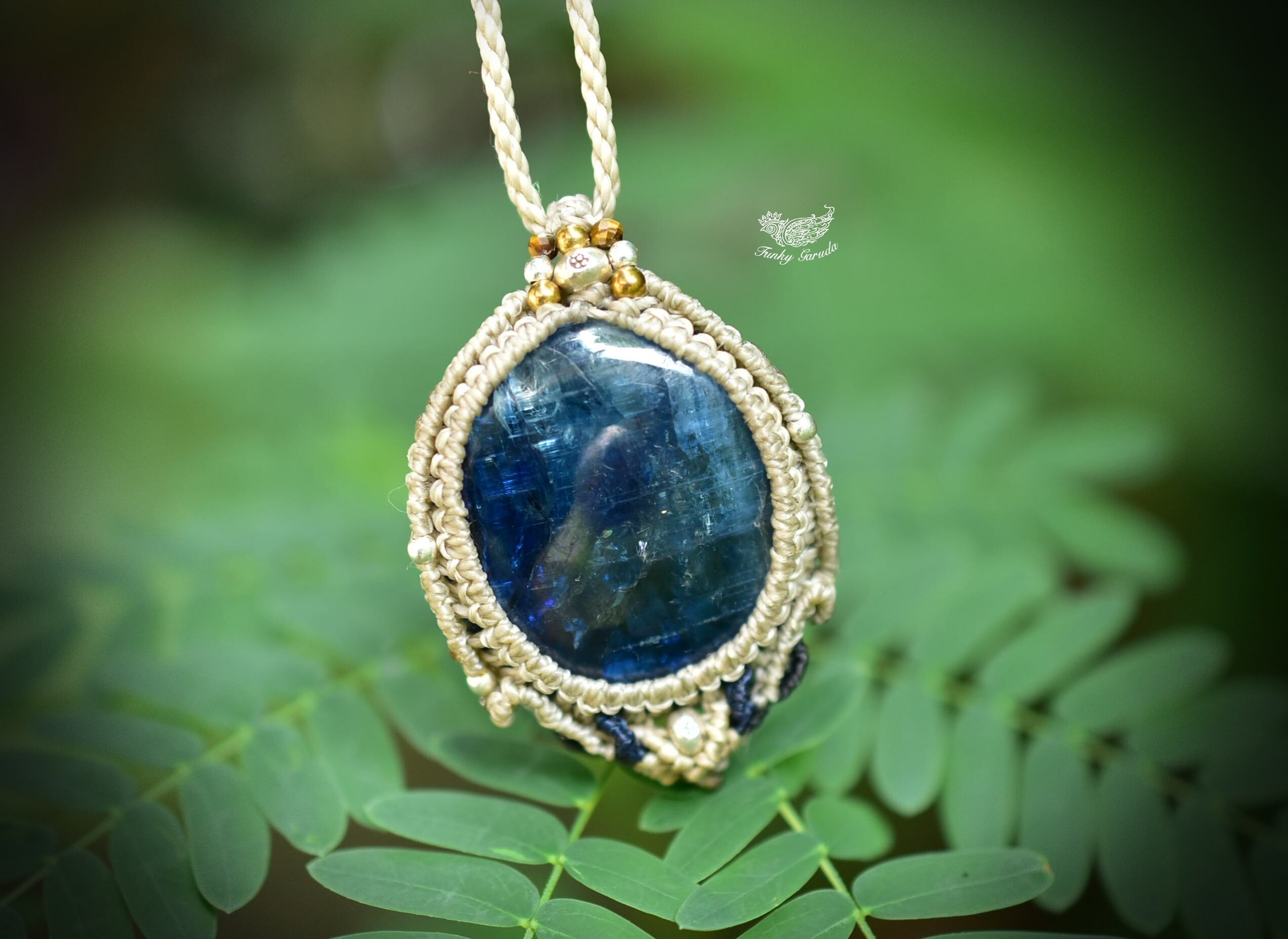 蒼い透明感★高品質★大粒★カイヤナイト マクラメペンダントkya015