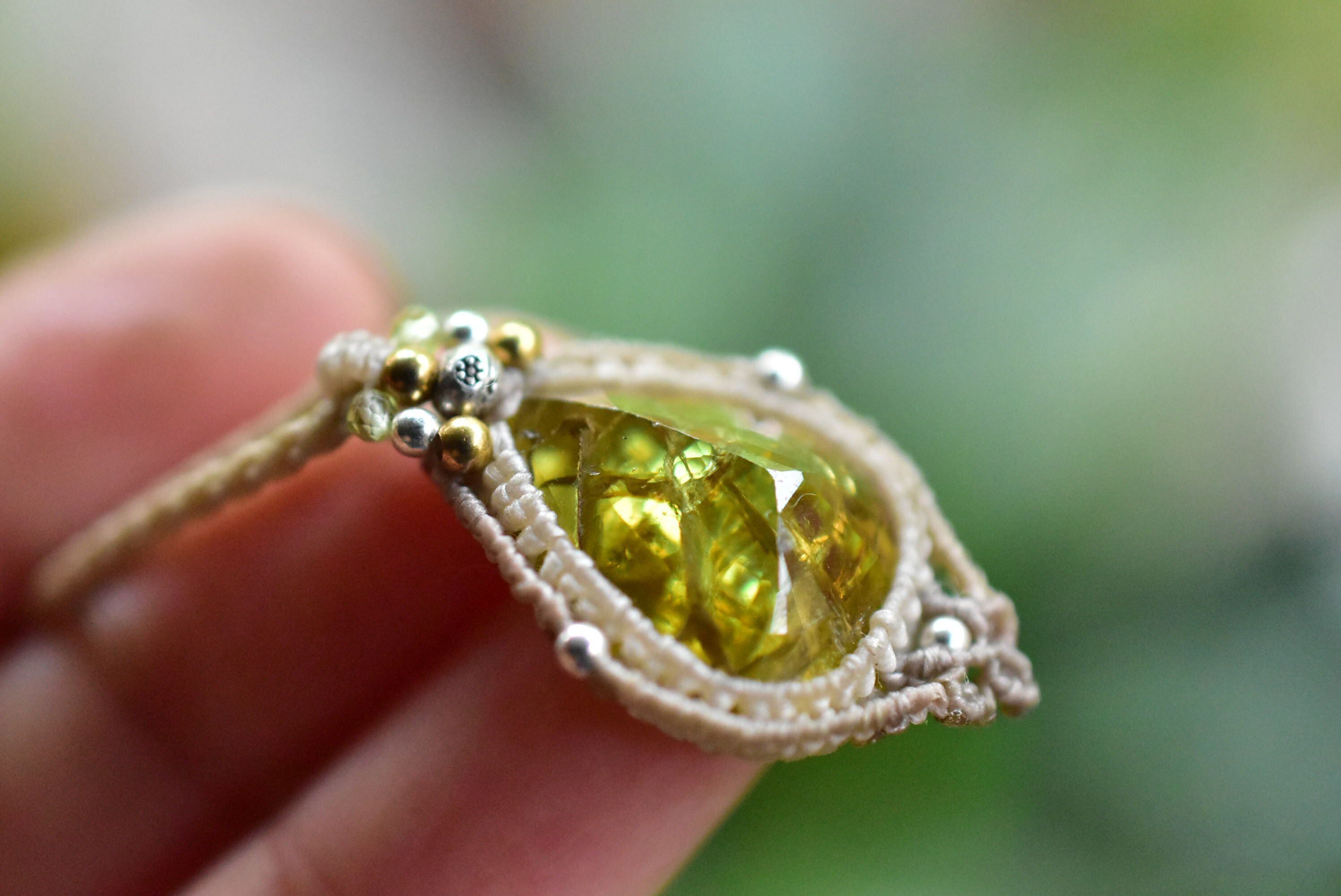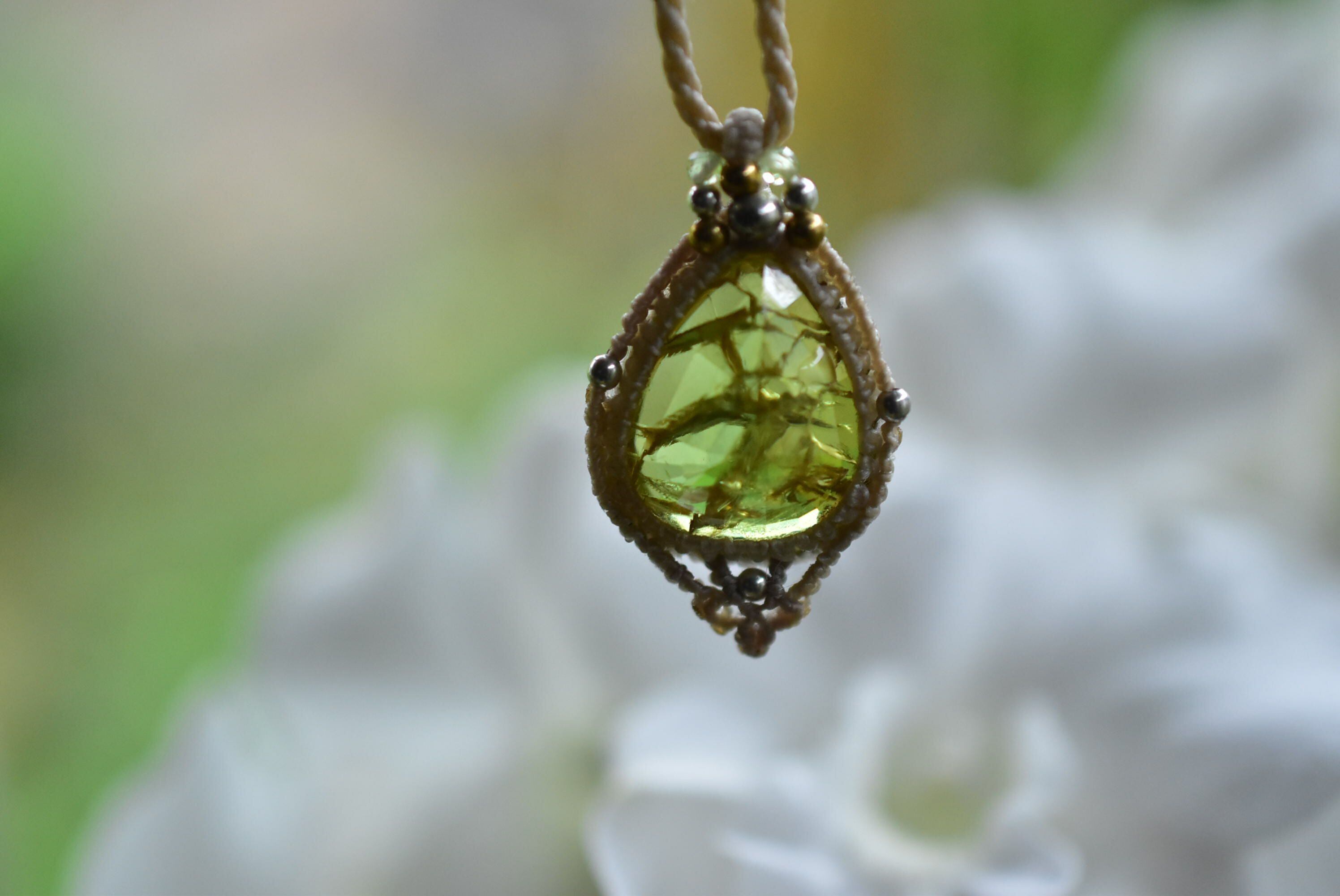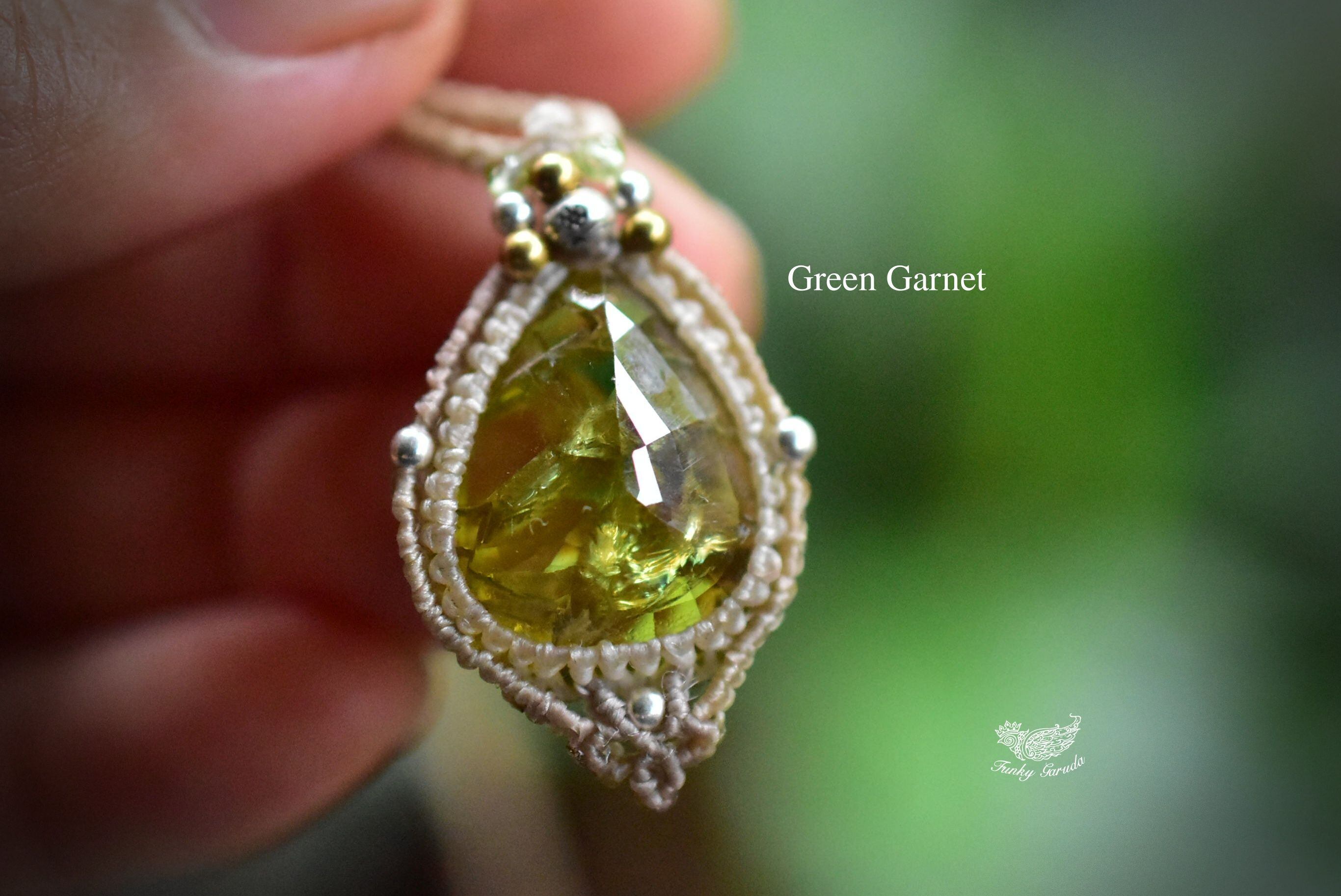 虹の艶めき★グリーンガーネット マクラメペンダントgarn001