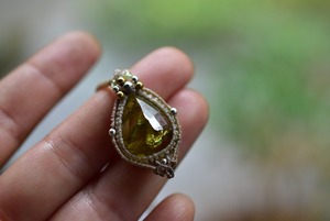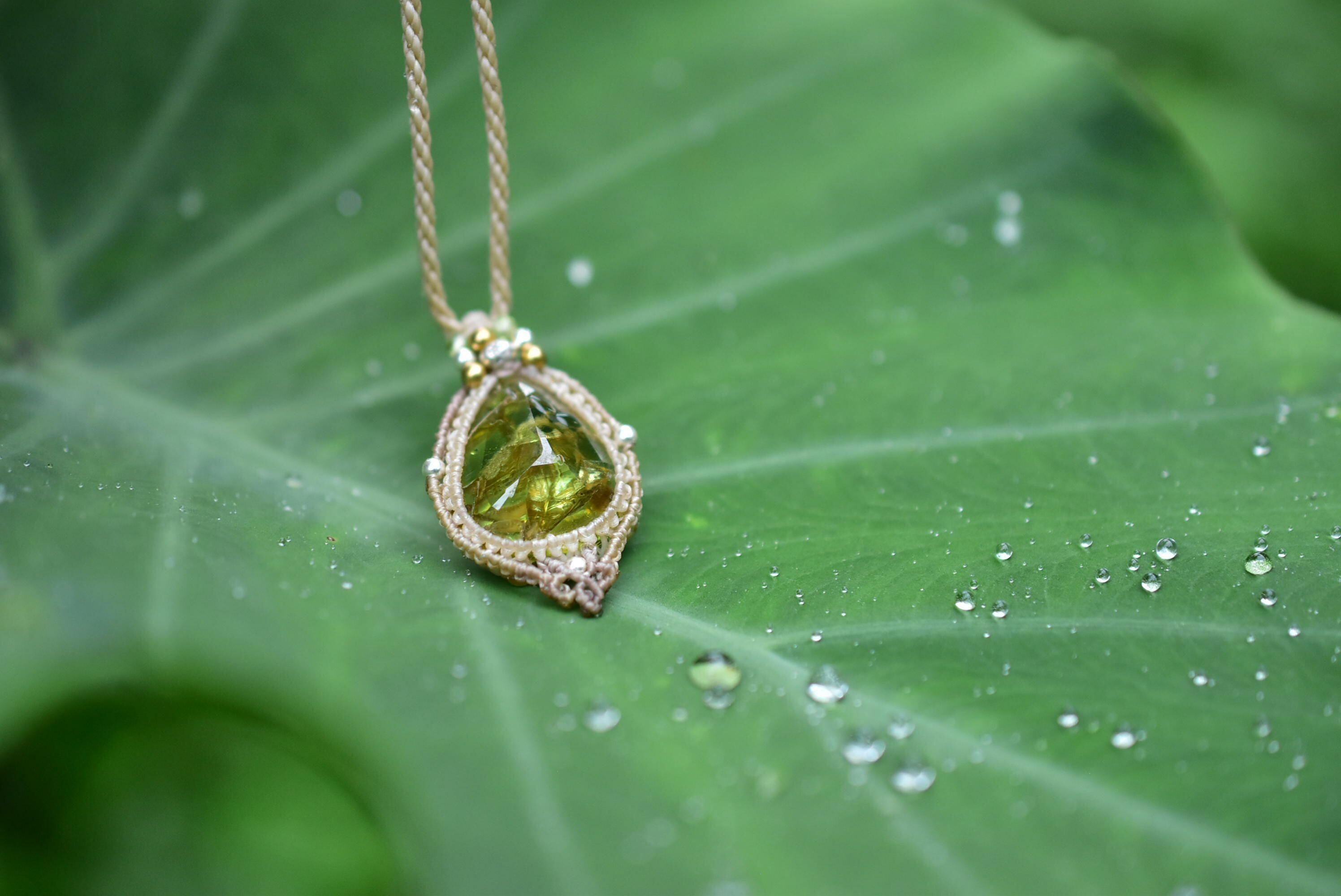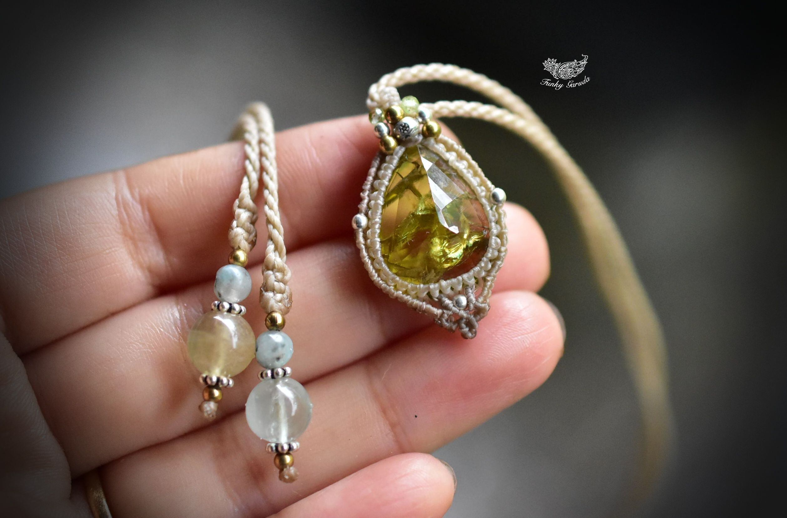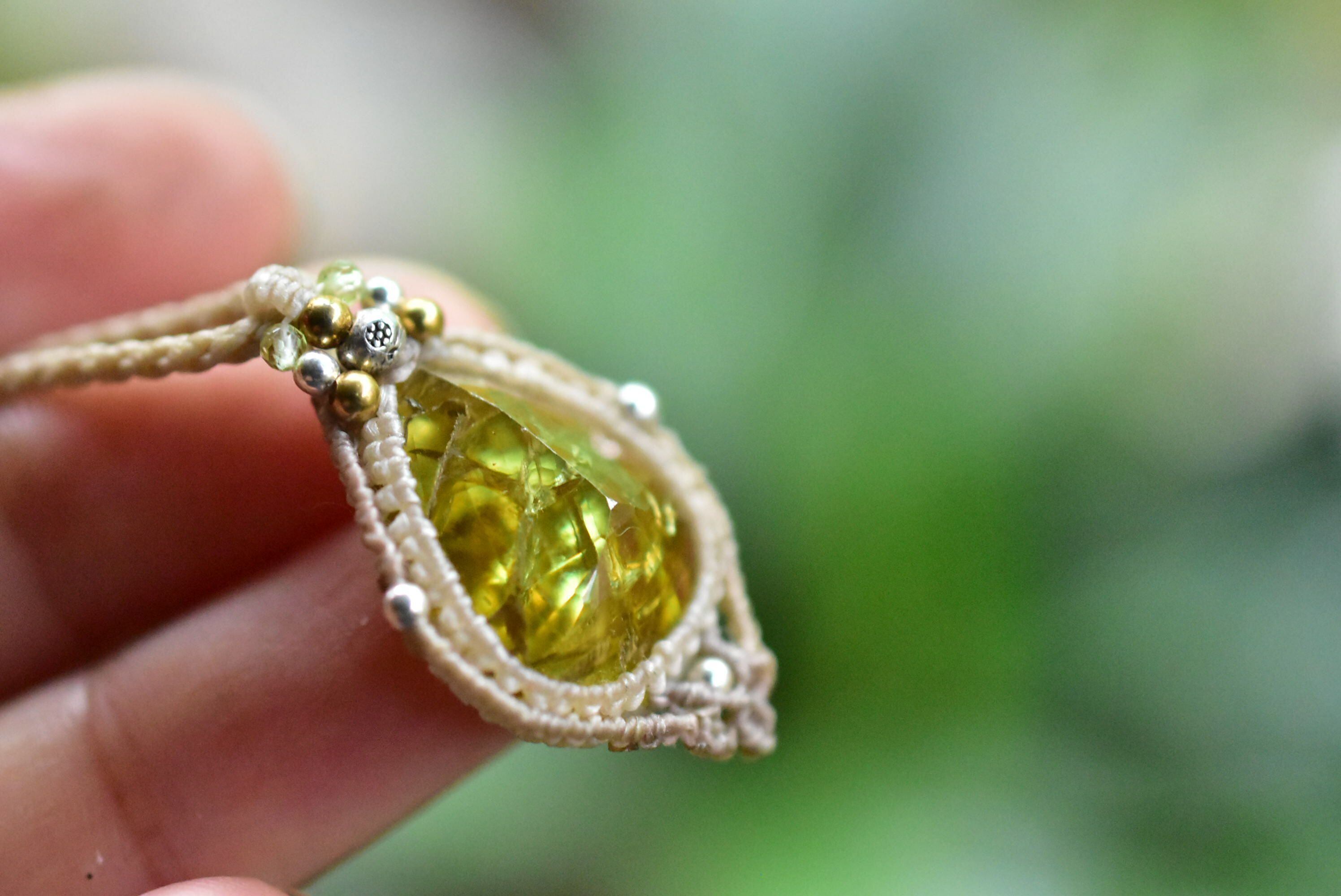 虹の艶めき★グリーンガーネット マクラメペンダントgarn001