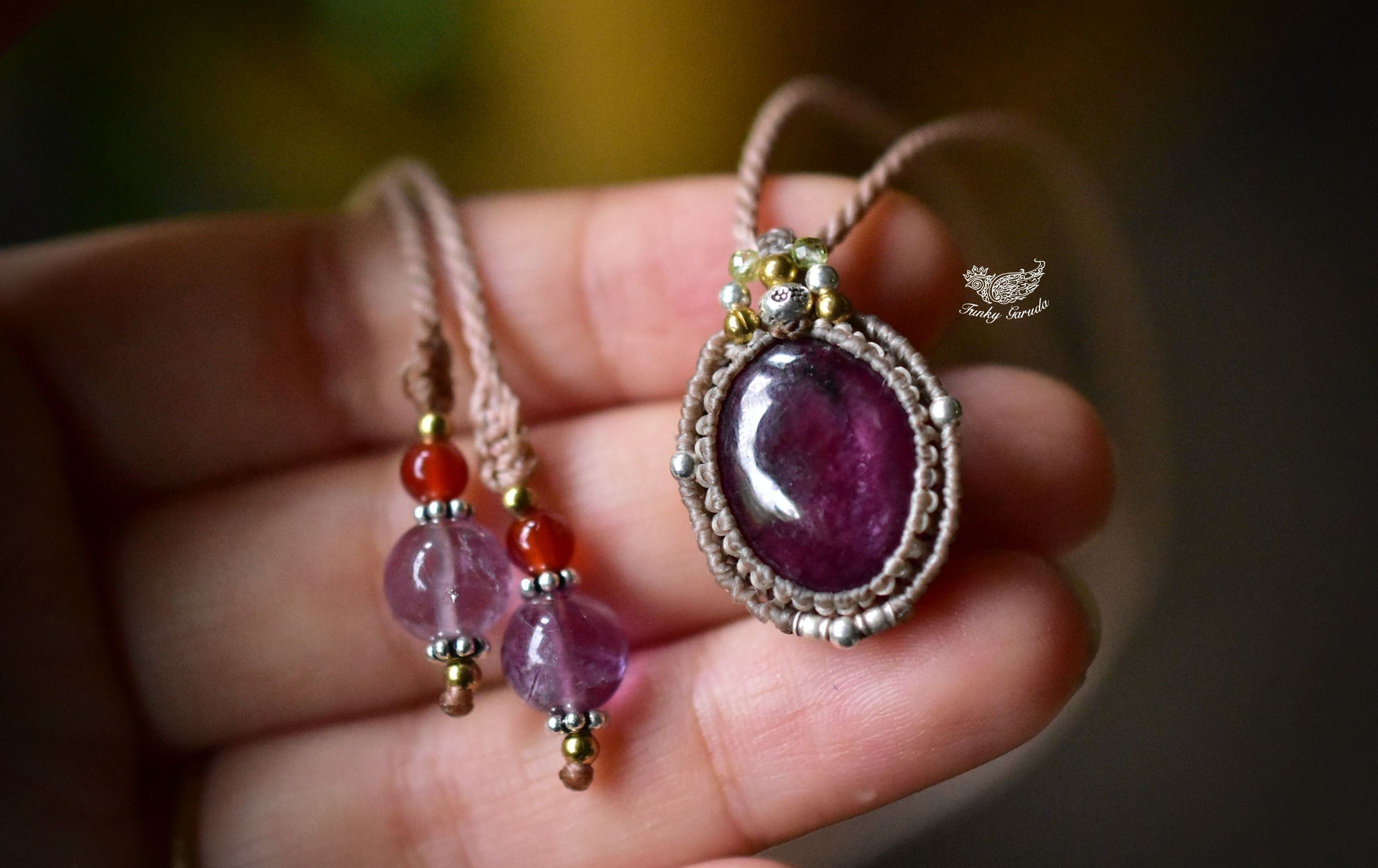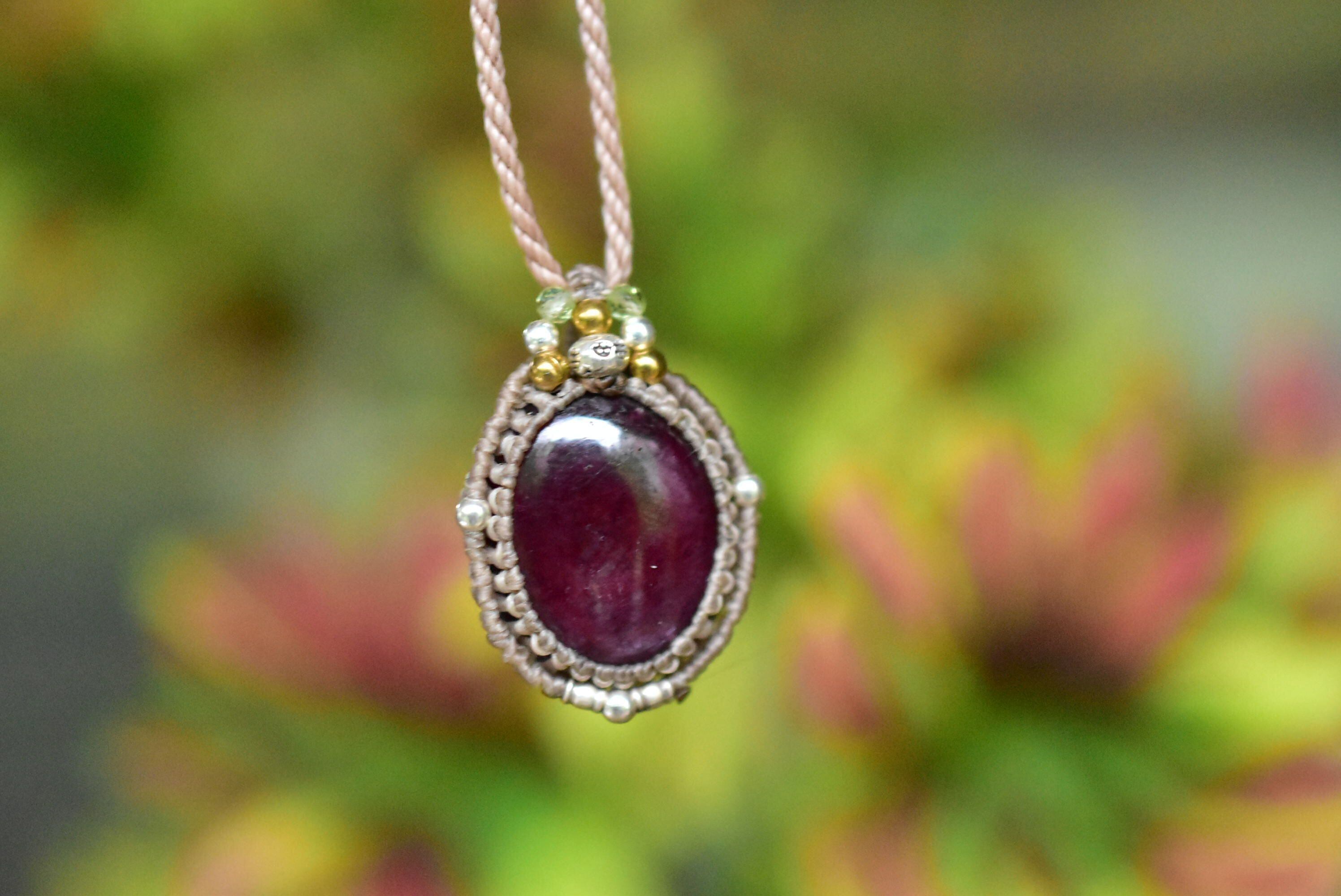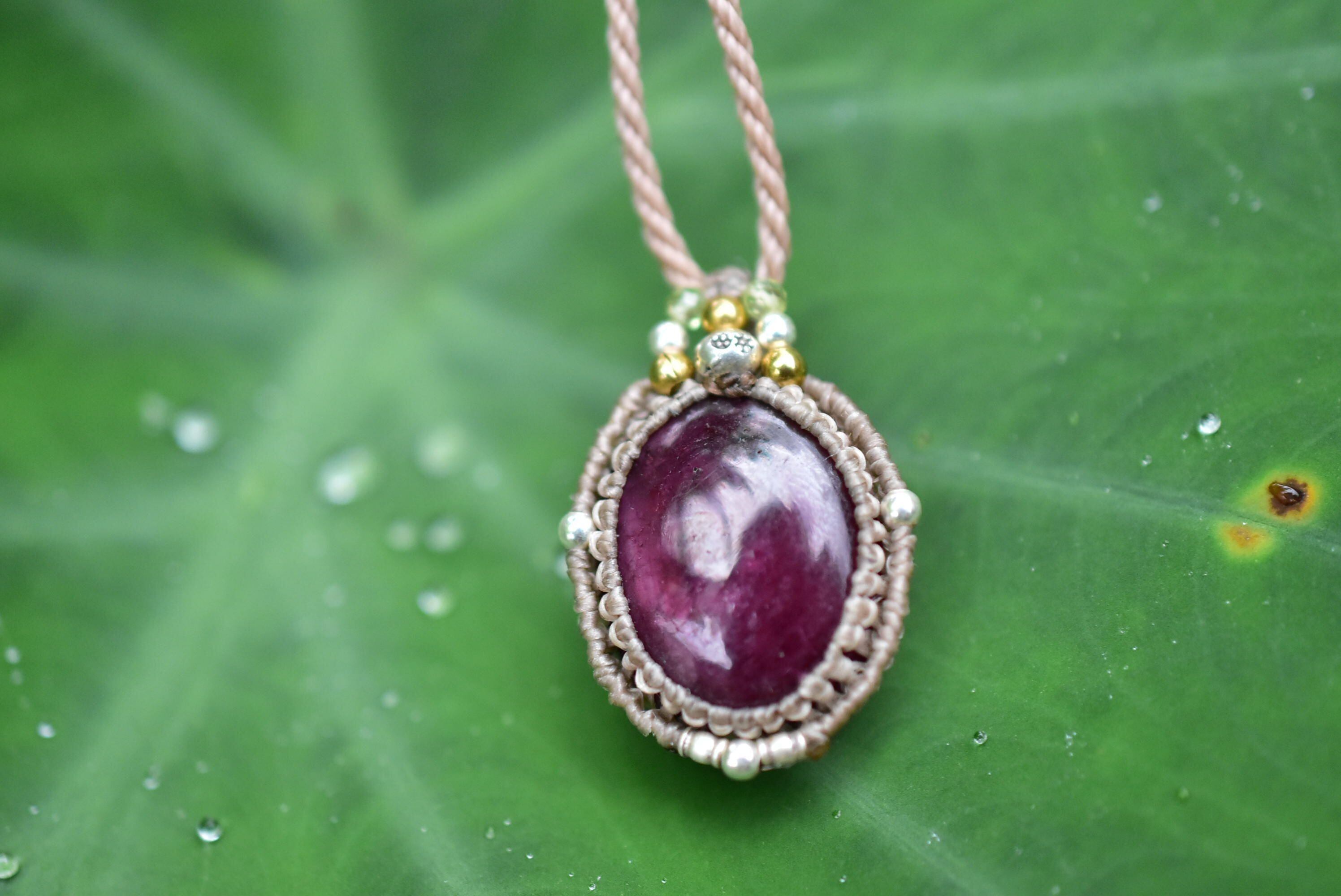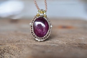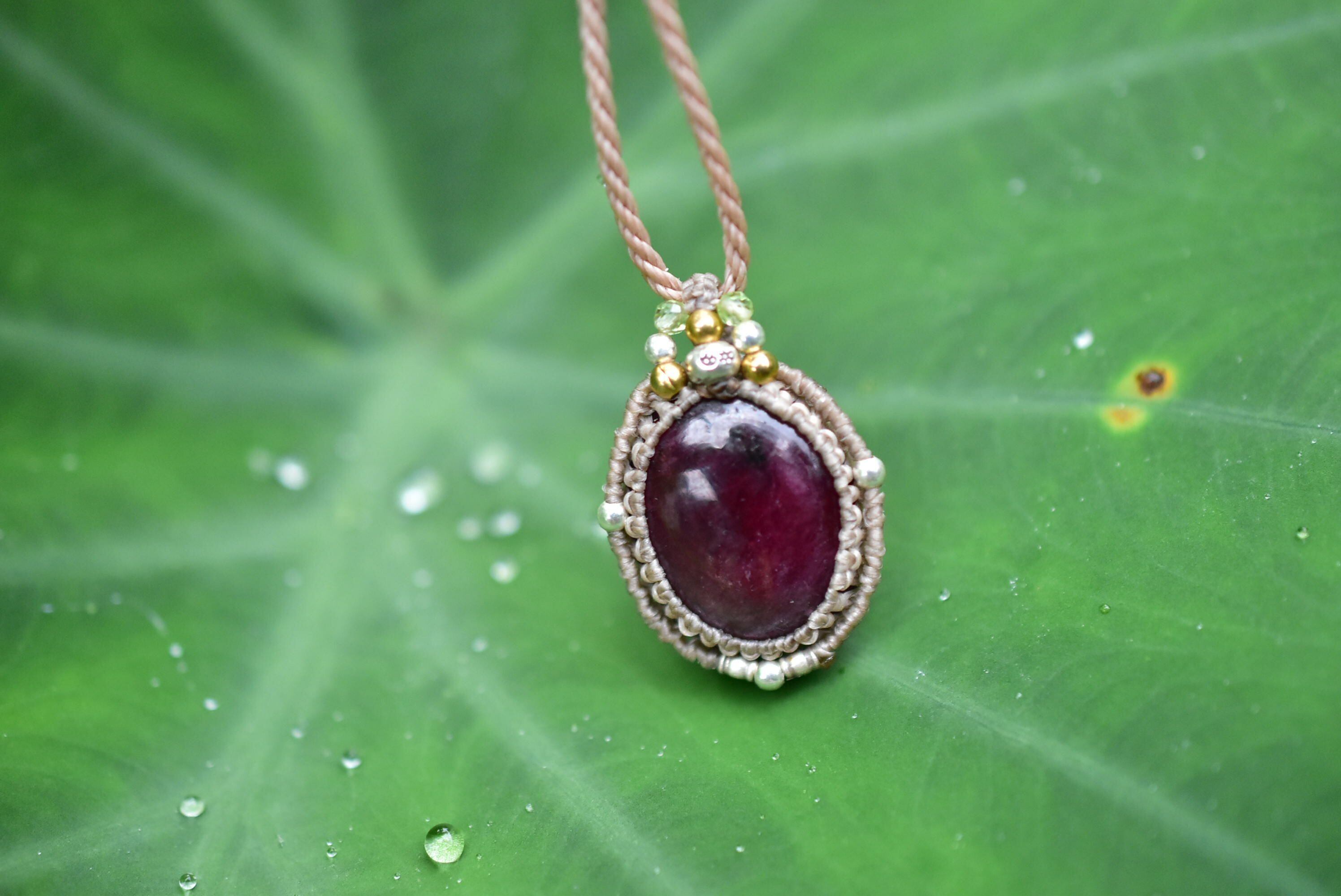 極上ゆらめく艶シラー★ルビー マクラメペンダント ruby052
