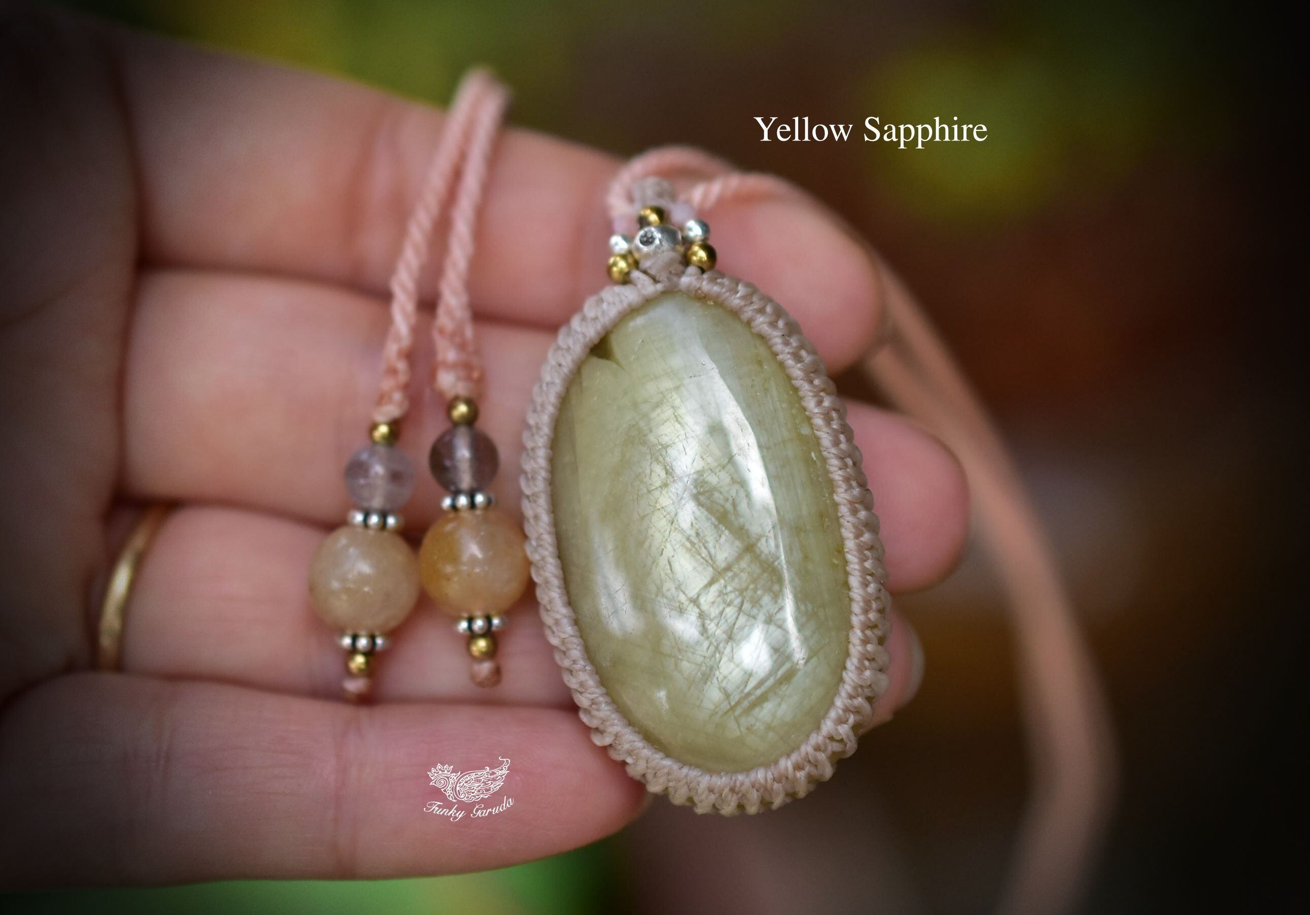 柔らかな輝き★イエローサファイア マクラメペンダント sapy013