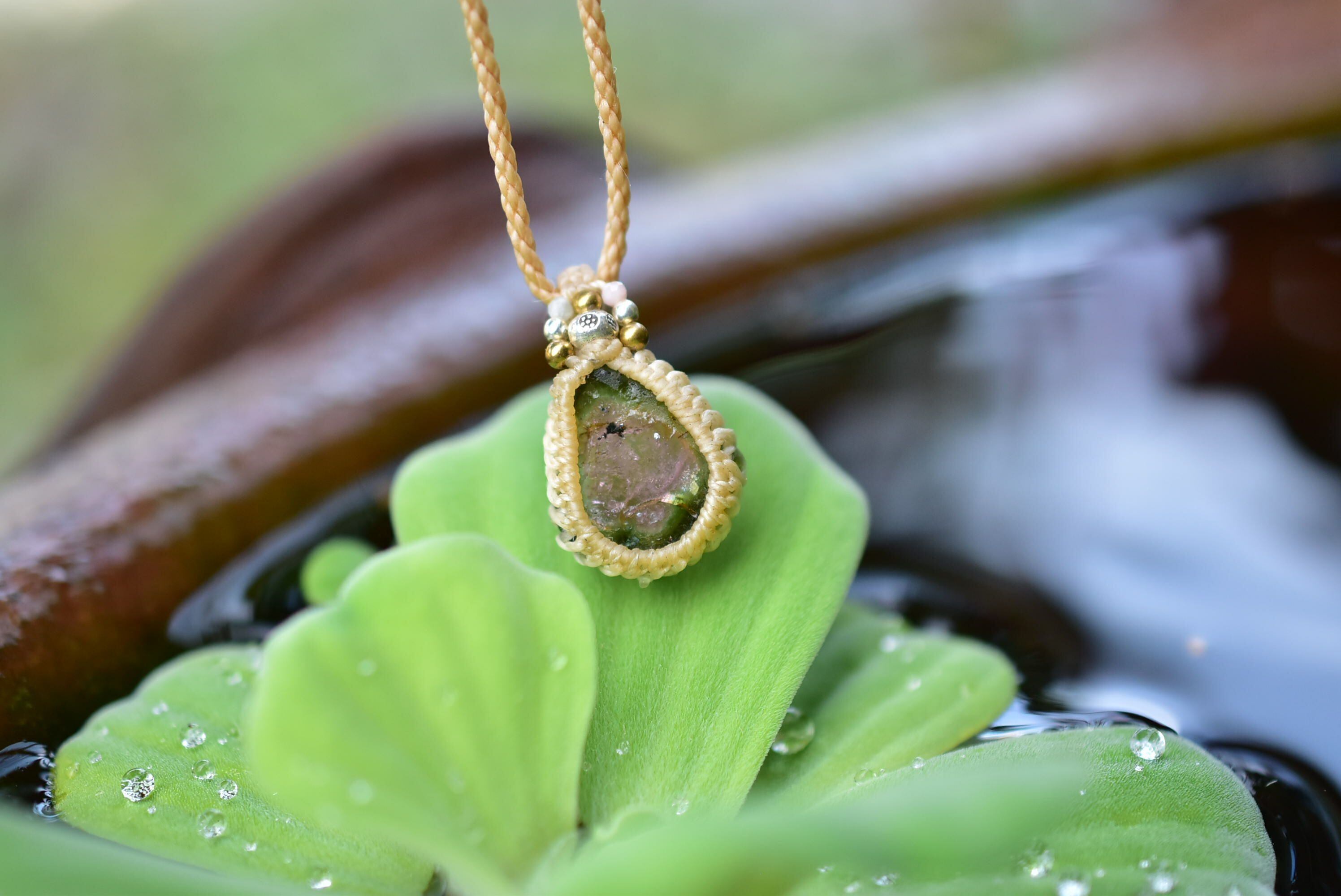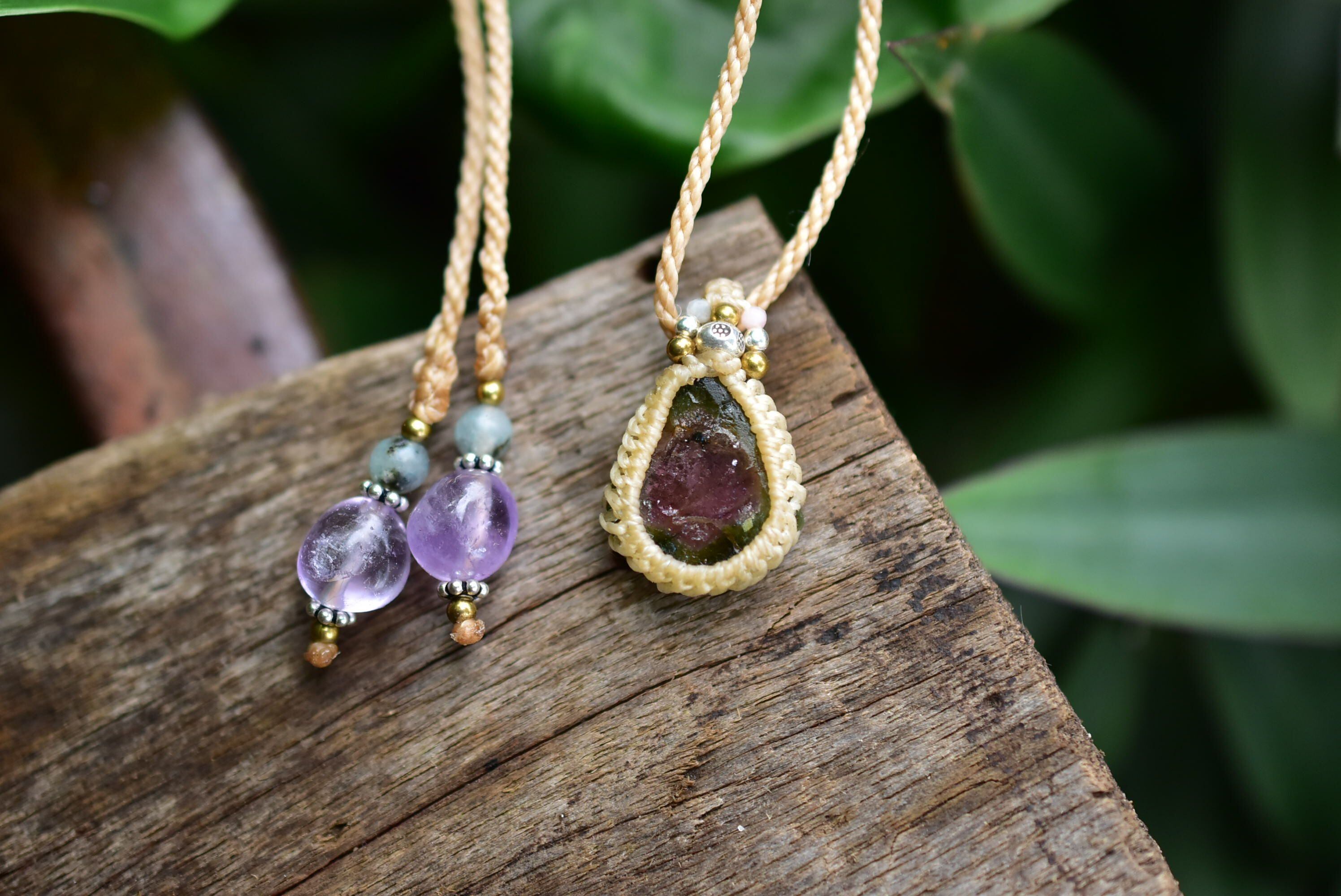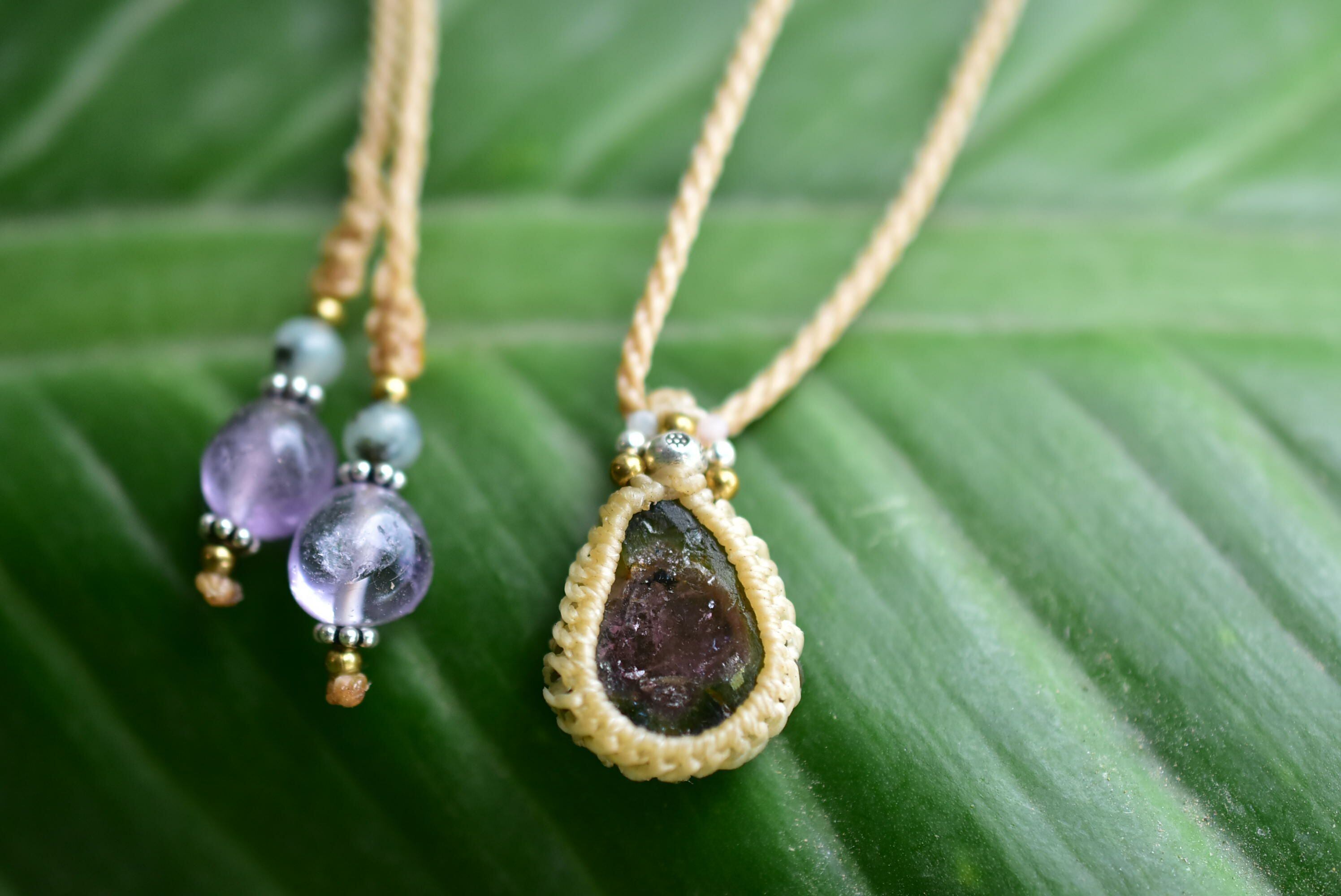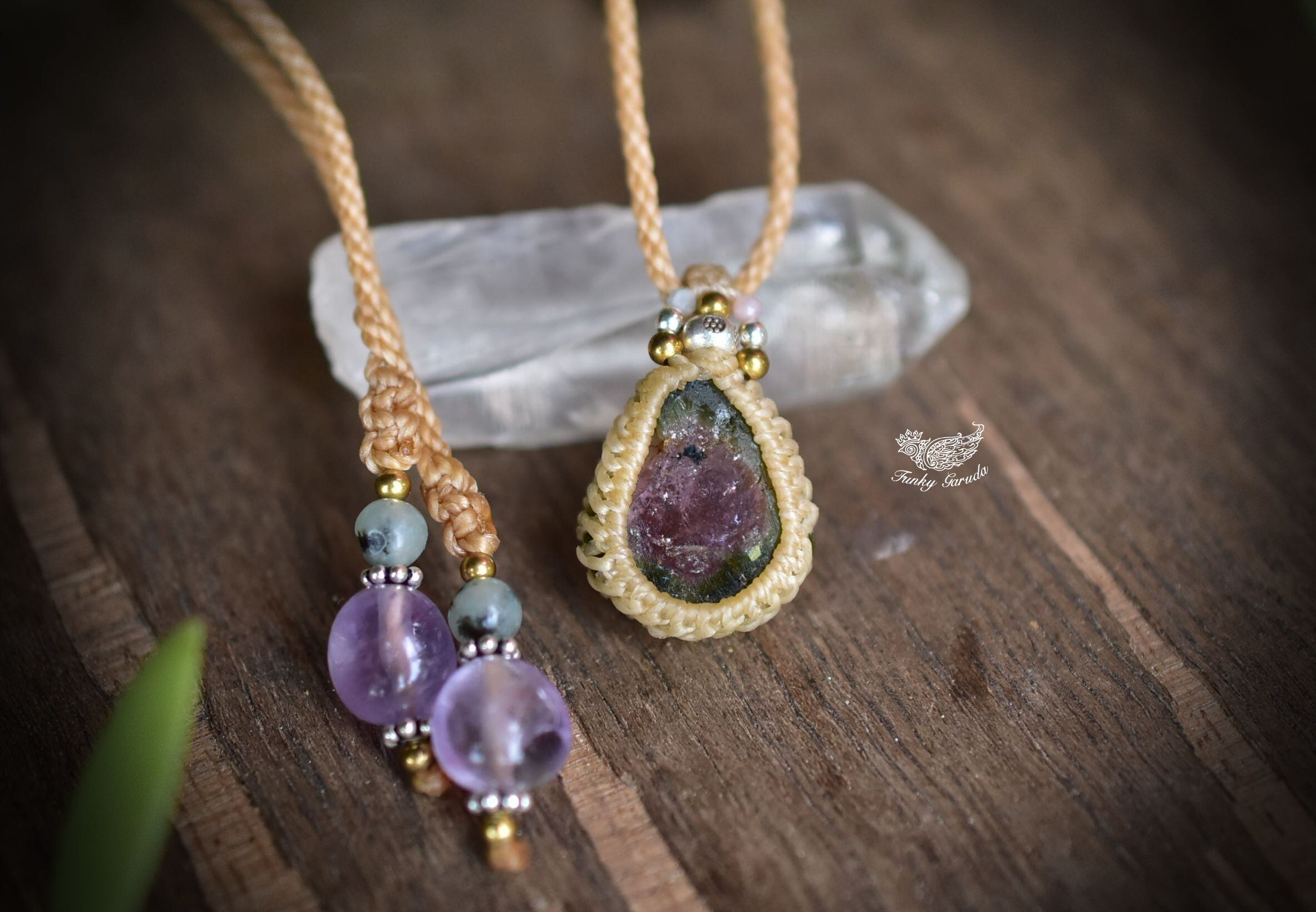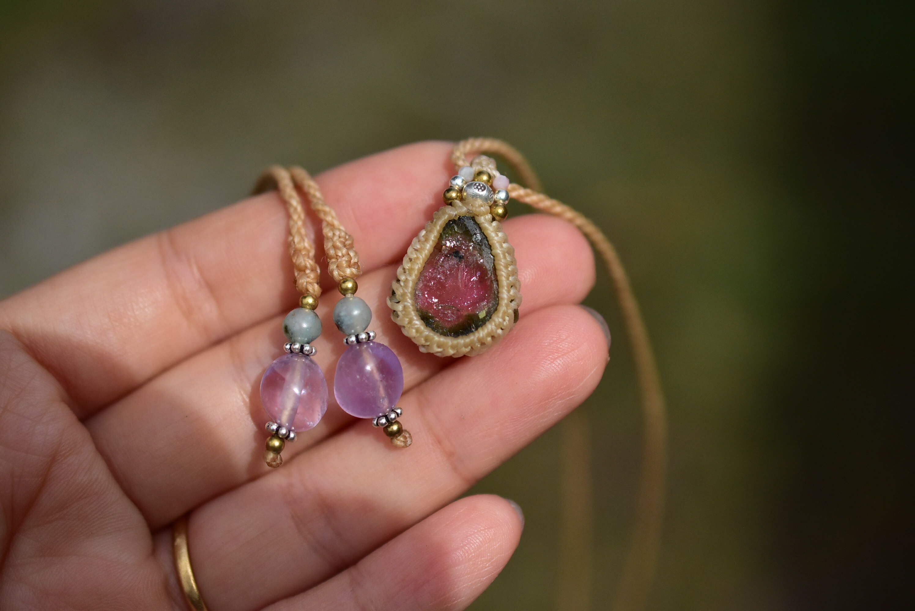 このたびは初めて、ウォーターメロントルマリンをマクラメ編みペンダントに仕上げています。