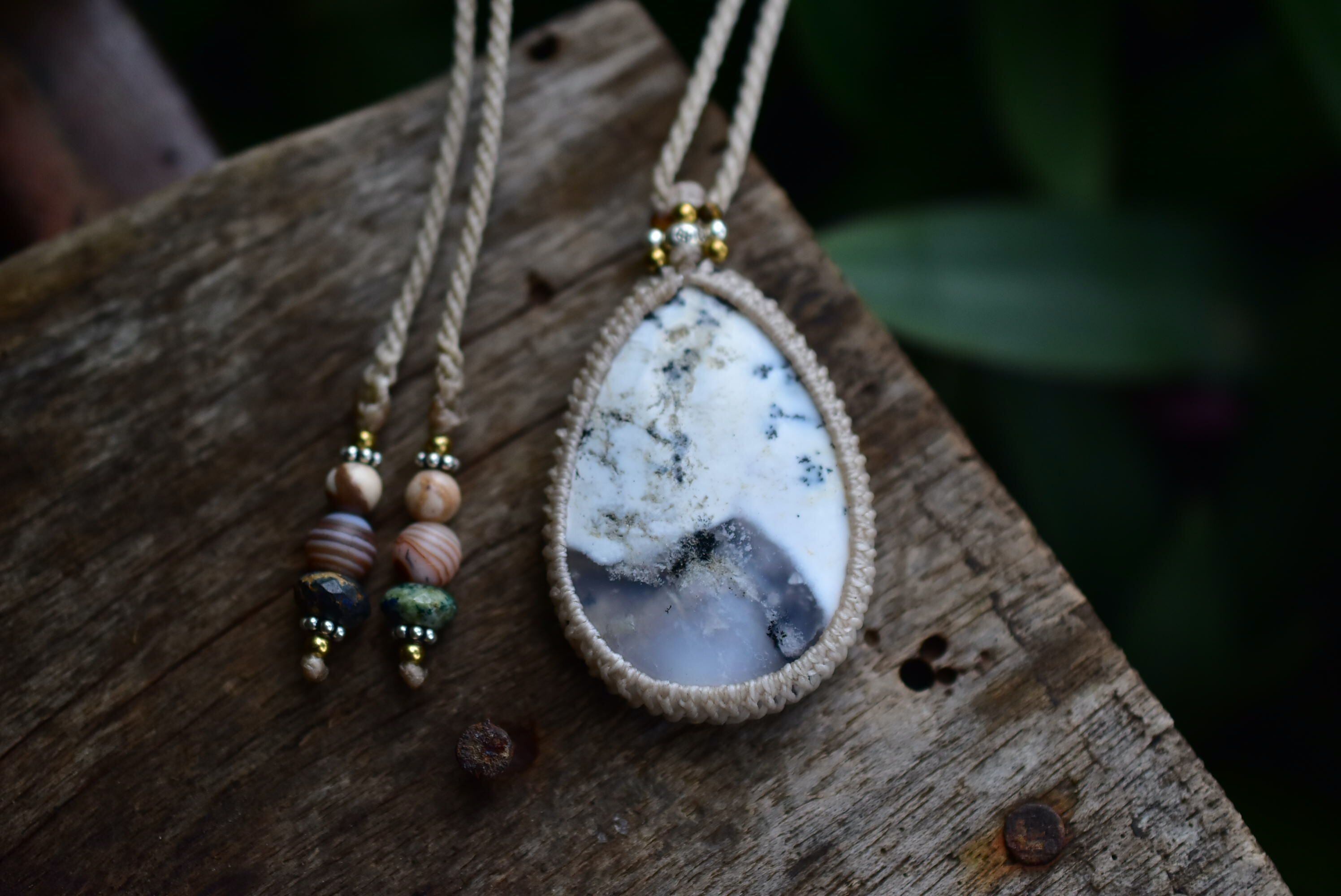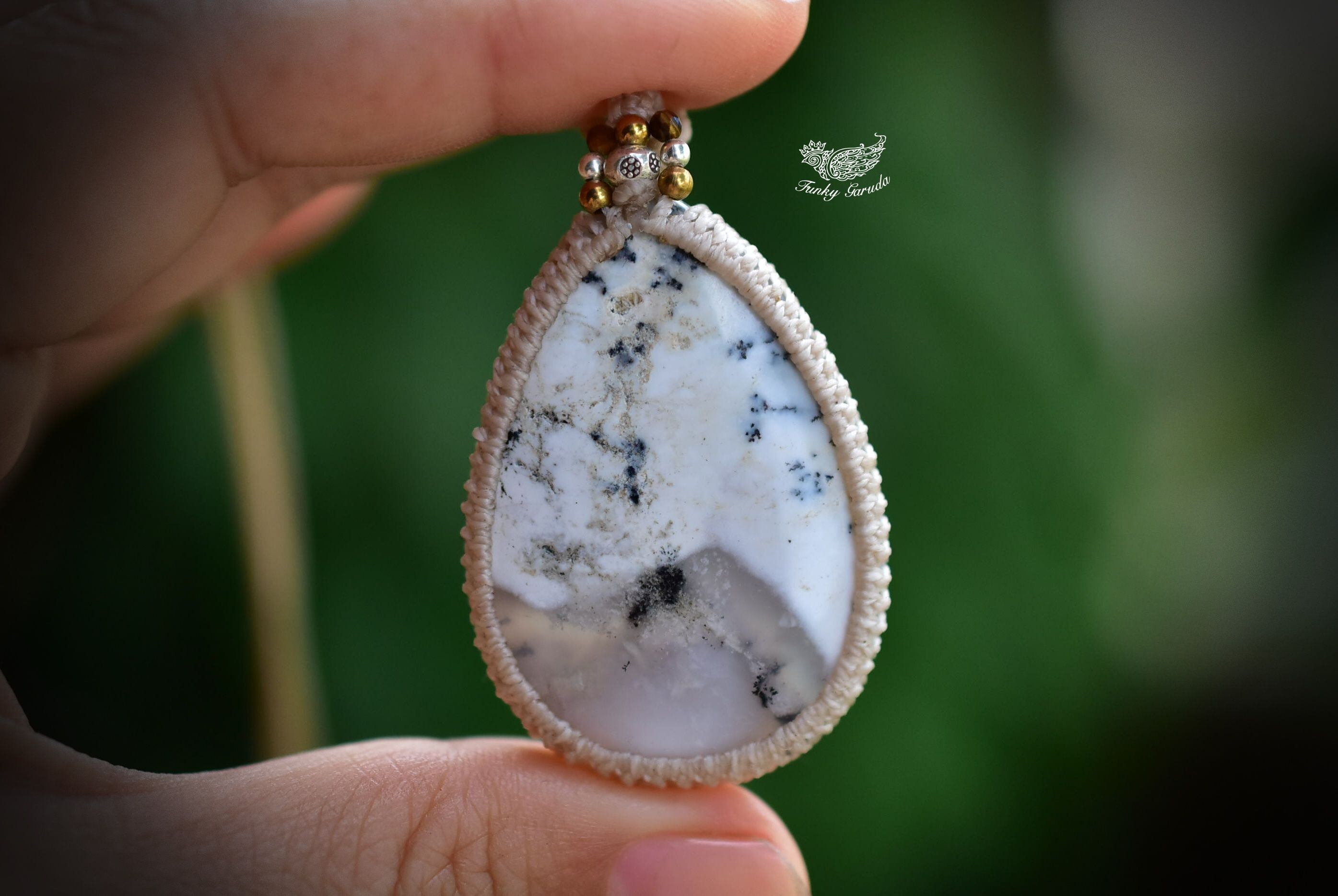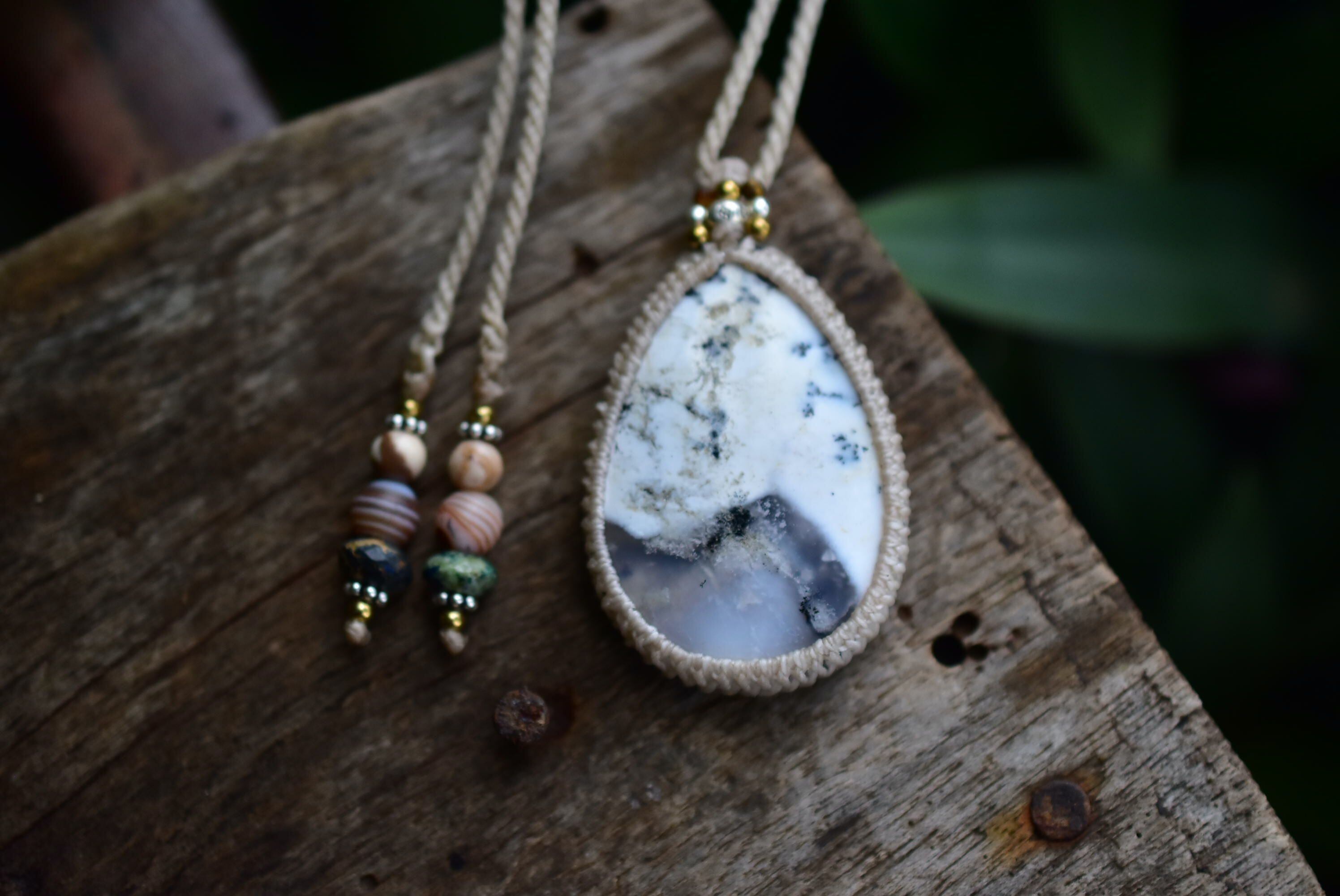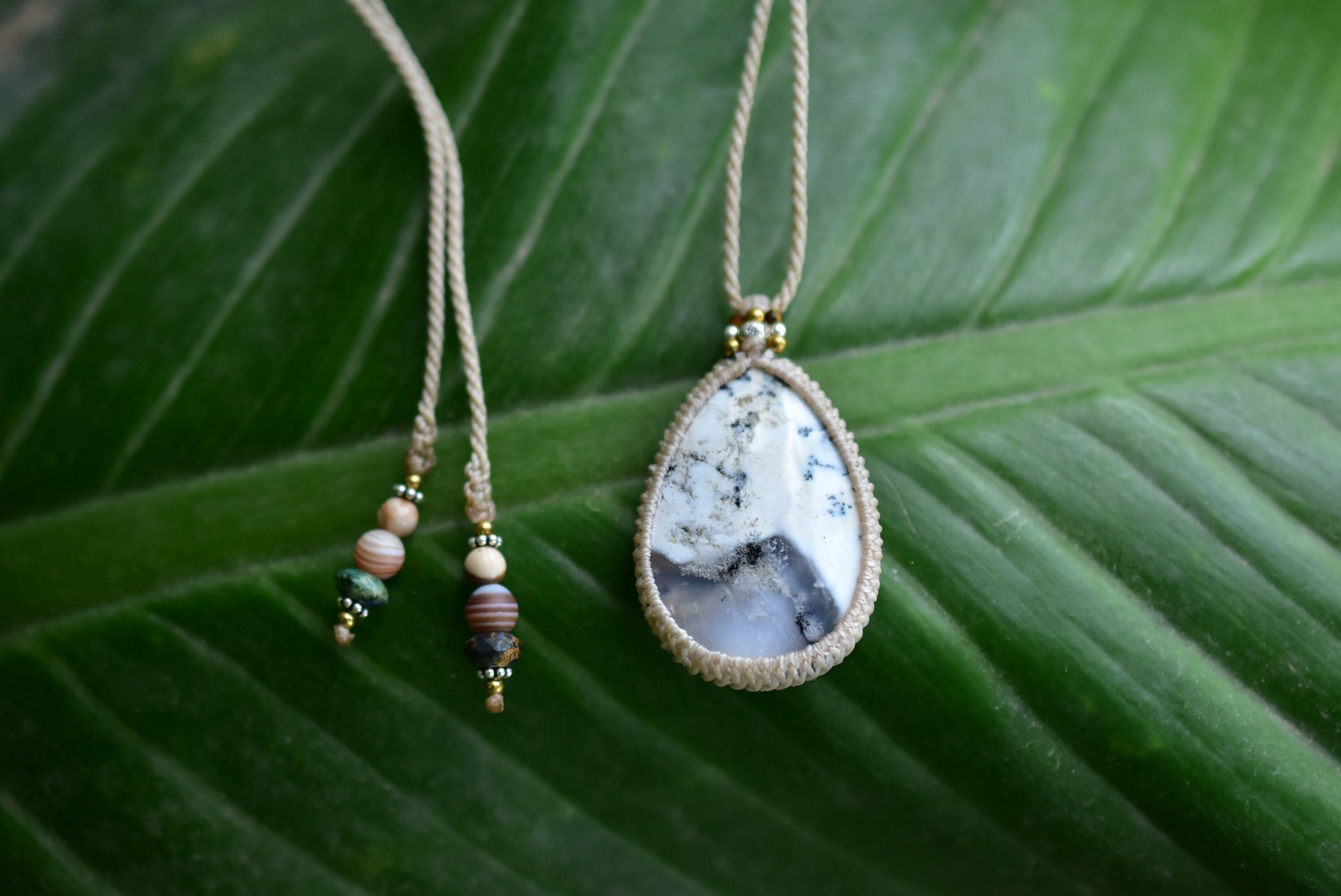 ◆このたびはキナリ色の蝋引き糸を使用しマクラメ編み装飾を施しました。