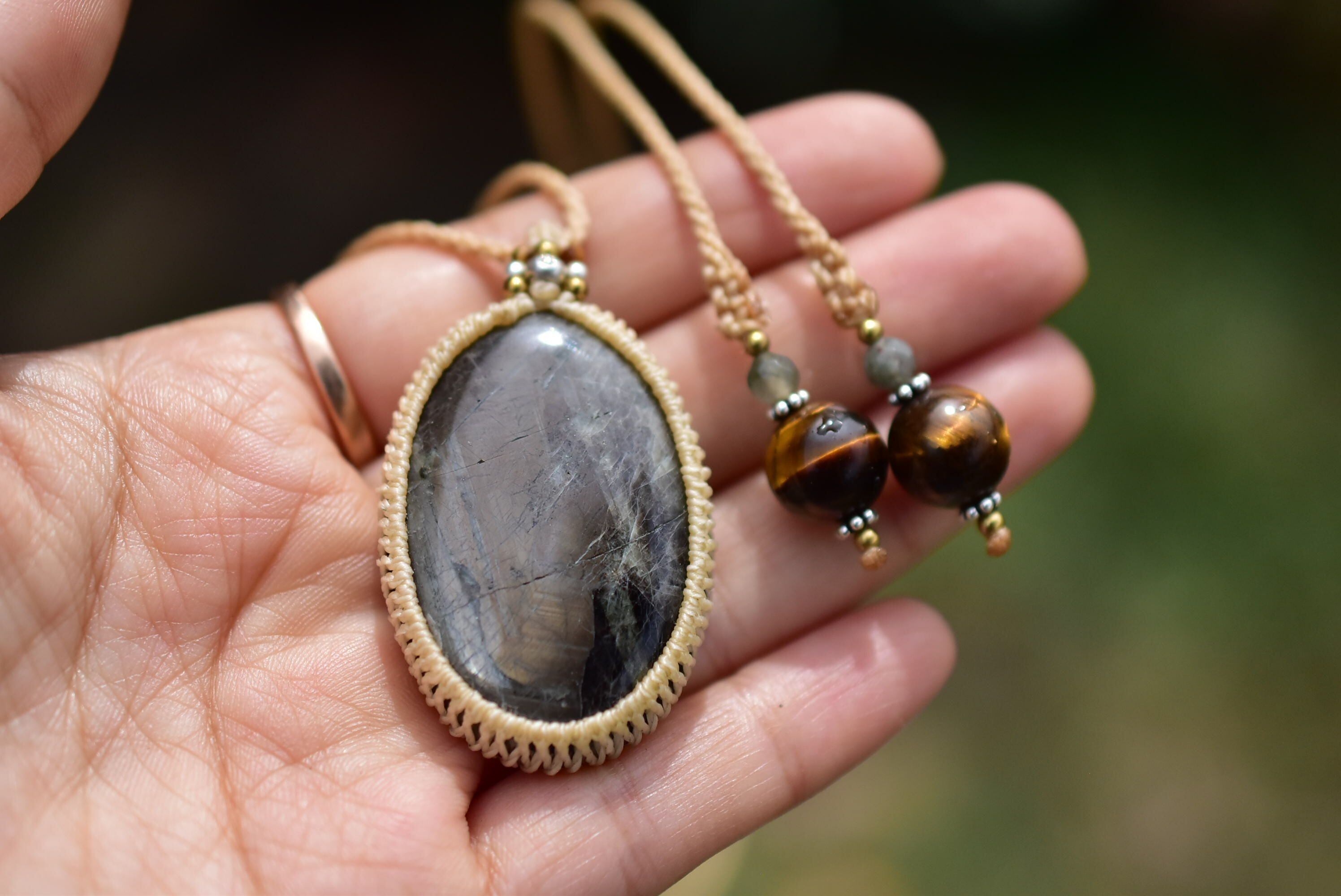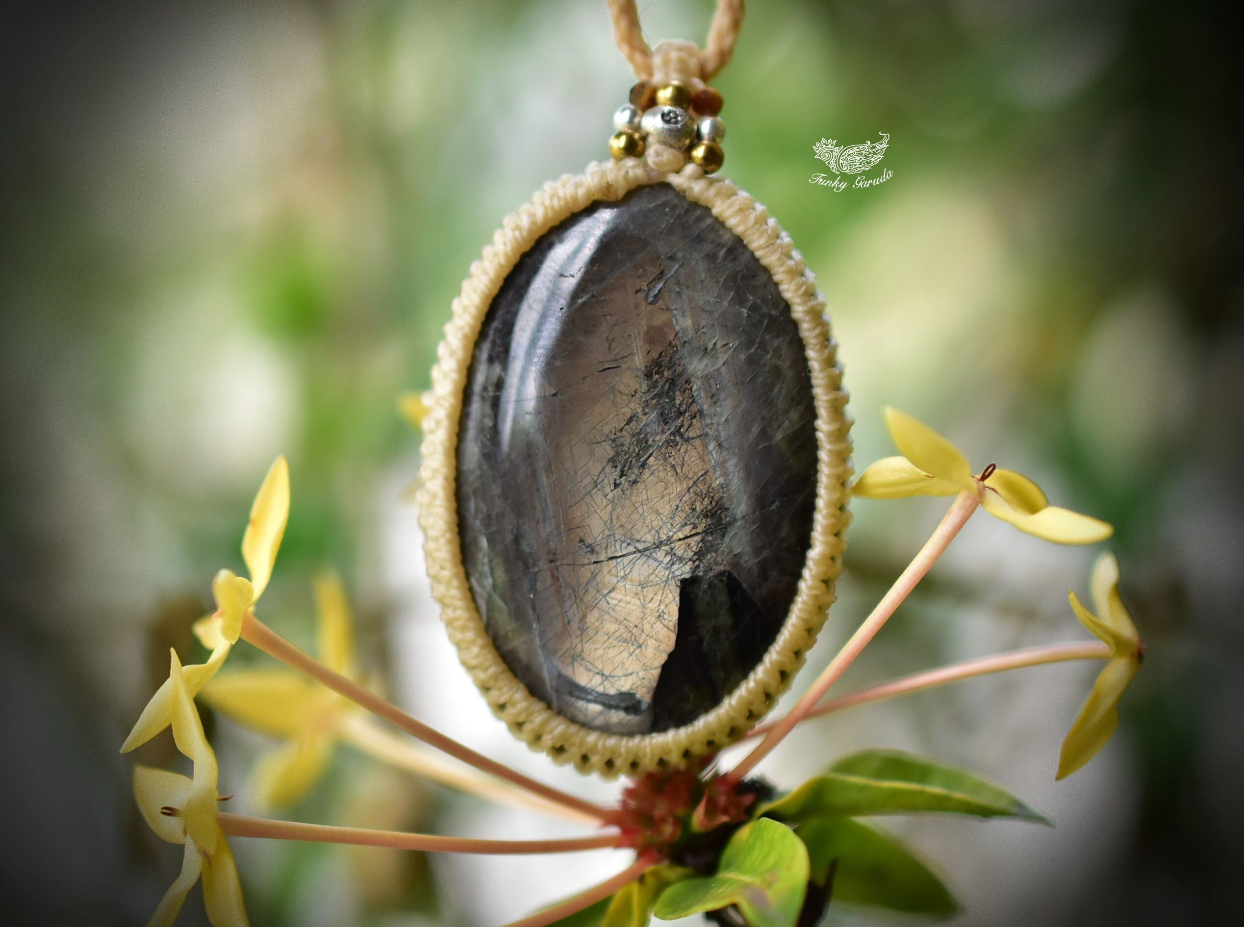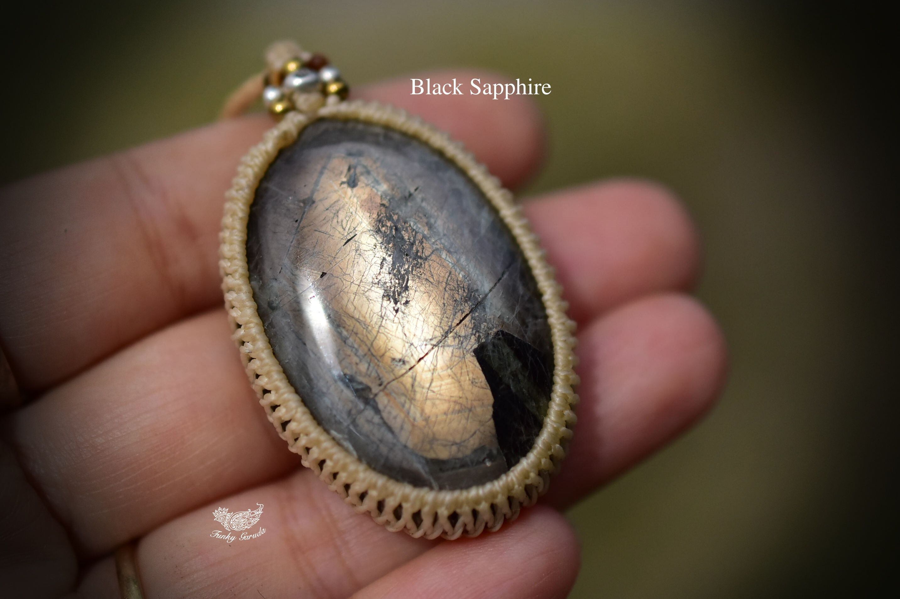 渋い存在感★120ct★ブラックサファイア マクラメペンダント sapy014