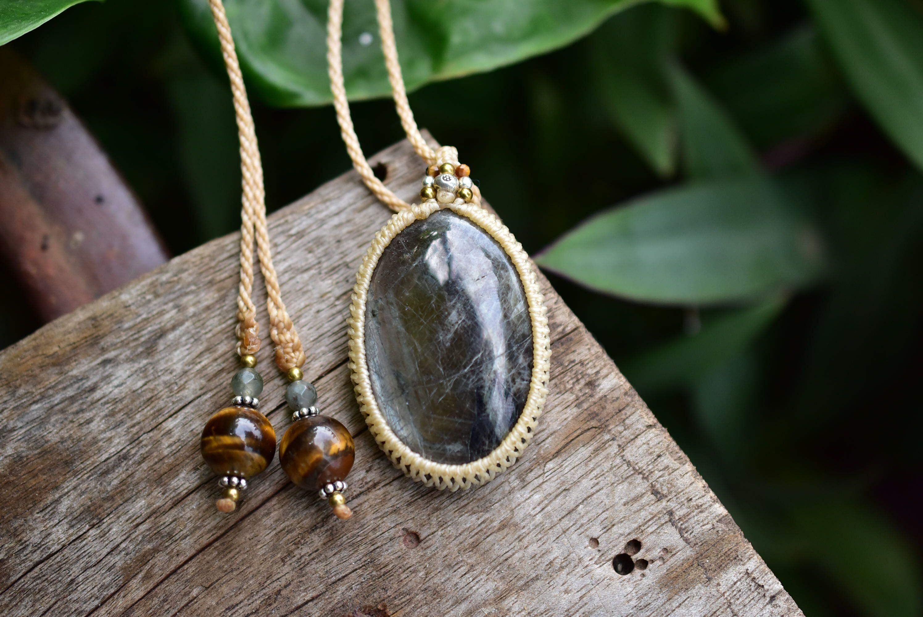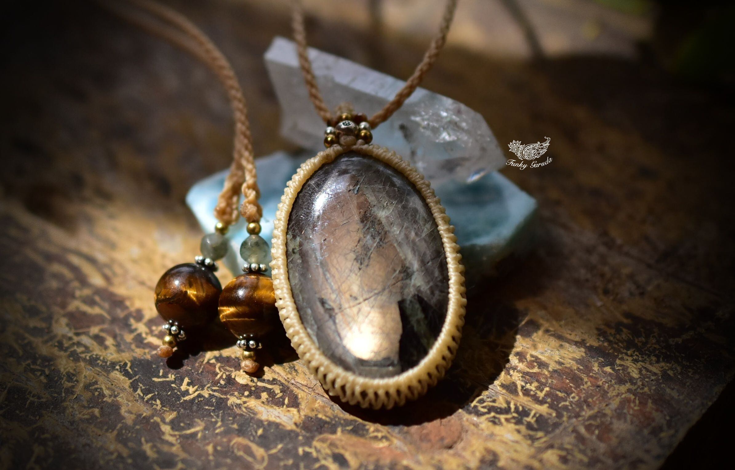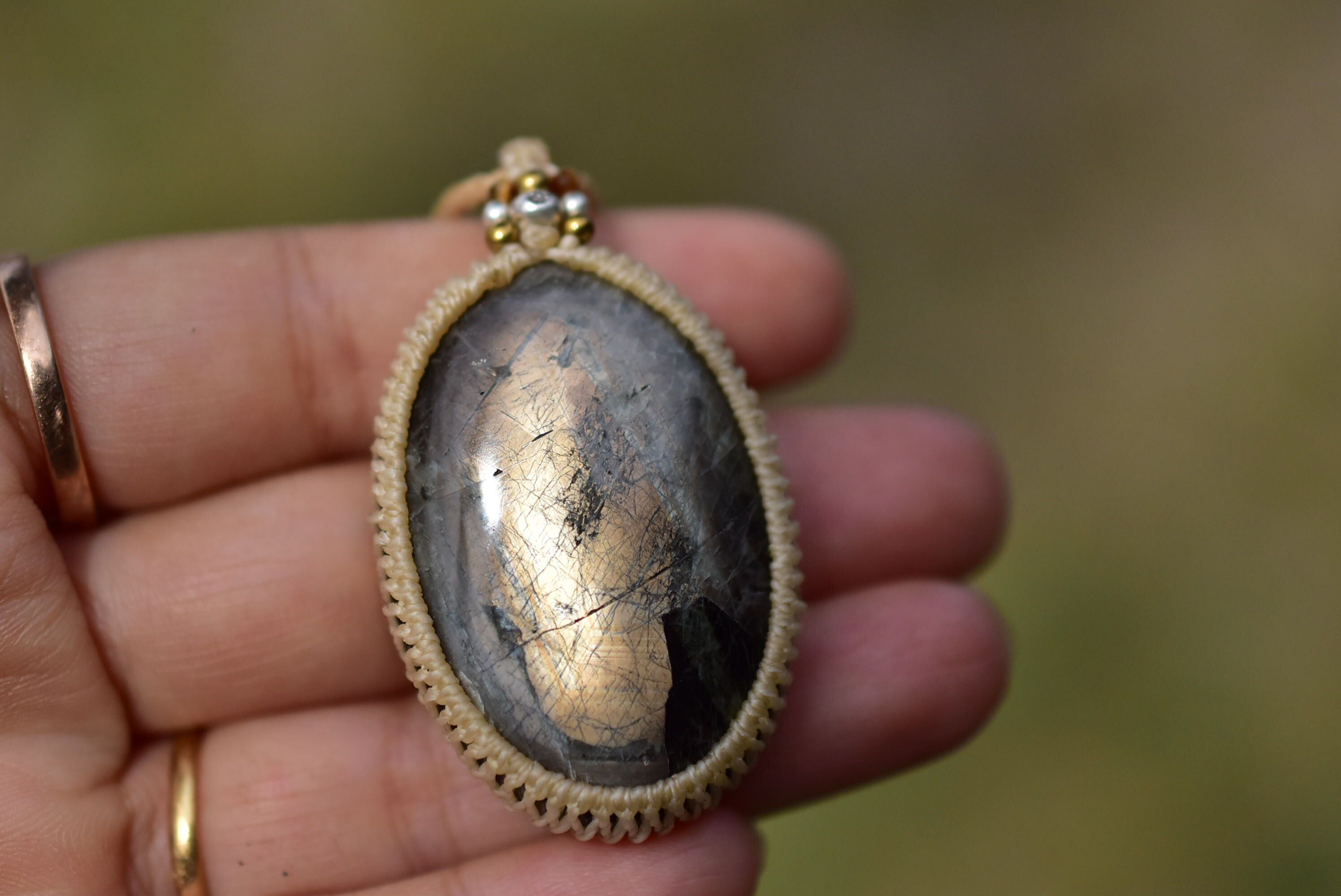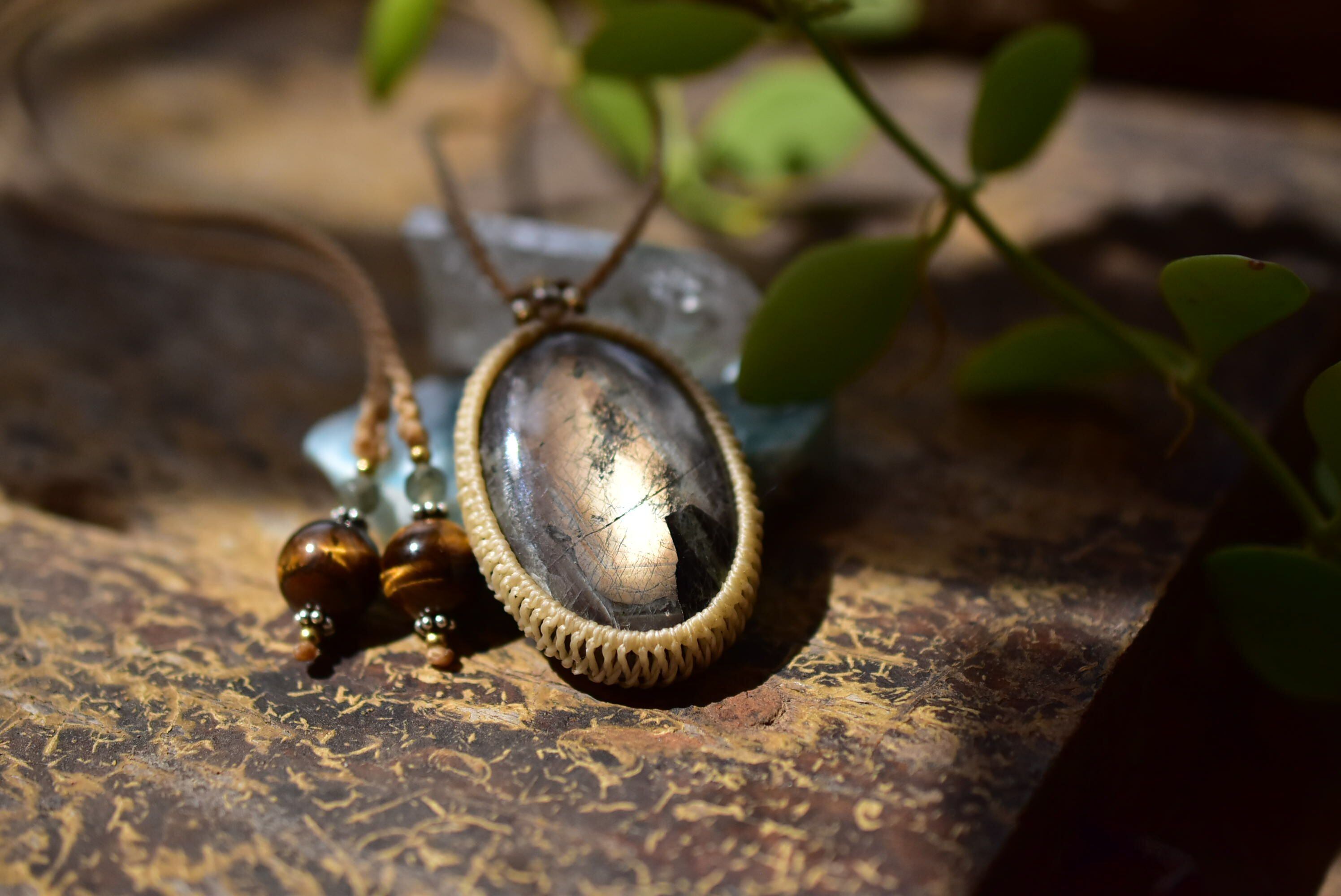 渋い存在感★120ct★ブラックサファイア マクラメペンダント sapy014