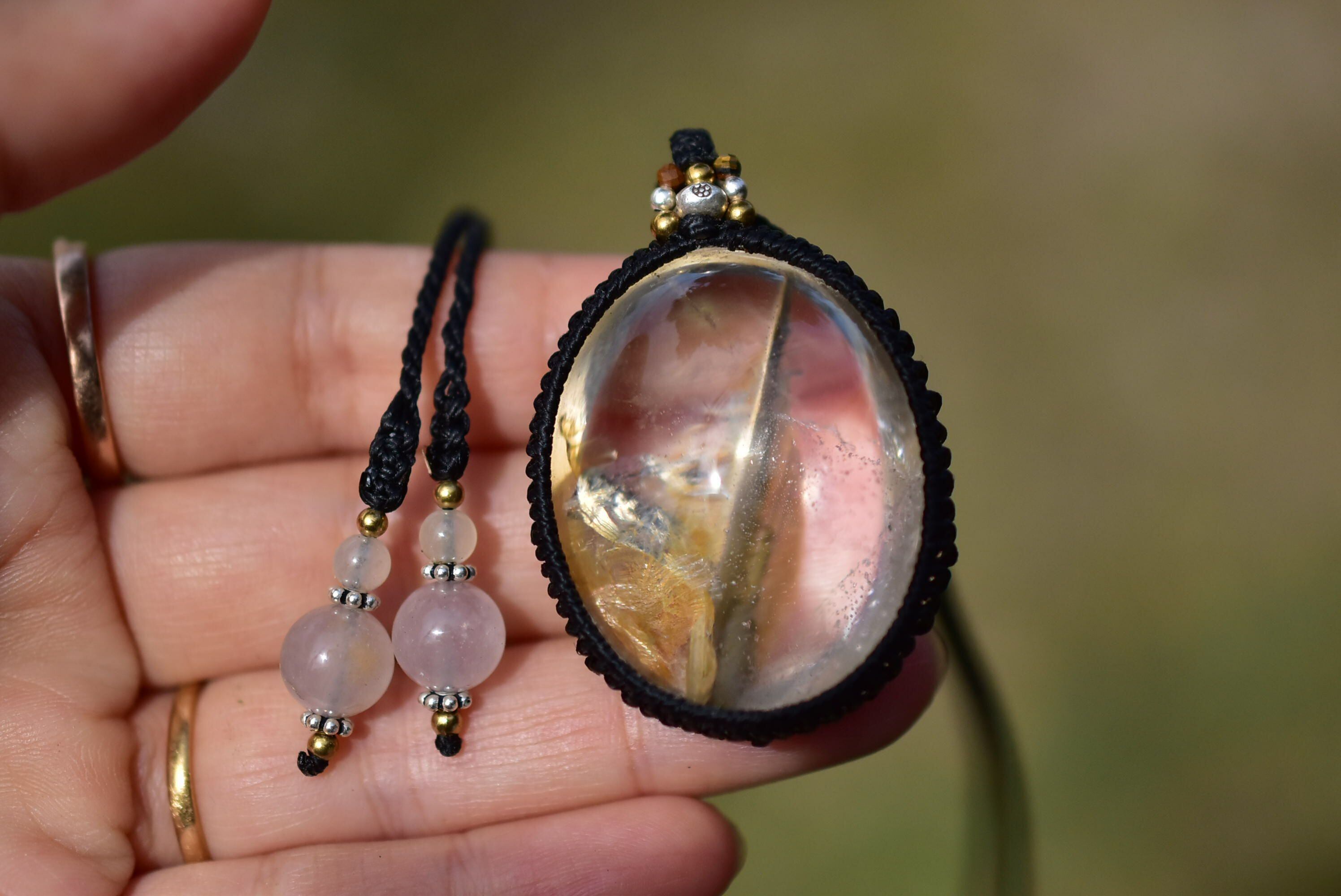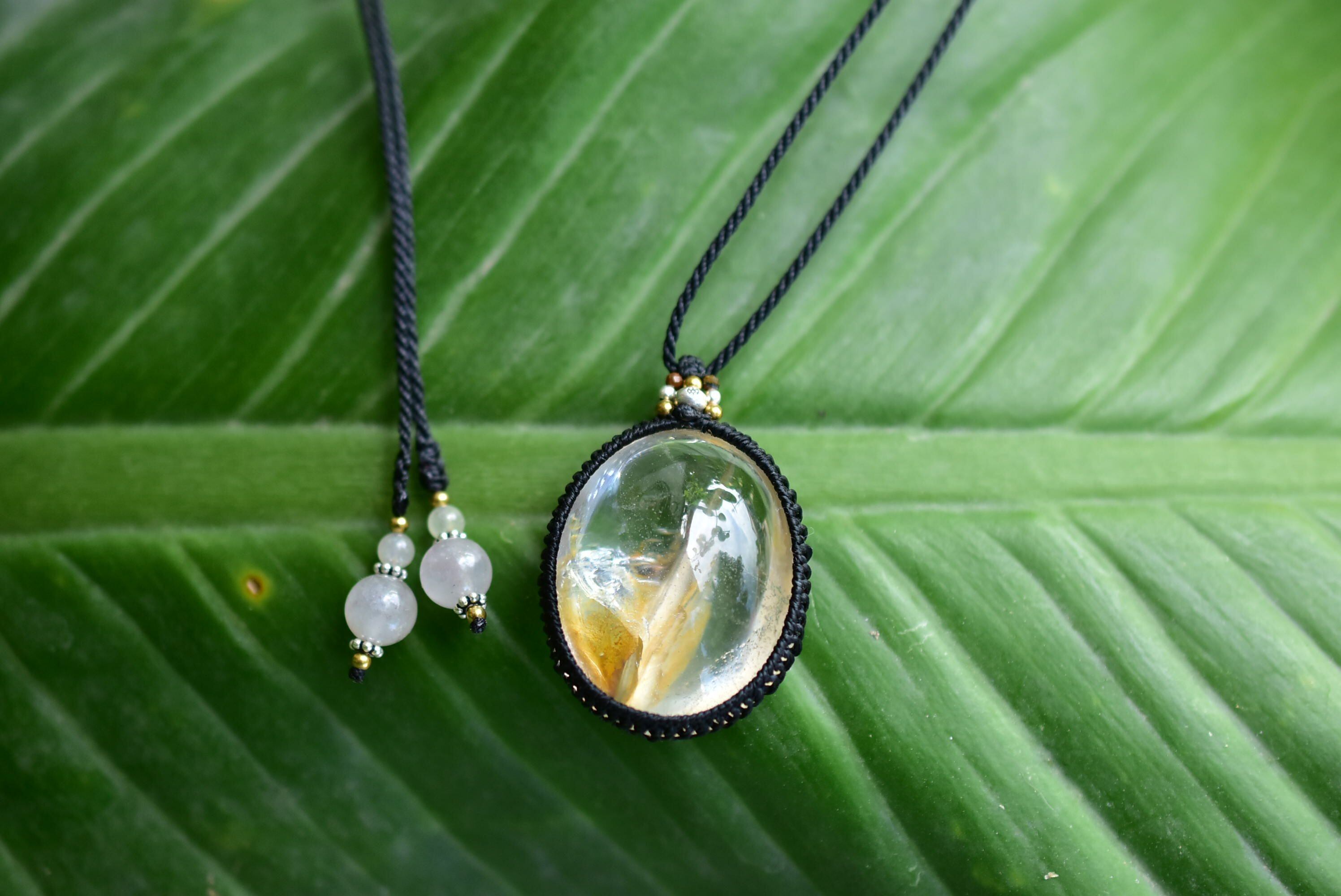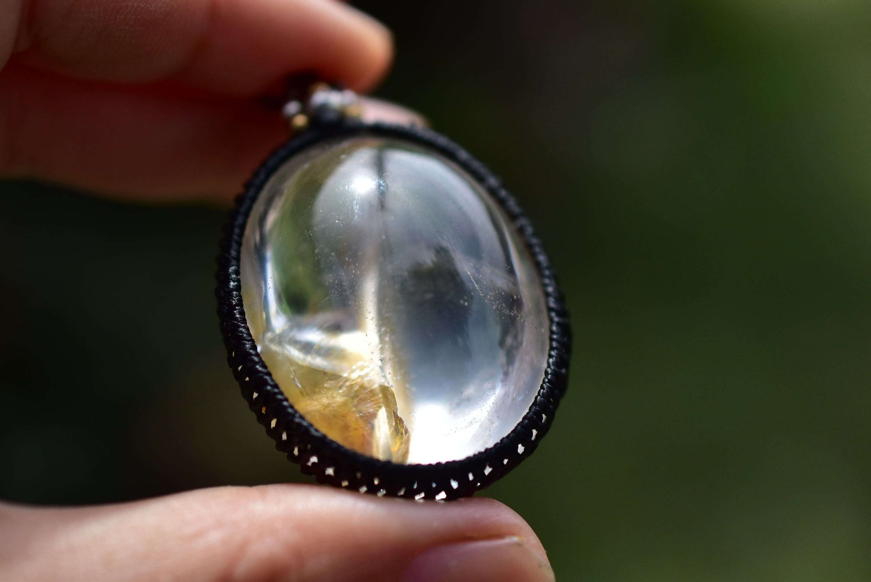 中粒クォーツイン★虹入りガーデンクォーツ マクラメペンダント gy076