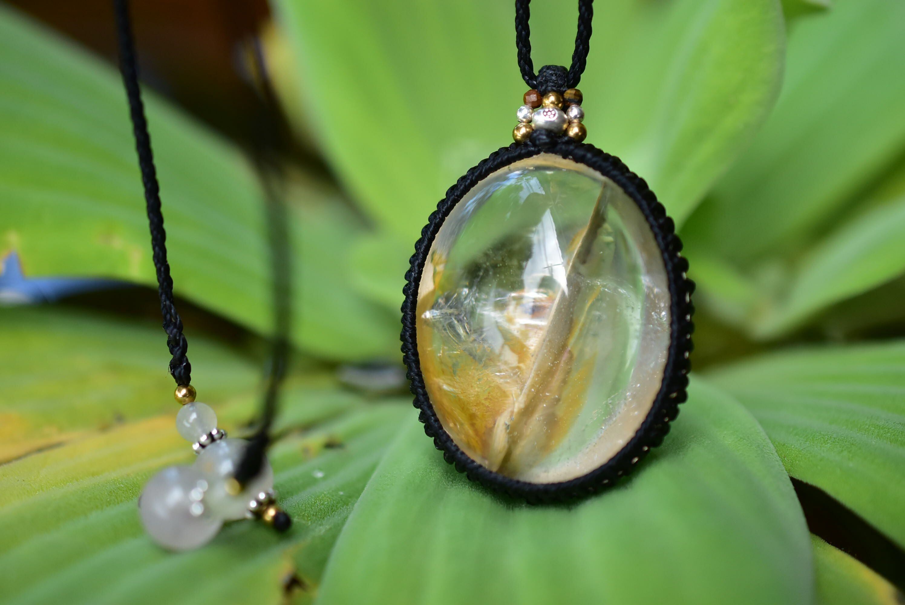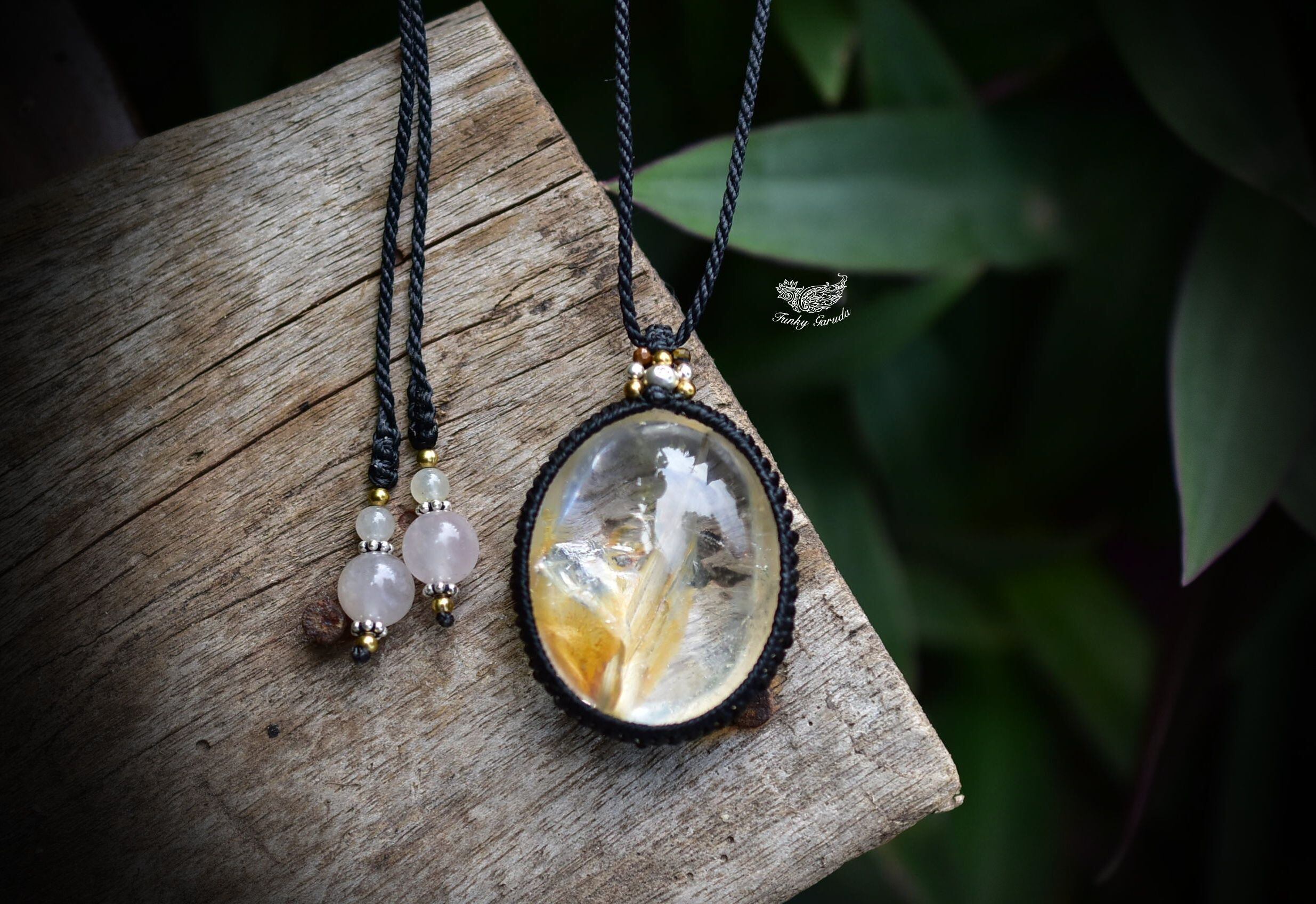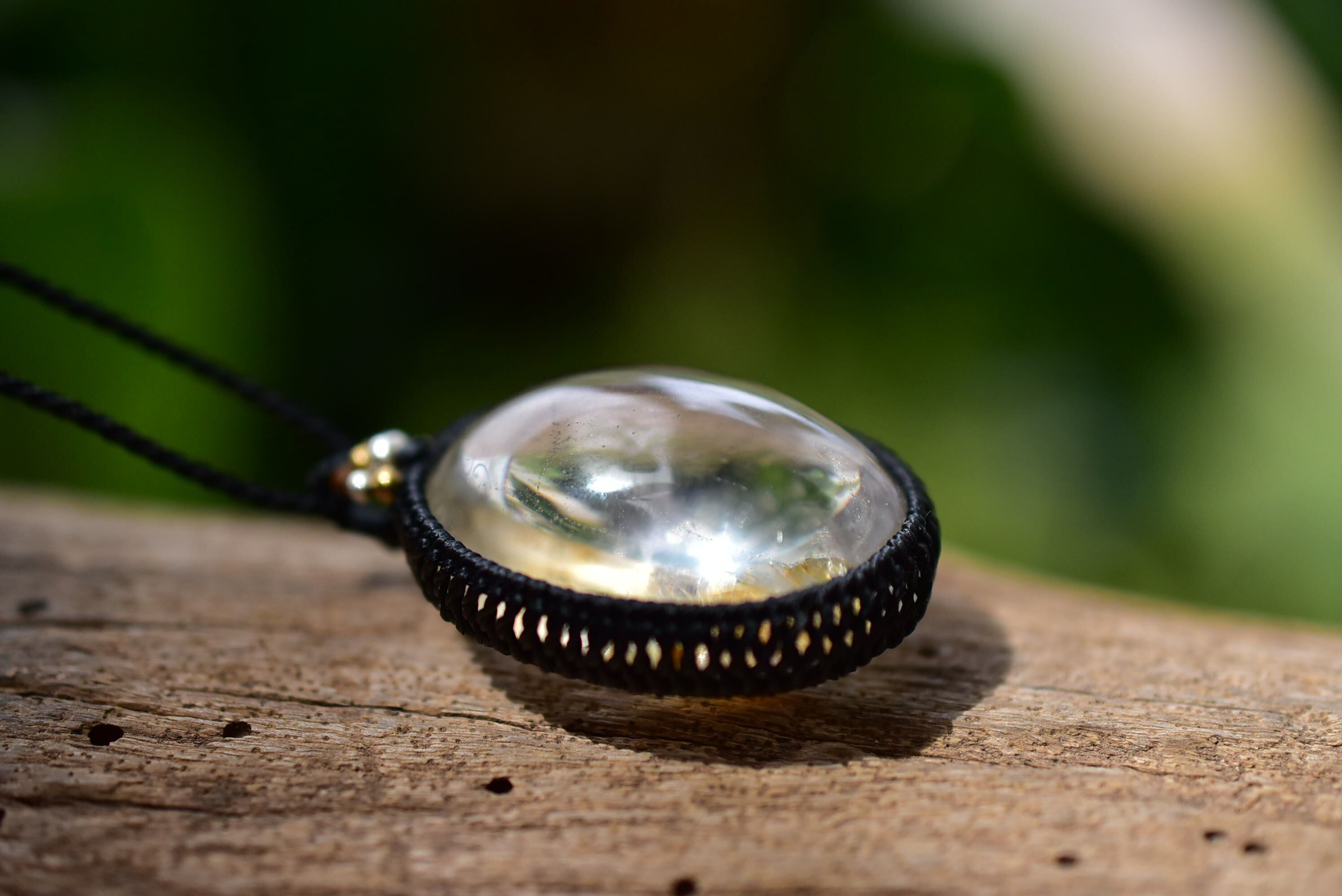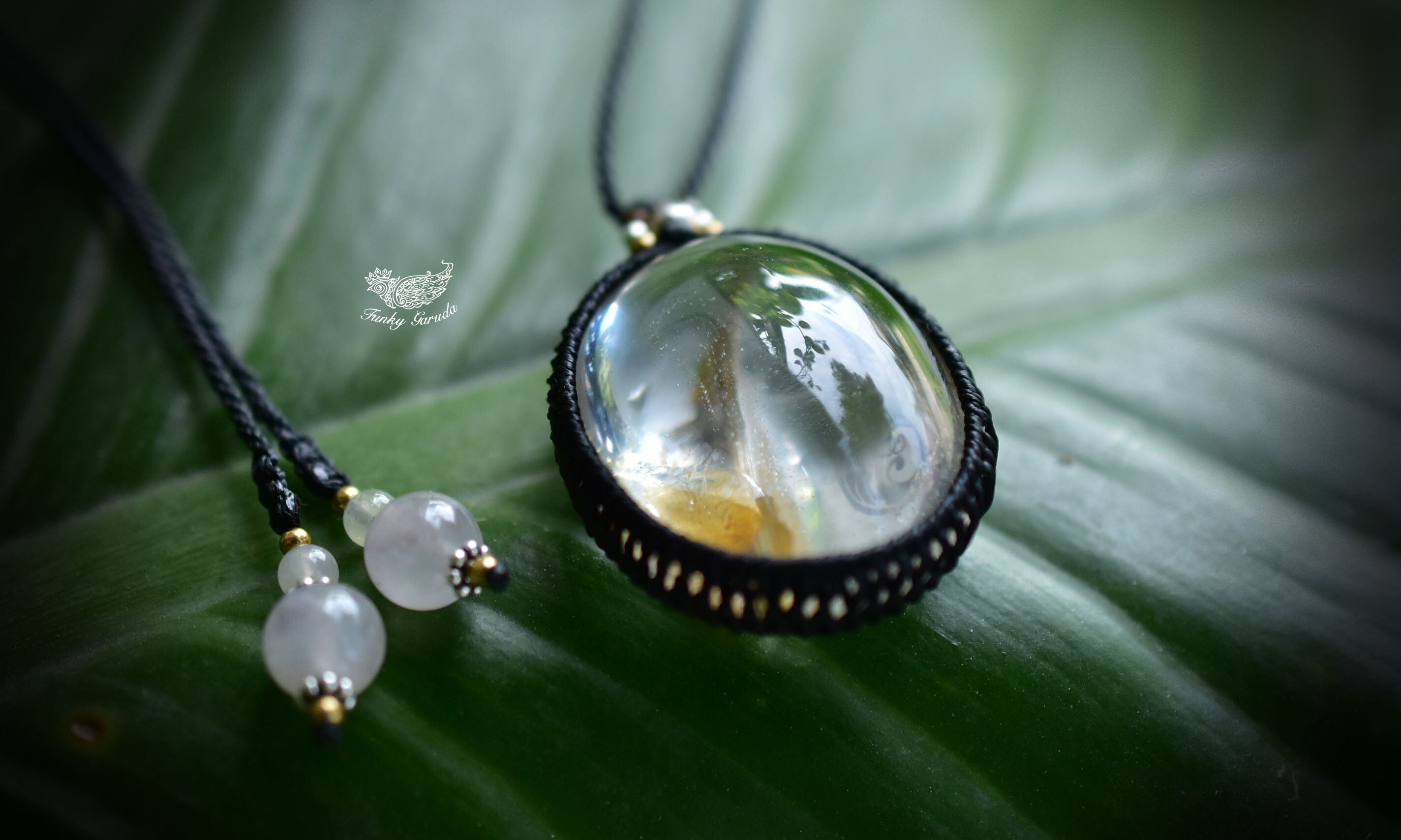 中粒クォーツイン★虹入りガーデンクォーツ マクラメペンダント gy076