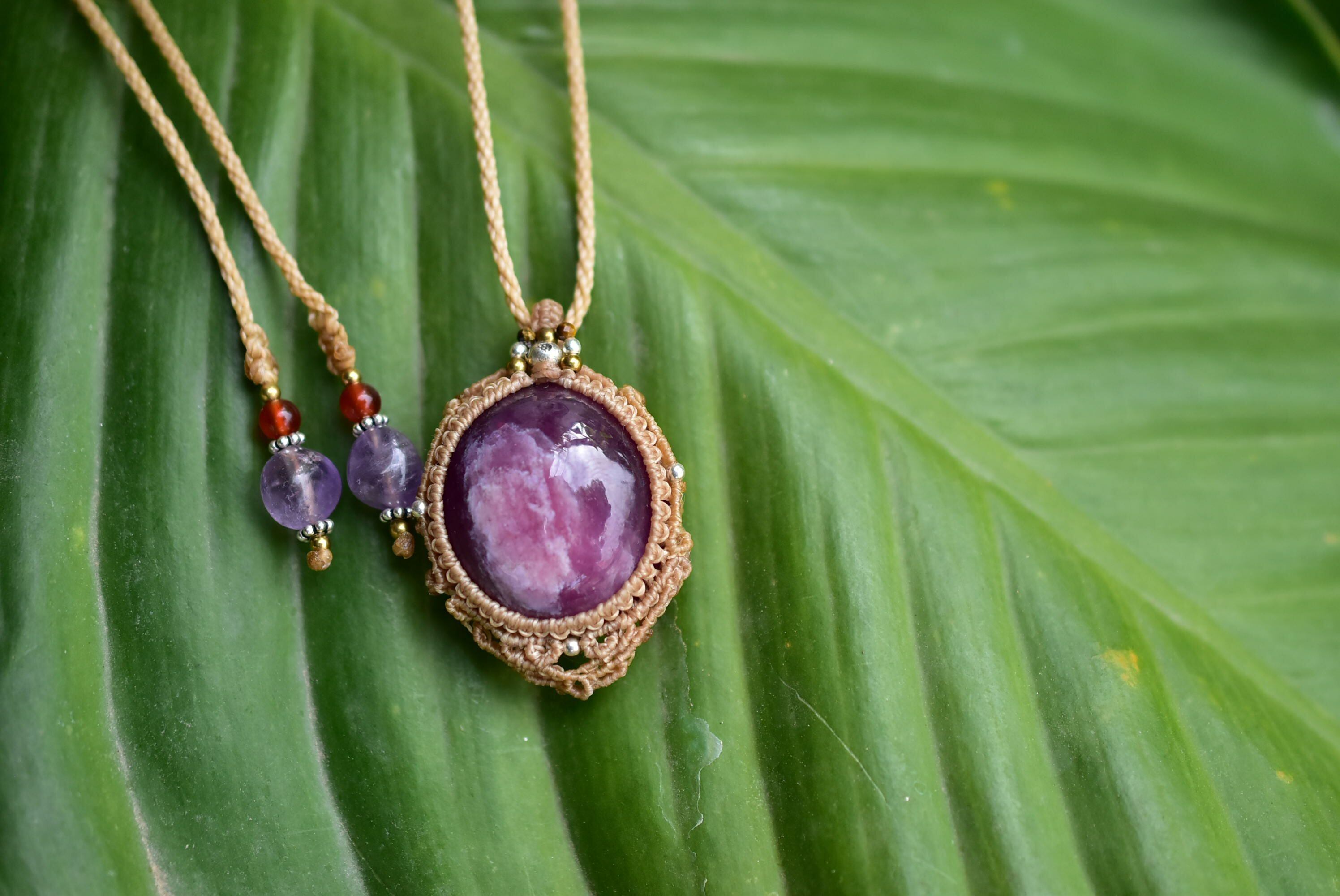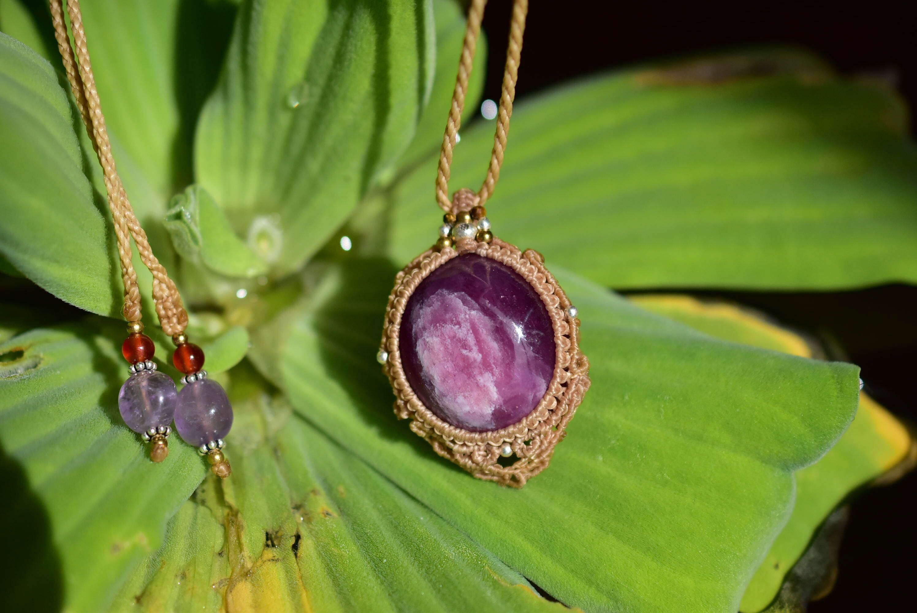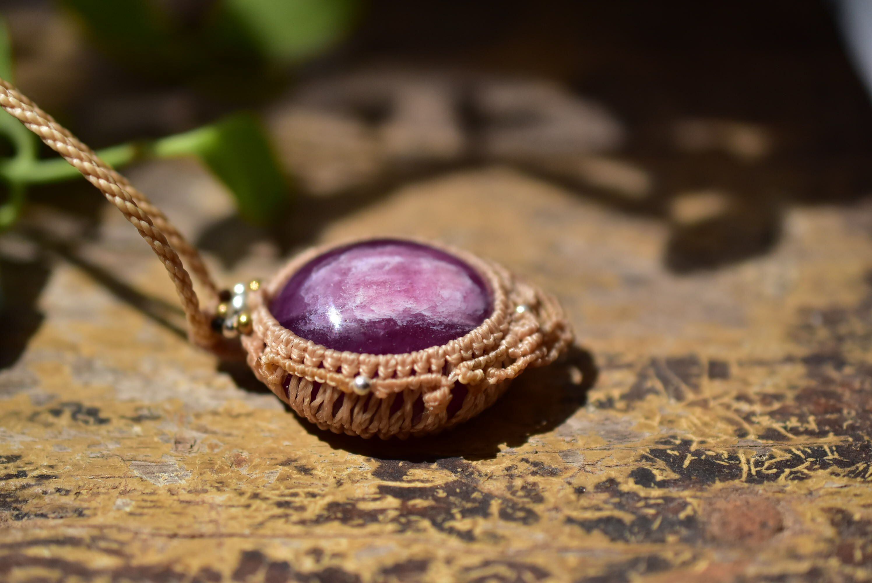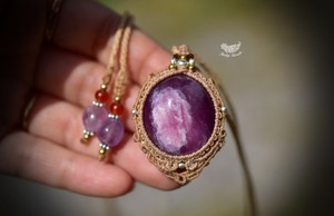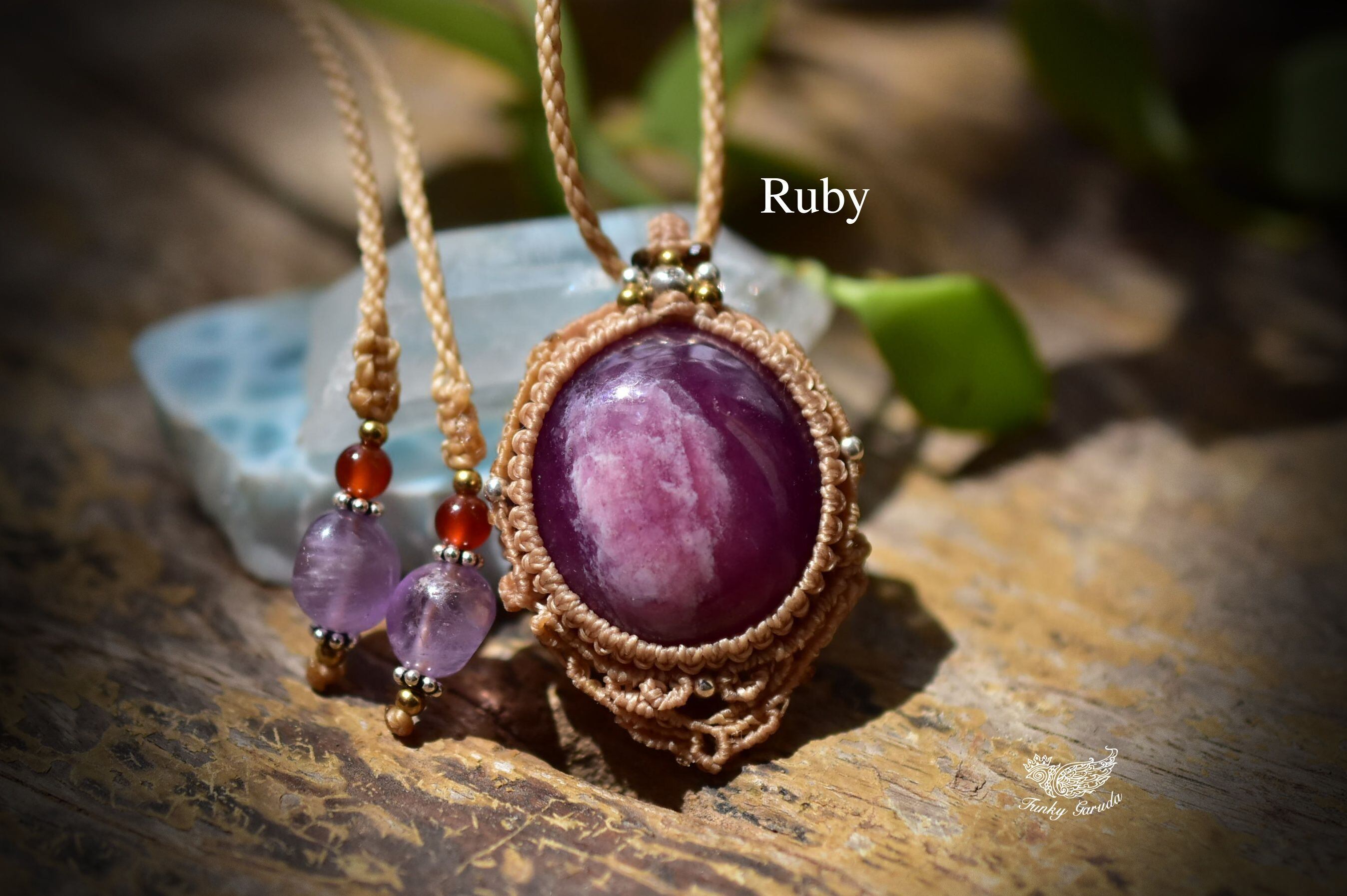 120ct★咲き誇る花★ローズルビー マクラメペンダント ruby054