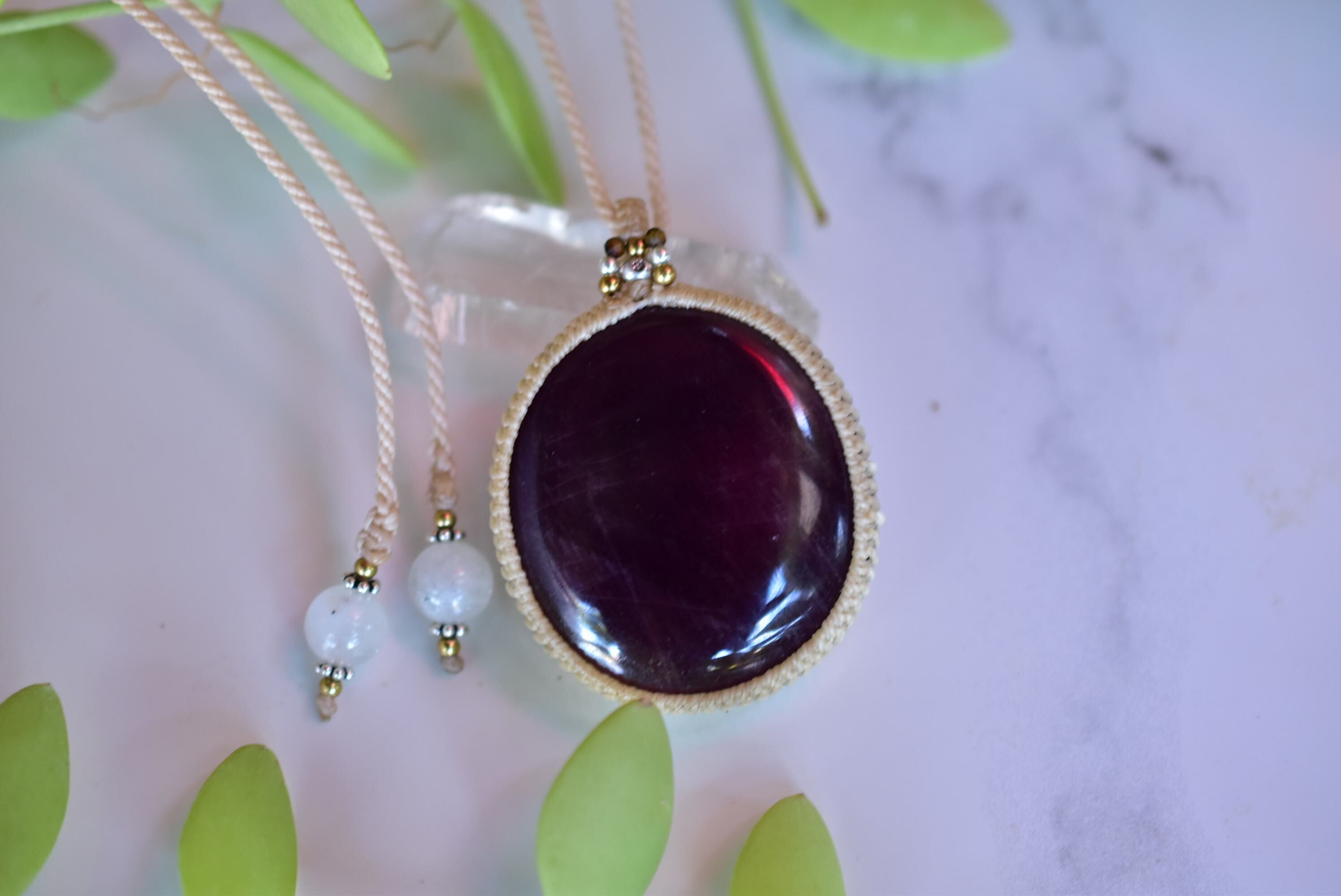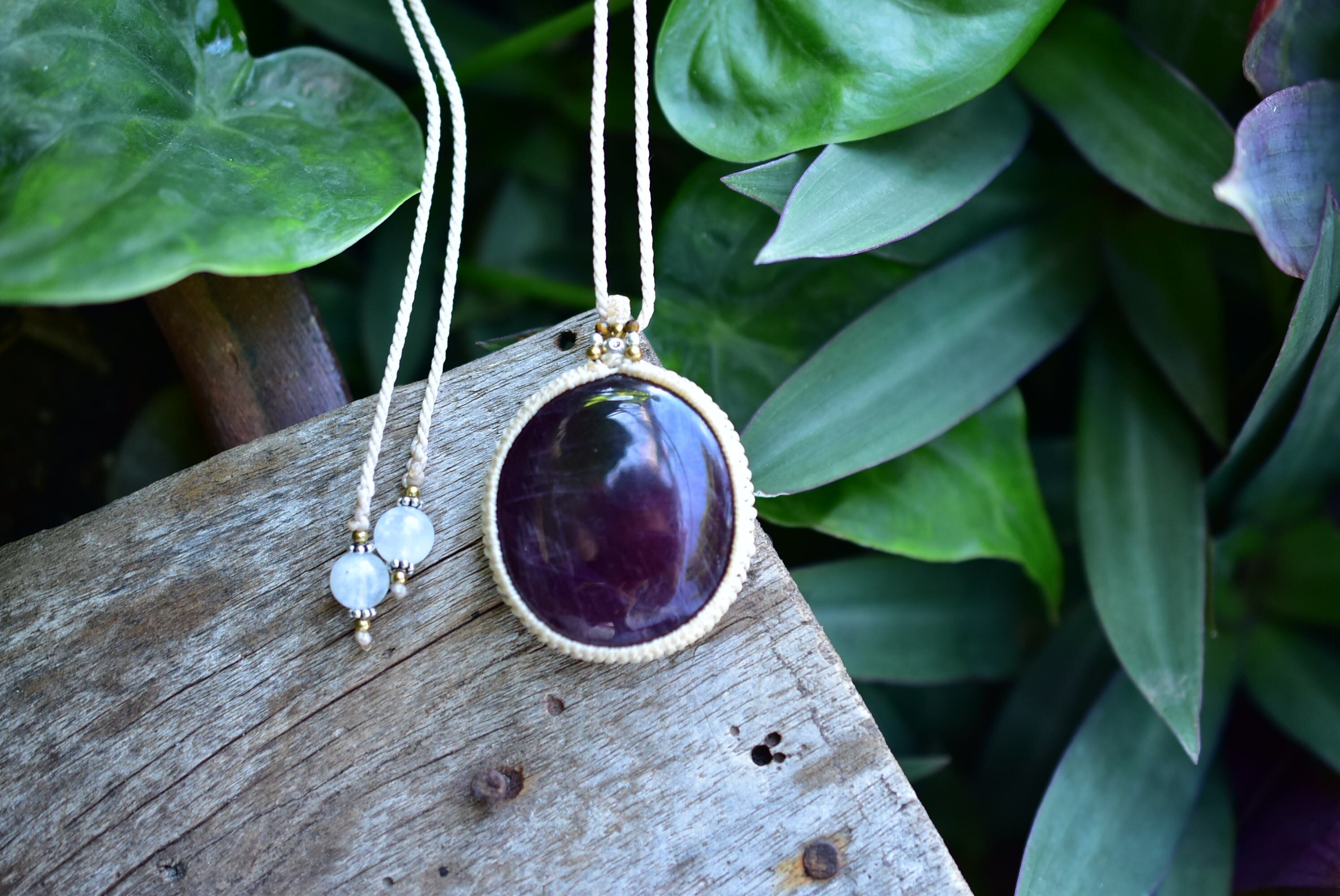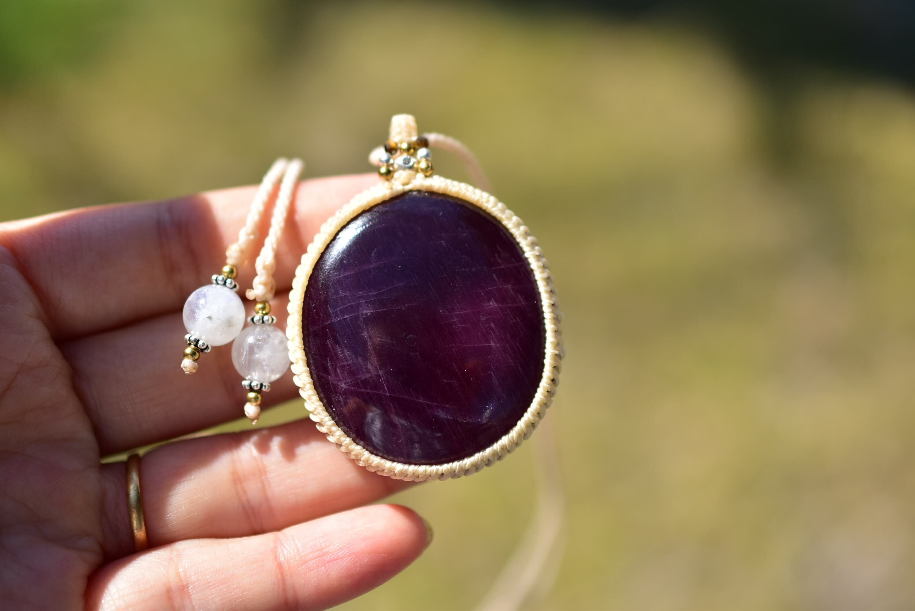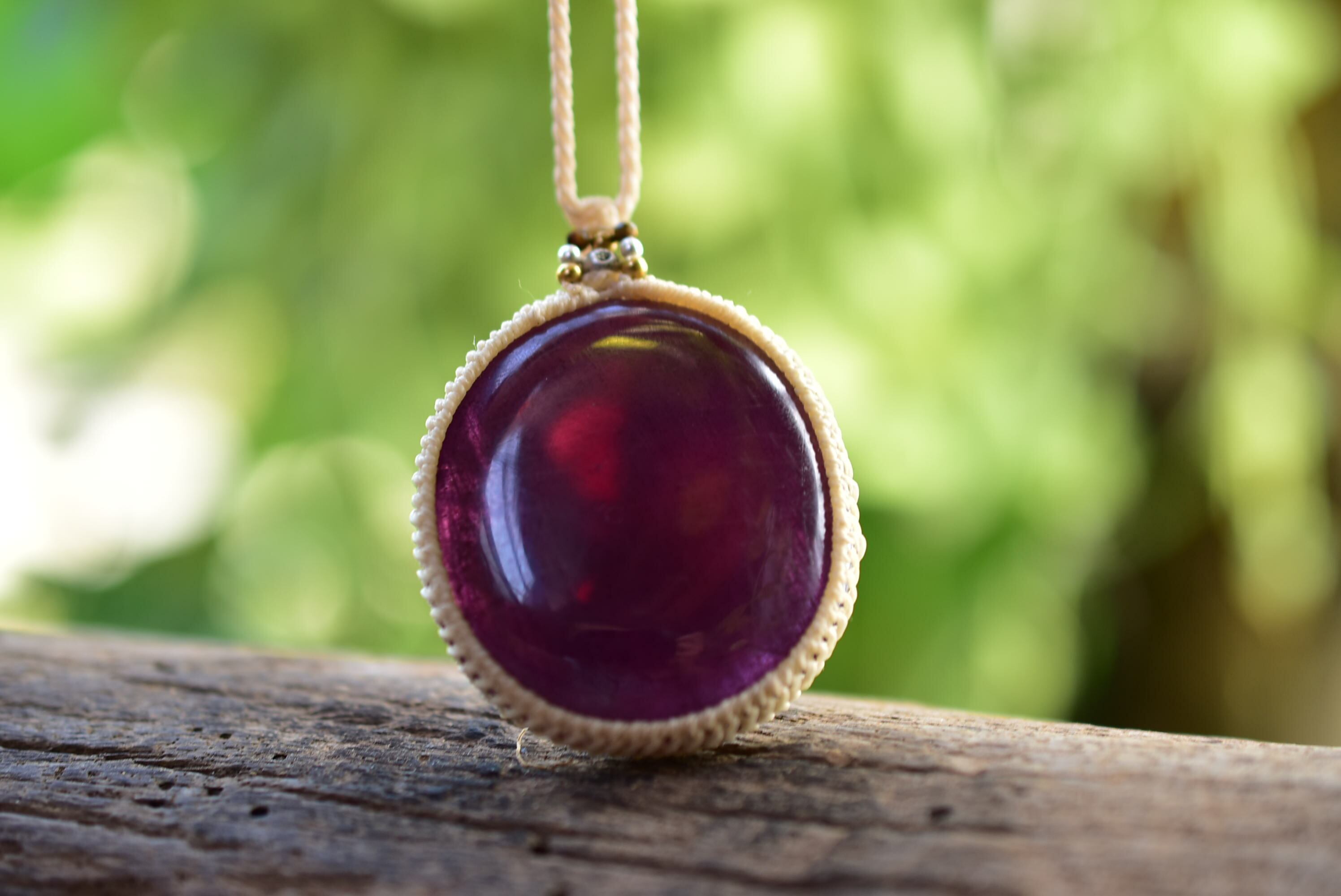 ロウビキ糸にて巻き込み、マクラメペンダントに仕上げました。