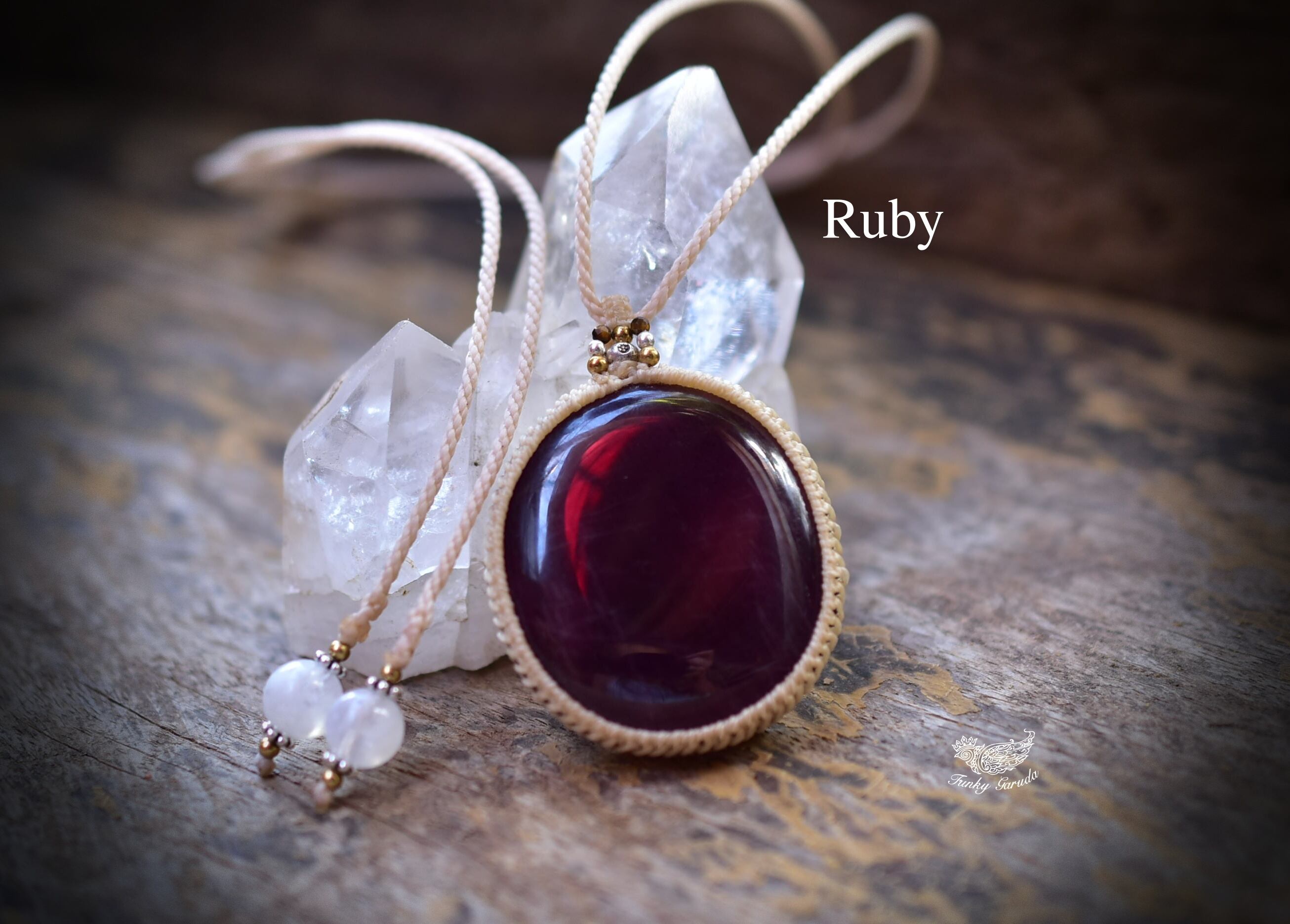特大233ct★艶めくディープ★ルビー マクラメペンダント 19