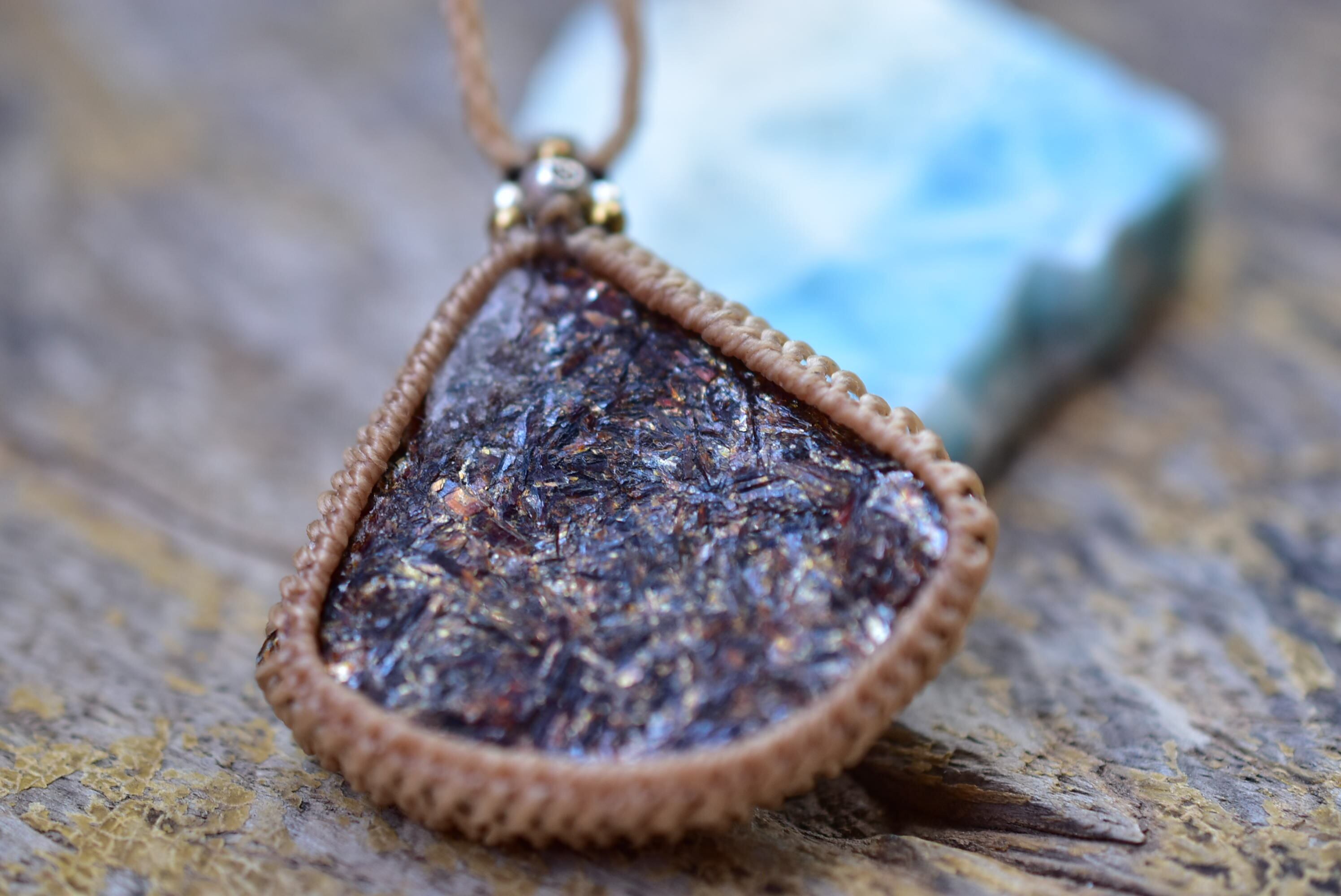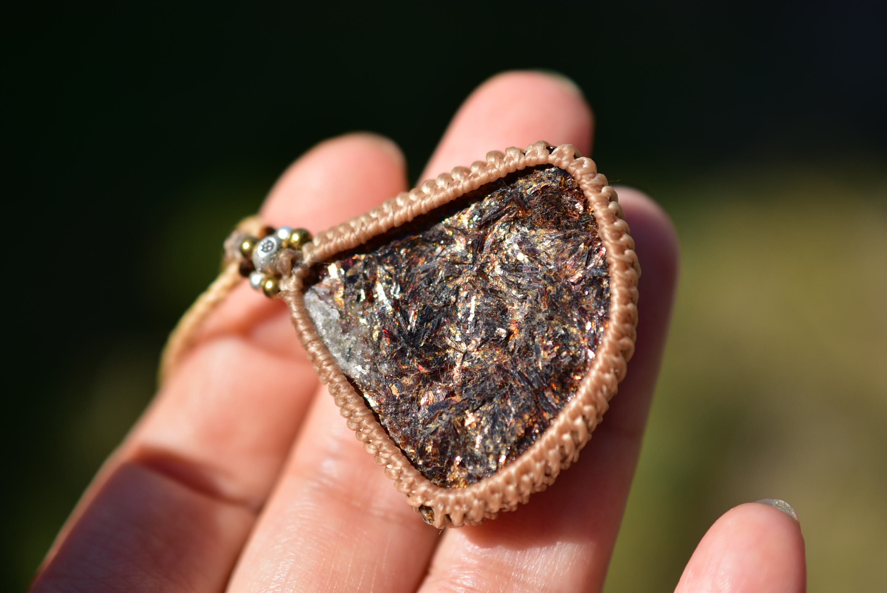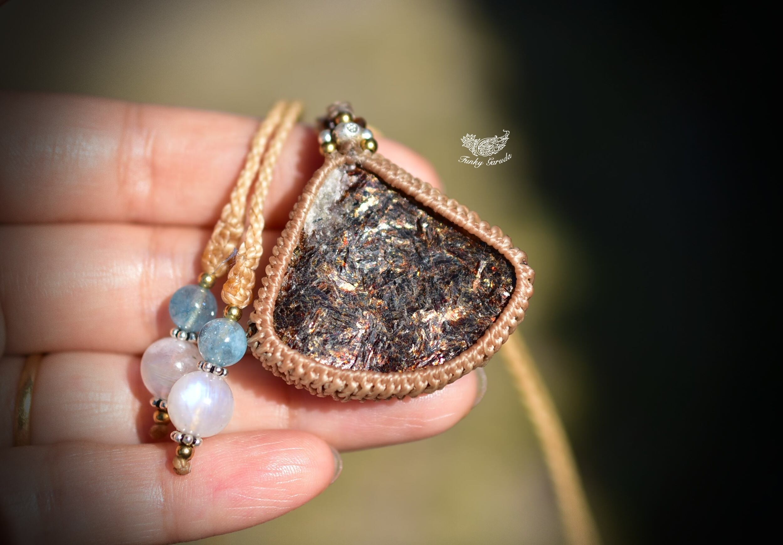 燃える火山★アストロフィライト原石 マクラメペンダント 23