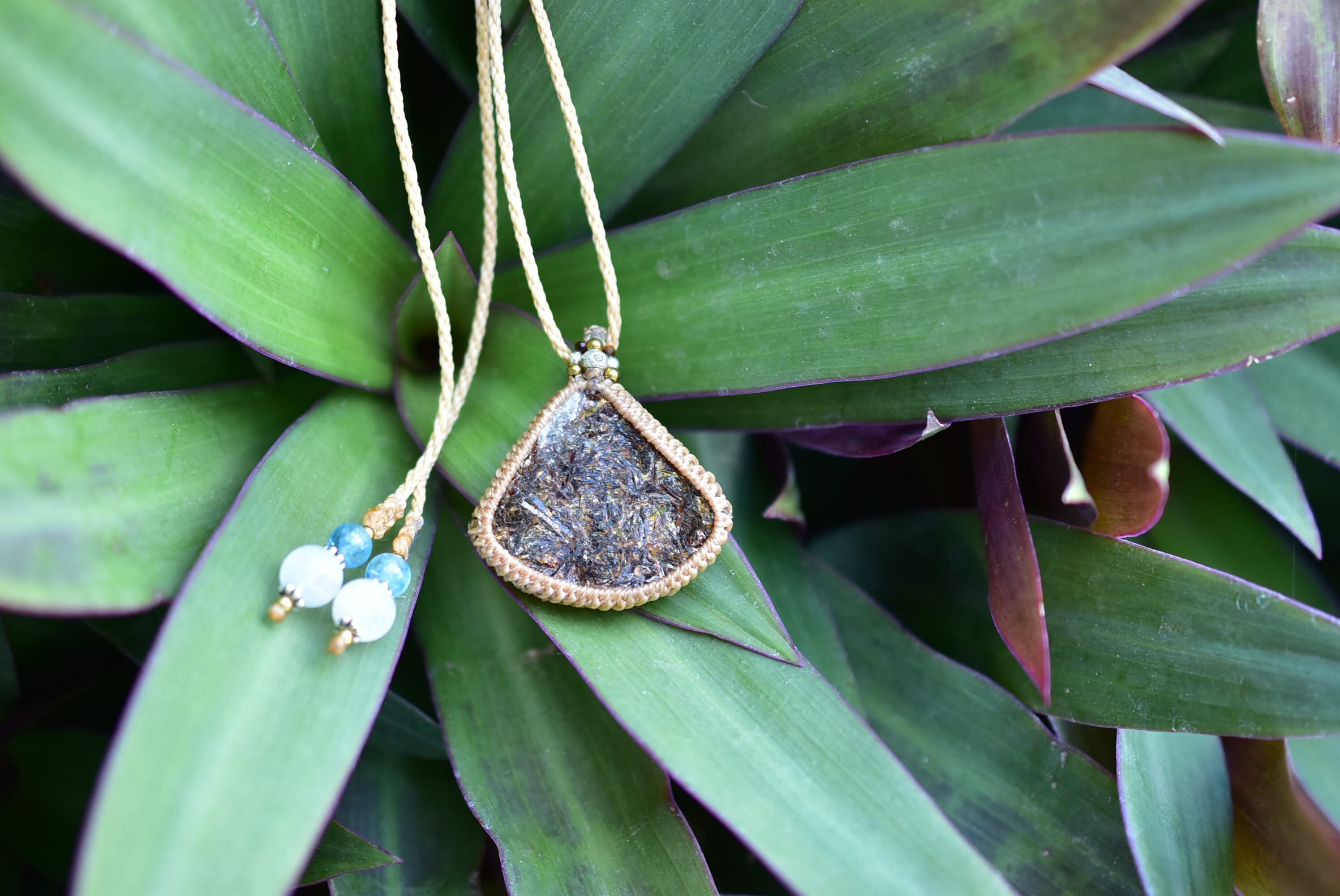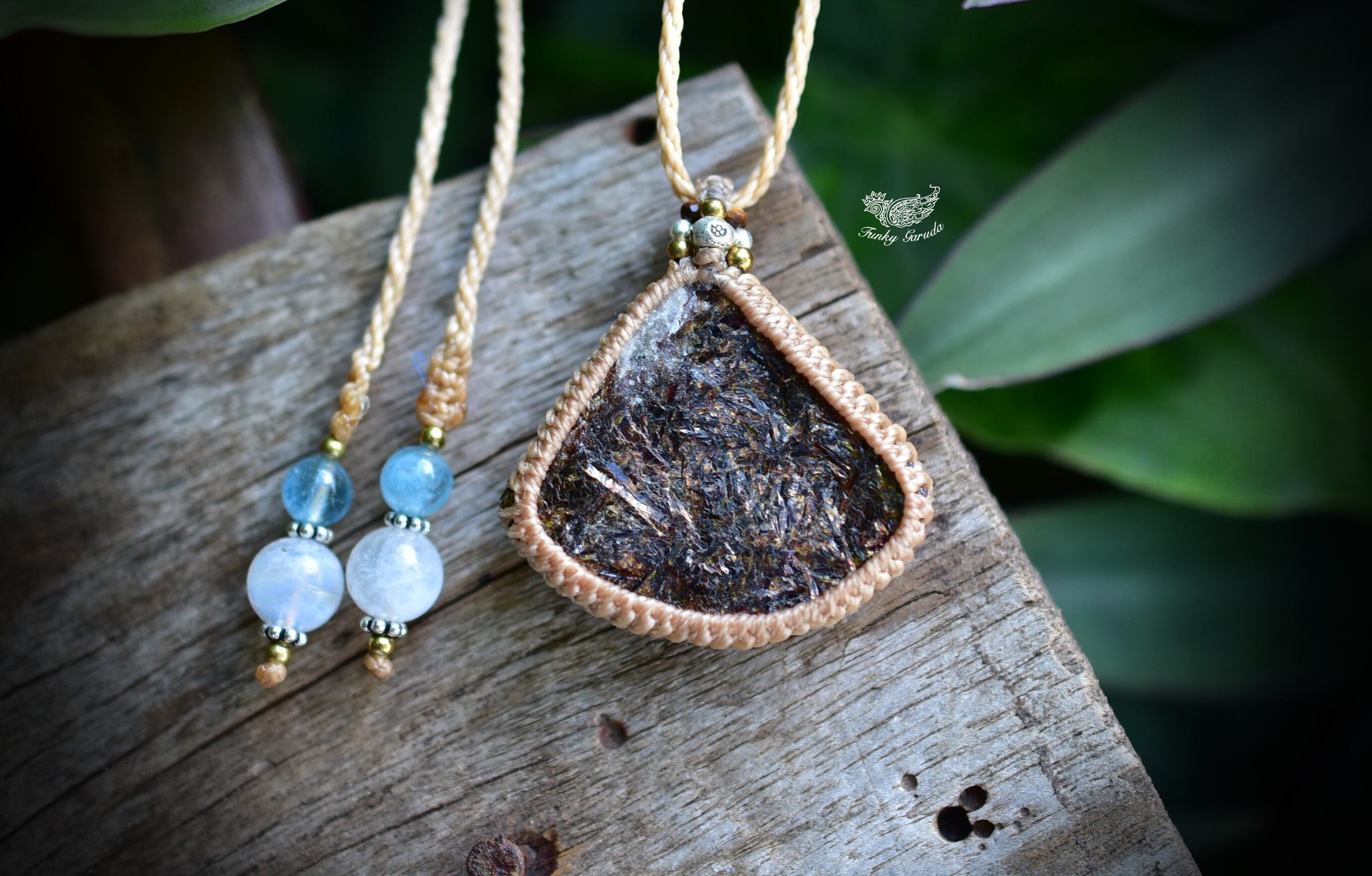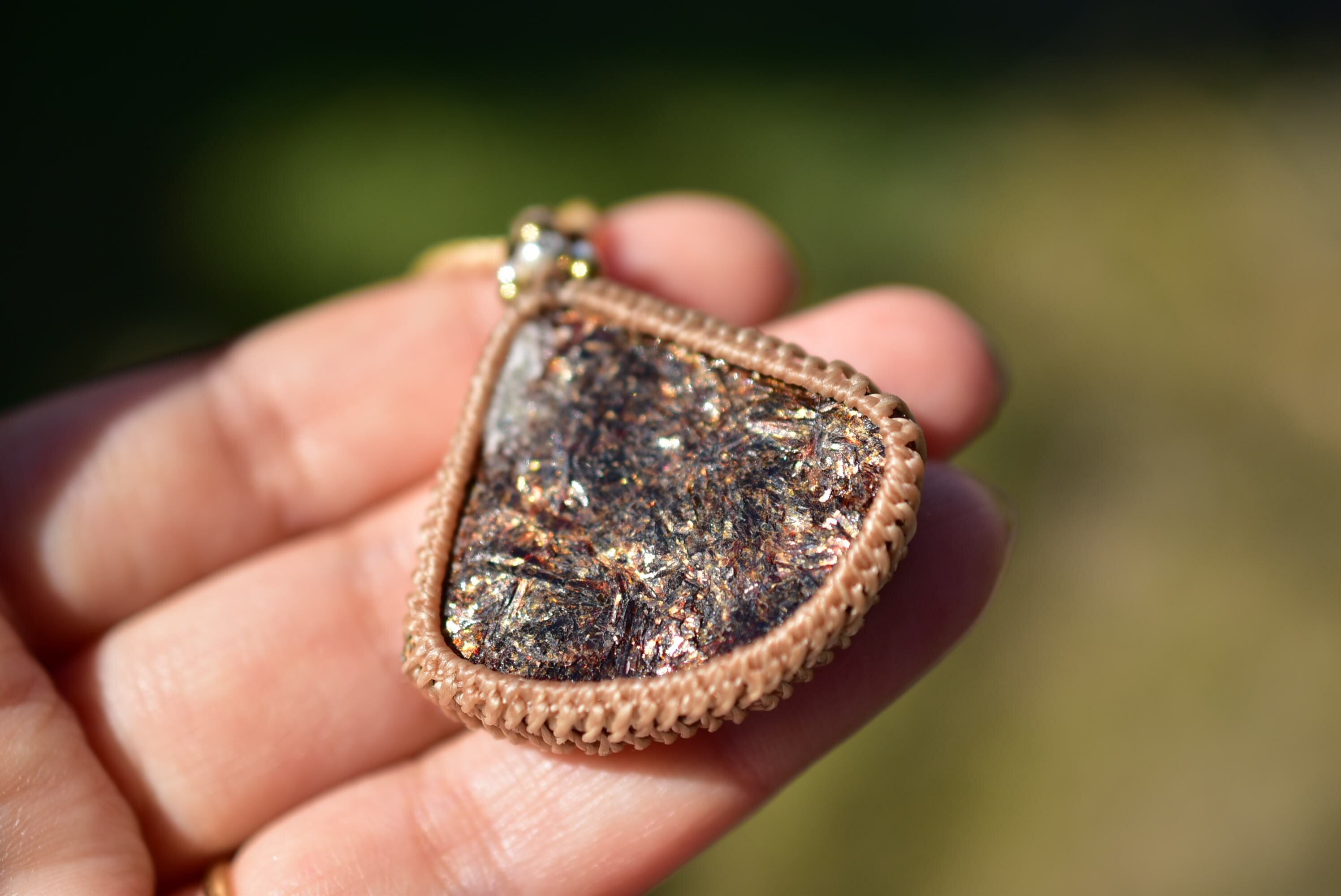 燃える火山★アストロフィライト原石 マクラメペンダント 23