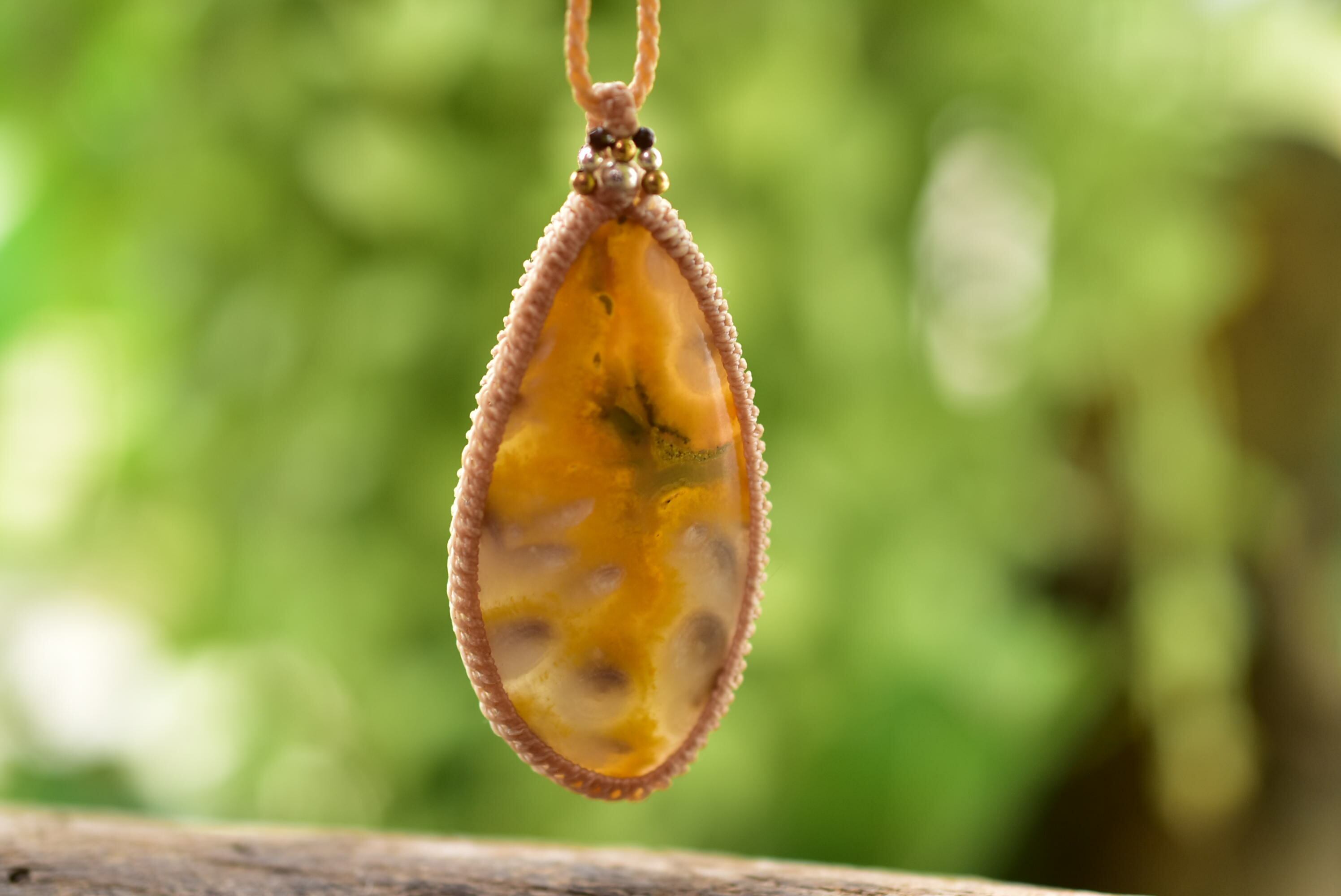 流れるサイケデリック模様★バンブルビージャスパー シンプルマクラメペンダント28