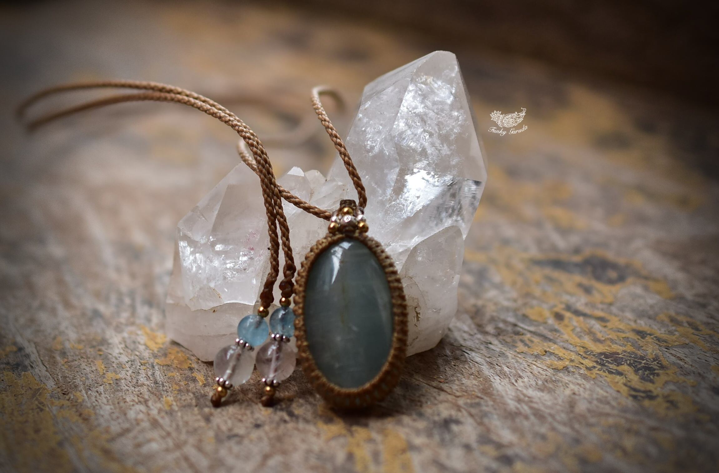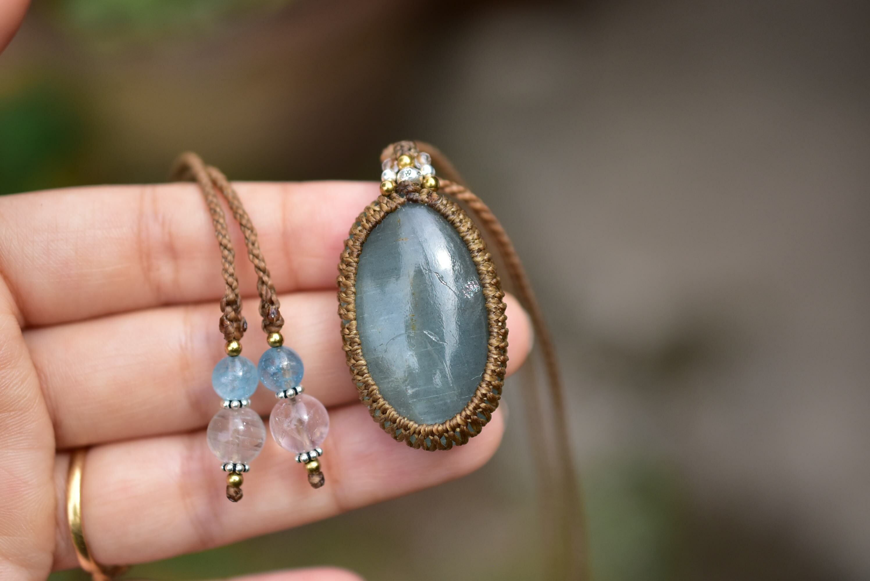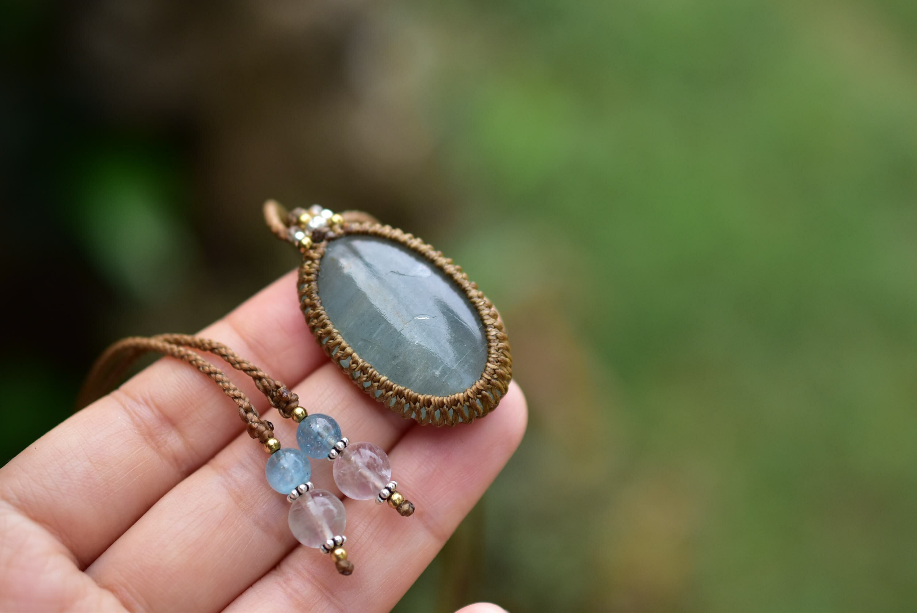 虹入り★キャッツアイ アクアマリン マクラメペンダント 29