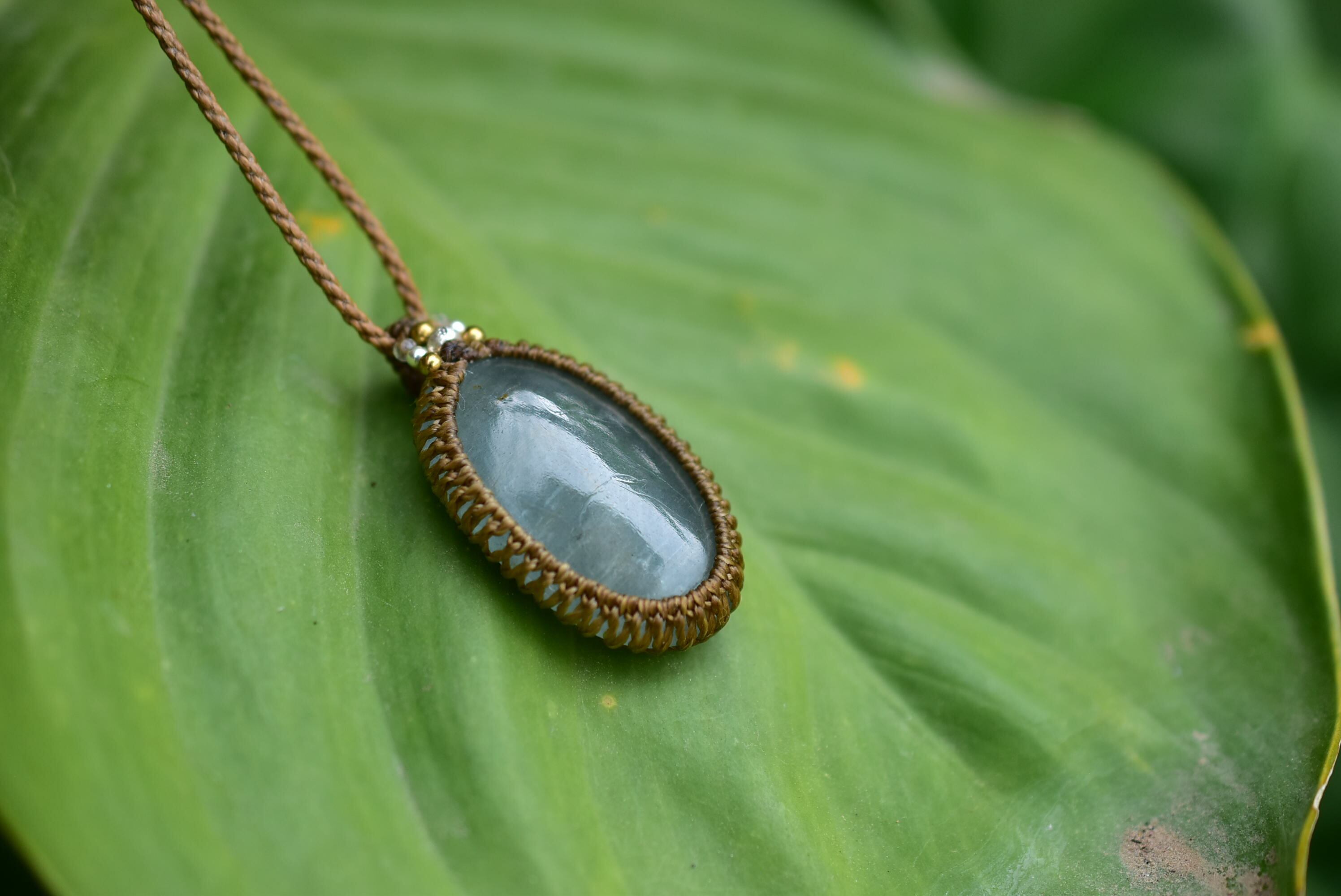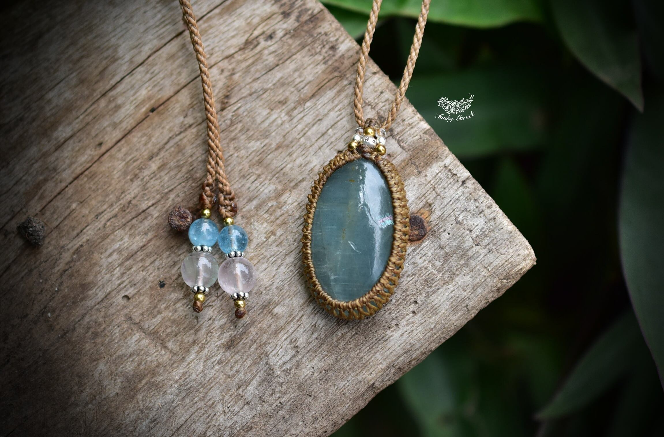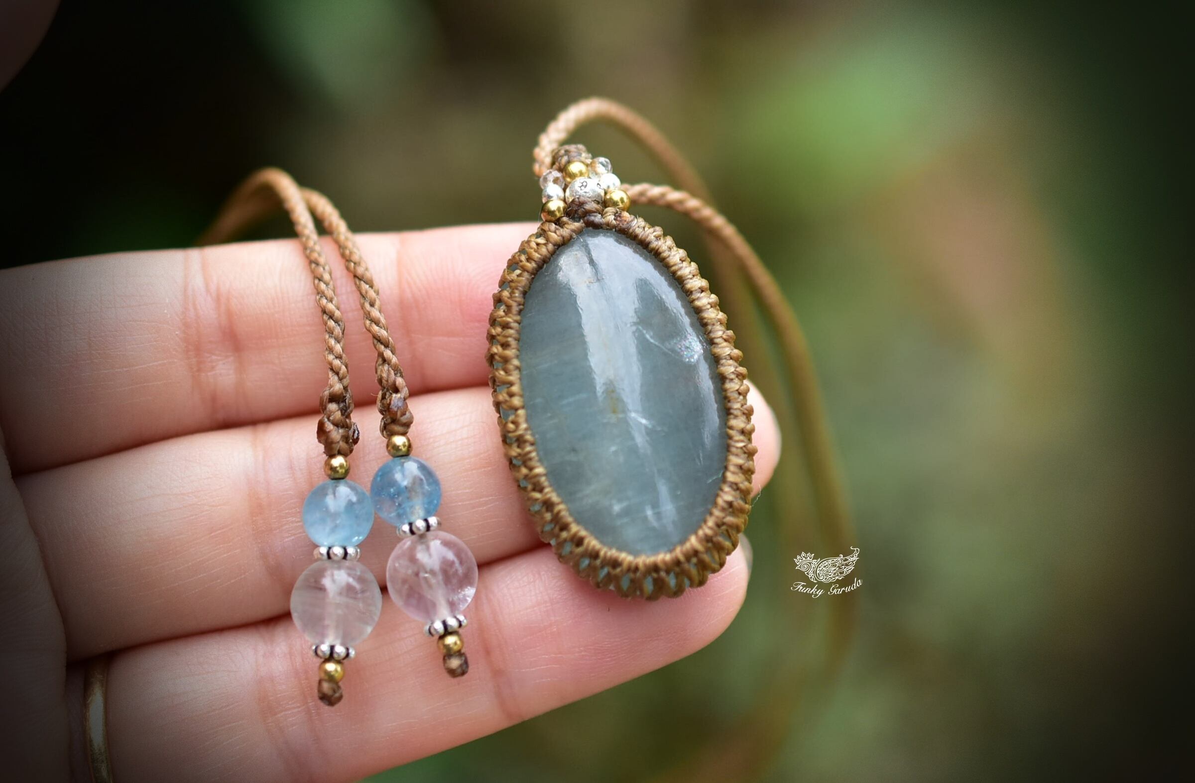 虹入り★キャッツアイ アクアマリン マクラメペンダント 29