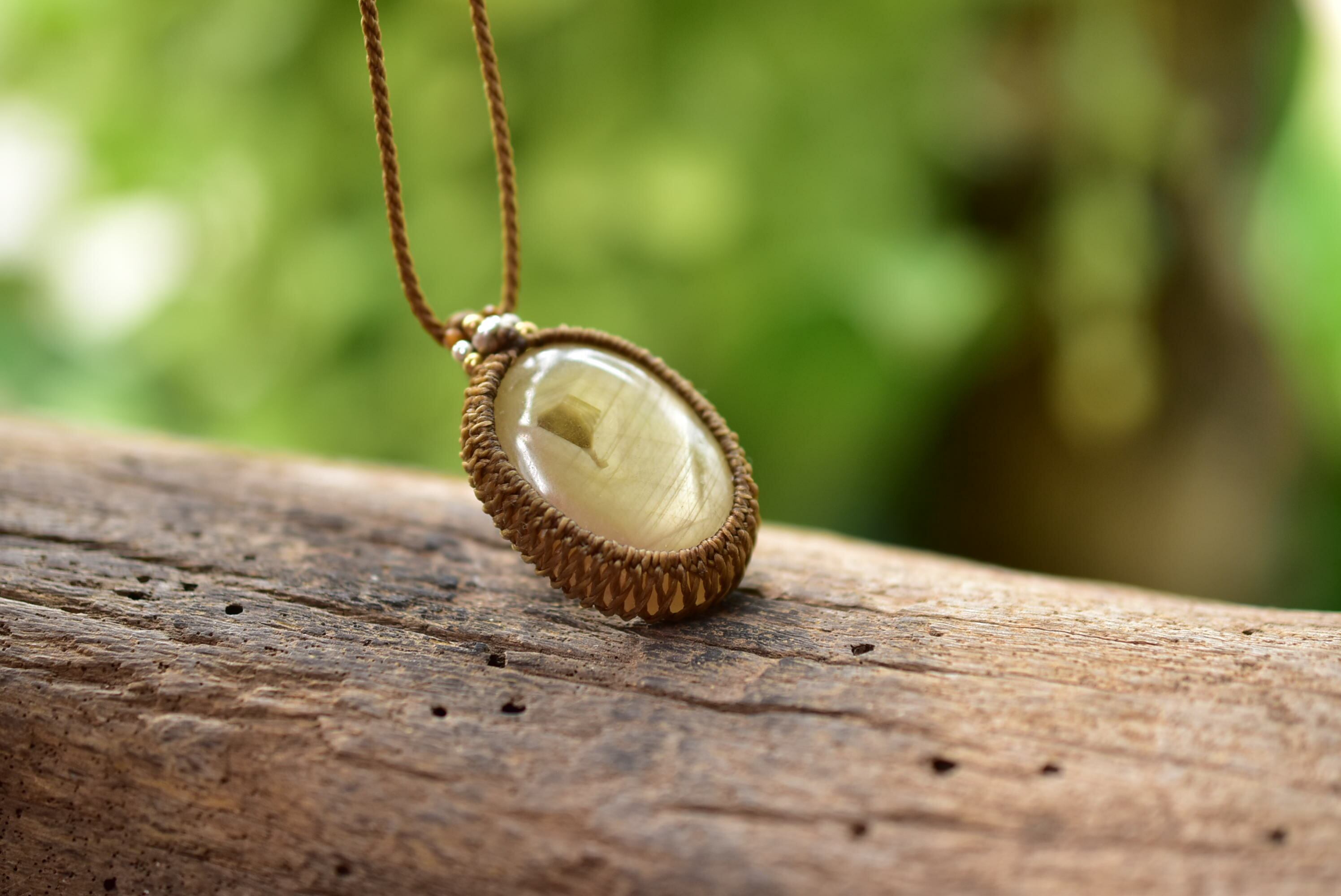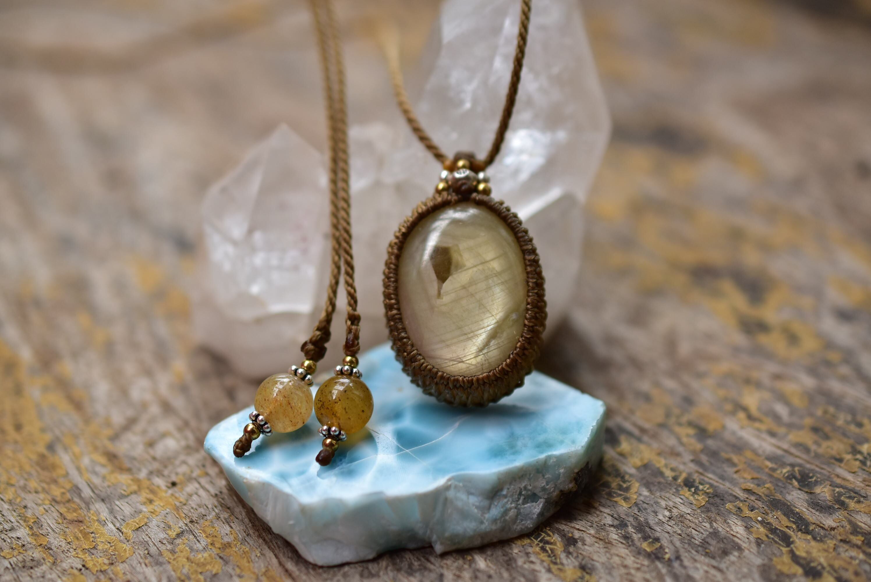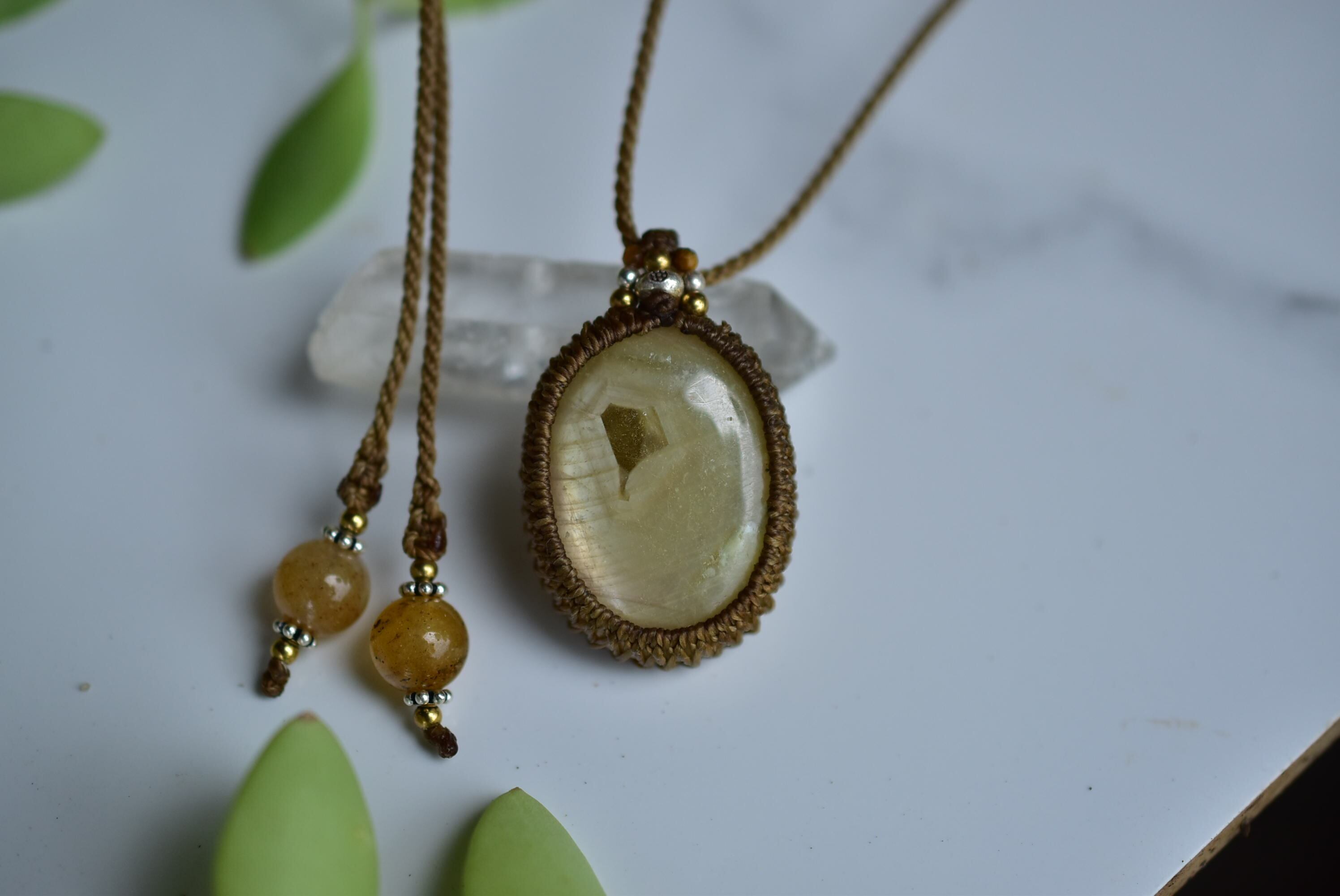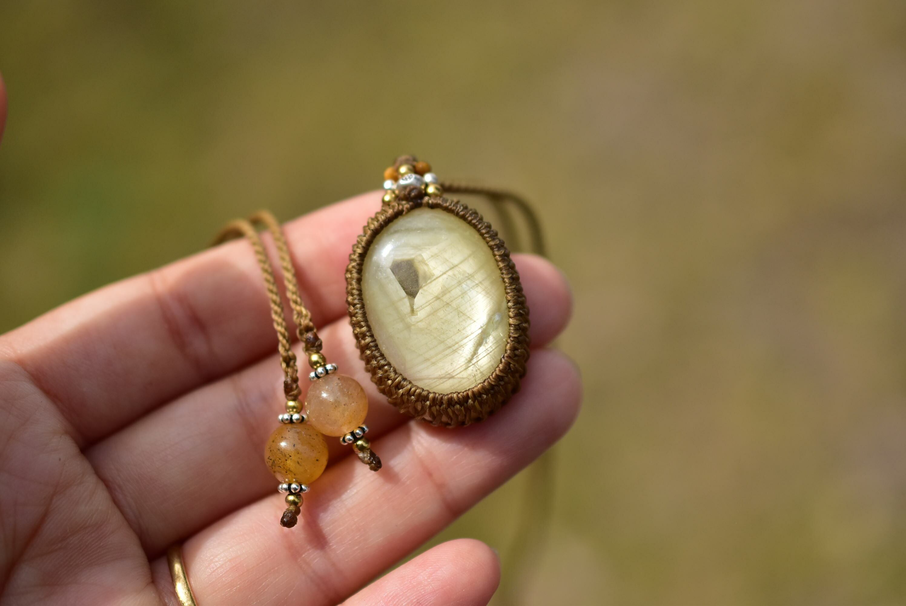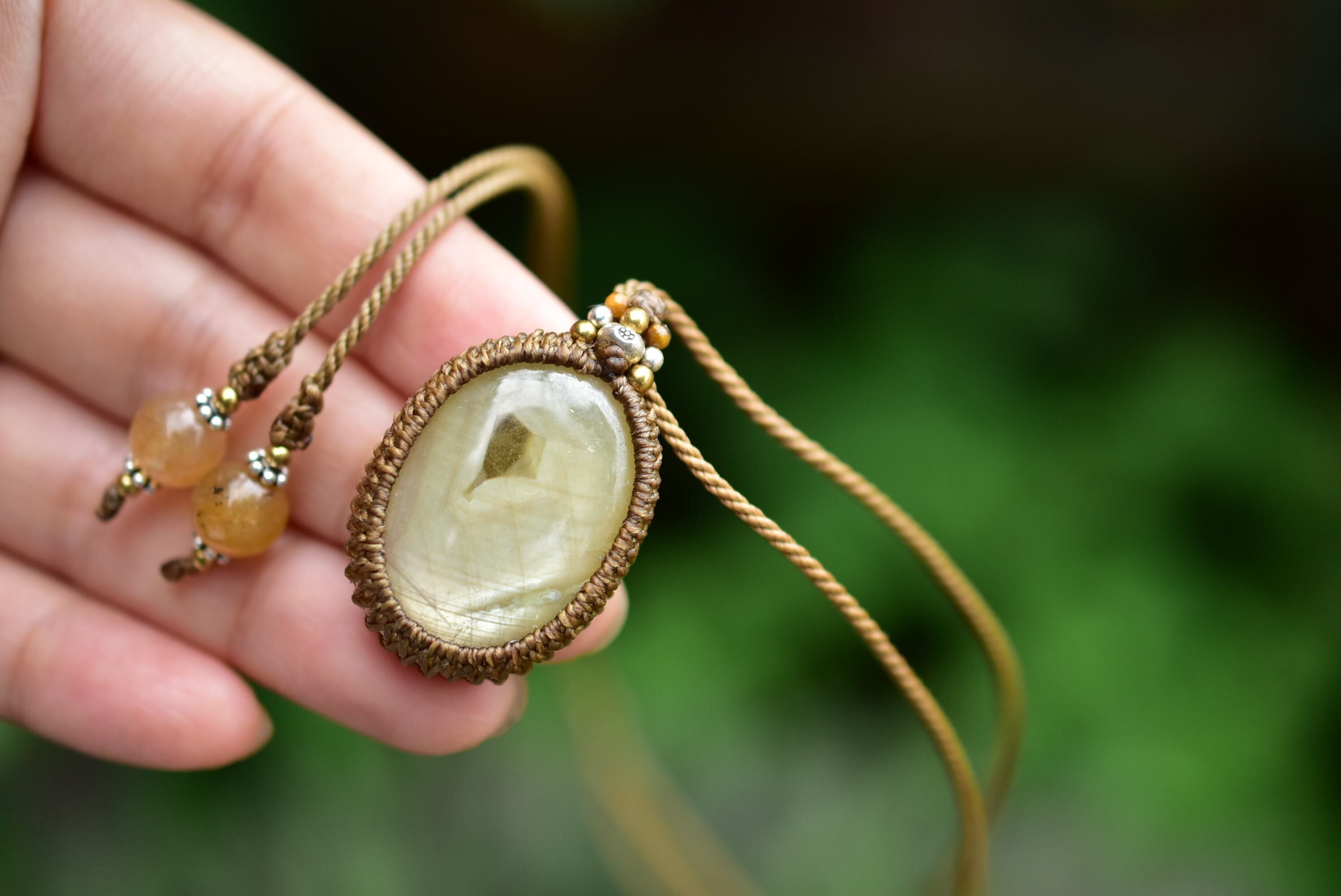 シルクの光と成長線★イエローサファイア マクラメペンダント31