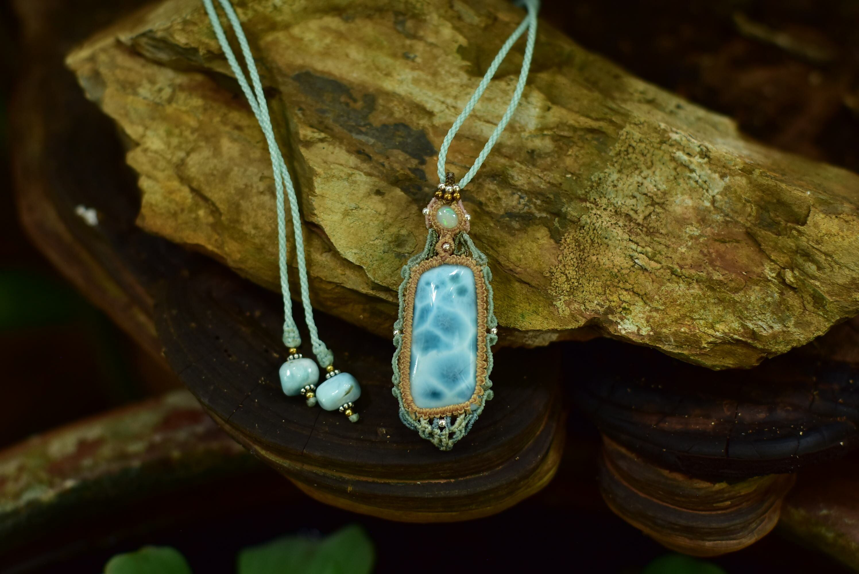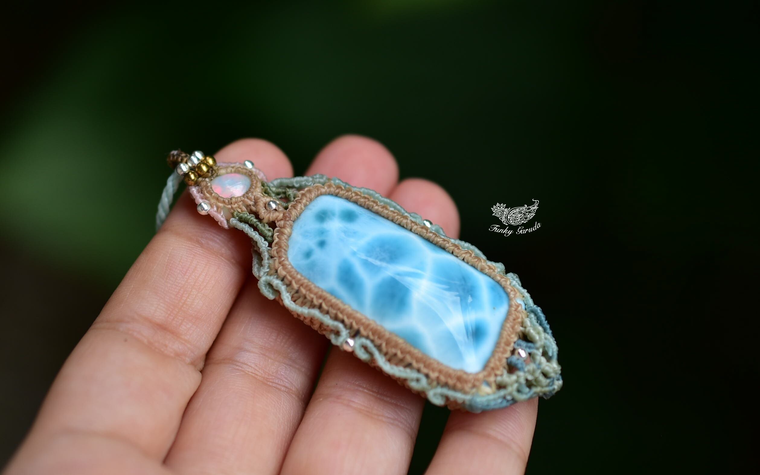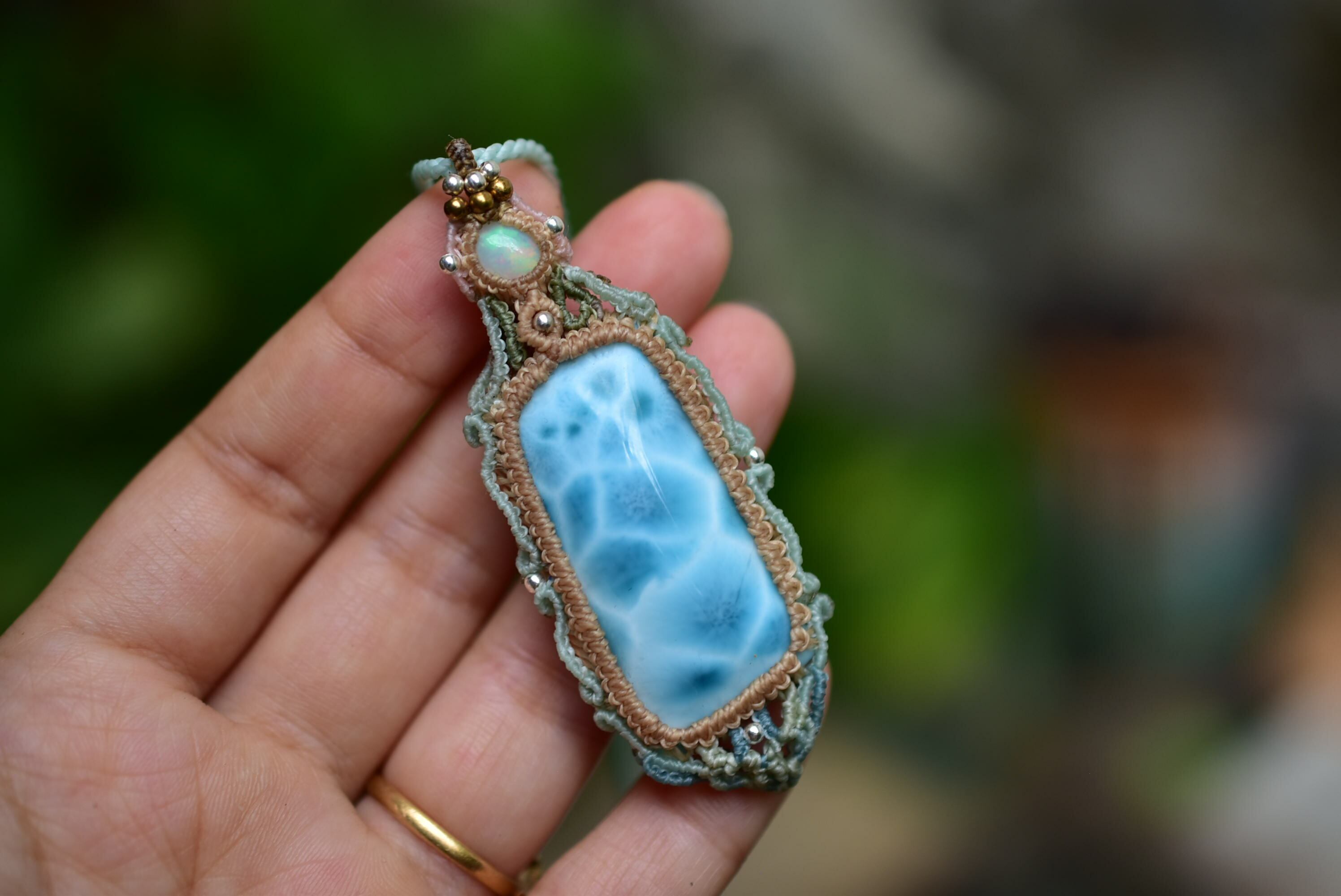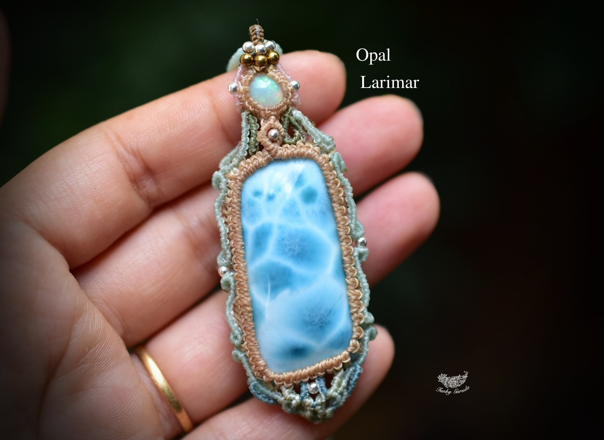 鏡の中の波★プレシャスオパール ラリマー マクラメペンダント39