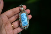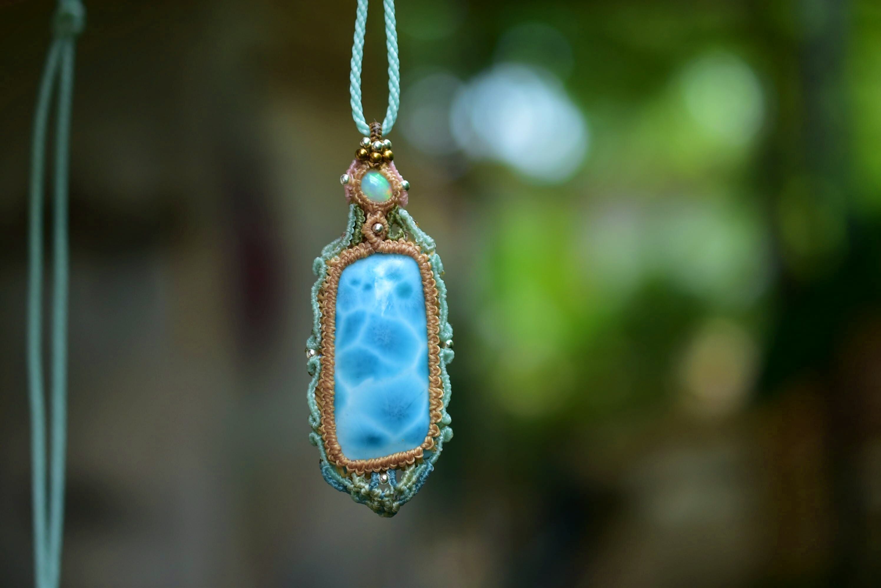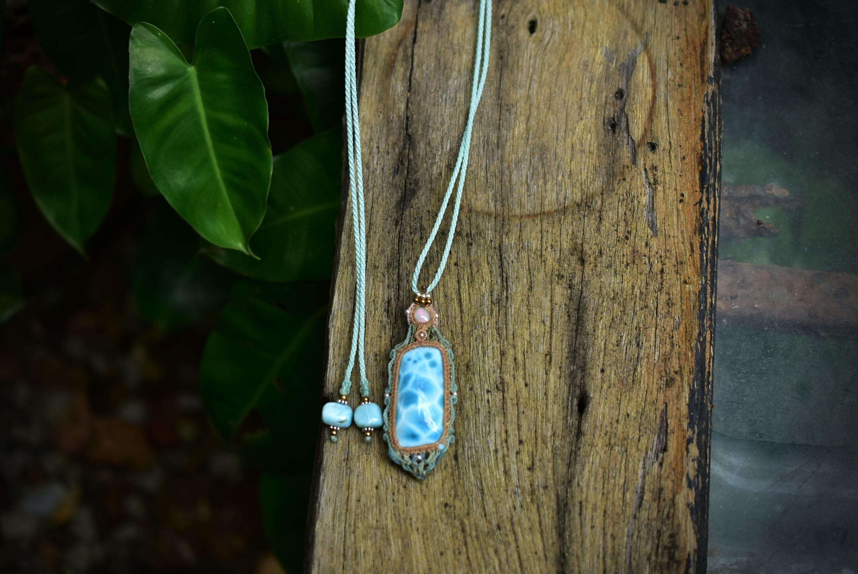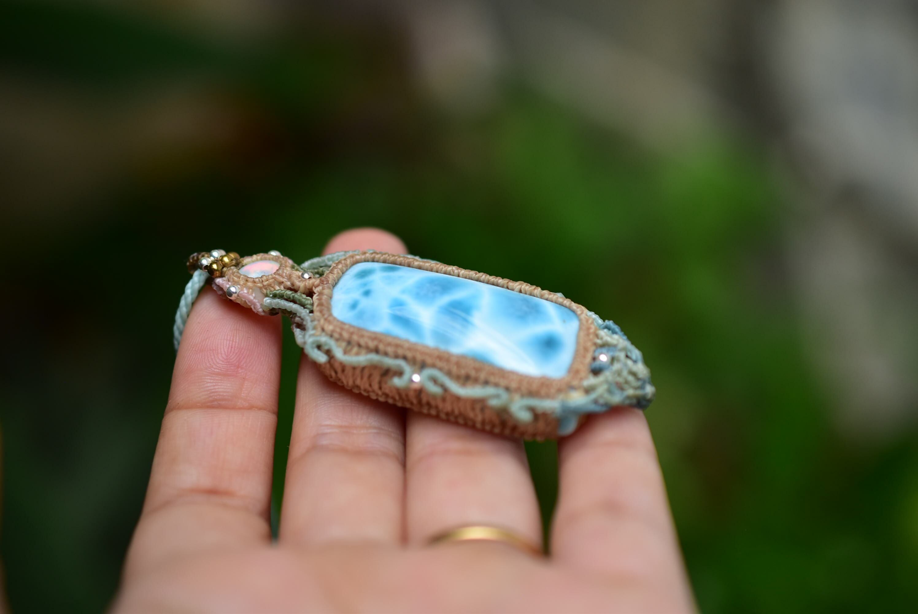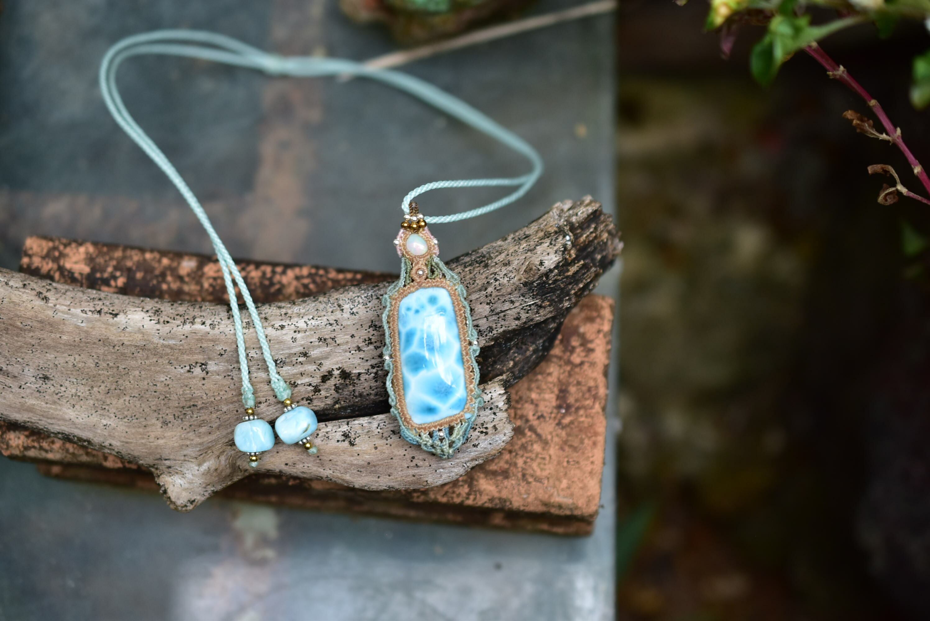 鏡の中の波★プレシャスオパール ラリマー マクラメペンダント39