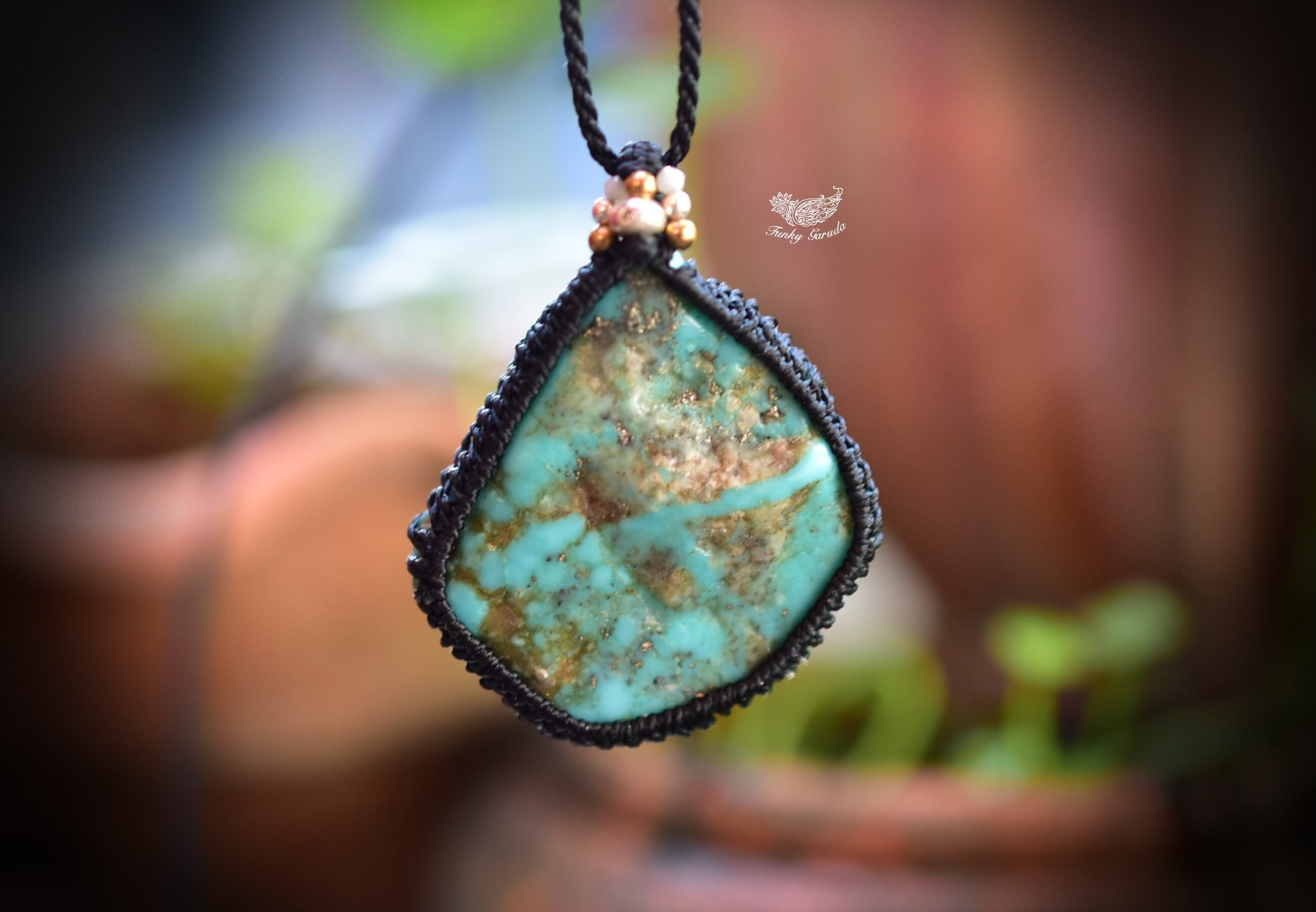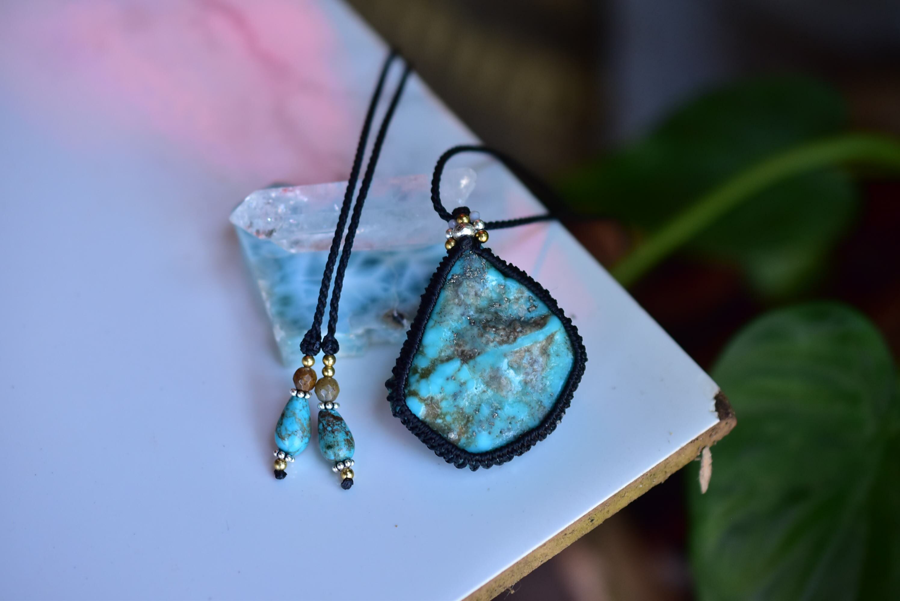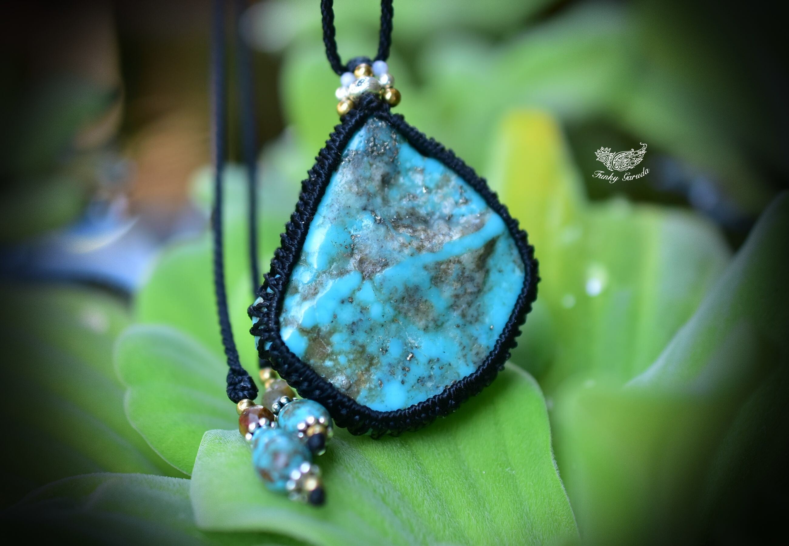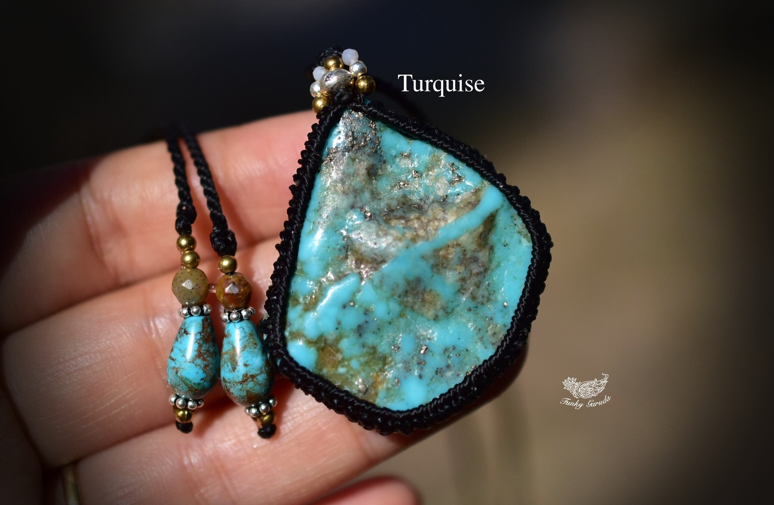 地球色★大粒★ターコイズ原石 マクラメペンダント 32